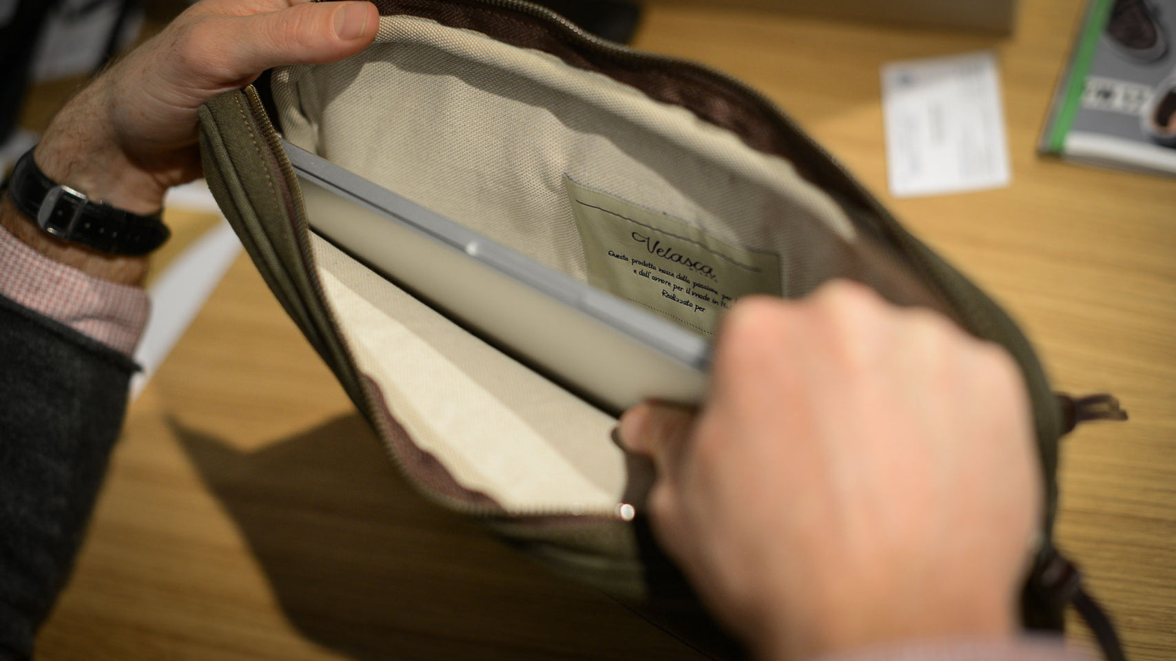 ‘Cavagna’ is the 13’’ laptop bag ― both for computers and MacBooks ― for the contemporary man. The internal lining is there to cuddle it and protect it from scratches and hits. It’s bicolor, made with canvas and leather details, to give you the highest level of versatility and uniqueness. You’ll understand the importance of the zippered lateral pocket: it's for all the important documents.