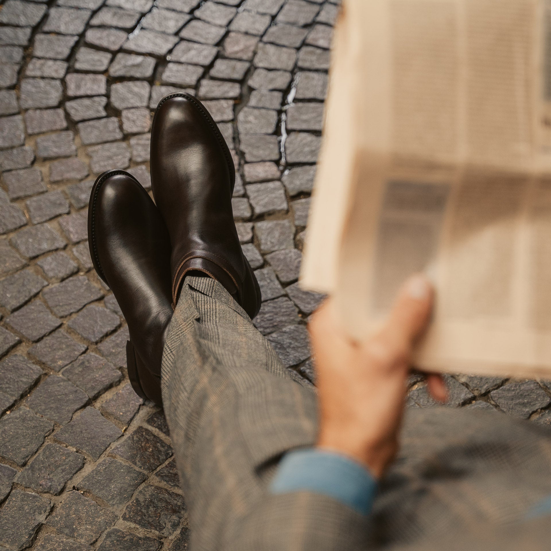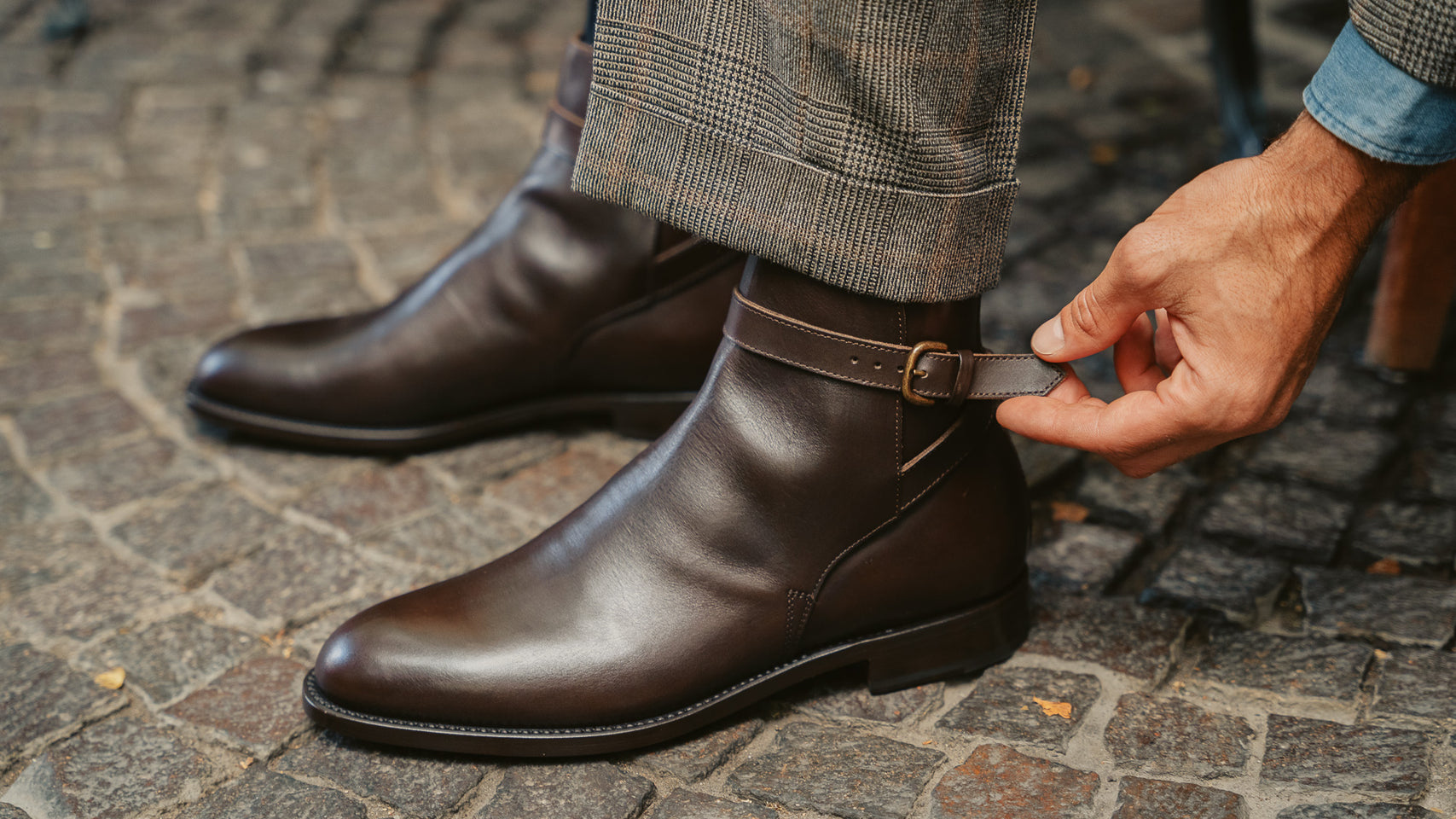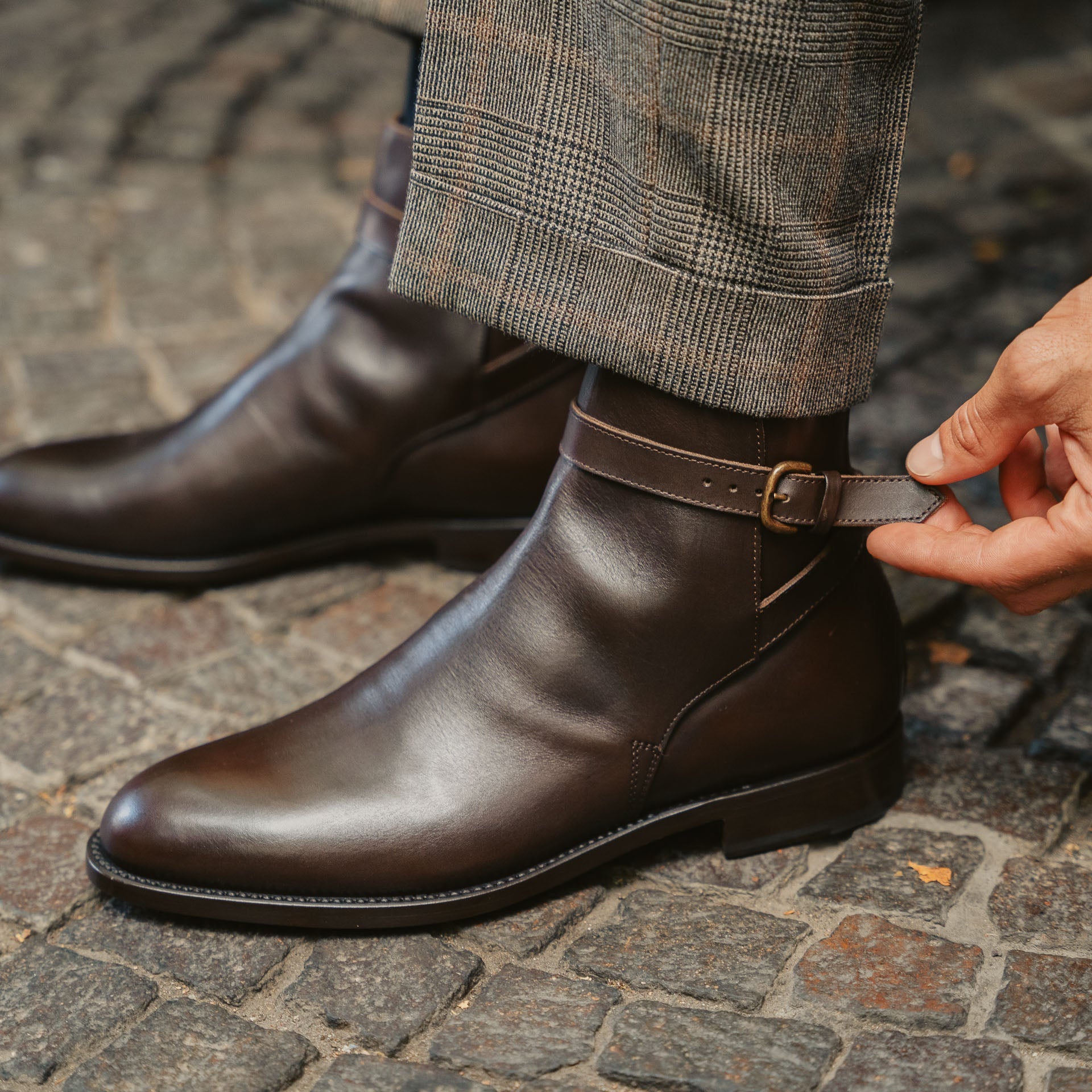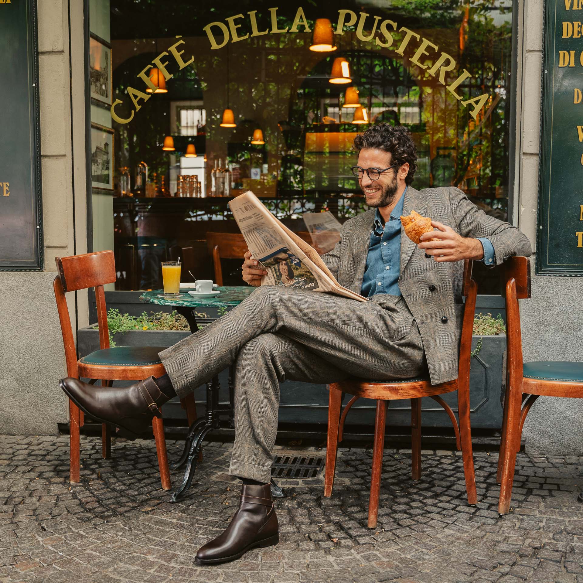 They are buckled boots with simple but elegant lines which accompany your informal style. The blake-rapid construction makes them comfortable and durable over time, while the rubber inserts in the sole guarantee better reliability even on rainy days. Also perfect with a suit; we paired them with a double-breasted jacket and Prince of Wales flannel pleated trousers.