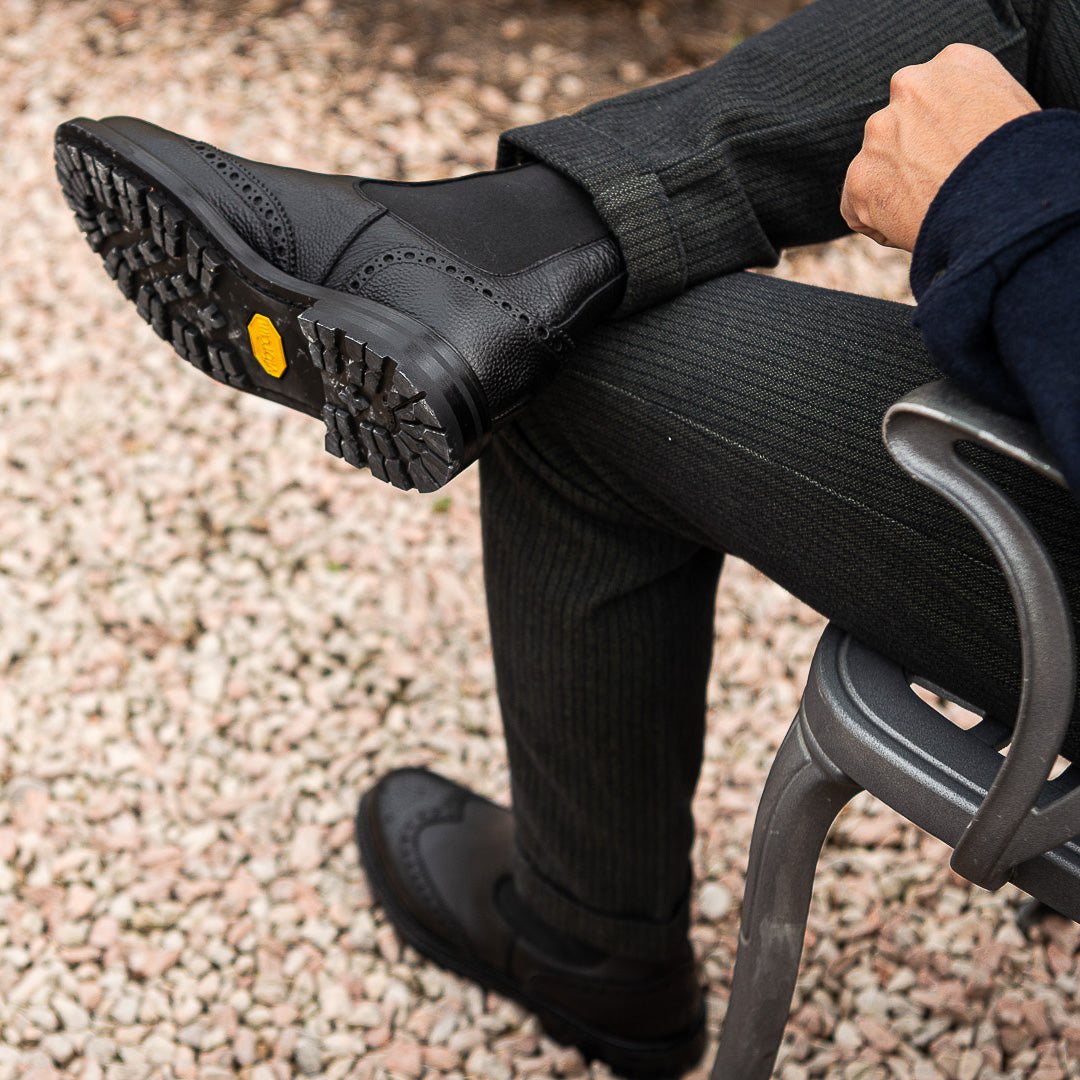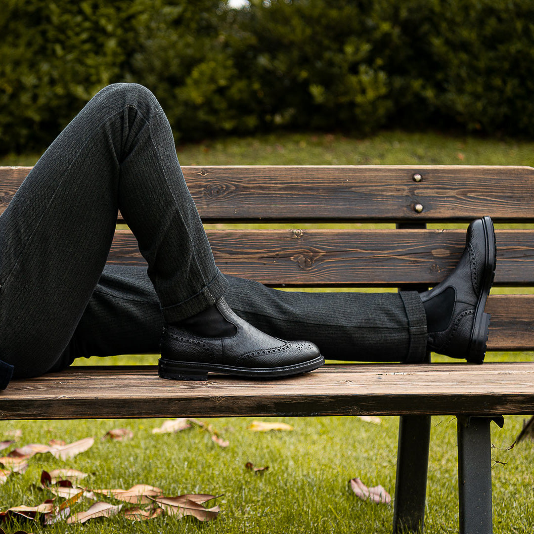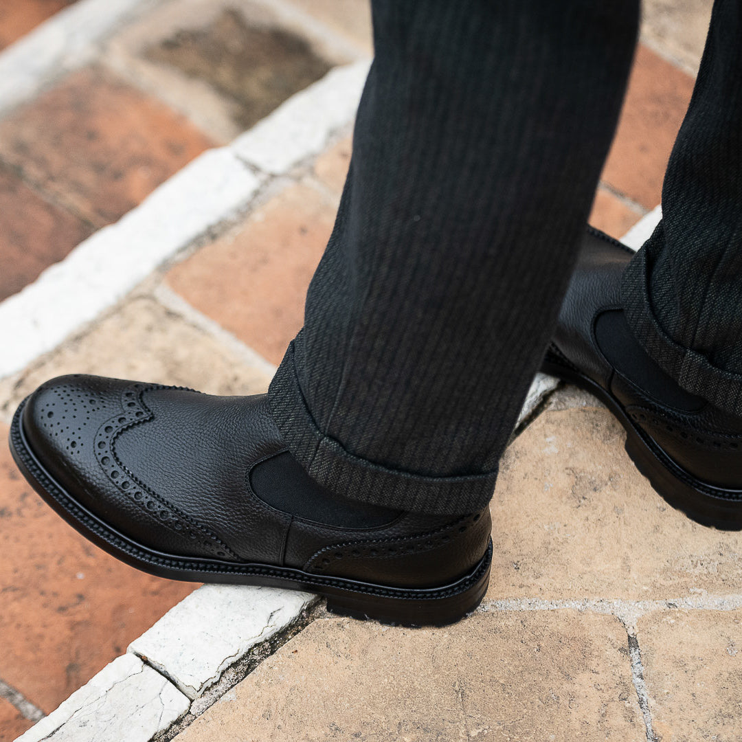The Chelsea cognac ankle boot takes you back to the '60s. The hammered kudu leather shows the small imperfections of this wild animal expressing all its country soul. Soft yet resistant, it'll fit you comfortably thanks to the loop at the back. Wear them with grey woolen pants, a tartan shirt wrapped in a pair of suspenders - if you feel daring.