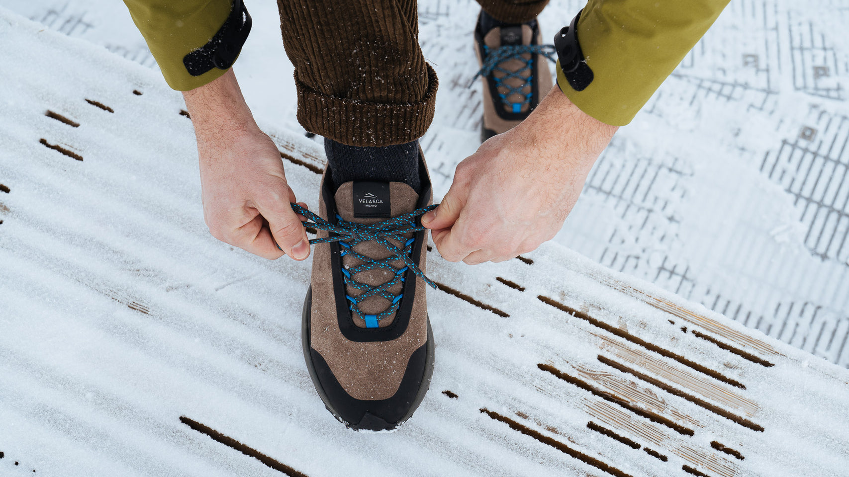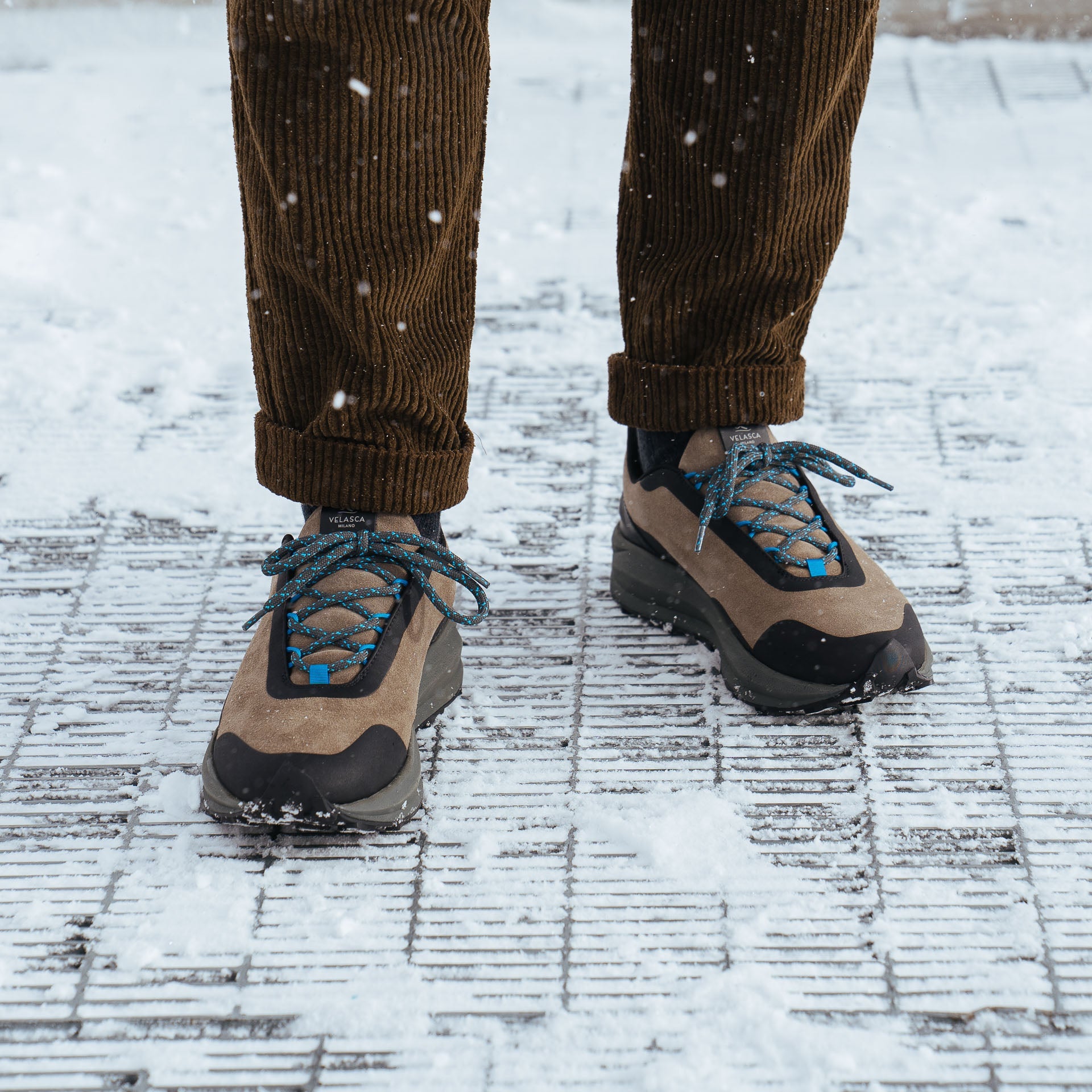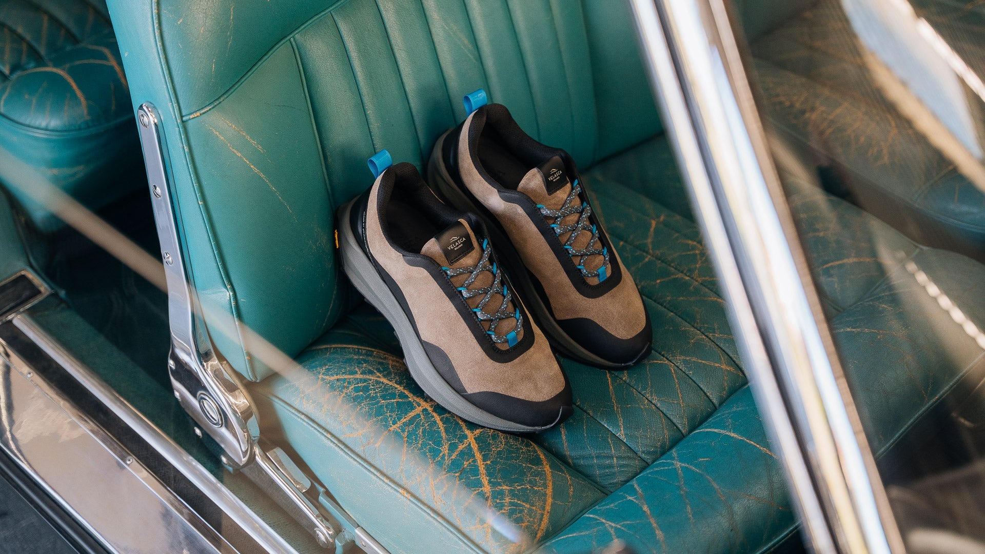 Our sneaker in beige suede leather and with Vibram Trail sole, designed with Pininfarina. The shoe is made of soft, handcrafted leather, but on the back and on the toe we have added stiffer parts to protect you from bumps; on the sides, the lines curve to resemble the shape of the mountains. The insole is removable.