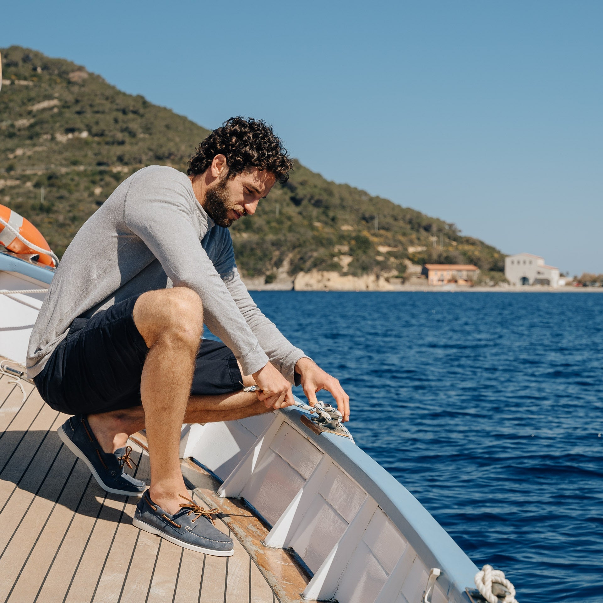 Designed for the lovers of the true Italian sailing tradition, Gambaree is perfect to be shown off at the seafront or in those summer city strolls. Stunning red sunsets, a gelato in your hands, and infinite chats with friends and family, these are the situations where Gambaree gives its best. It’s built with a soft rustic leather and a white anti-slip rubber sole; the blue color is meant to be paired with soft light blue chinos (not too bright, please), a white linen shirt and a summer blazer. Go sockless, obviously.