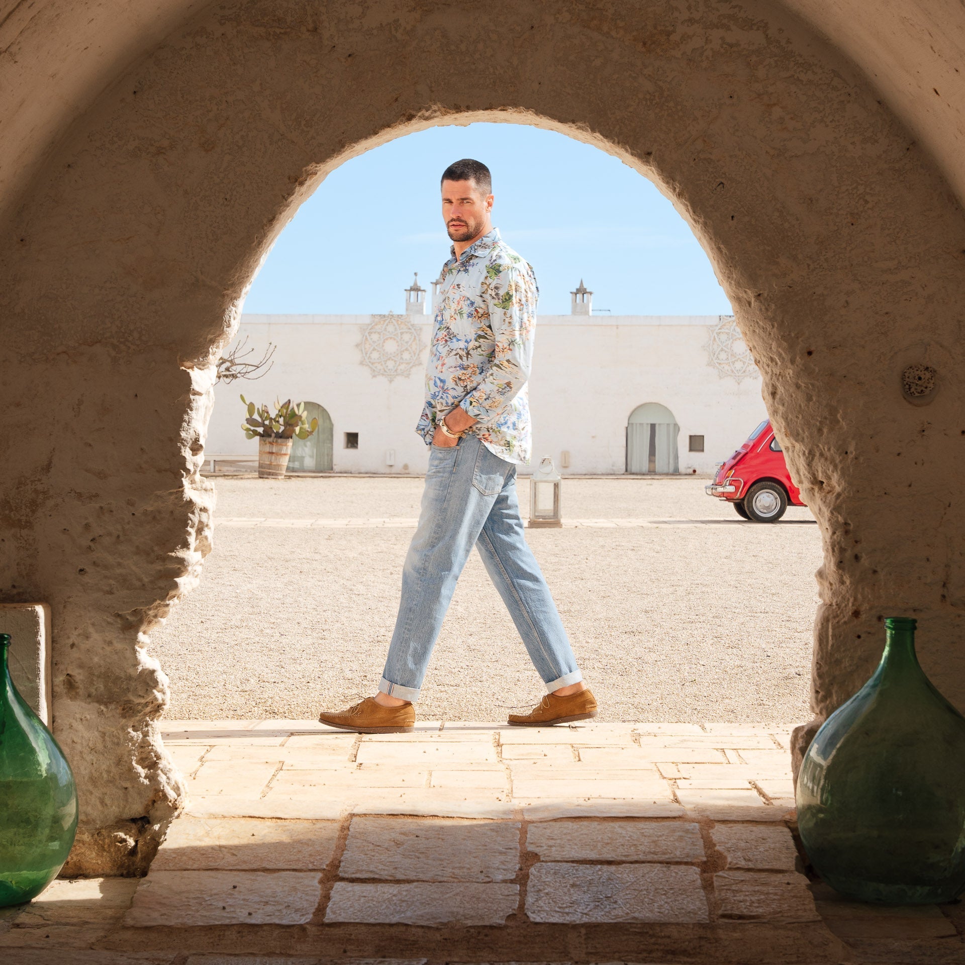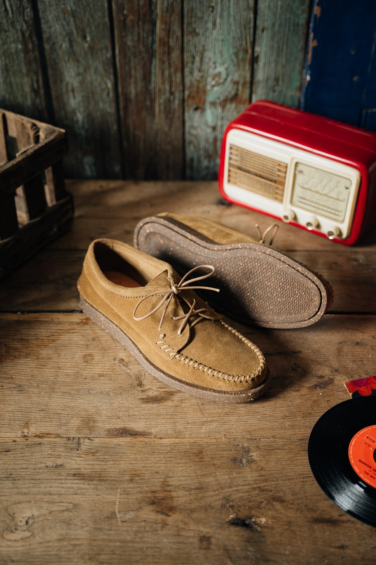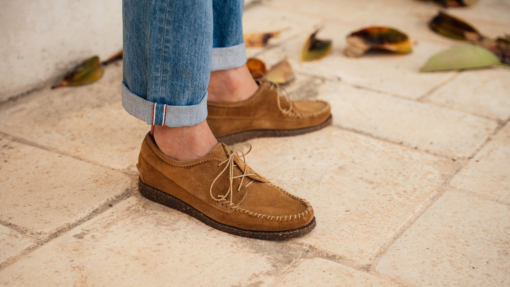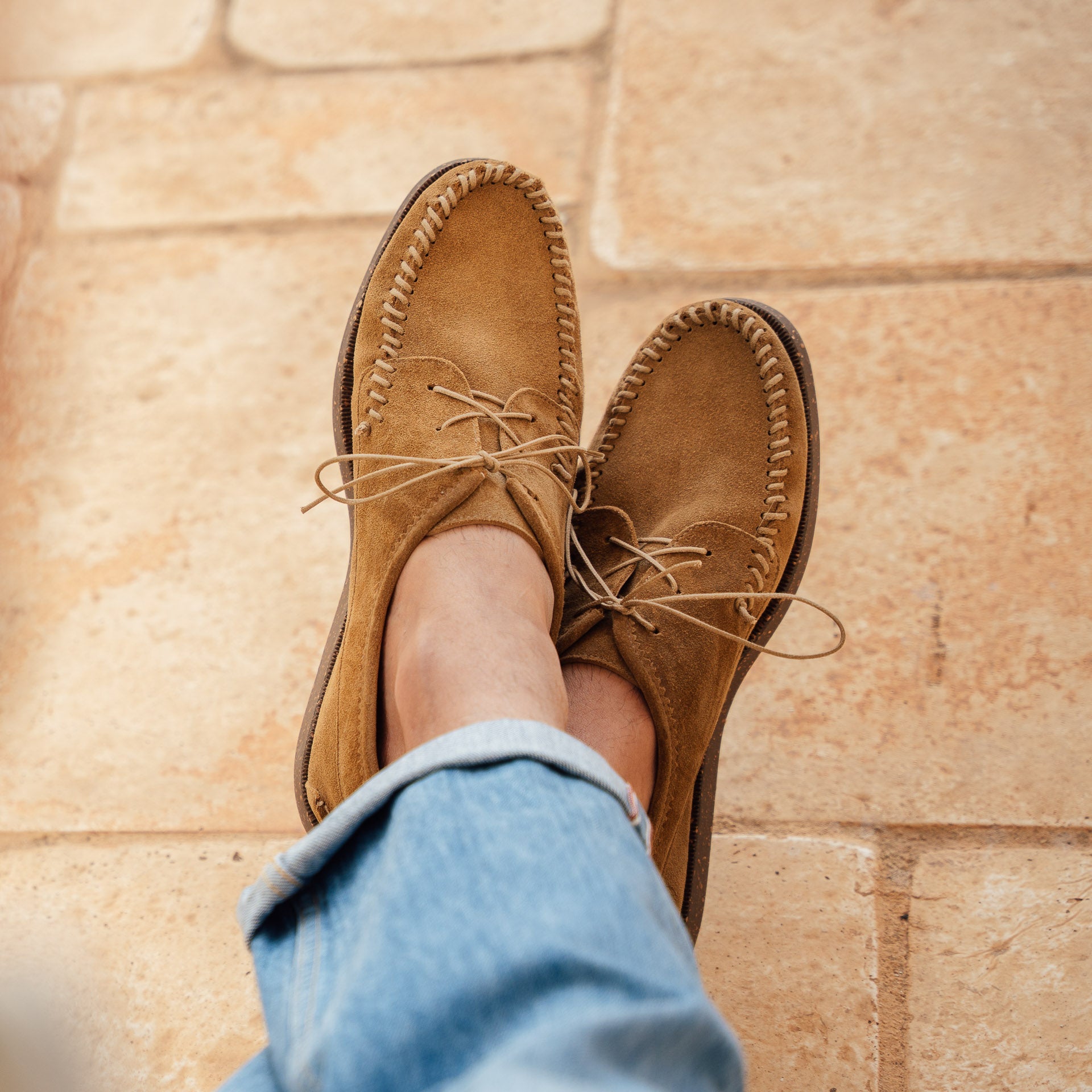 Inspired by hippies, and by a past that yearned for freedom and self-affirmation, these artisanal Indianine are in beige calfskin suede with a rubber cork sole. The stitching around the bowl was done by hand, with a needle and thread as it used to be done. They’re made with you in mind, someone who knows how to be elegant even with more basic items.