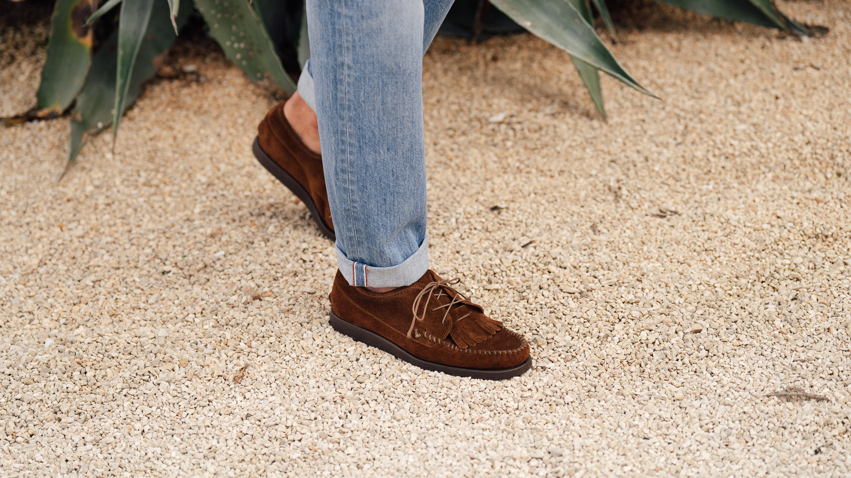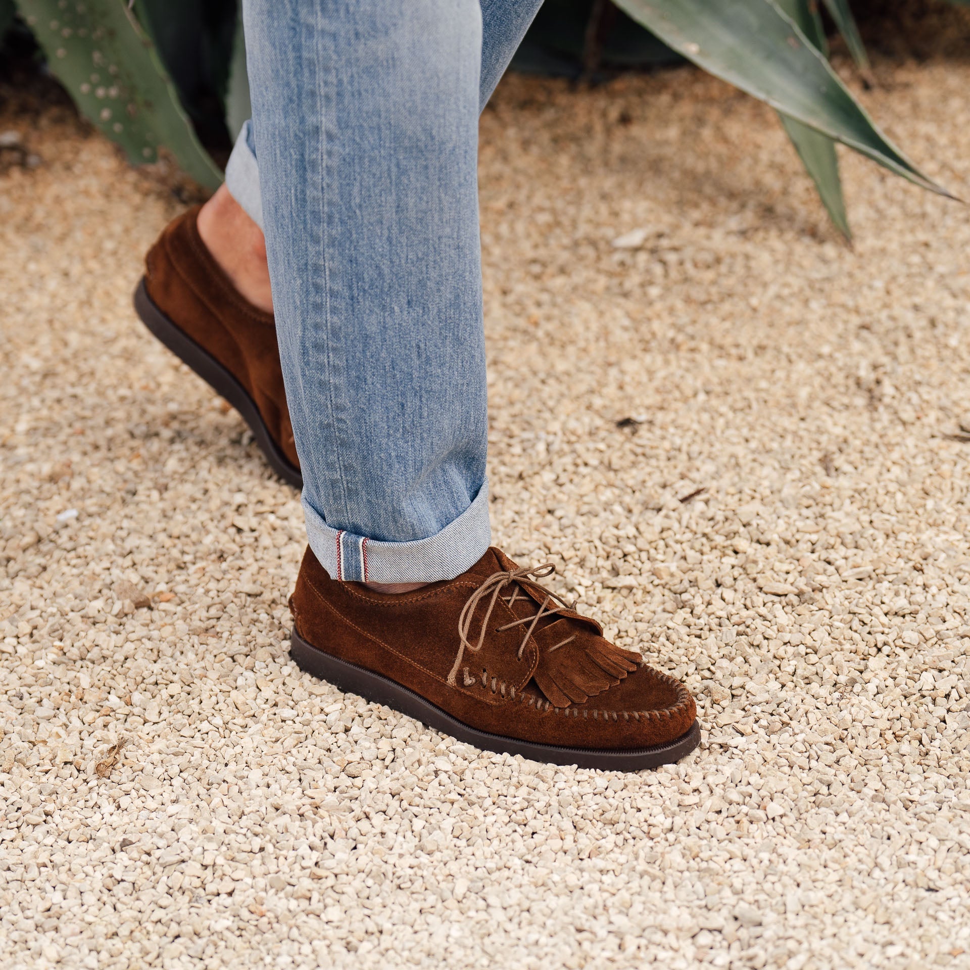 Inspired by hippies, and by a past that yearned for freedom and self-affirmation, these artisanal Indianine are in brown calfskin suede with a rubber cork sole. The stitching around the bowl was done by hand, with a needle and thread as it used to be done. They’re made with you in mind, someone who knows how to be elegant even with more basic items.