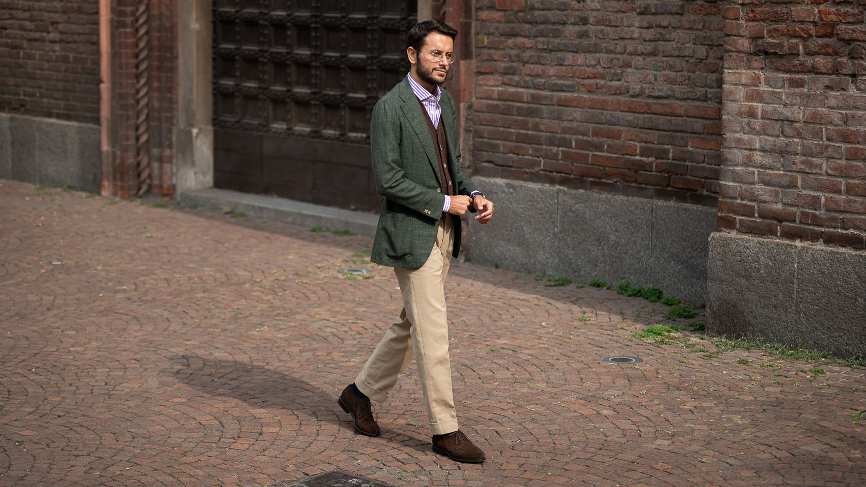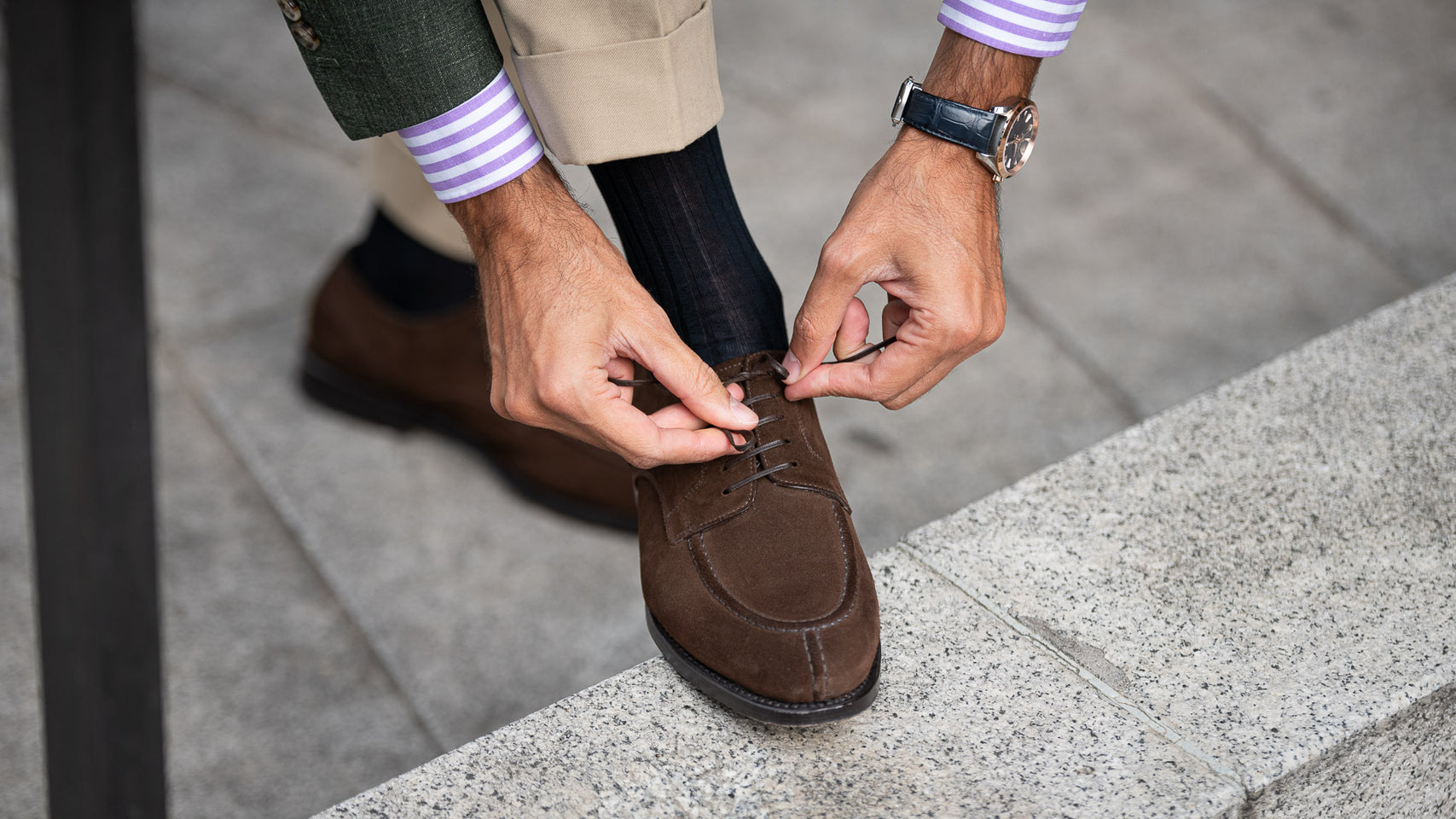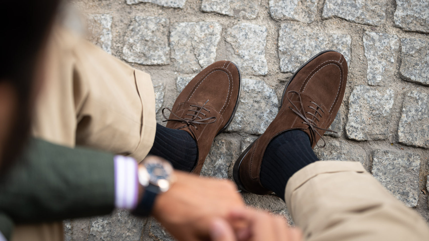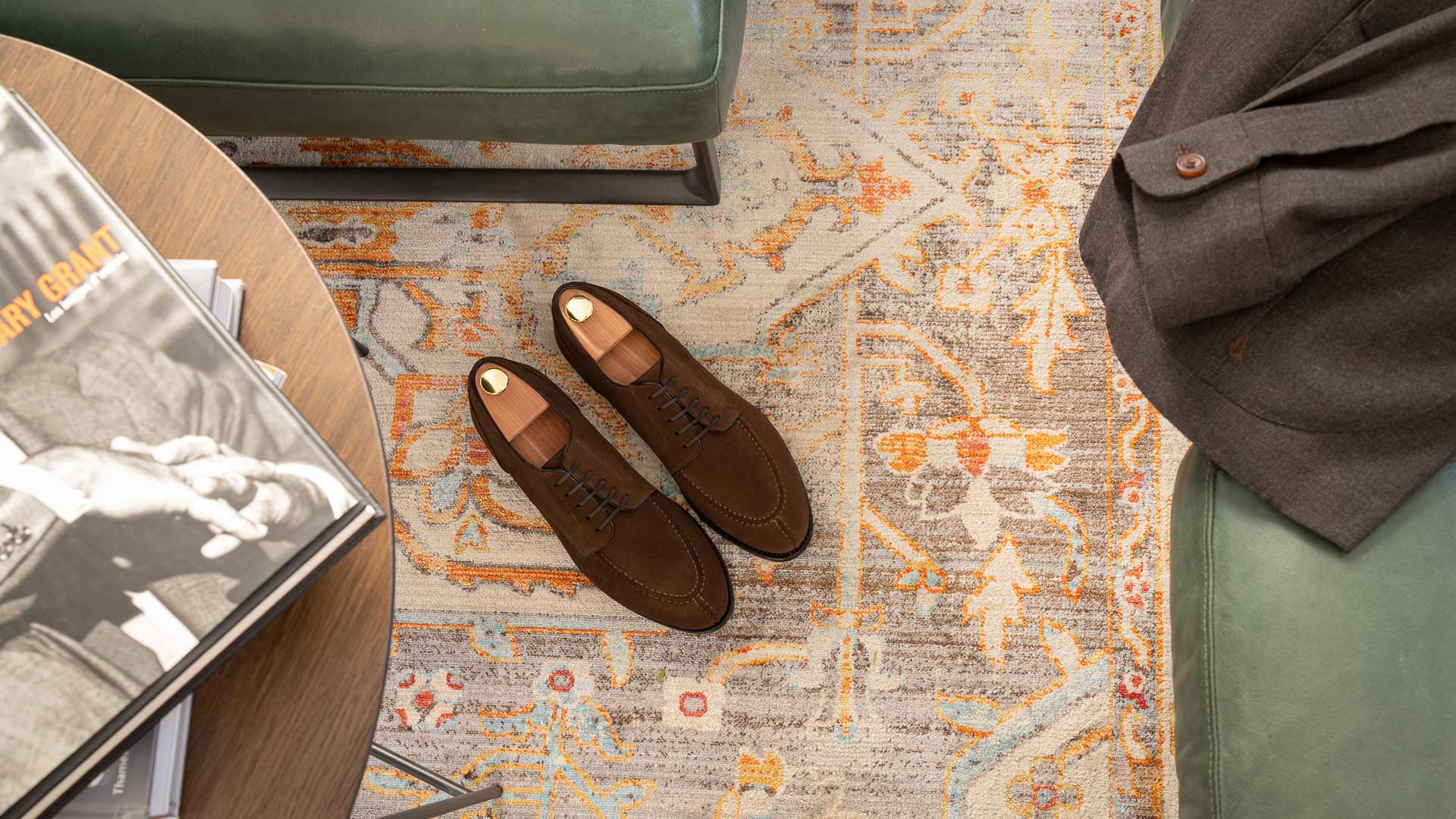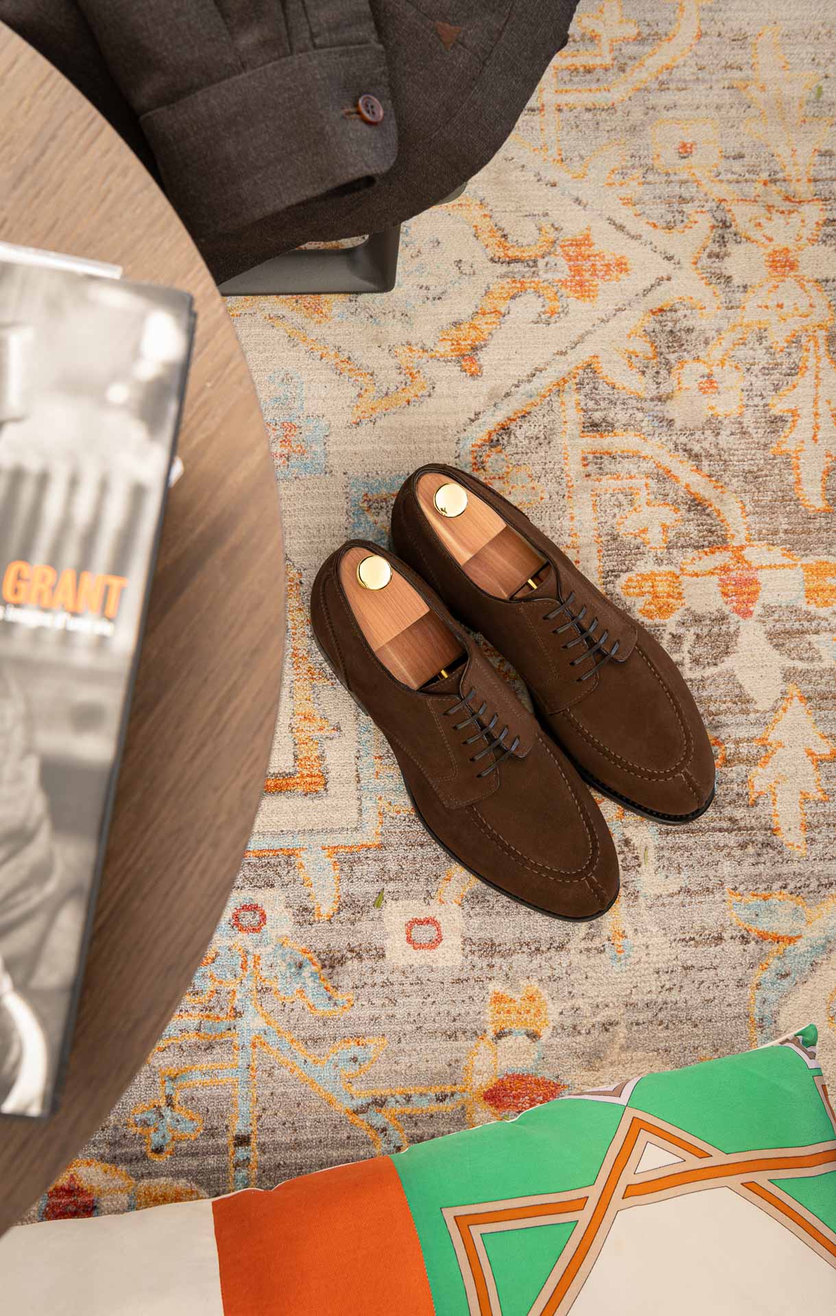 The suede derby designed by Fabio Attanasio for Velasca. Suede is made from the crust of calfskin (which is the softest layer) from English tanneries: it is silky-smooth when you touch it. The leather sole has a small rubber island so, together with the integrated insole, every step will be more comfortable. On the toe, this shoe flaunts its elegant stitching. Cashmere turtleneck and corduroy pants, and you’re ready for the weekend.