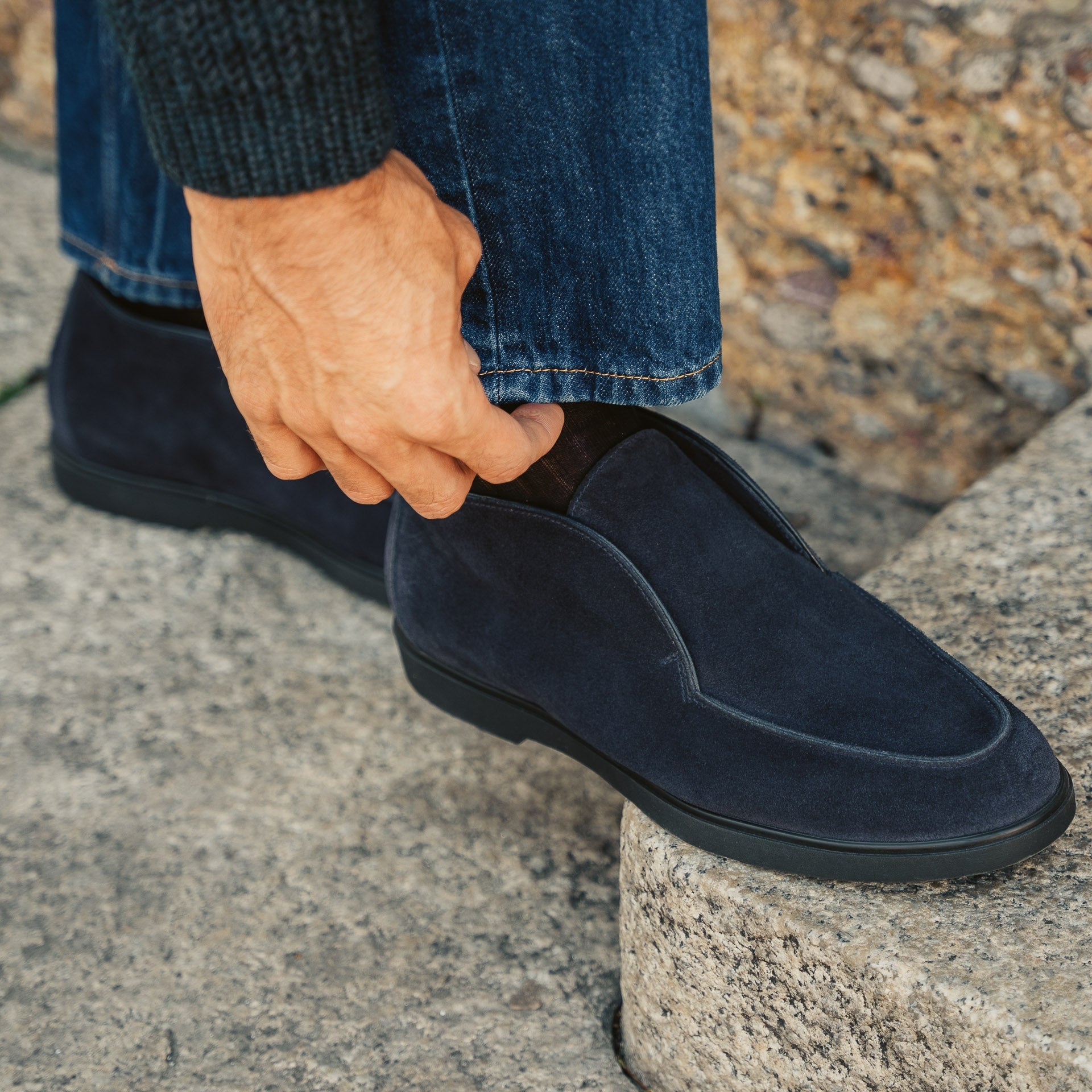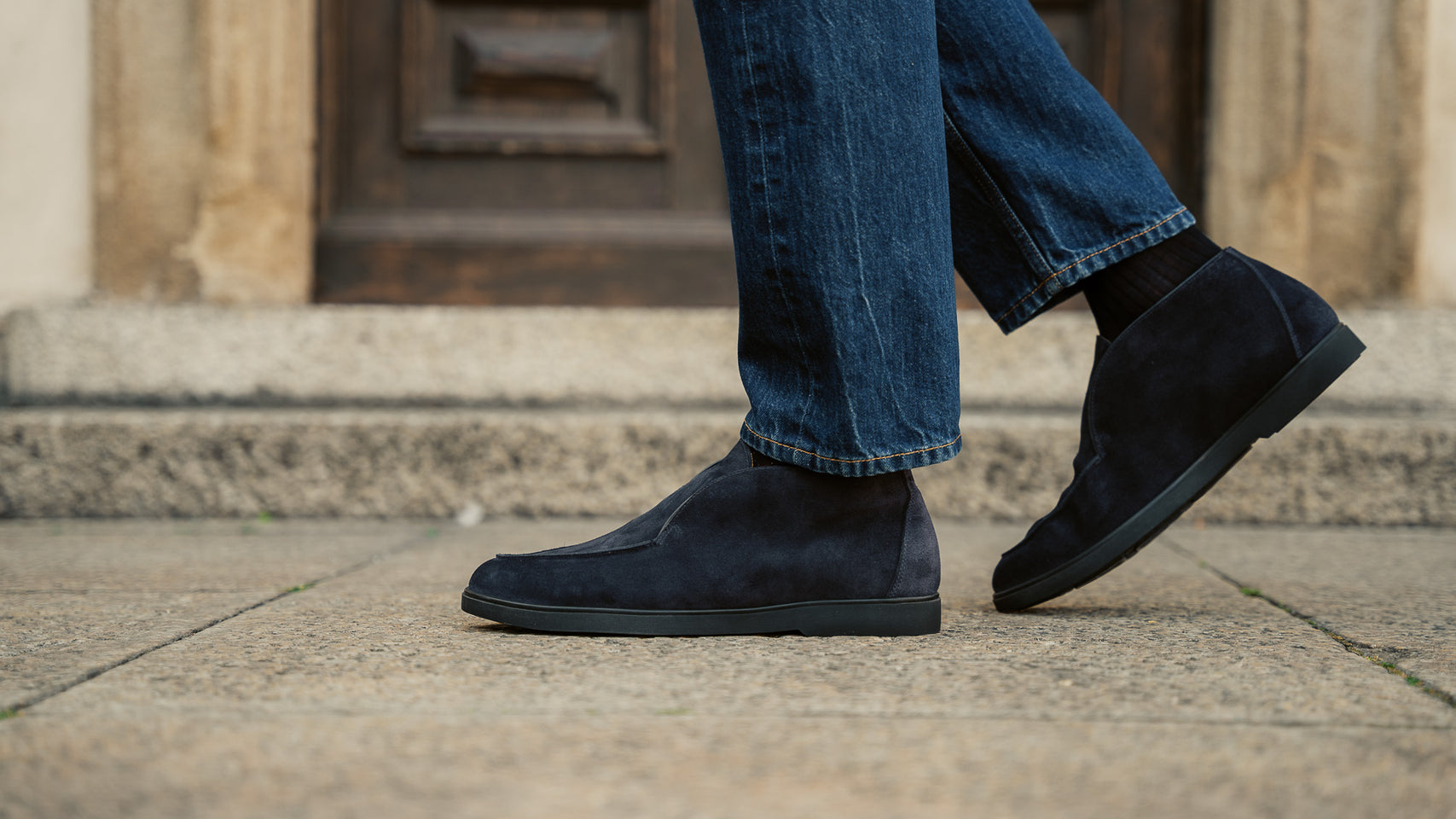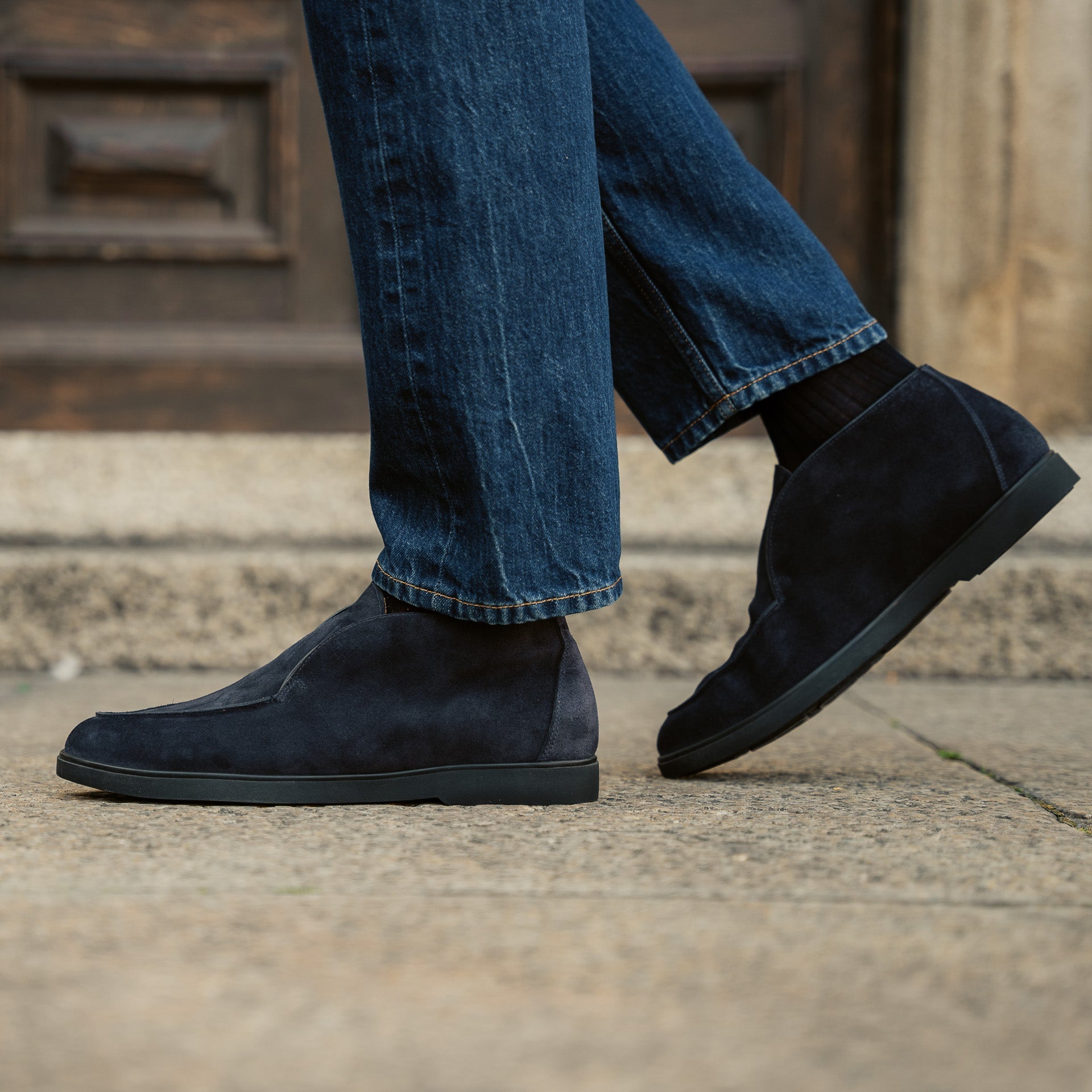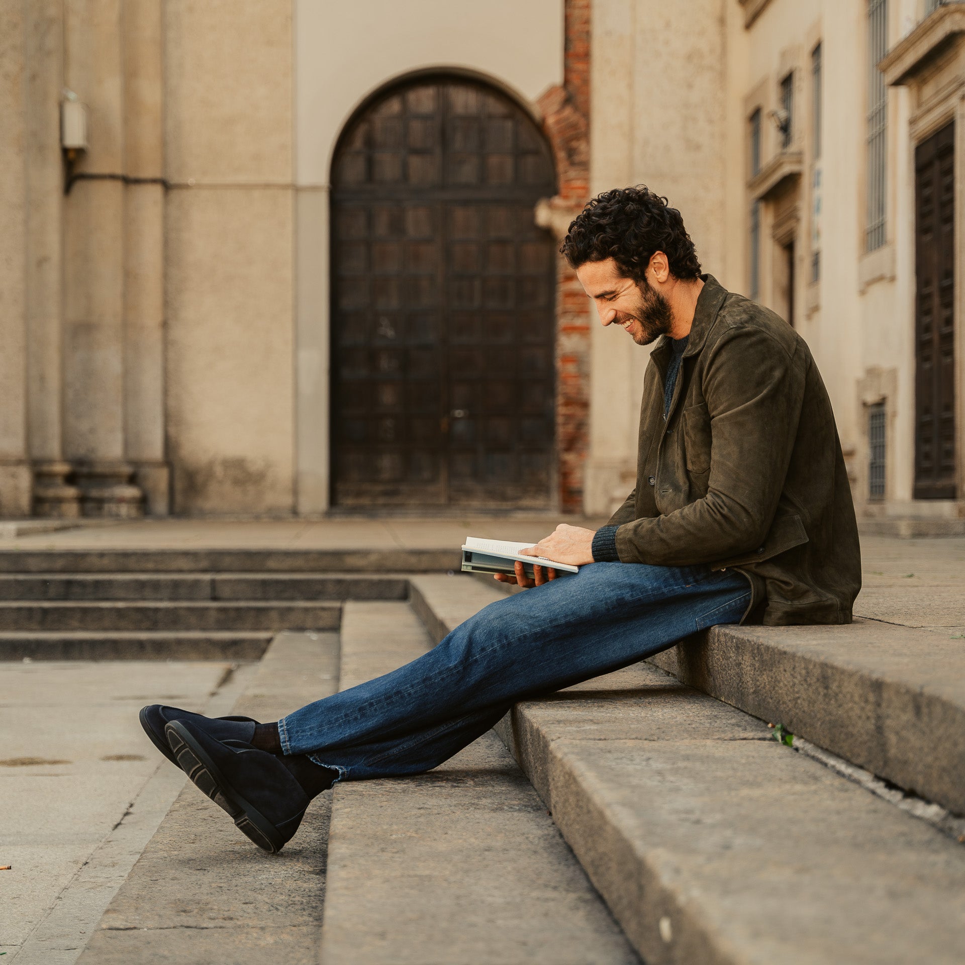 They are the unlaced ankle boots for everyday life. The black construction guarantees lightness and flexibility, while the Dockers rubber sole makes them ideal for days in the office or during free time. We wore them with a suede jacket, a ribbed knit and jeans.