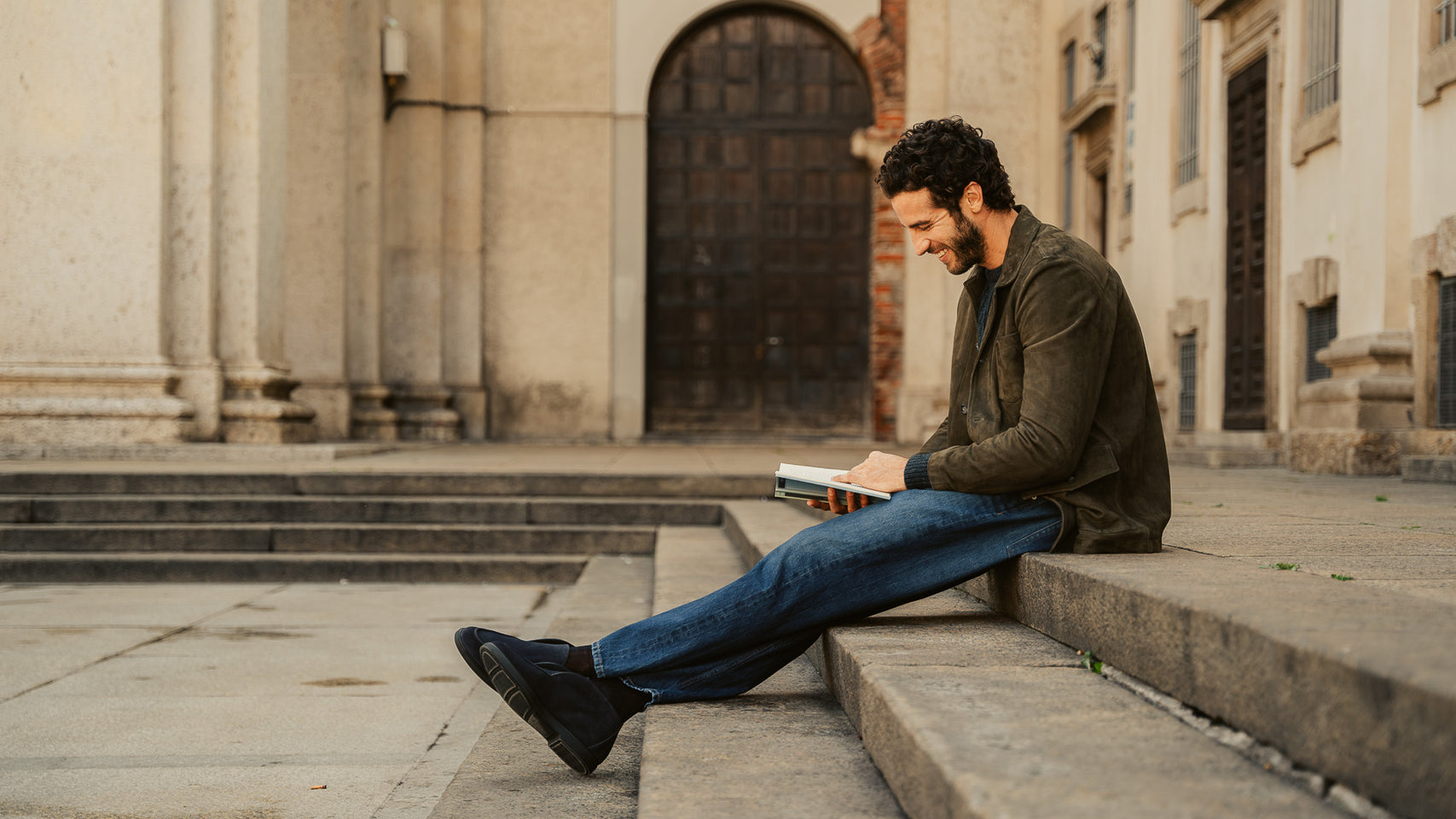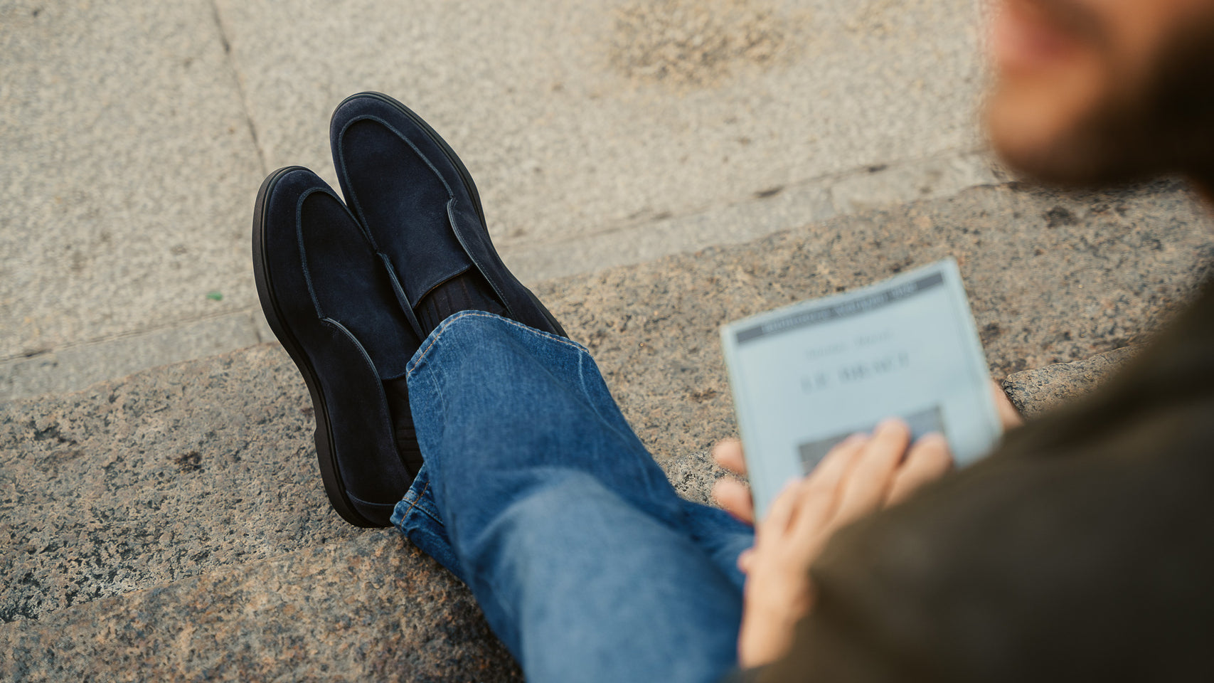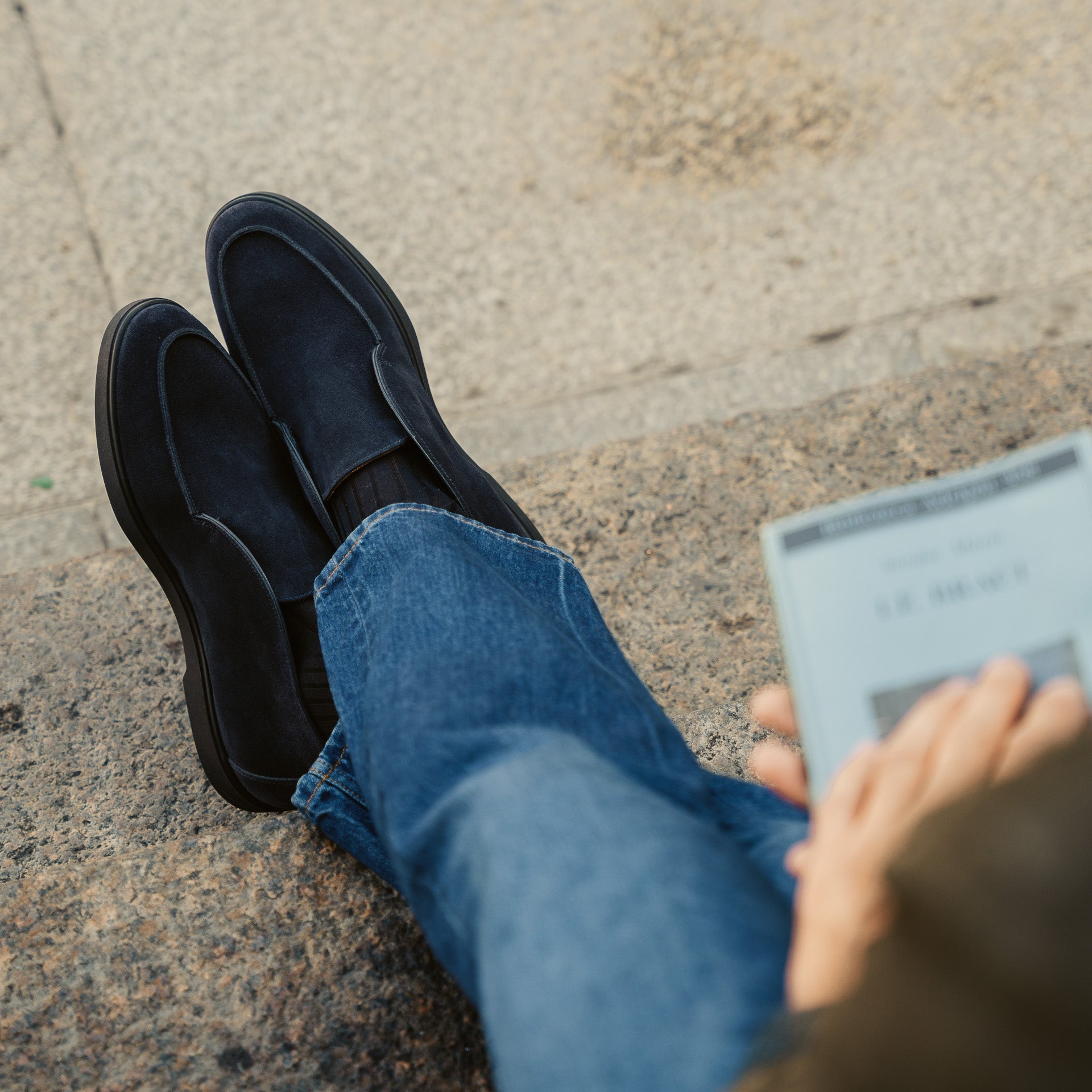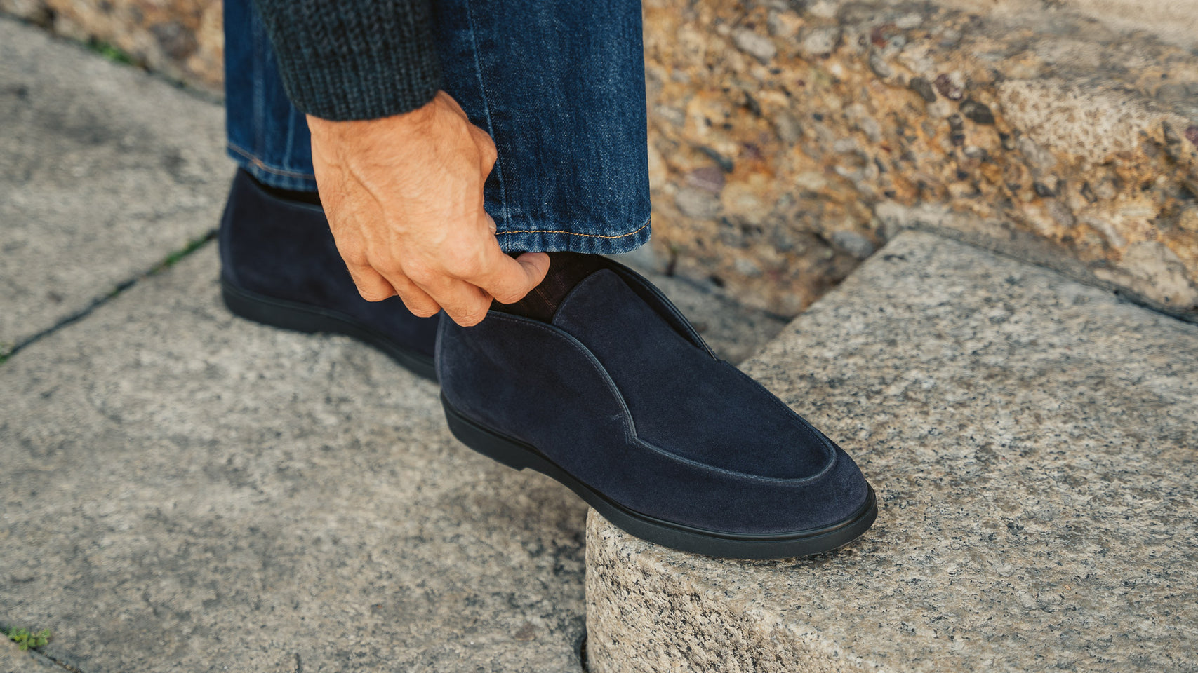 They are the unlaced ankle boots for everyday life. The black construction guarantees lightness and flexibility, while the Dockers rubber sole makes them ideal for days in the office or during free time. We wore them with a suede jacket, a ribbed knit and jeans.