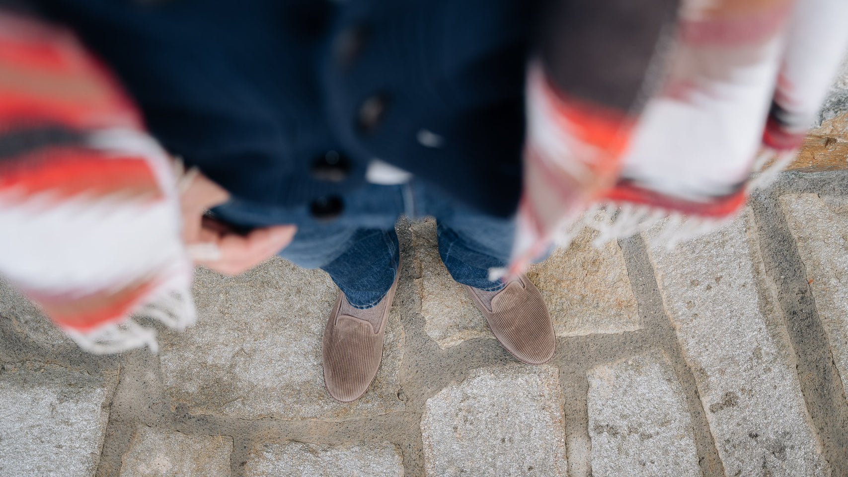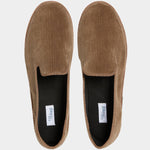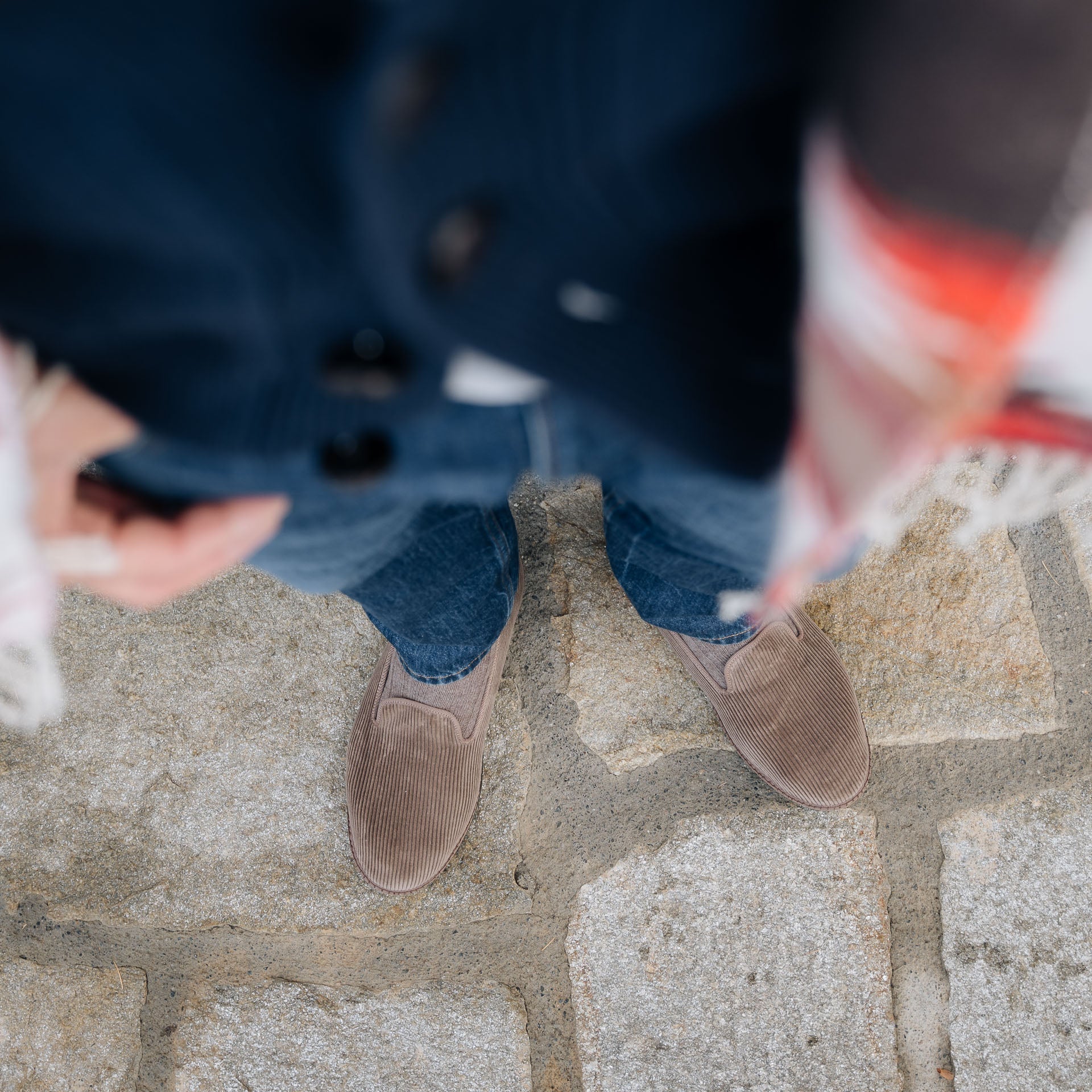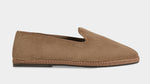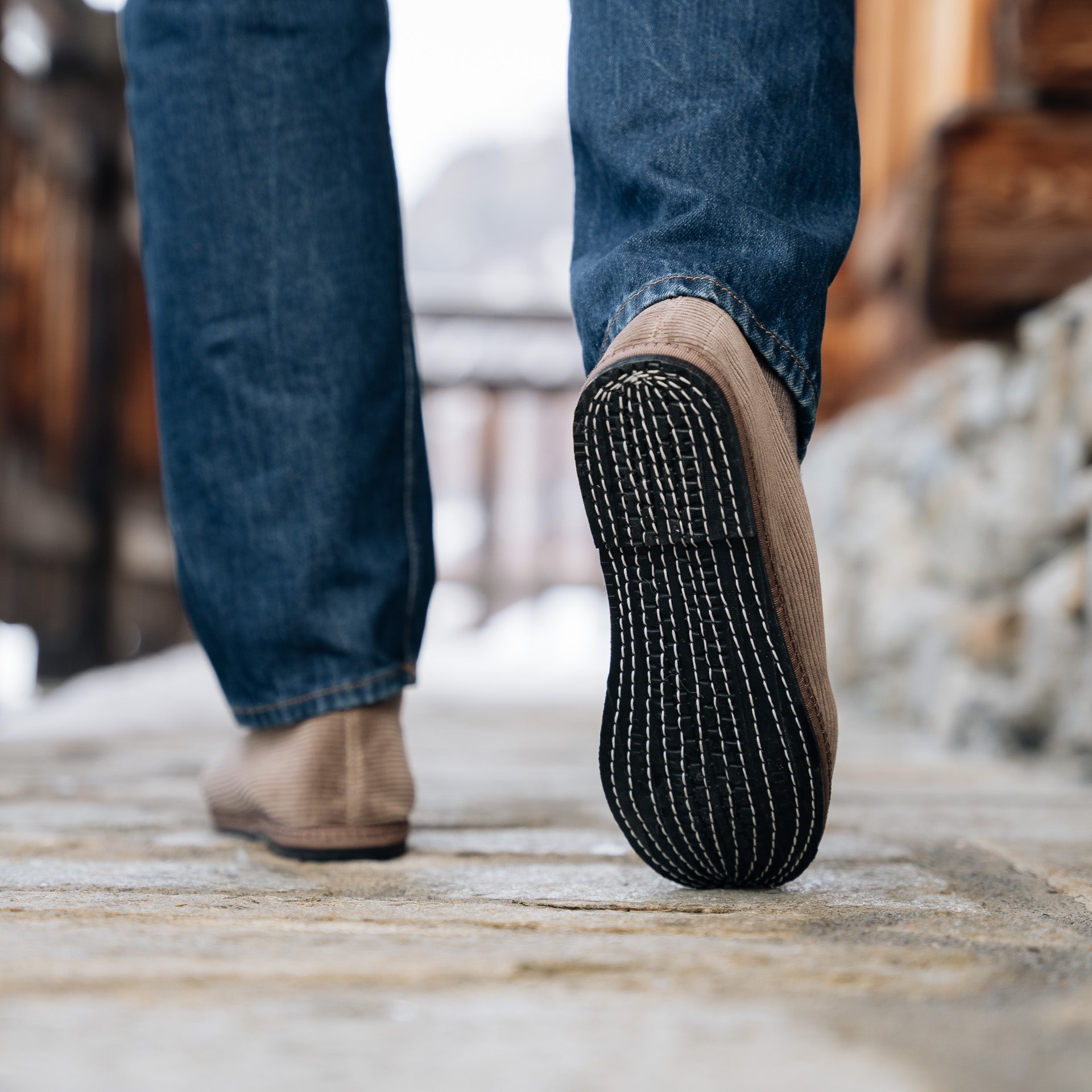 The Friulane in beige velvet corduroy fabric and a rubber sole with visible stitching. They are traditional Friuli shoes that were originally made at home by ladies in mountain villages, then found new life in the Venetian canals: the gondoliers needed a comfortable and stable shoe that was also delicate on the wood. The hand stitching, with its irregularities, makes each shoe a unique piece. Comfortable and snug, with the tongue which covers up to the instep, you’ll barely feel them; perfect for relaxing at home after a day in the snow.