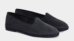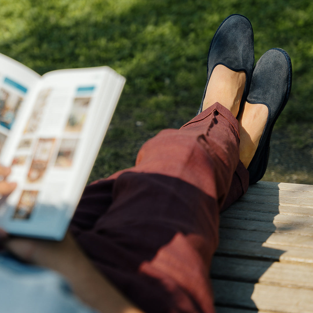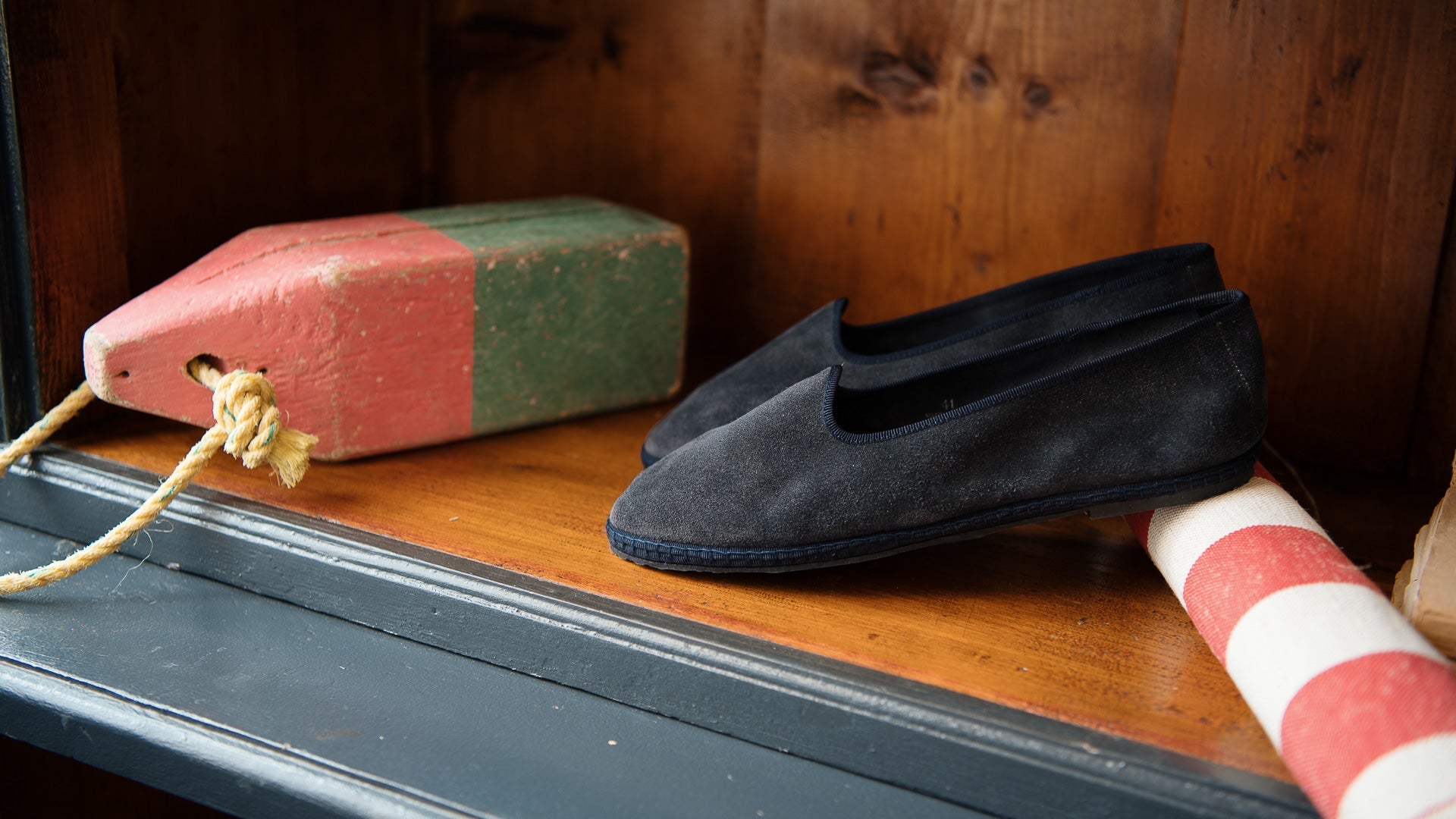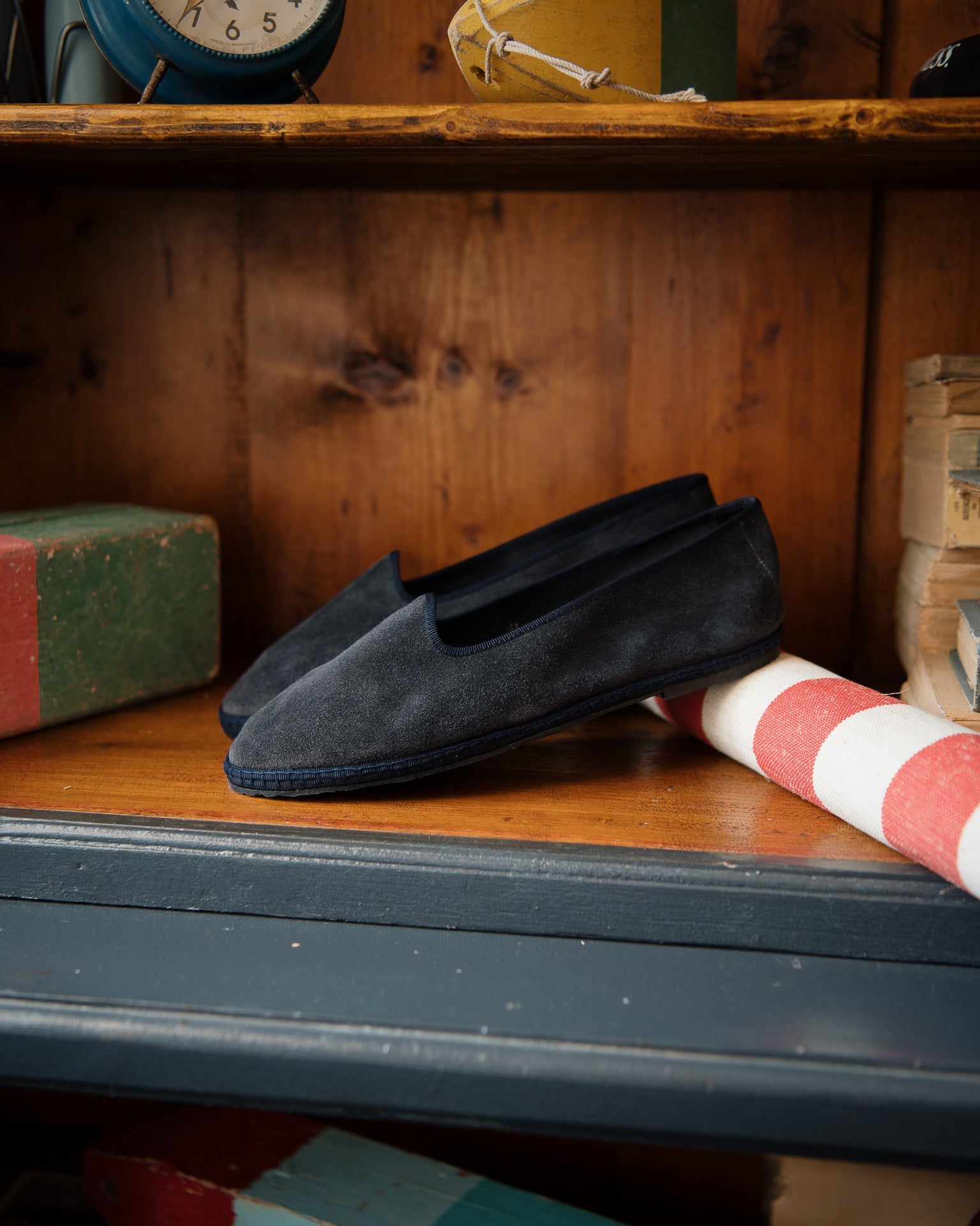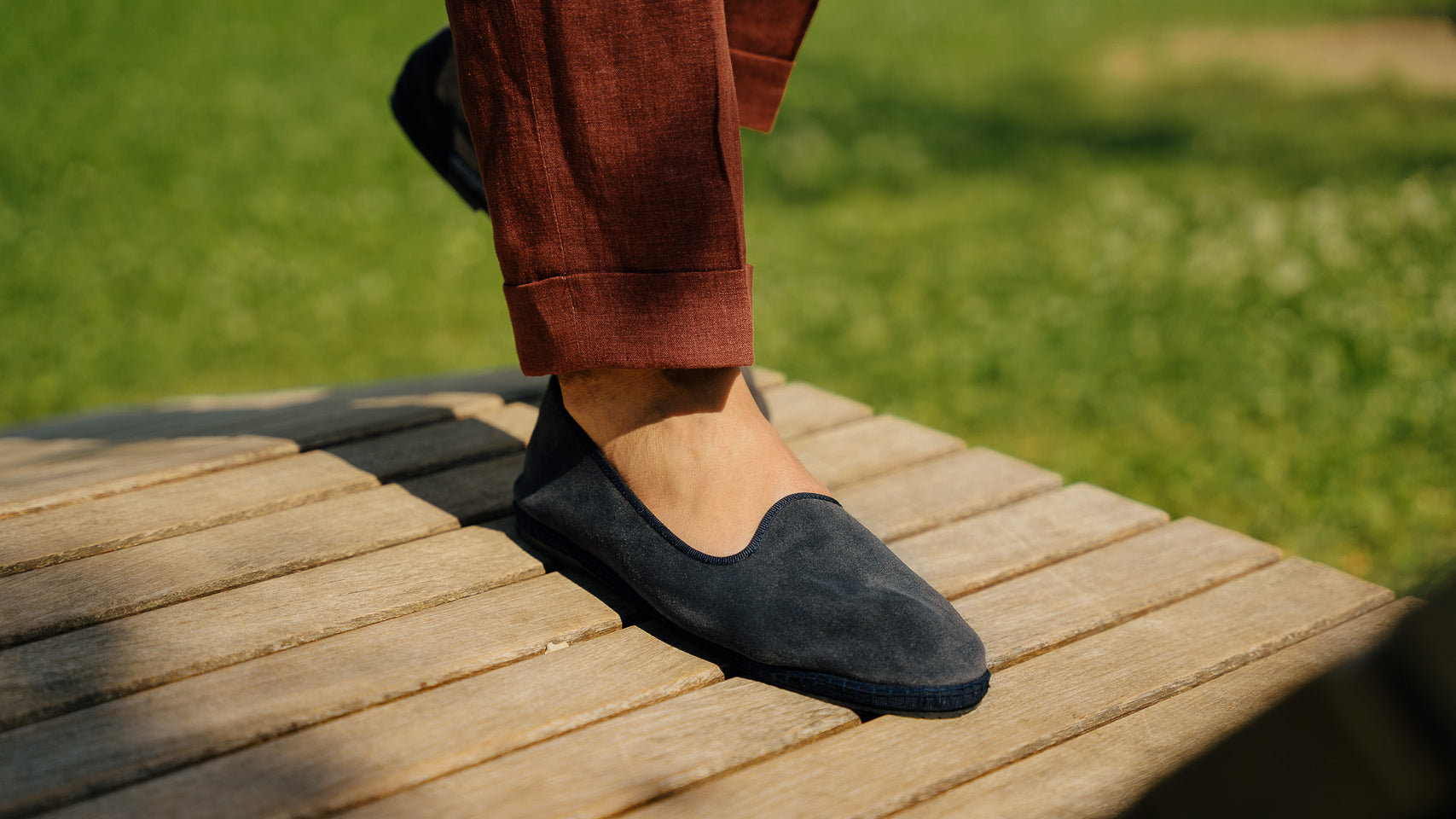 Friulane shoes (or call them Furlanes) are the historical shoes of Friulian tradition: simple lines combined with suede, unlined and with a rubber sole. They were originally homemade by women from villages in the mountains, then they found new life among the Venetian canals: the gondoliers needed a comfortable, stable and delicate shoe on the wood. The hand stitching has remained just as it once was: hands make each shoe a unique piece with their irregular motion. Today these shoes are a symbol of elegance: wear them with burgundy trousers with pleats and a sugar-paper coloured shirt, all in pure linen. A chat in the park.