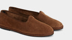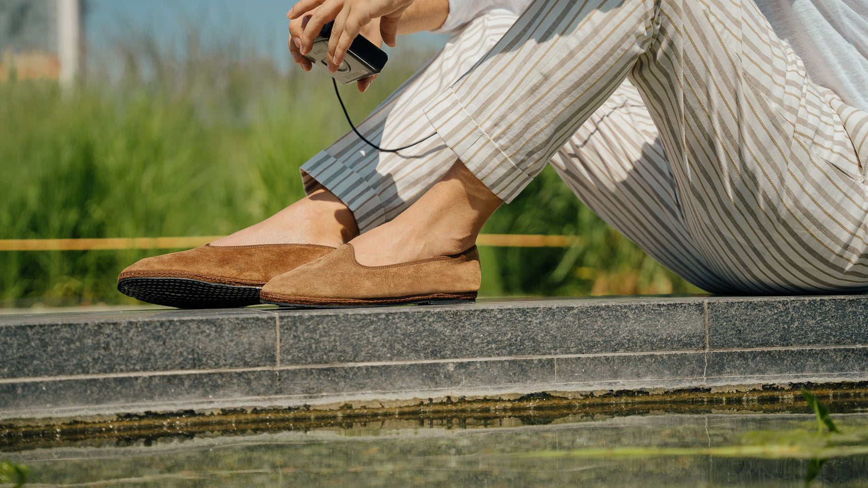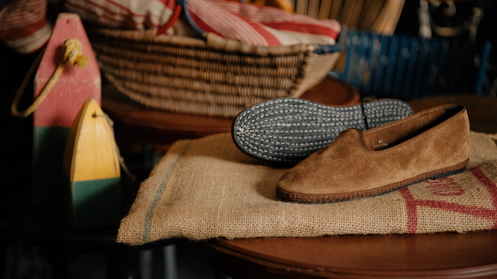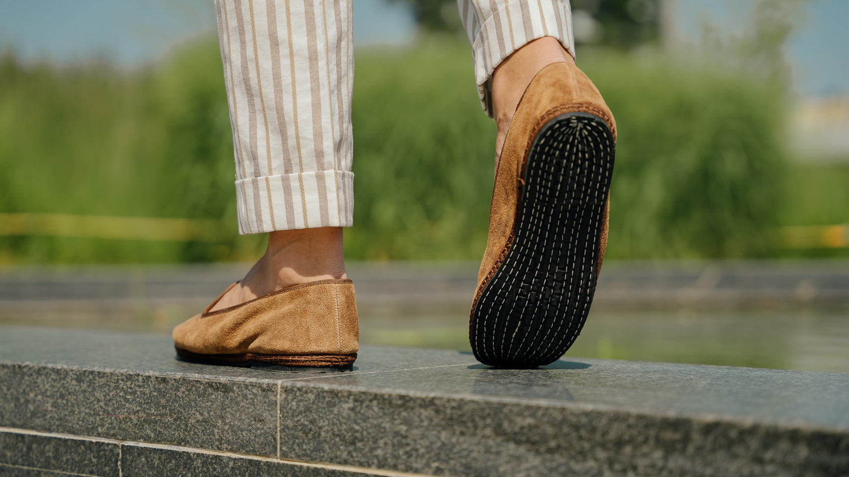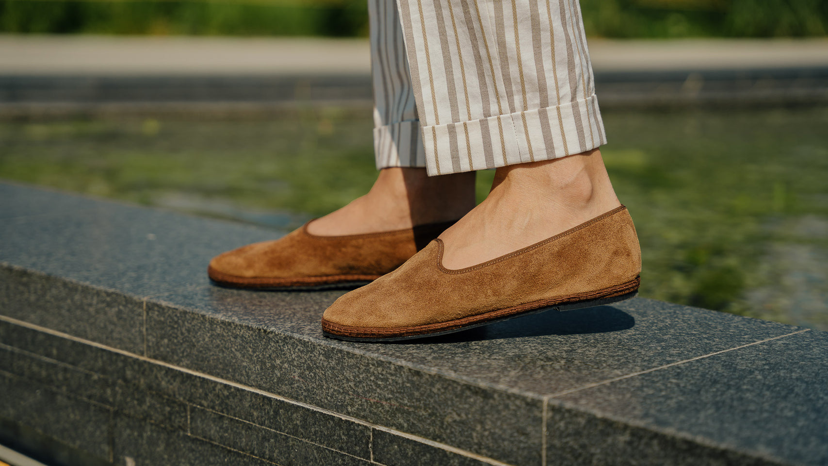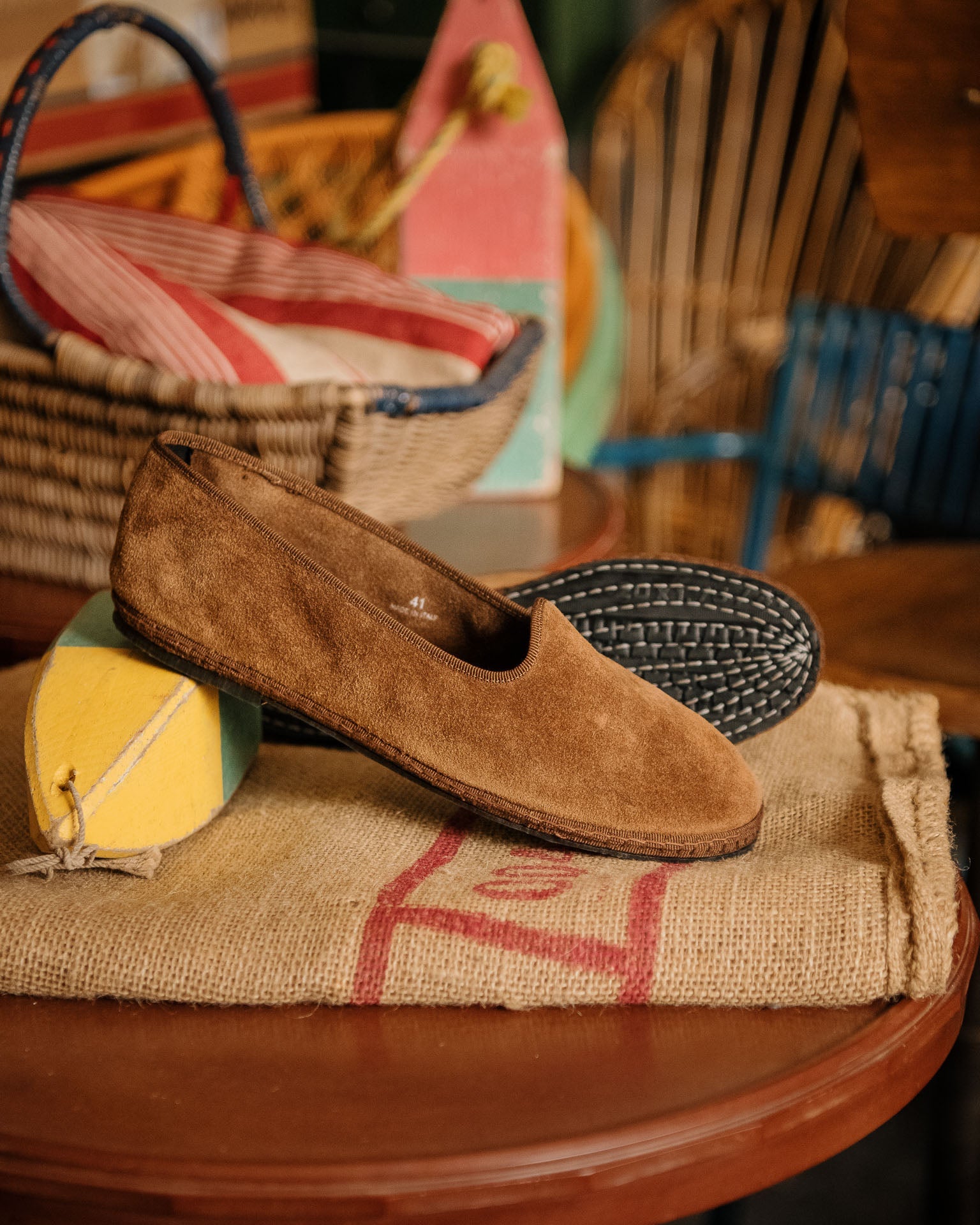 Friulane shoes (or call them Furlanes) are the historical shoes of Friulian tradition: simple lines combined with suede, unlined and with a rubber sole. They were originally homemade by women from villages in the mountains, then they found new life among the Venetian canals: the gondoliers needed a comfortable, stable and delicate shoe on the wood. The hand stitching has remained just as it once was: hands make each shoe a unique piece with their irregular motion. Today these shoes are a symbol of elegance: wear them with striped cream-toned trousers. Relax in the park, memories to be shot with a polaroid.