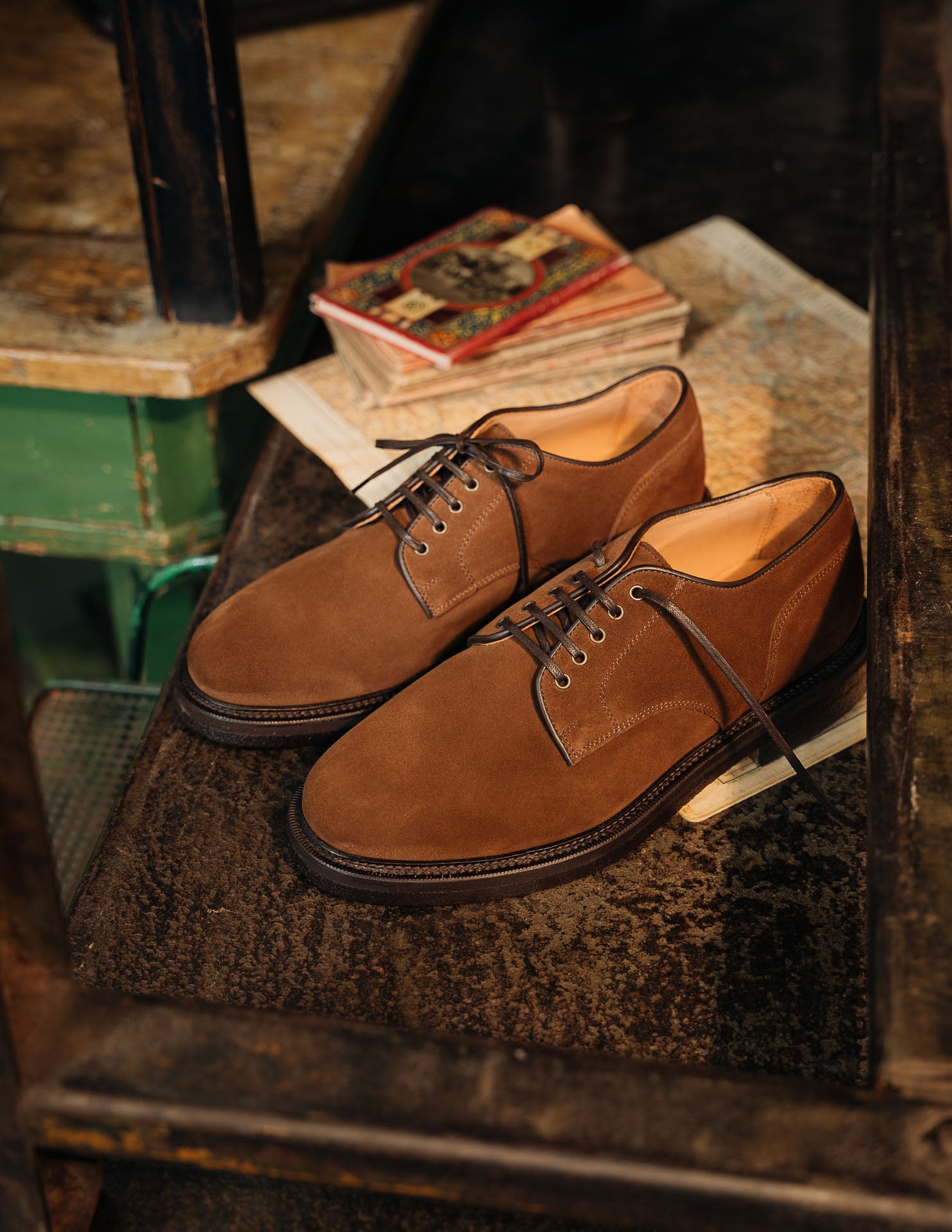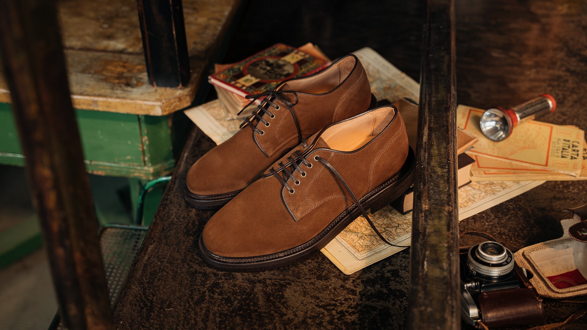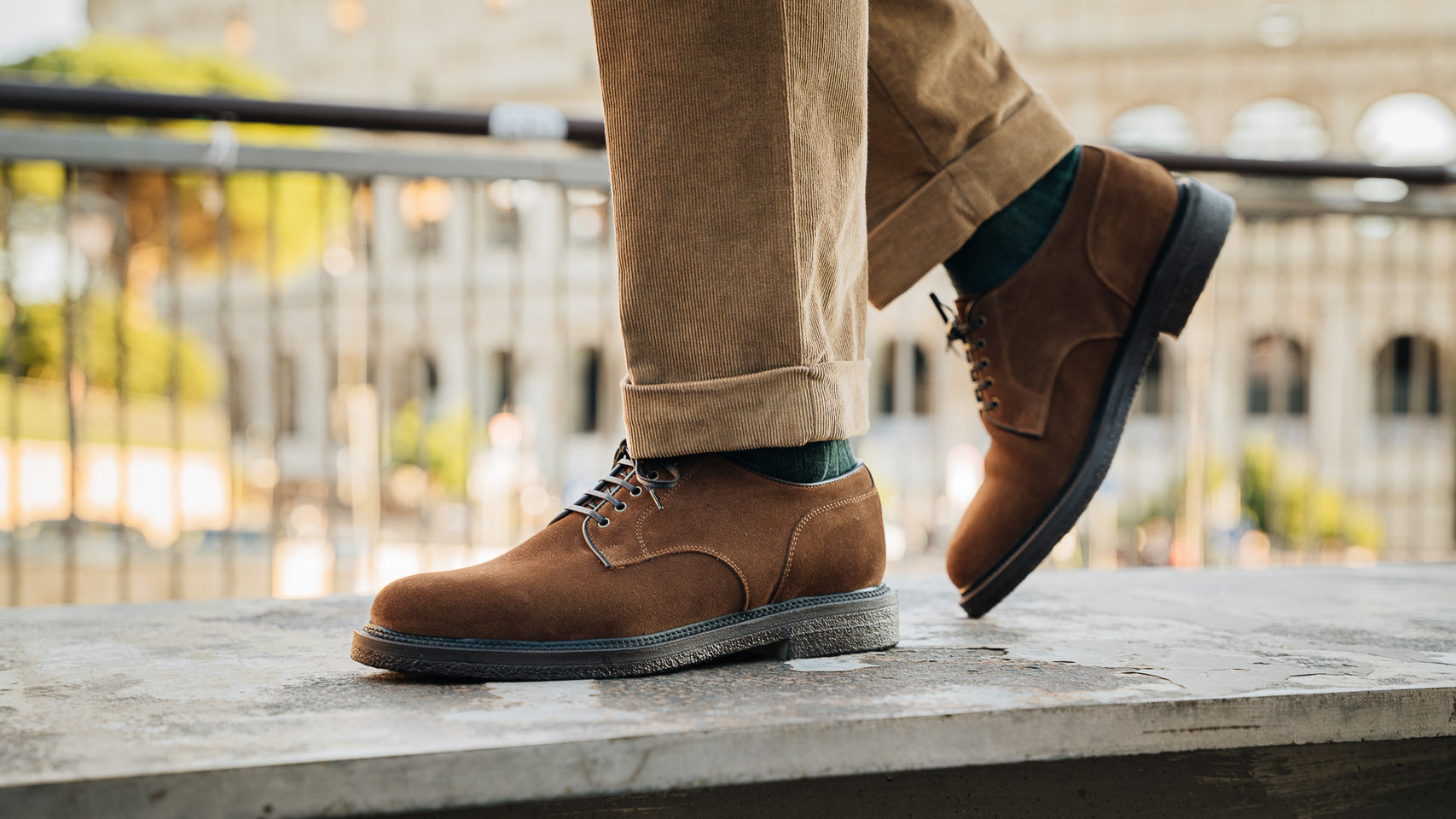 Derbies with para sole, made of suede calfskin, complete a relaxed style, inspired by the bohemian way of life. Inside, the integrated insole follows the shape of your foot to give you comfort at every step; under the insole, the craftsman has inserted another soft layer to insulate the foot and make them even more comfortable. Wear them with velvet trousers with pleats, a woven Velasca belt, a Hawaiian-style shirt and a corduroy cardigan with a shawl collar.