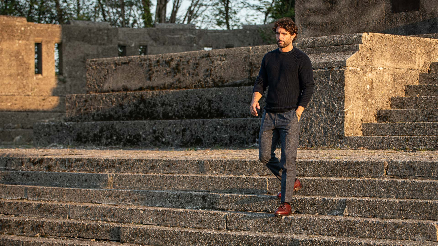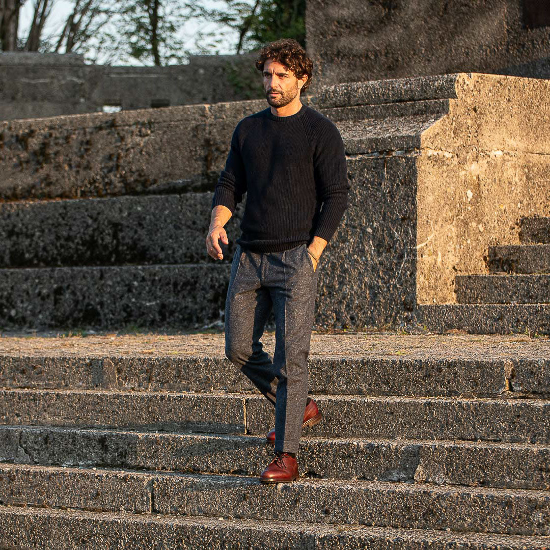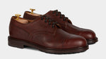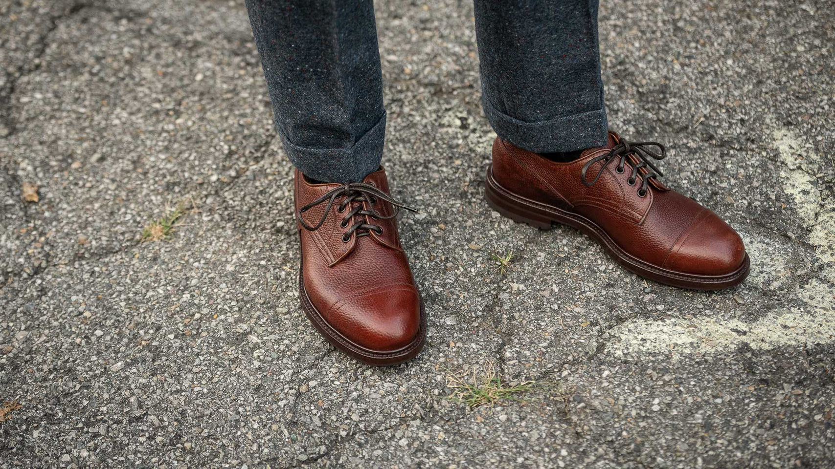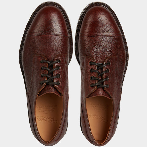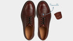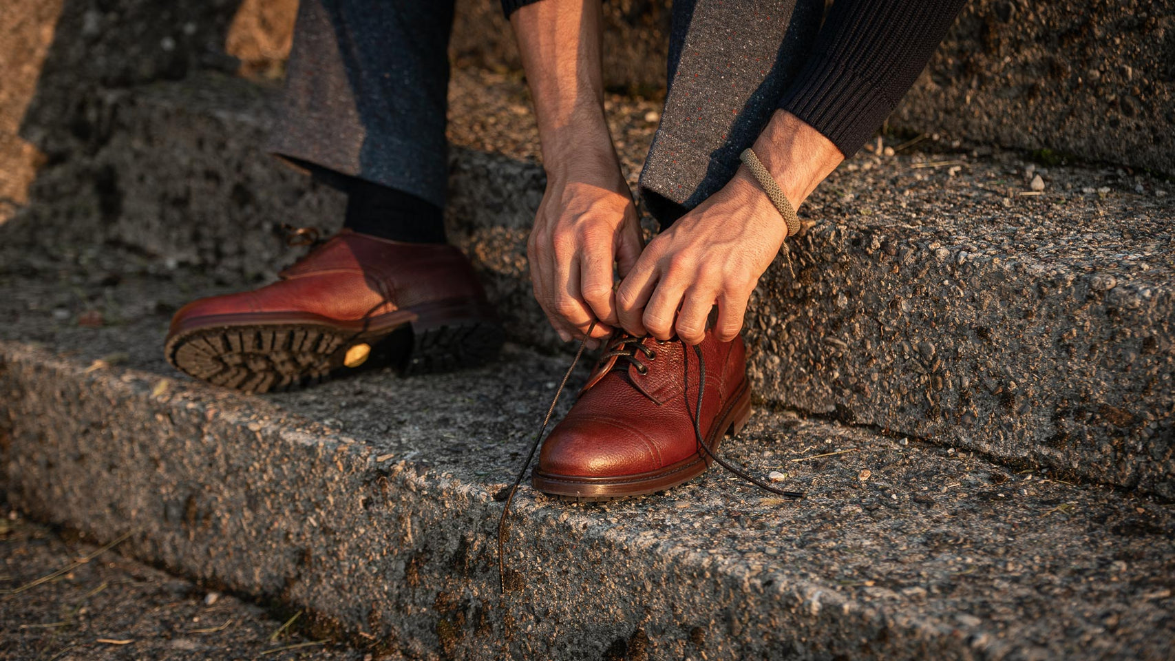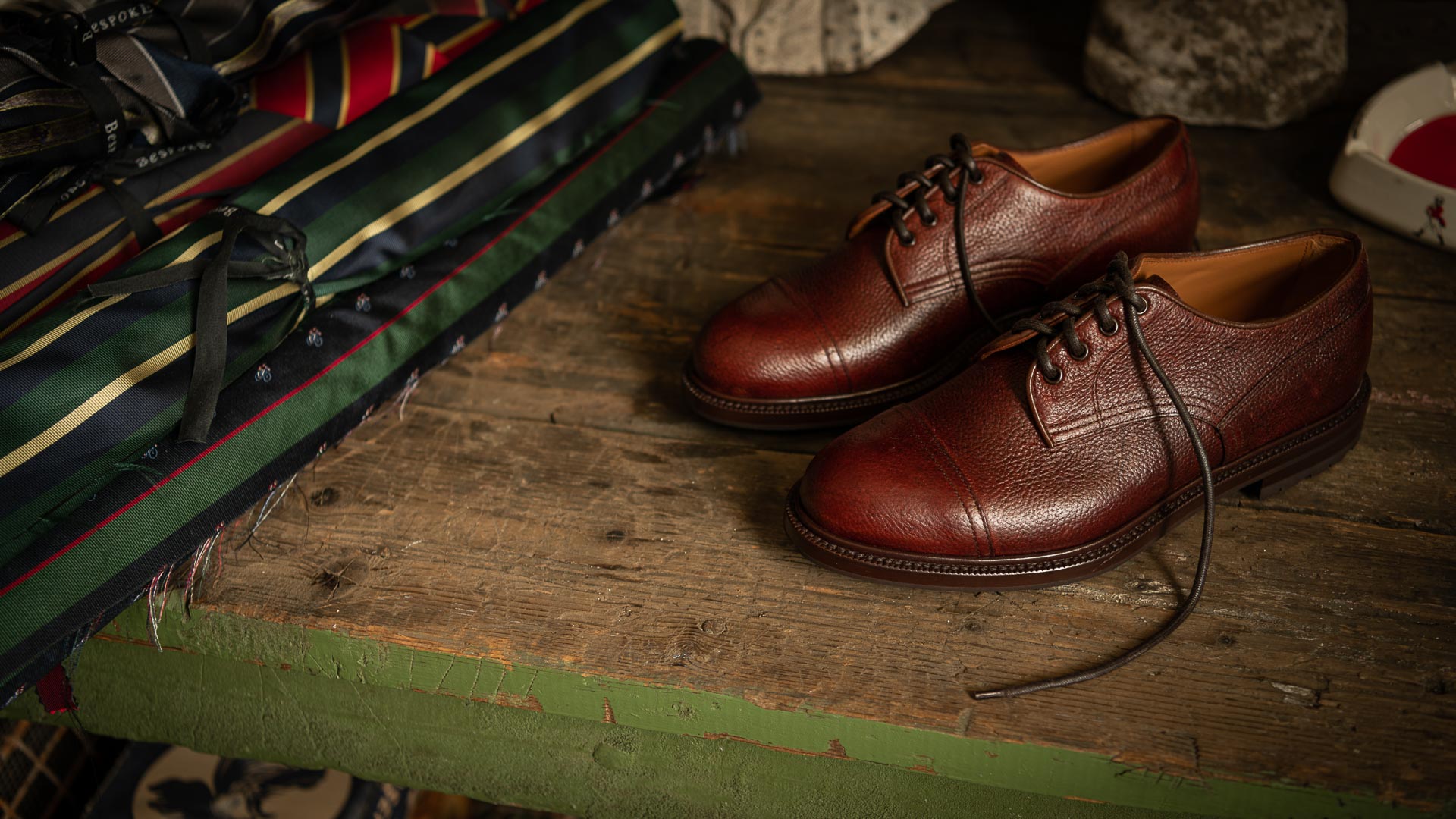 The casual derby with kudu grain leather, exhibiting this wild animal's small imperfections and expressing its country soul. Its elaborate toe box makes it perfect for men who pay attention to details: wear your burgundy derby with a wool trousers, you just know that even rainy days are never a problem with a Vibram sole, just like your weekends in the countryside.