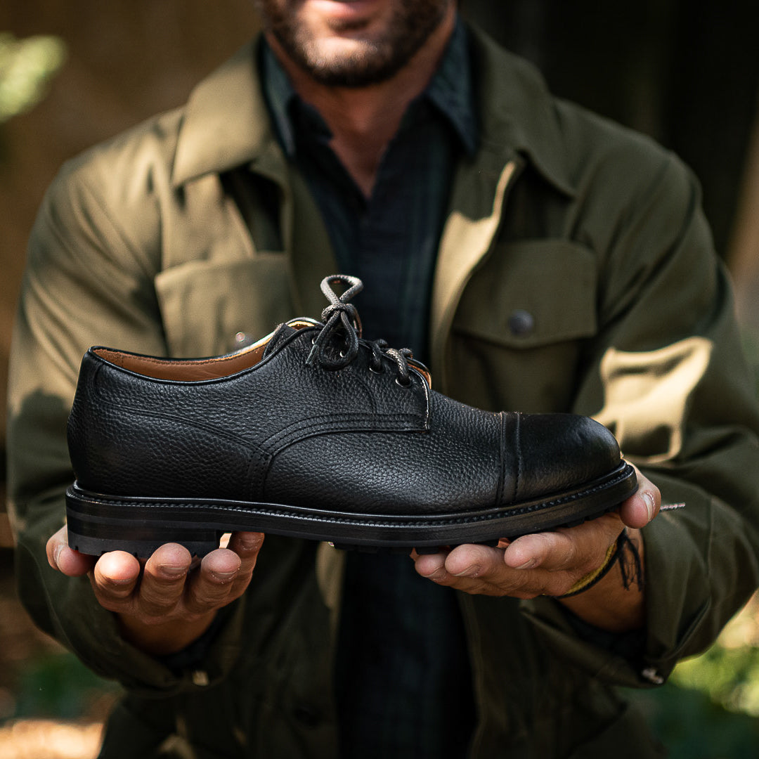 The casual derby with kudu grain leather, exhibiting this wild animal's small imperfections and expressing its country soul. Its elaborate toe makes it perfect for men who pay attention to details: you just know that even rainy days are never a problem with a Vibram sole, just like your weekends in the countryside.