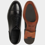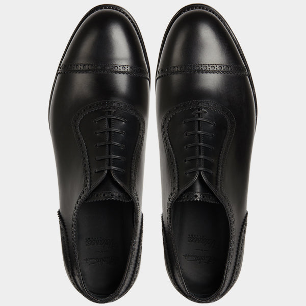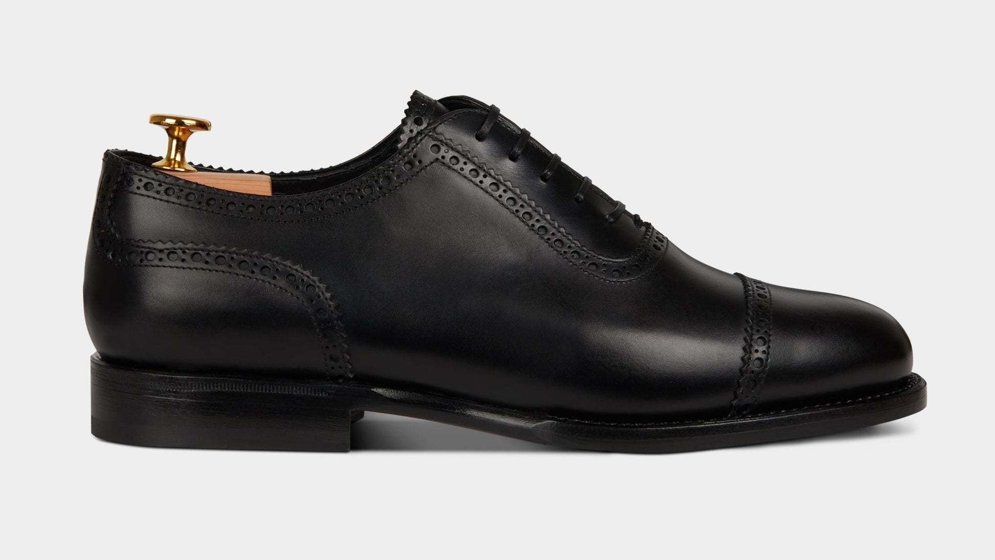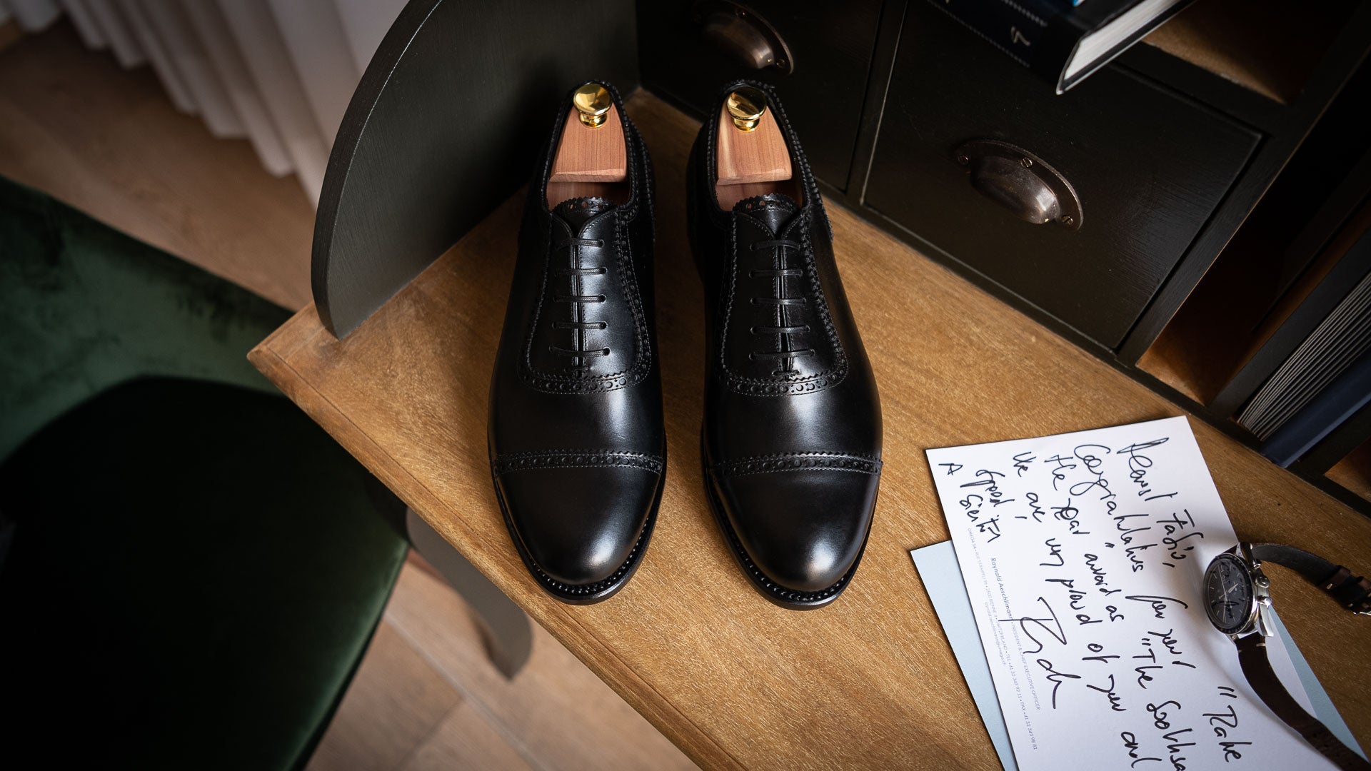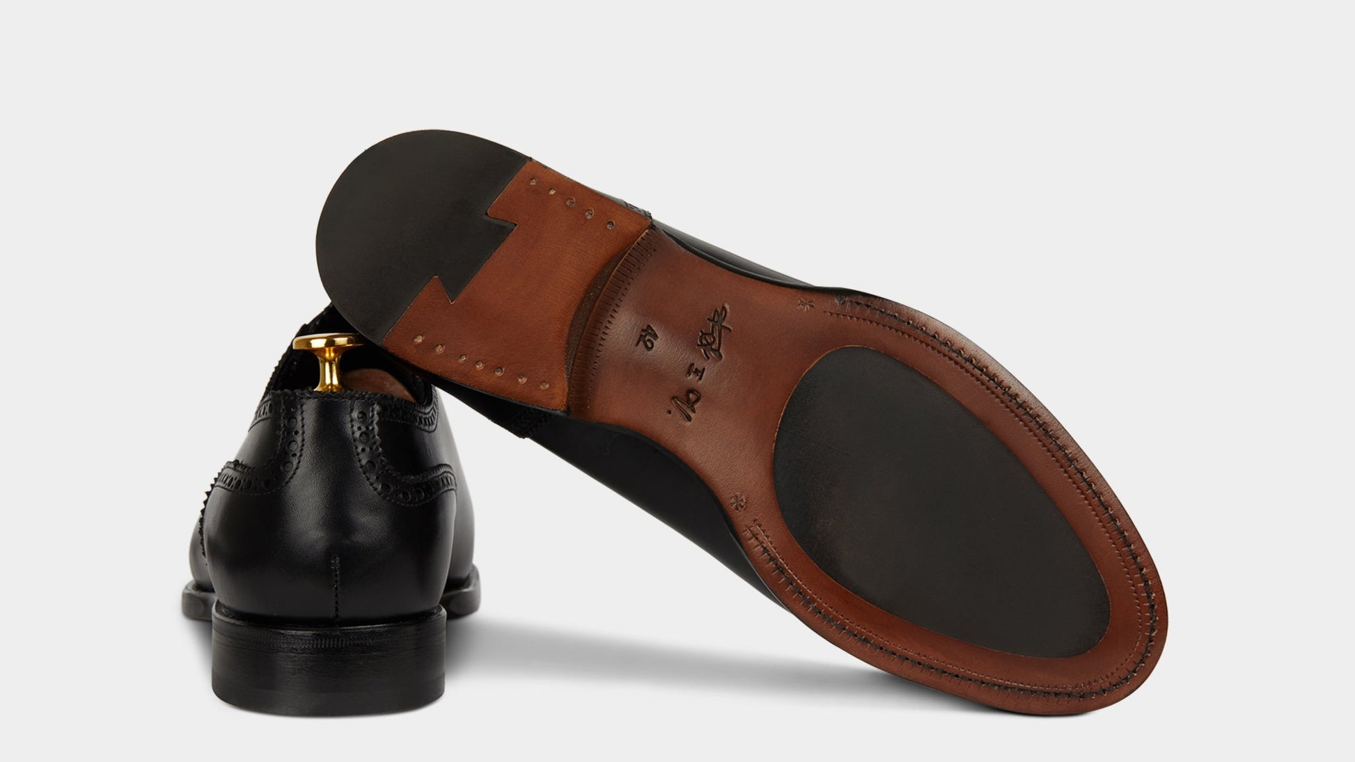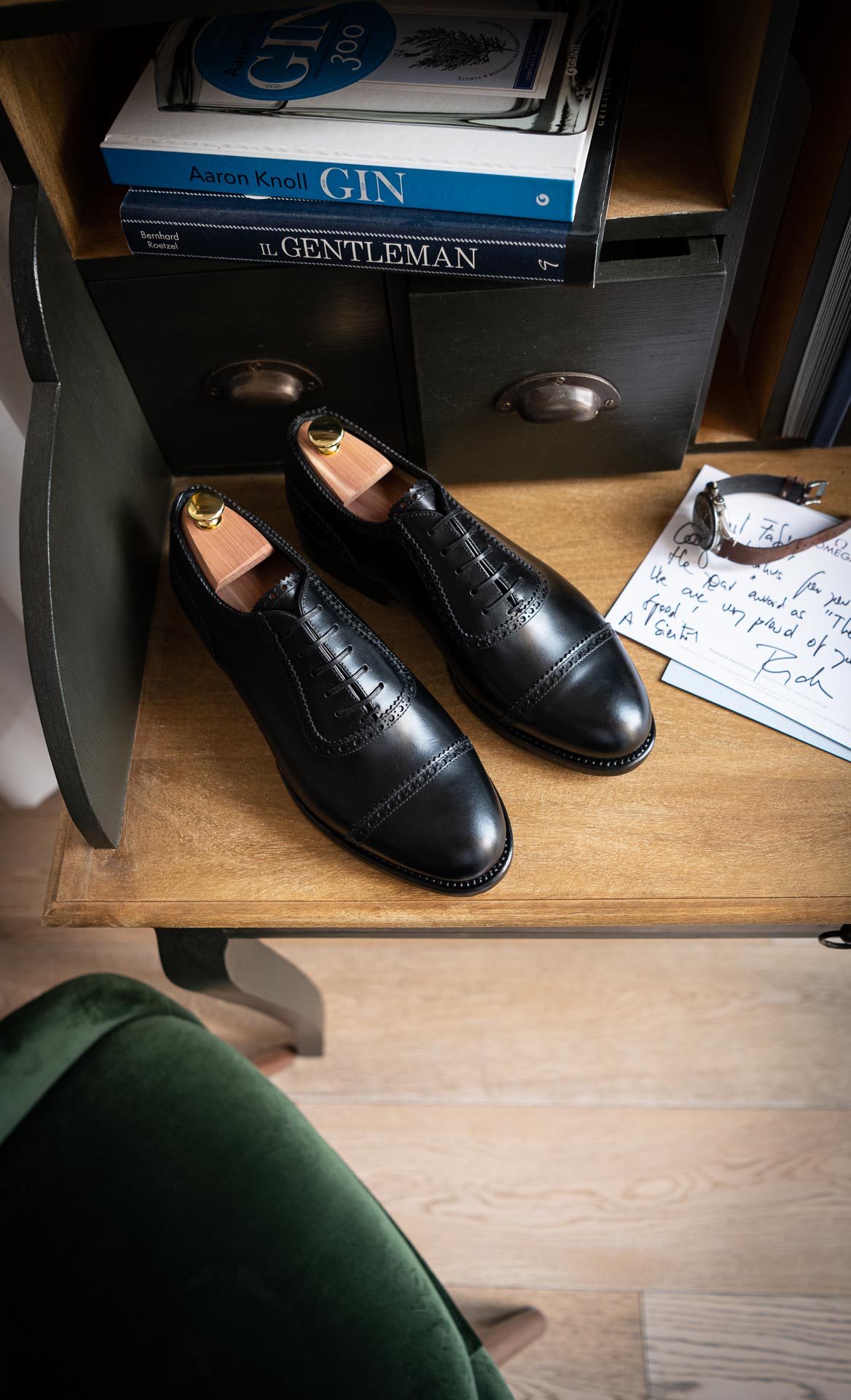 The semi-brogue designed by Fabio Attanasio for Velasca in smooth, fine and resistant calfskin: the older it gets, the better. The leather sole has a small rubber island so, together with the integrated sole, each step will be more comfortable. At a meeting, a light gray elegant suit and a shirt with an Italian collar.