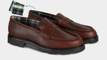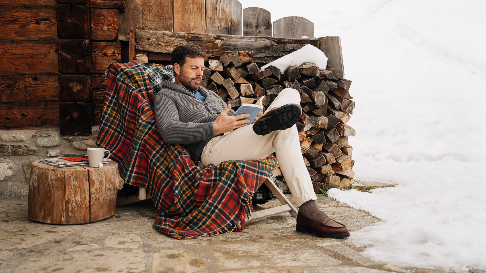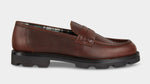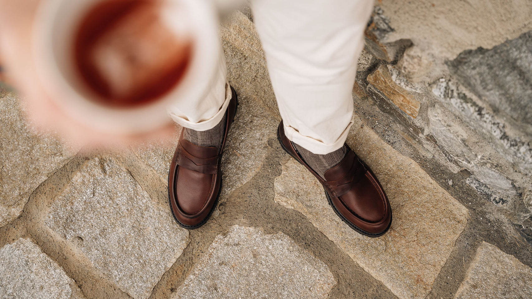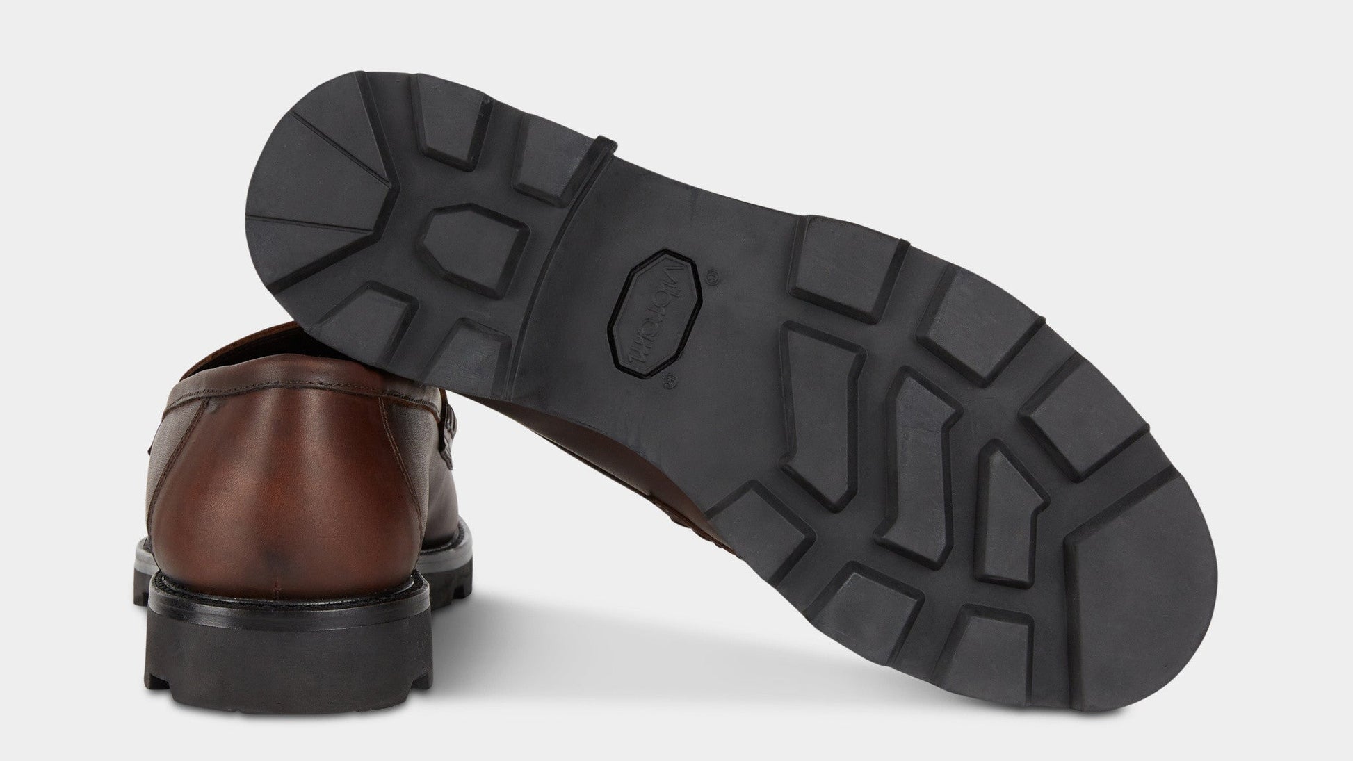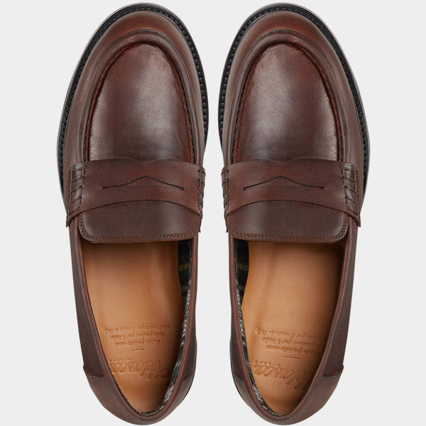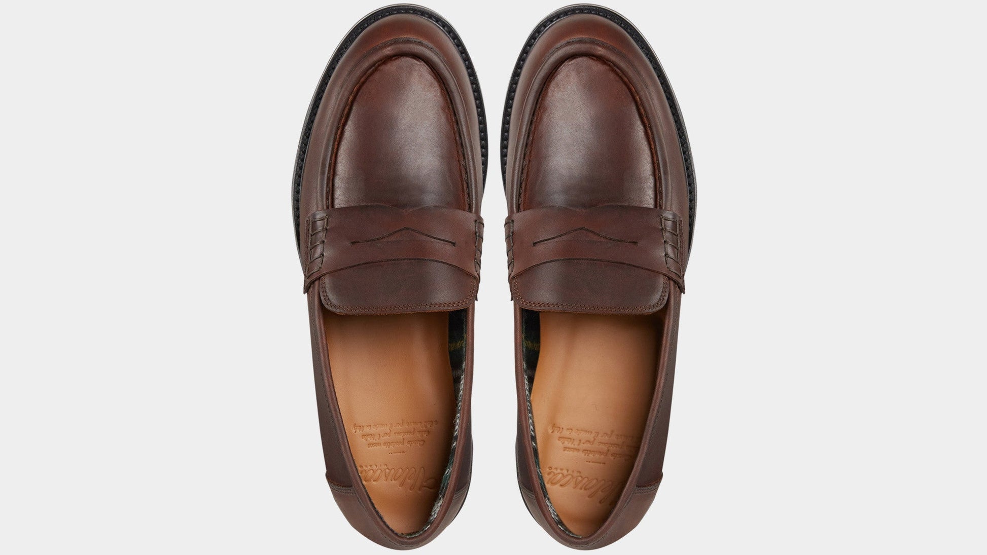 The loafers, in smooth brown leather, pure wool lining and Vibram Carrarmato rubber sole. The lining is embellished with a tartan wool coating, which recalls the elegance of the British countryside and provides warmth and comfort in every step. We paired them with a quilted western with forest green leather shoulder pads, a cream wool jumper and jeans.