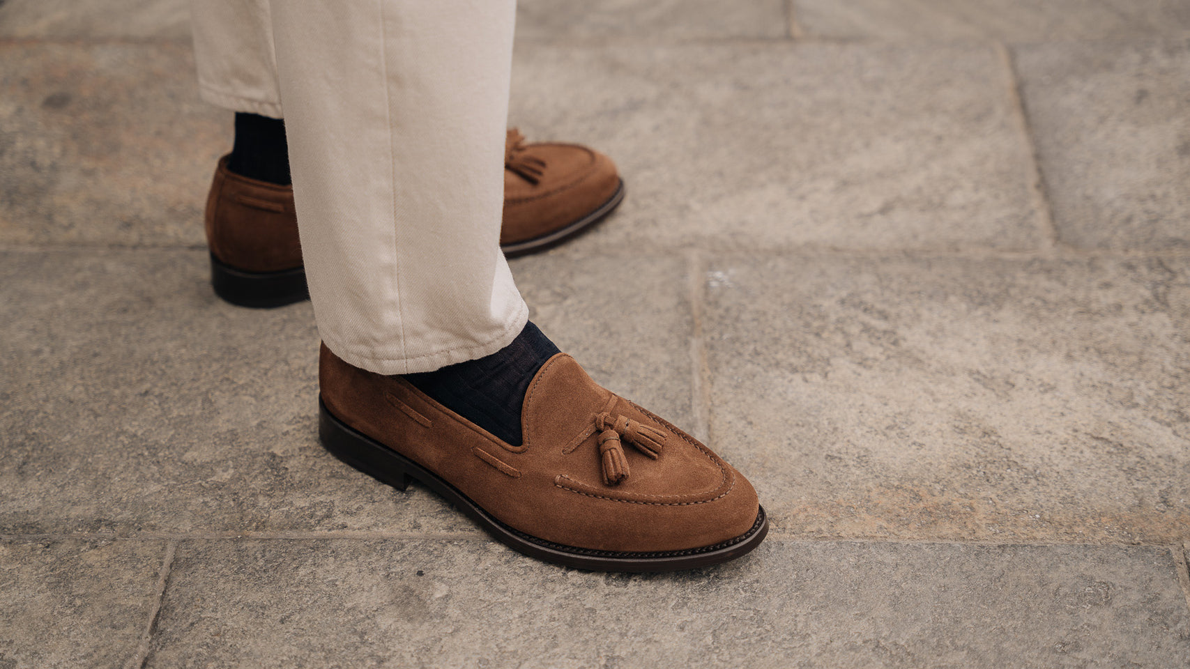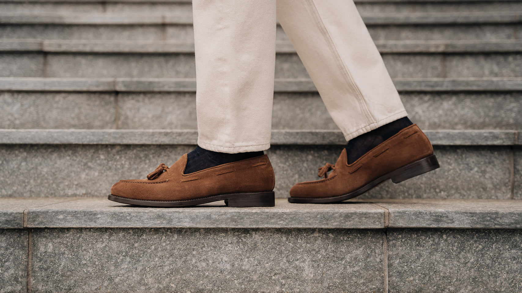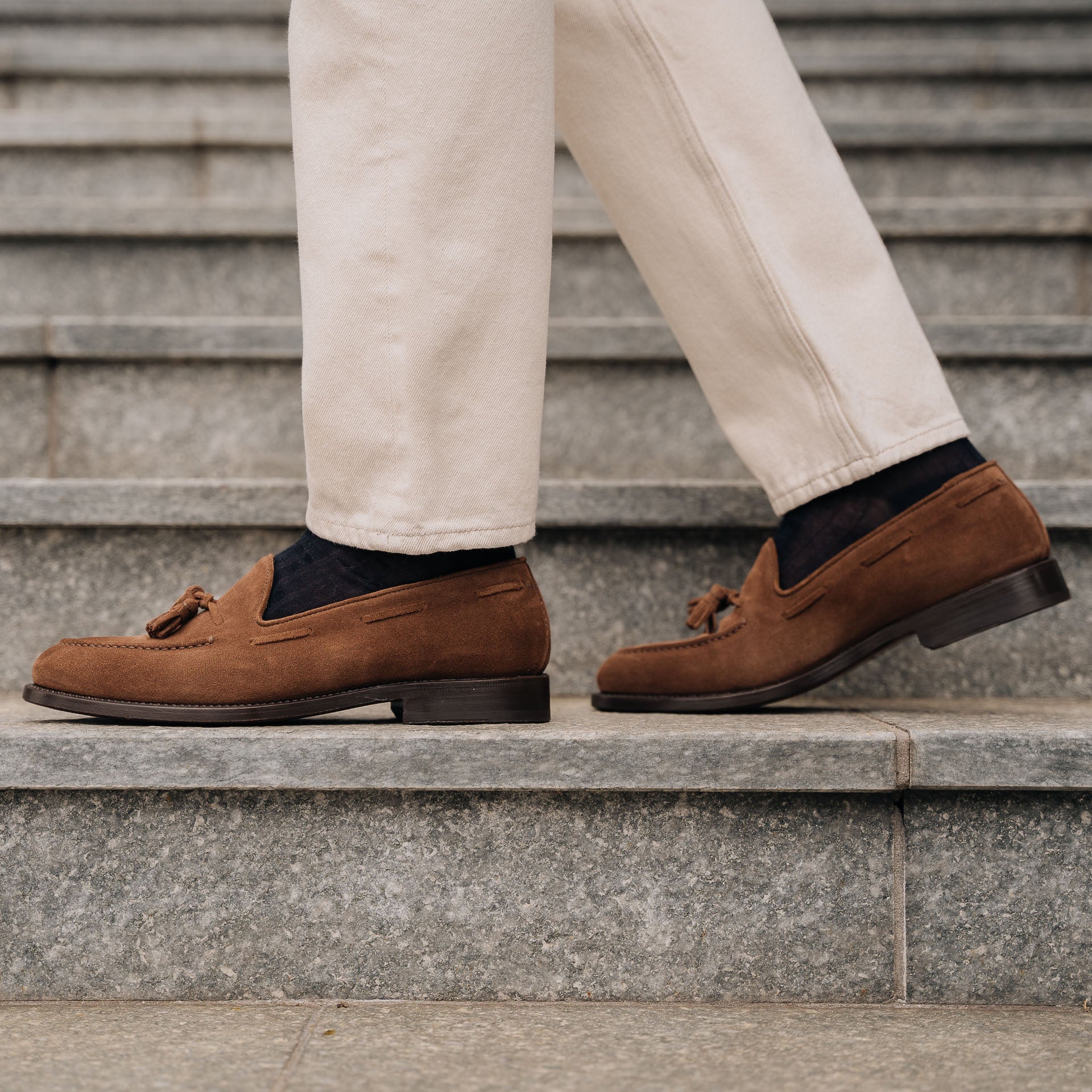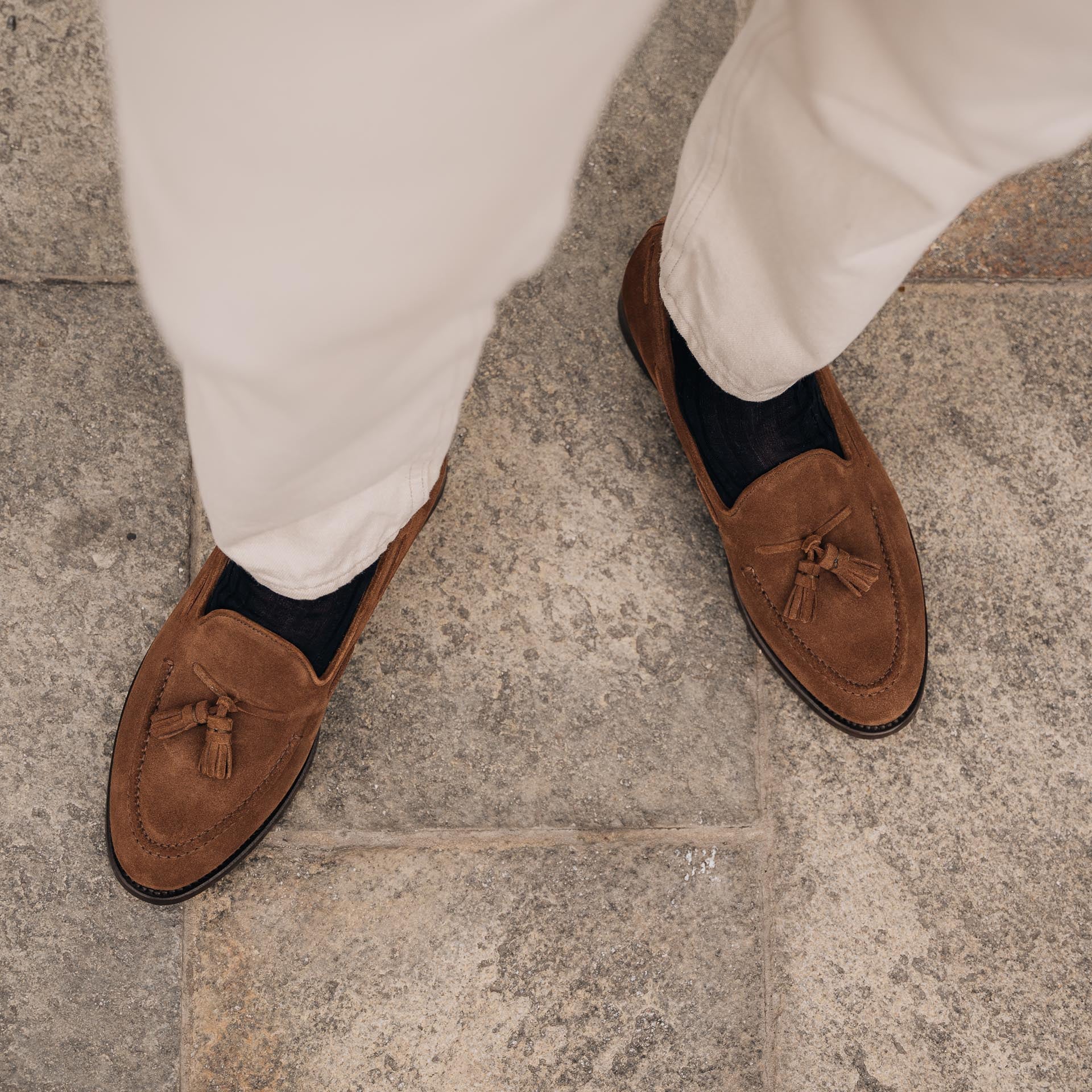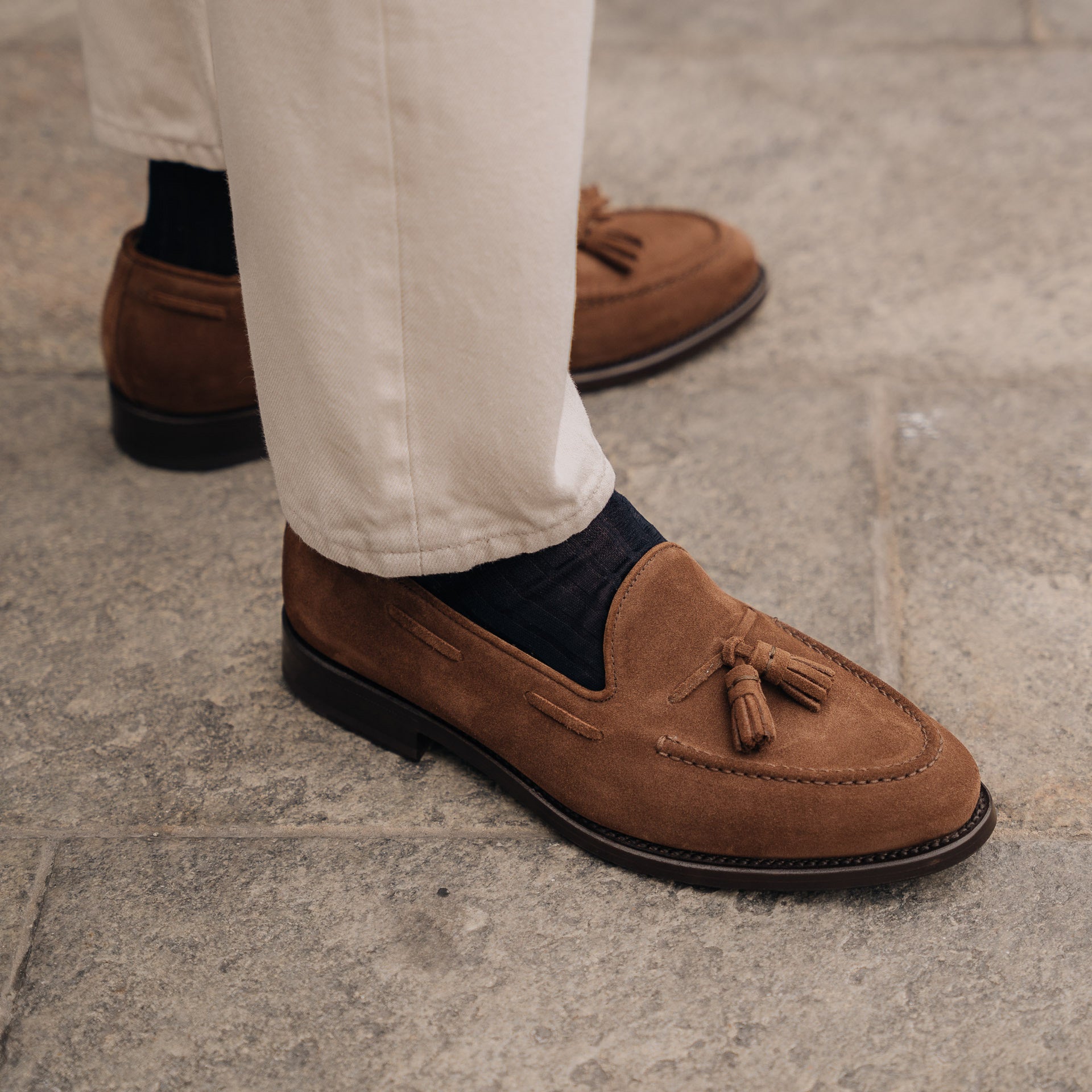 These are the Loafers with tassels, in suede calfskin and leather sole.They could remind you of a dandy style, but who said you have to be a real dandy to wear them? We’re for details: if these Loafers struck you at first sight, they’ll be your best touch of elegance under trousers with pleats, for example. Blake-rapid double stitching makes these shoes solid, destined to last for a long time.