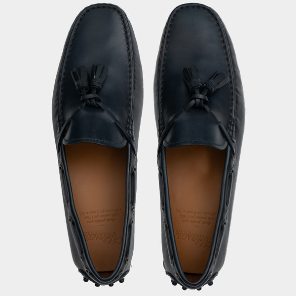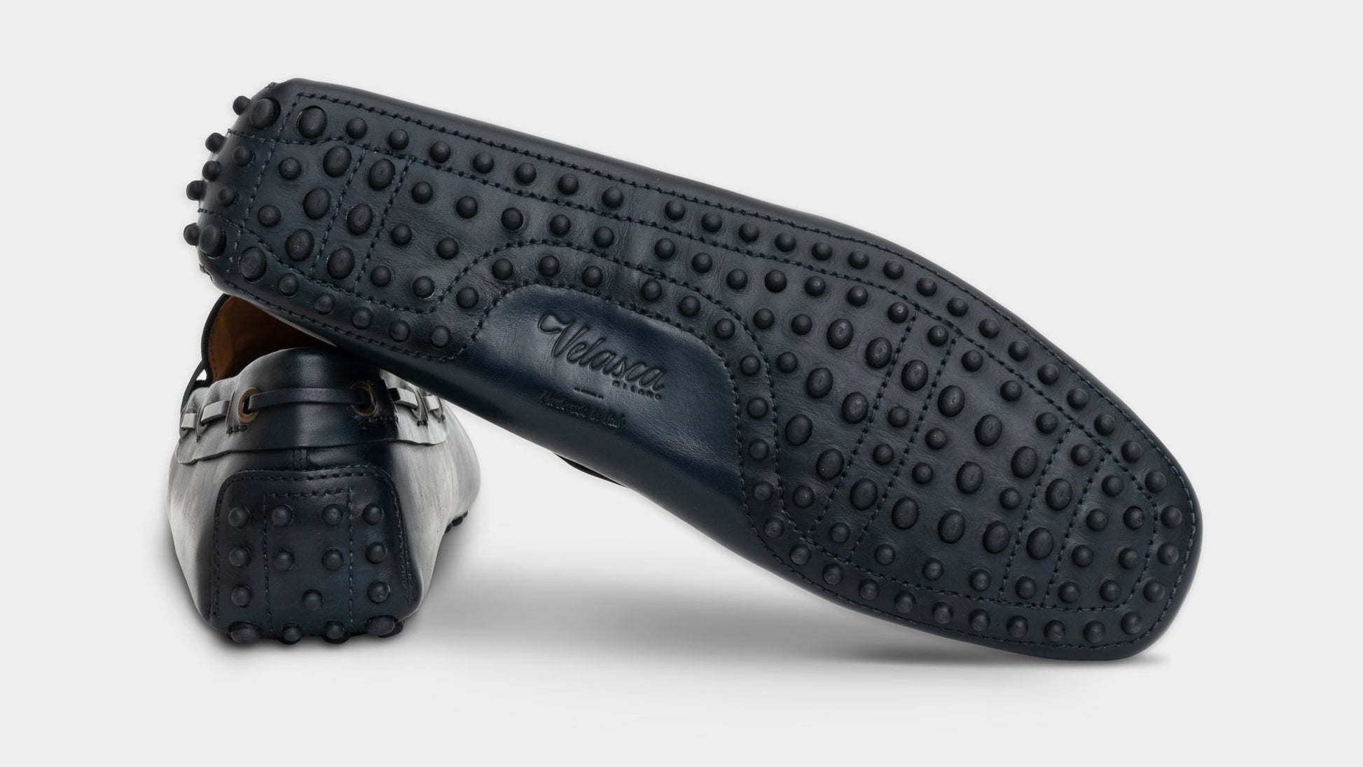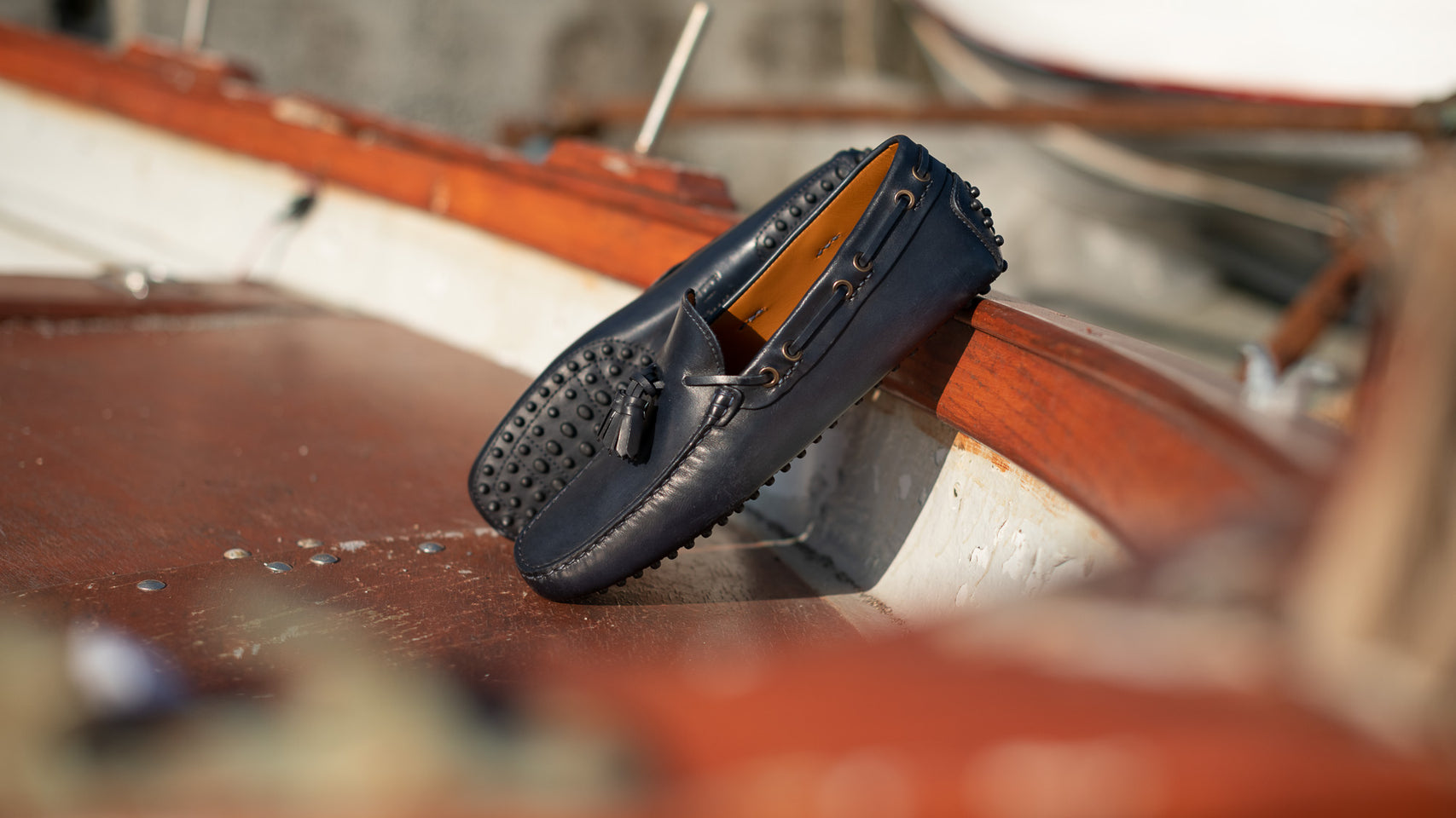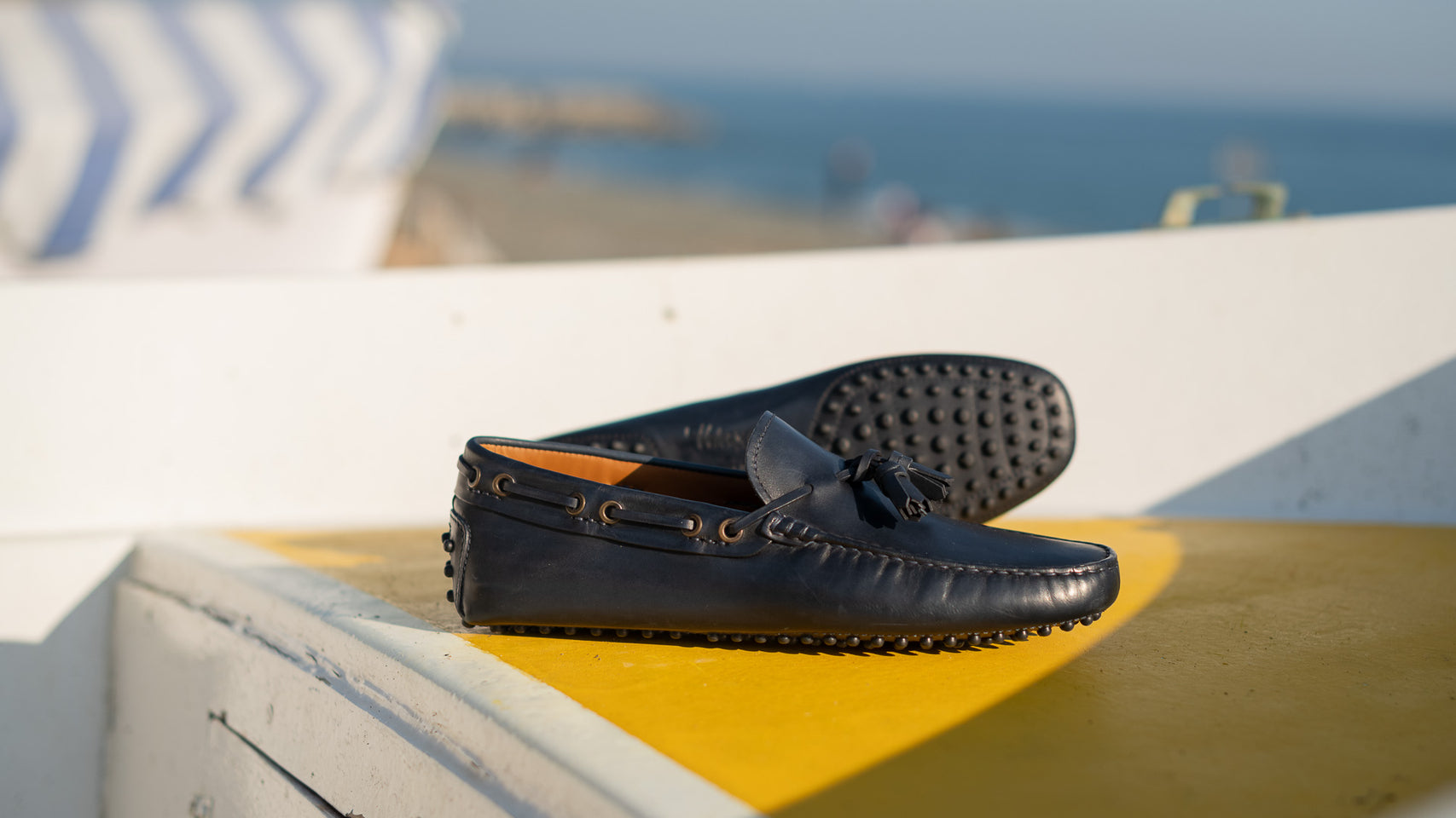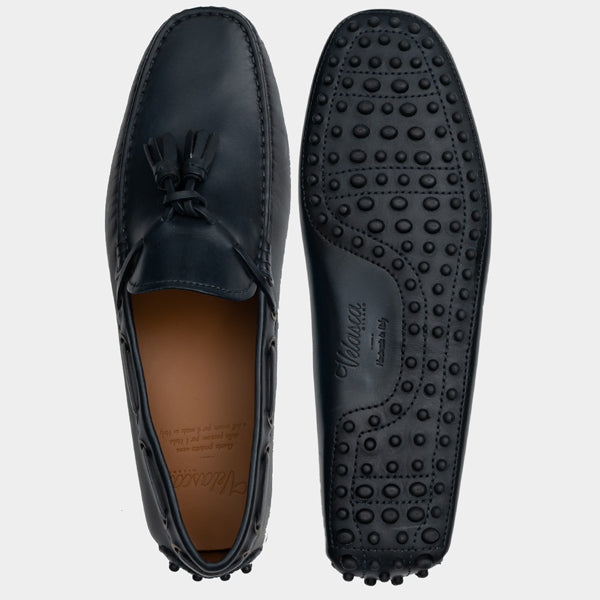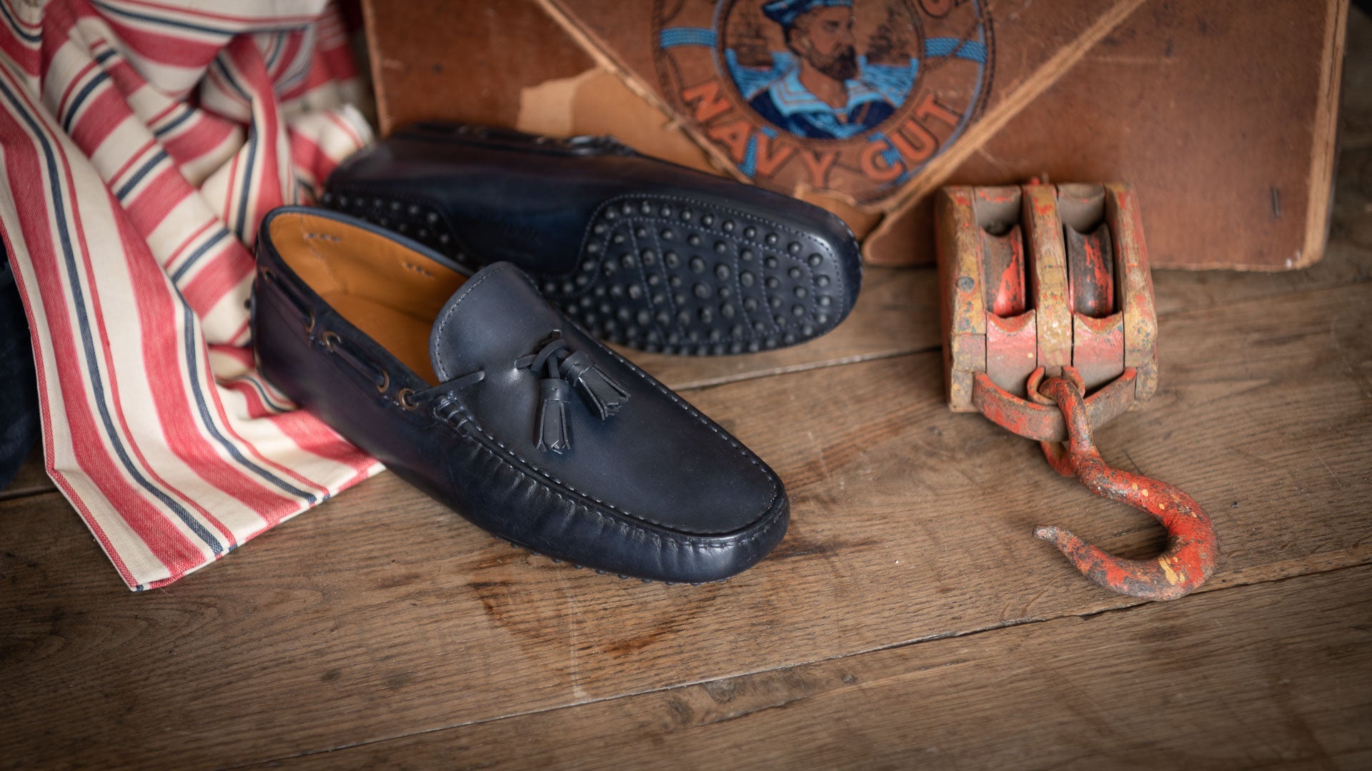They the Moccasin you weren’t ready for: instead of laces, we apply a tassel. With its antiqued leather and studded rubber sole, it’s a blue shoe with a same color tassel to show off on summer social occasions. As with all Moccasins, they’re handmade with the prestigious tubular technique to give you softness and flexibility. They’re as comfy as slippers.