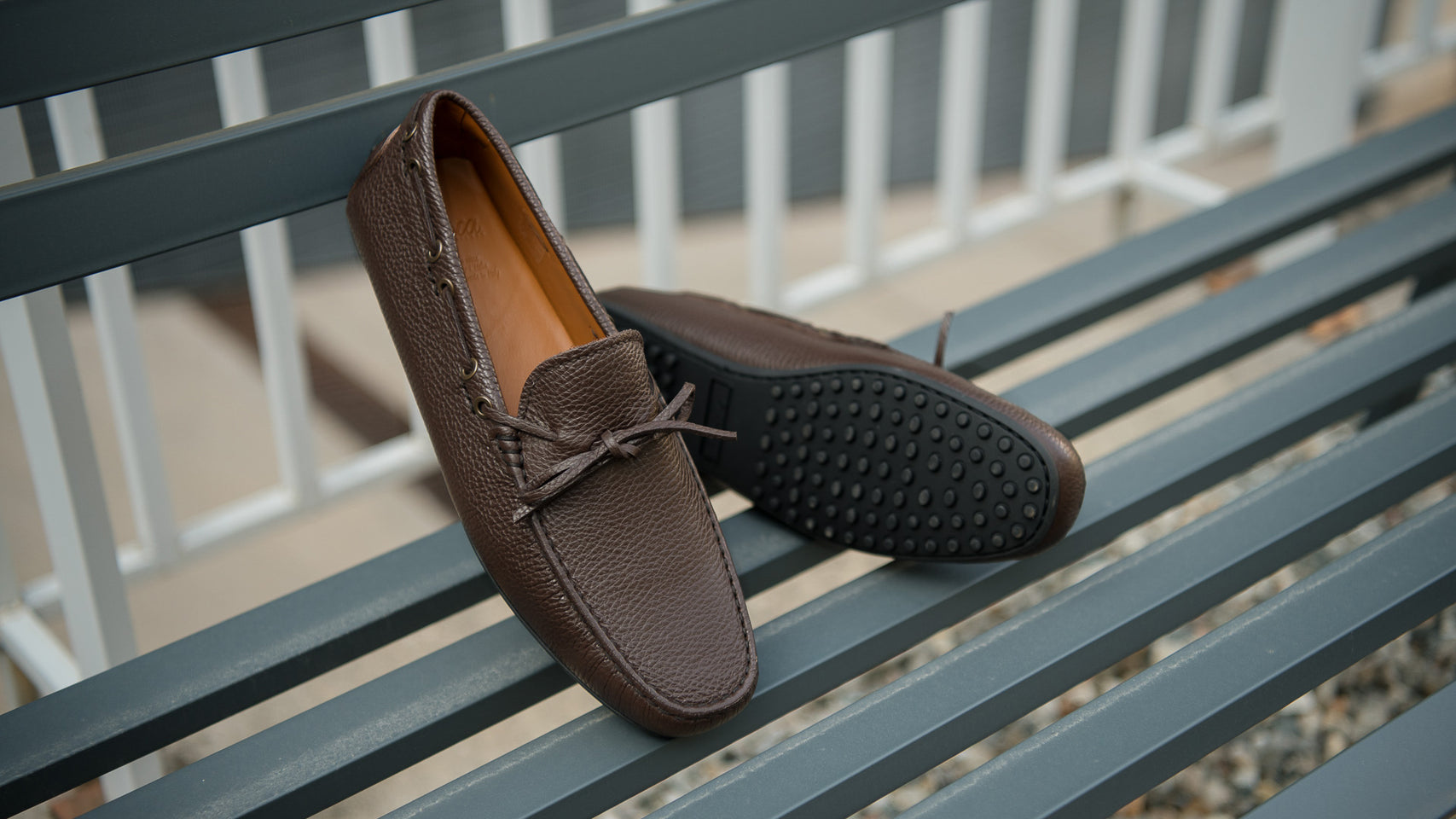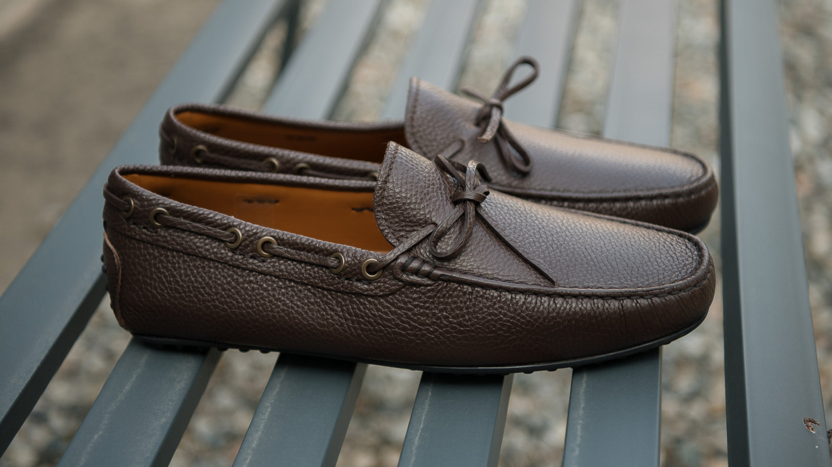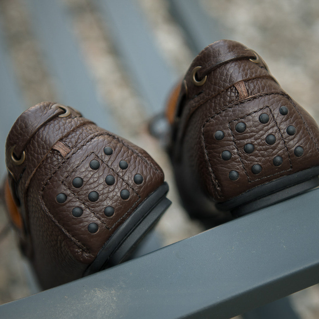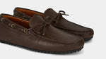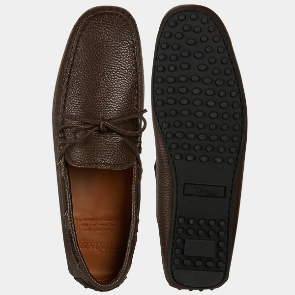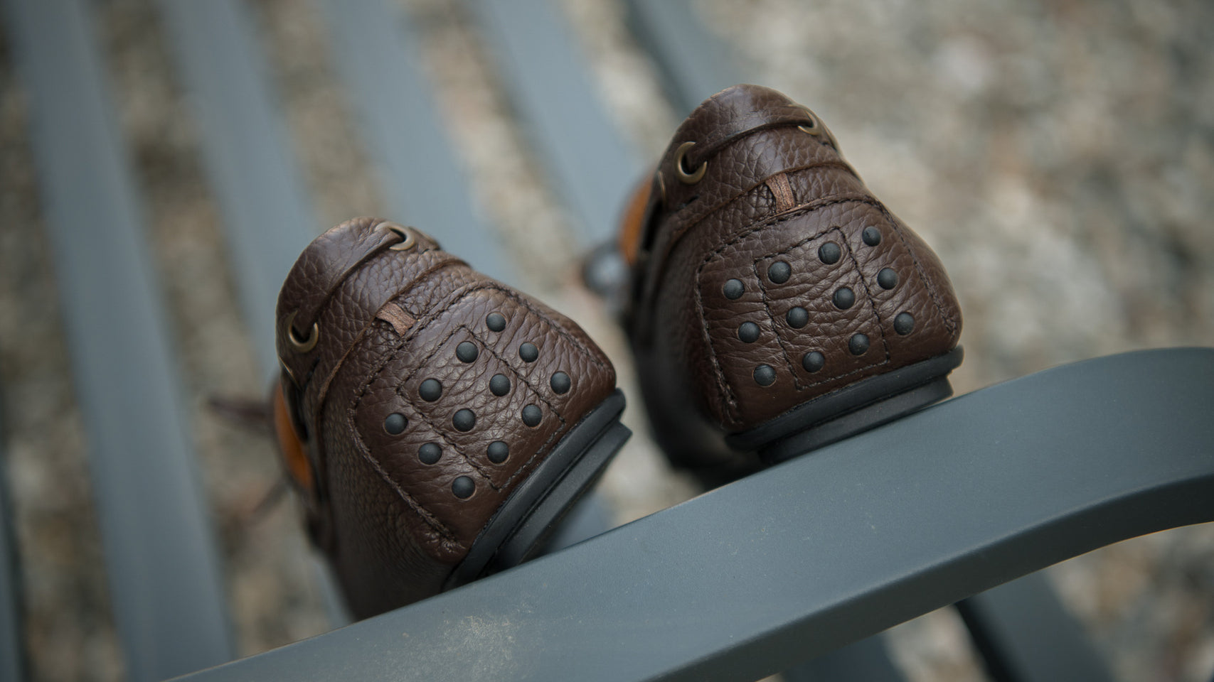 There aren't your typical studded-sole Moccasins with laces. Their rubber soles run the whole length of the shoe, making them somewhat solid. We gave them a new soul, but their lines remain iconic: the laces wrap around the foot and fall casually onto the upper. In full grain hammered-effect calfskin, you can wear them with beige trousers and a dark long-sleeved shirt, all in cool linen fabric. Always without socks. Perfect for weekends out of town when days are ever warmer.