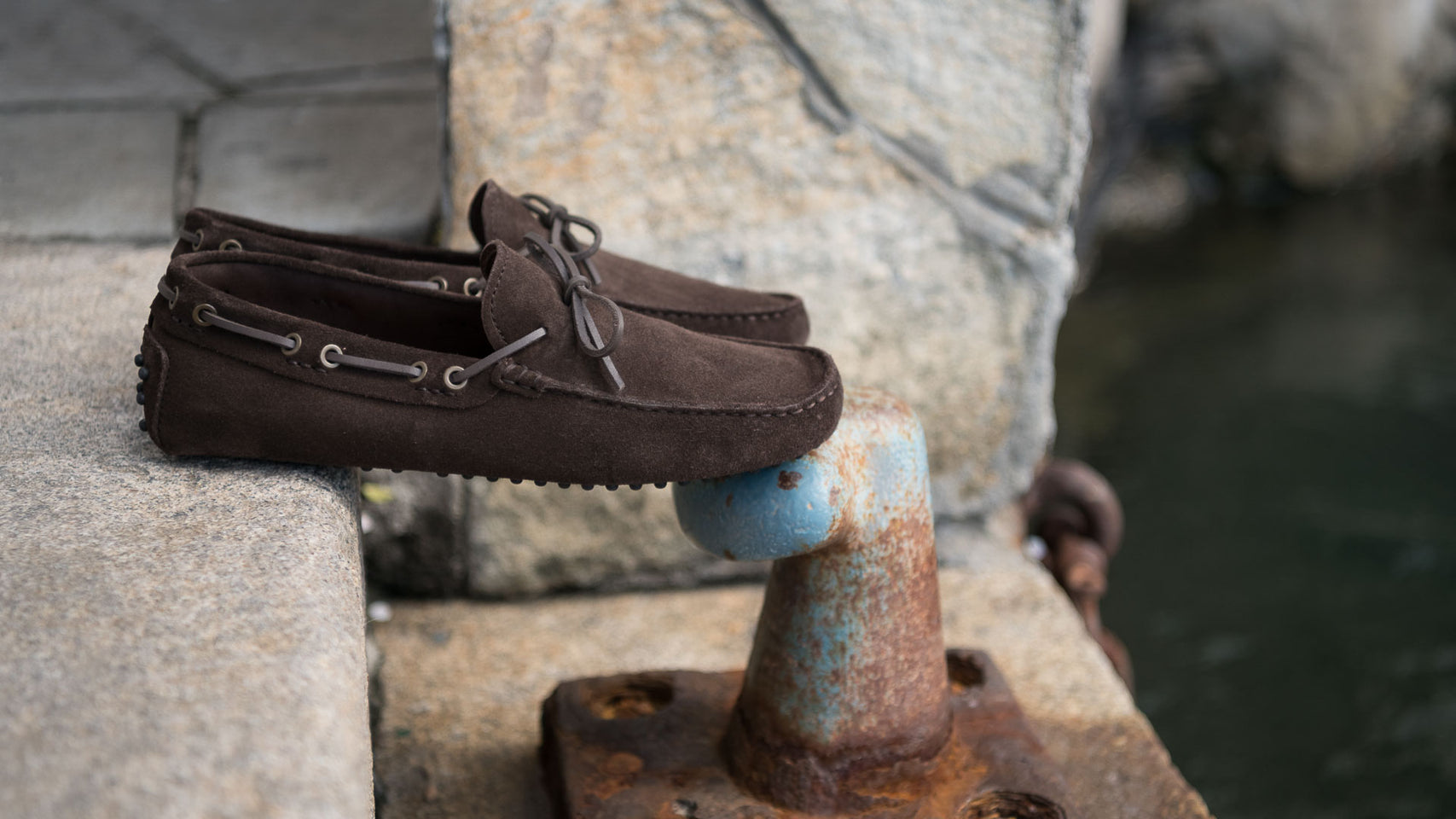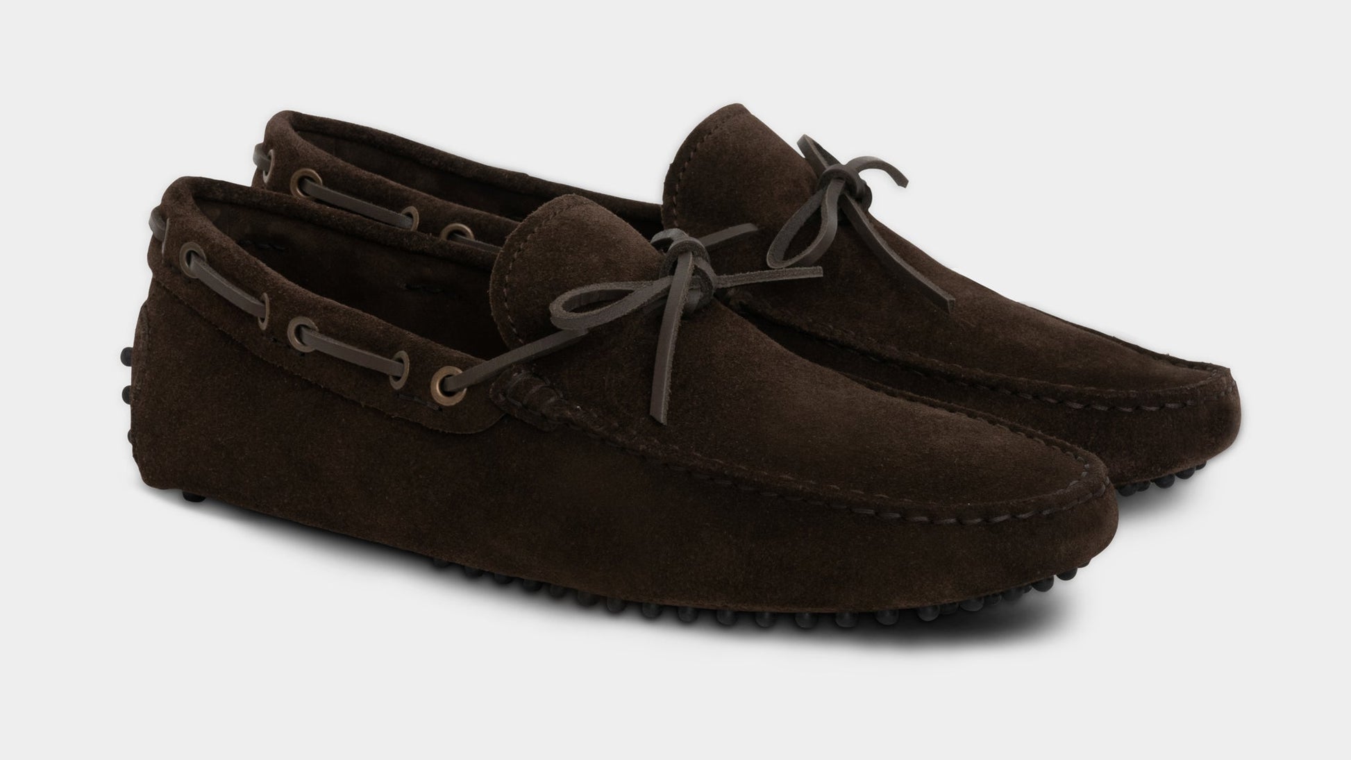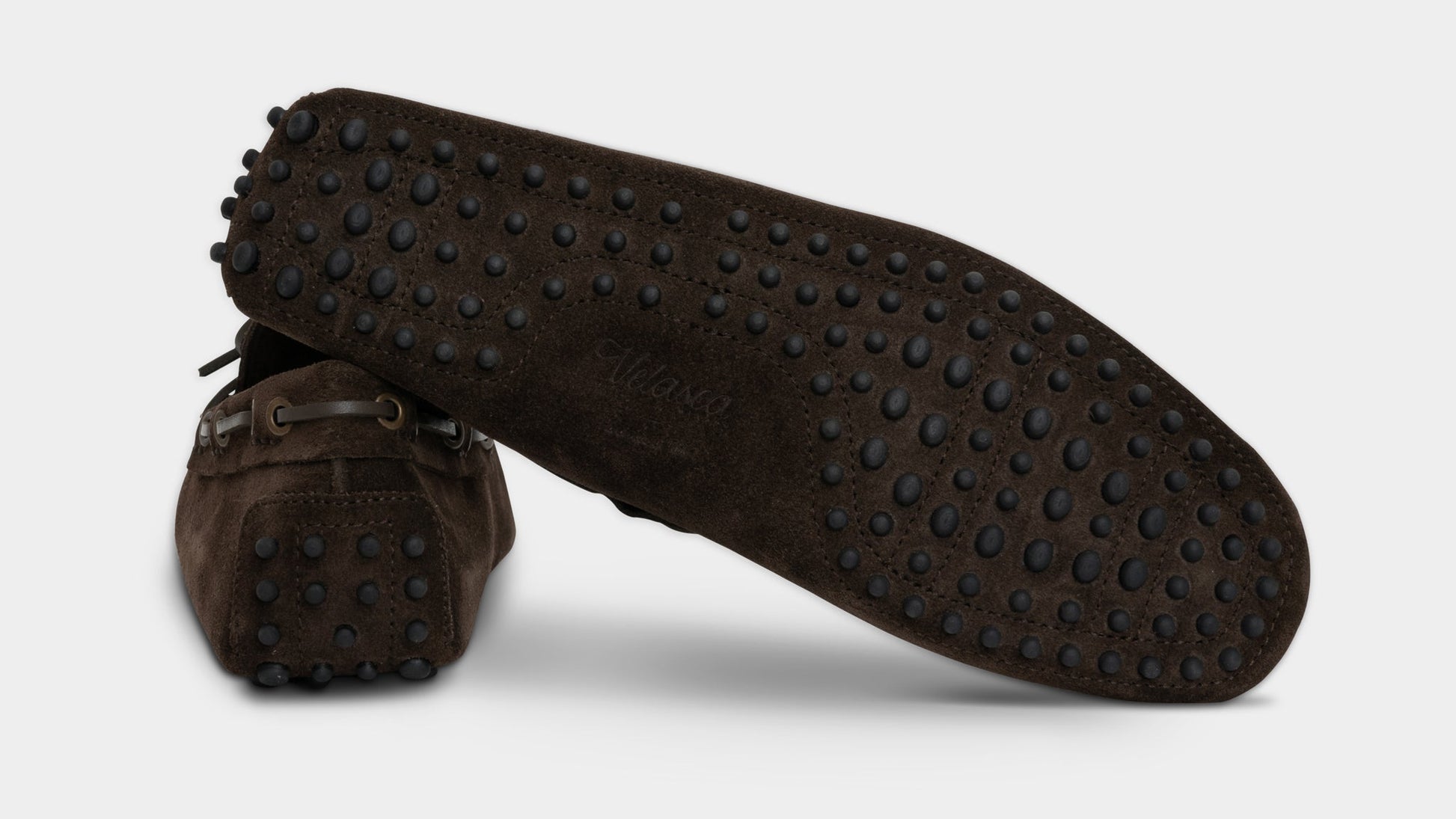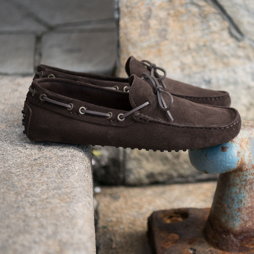 It's the the most versatile summer Moccasin in our collection. With its waterproof suede leather and studded rubber sole, it’s a dark brown shoe with same color laces designed for taking it easy on weekends, or casually strolling through the city in the evening. These Moccasins are made using the tubular technique to give you all the softness and flexibility a man needs.