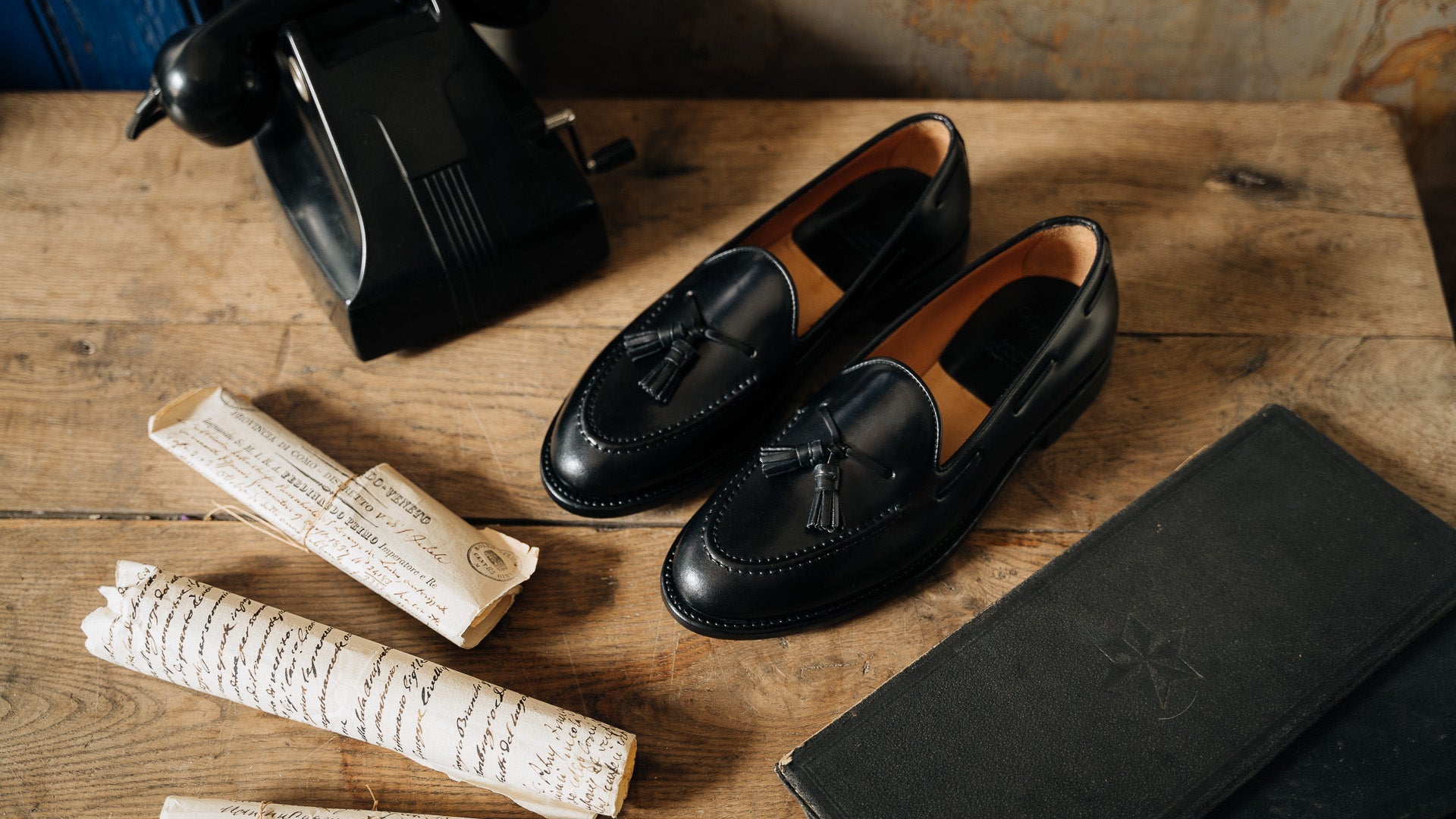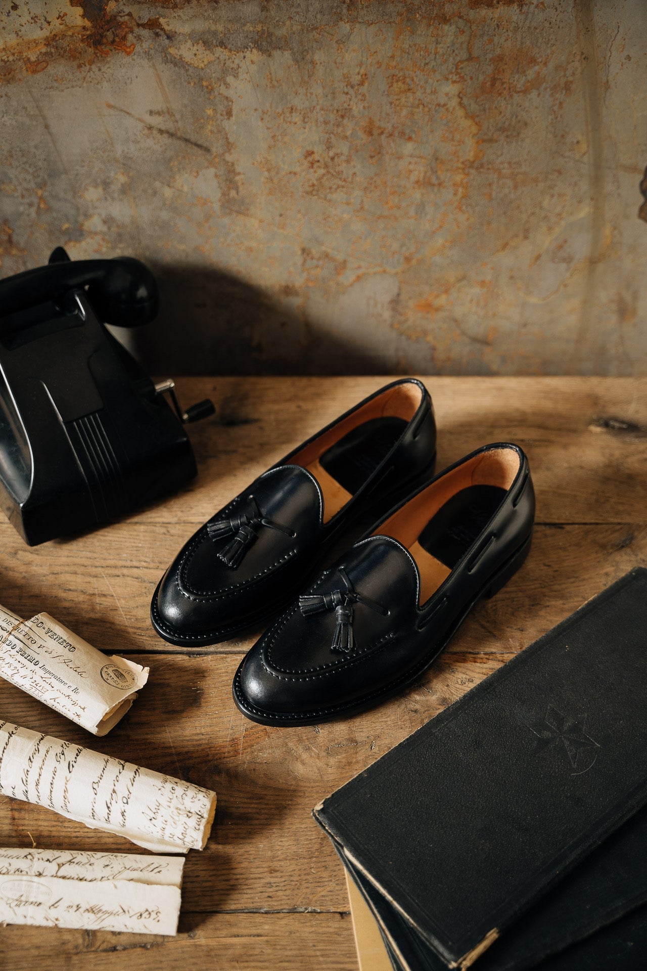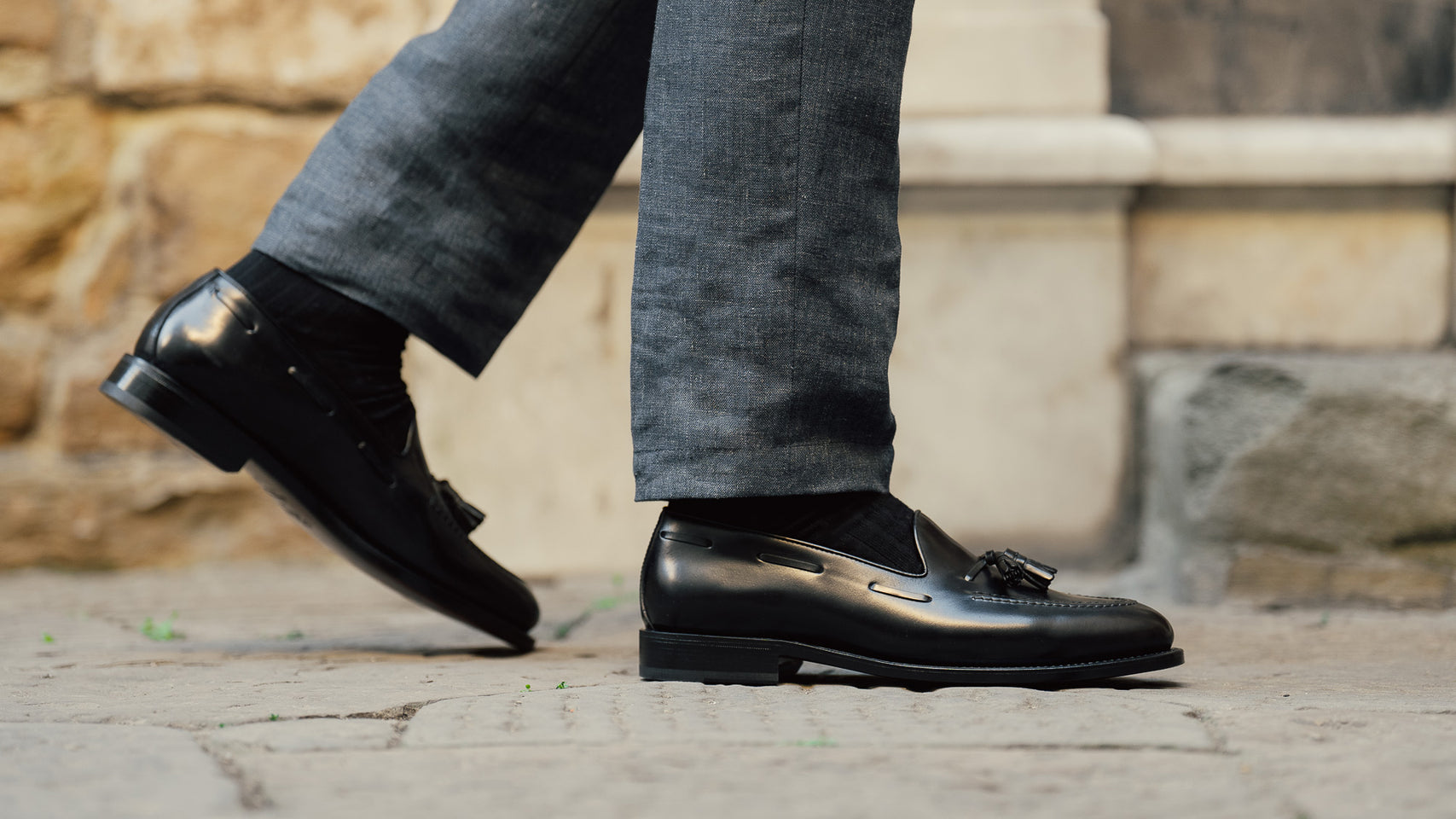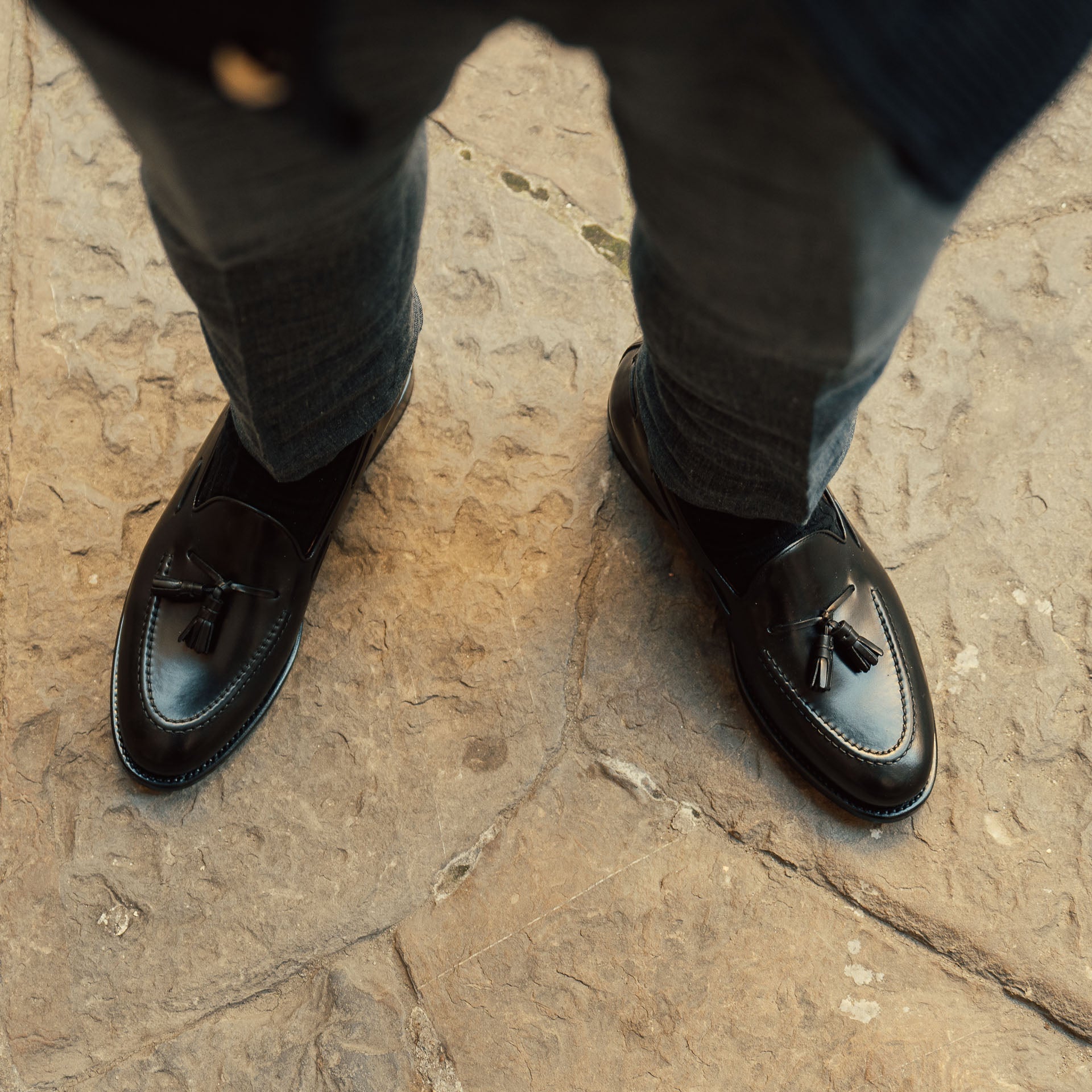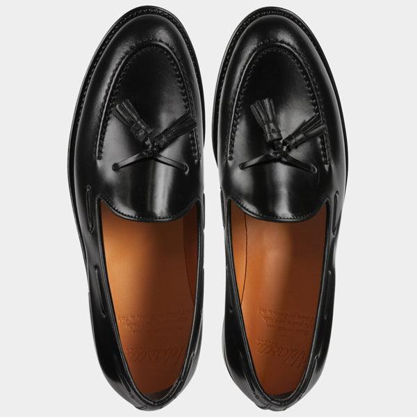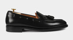 Artisanal Tassel Loafers in black cordovan with a waxed leather sole, to be worn all year round, both for formal occasions and with more casual outfits. Completed using the Goodyear method, they are made to be long-lasting and durable. The leather is among the finest, requiring slow and precise working techniques, capable of enhancing the raw material. They are made with you in mind; a connoisseur who wants footwear that’s timeless - in all senses of the word.