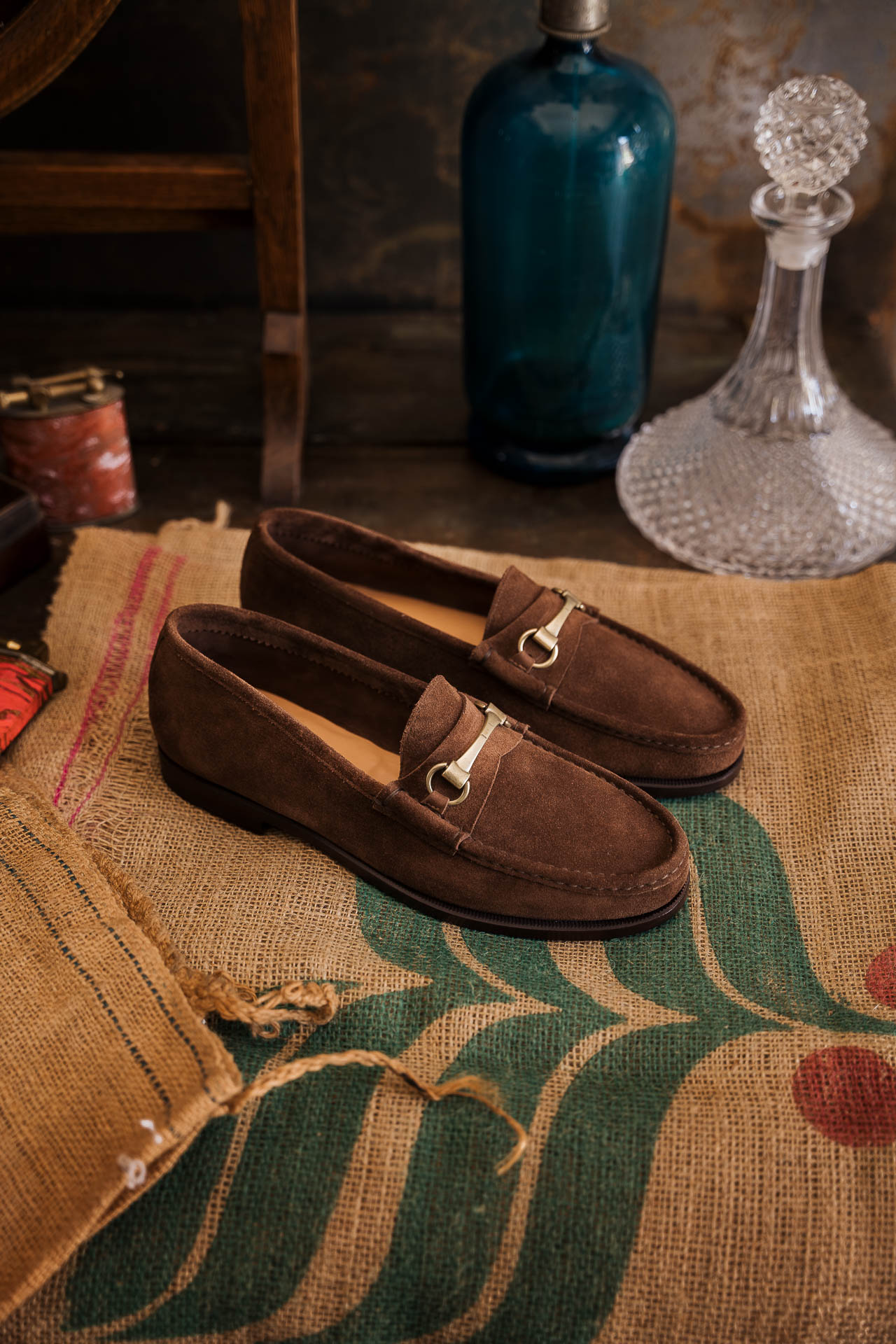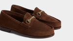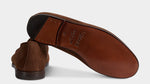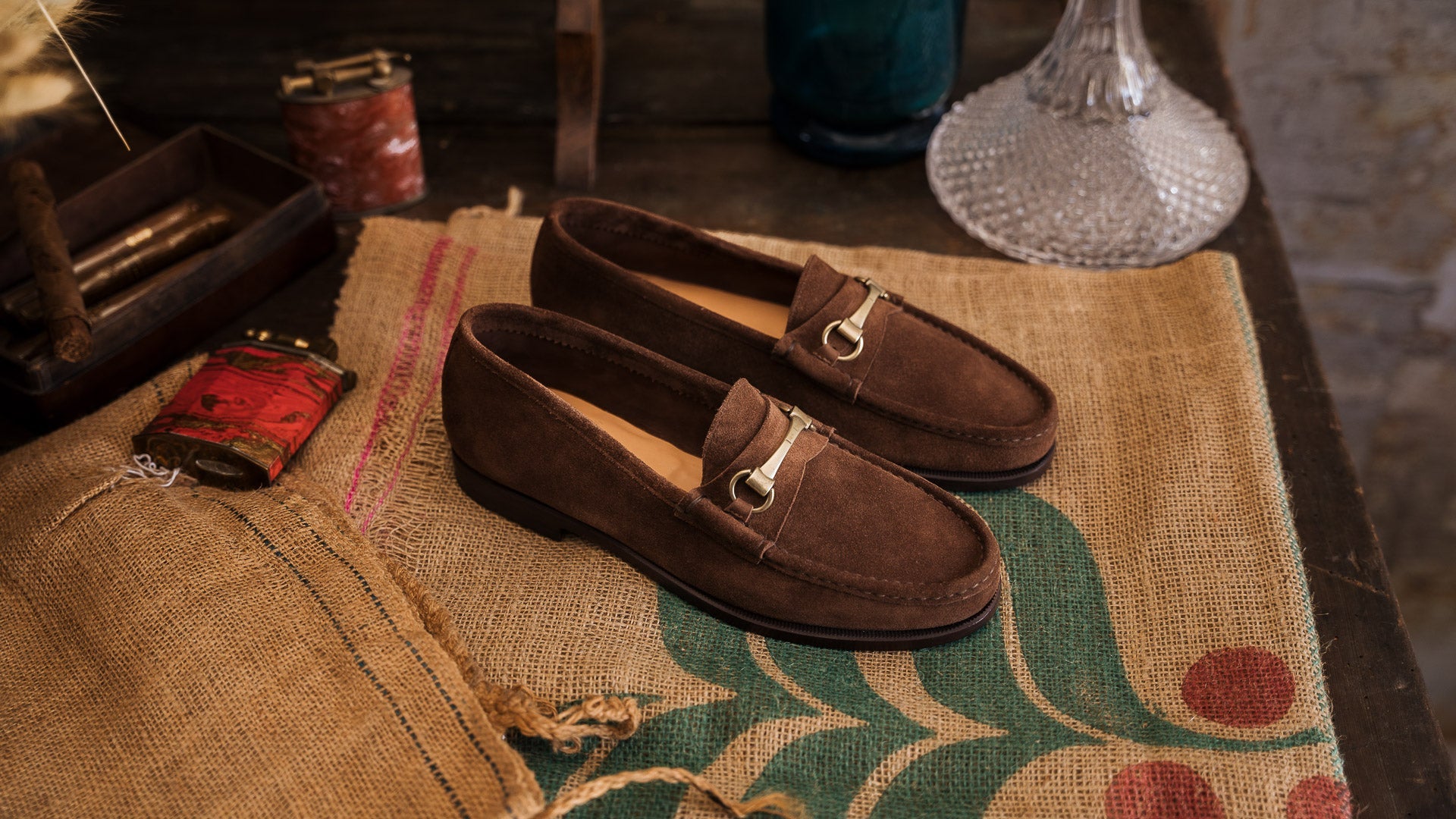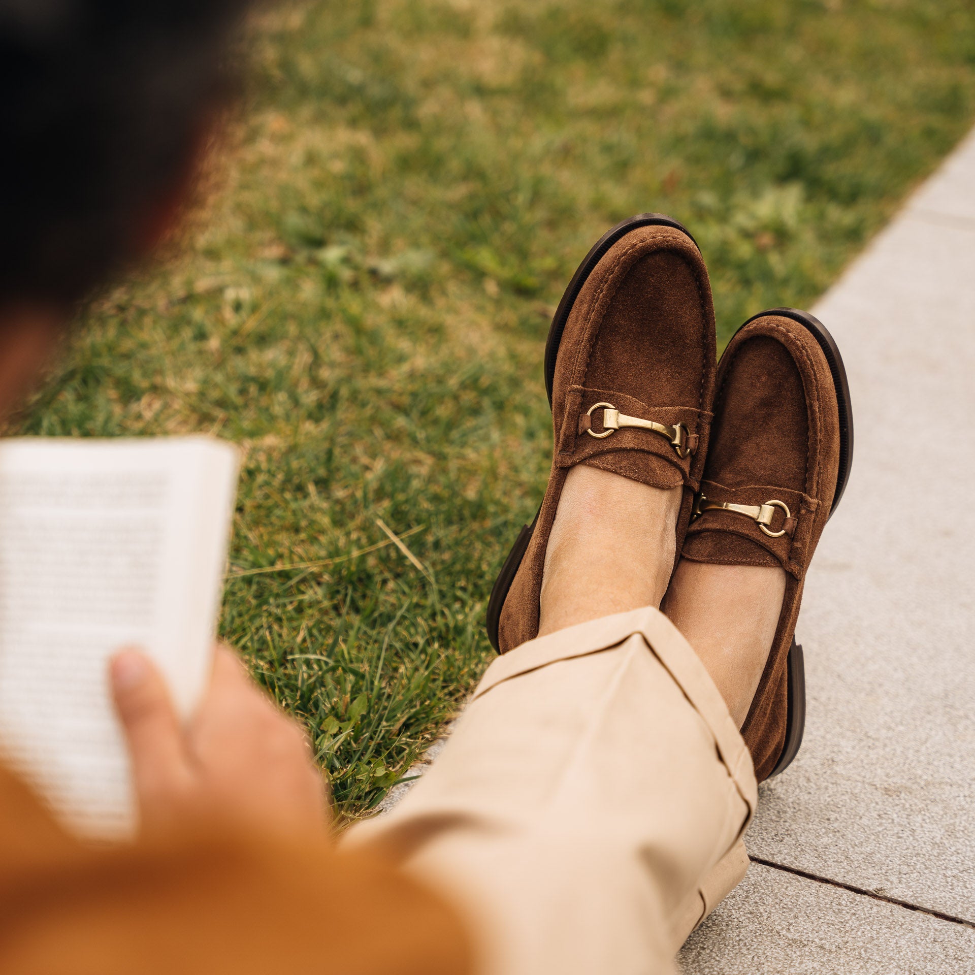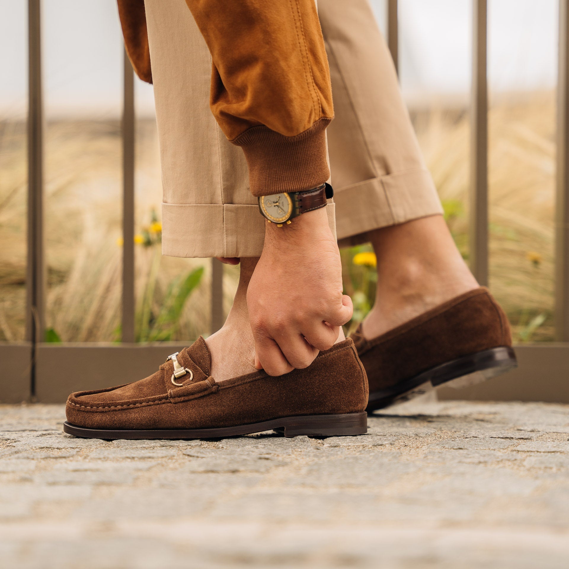 The unlined College is reminiscent of the classic Fifties style, thanks to the horsebit detail applied to the front; this accessory, in brass-coloured electroplating created especially for this model, recalls the Velasca tower in a stylised version - a symbol from Milanese history. In suede calfskin with a light leather sole, you can pair this loafer with a reindeer suède jacket, a khaki T-shirt and beîge cotton trousers with pleats.