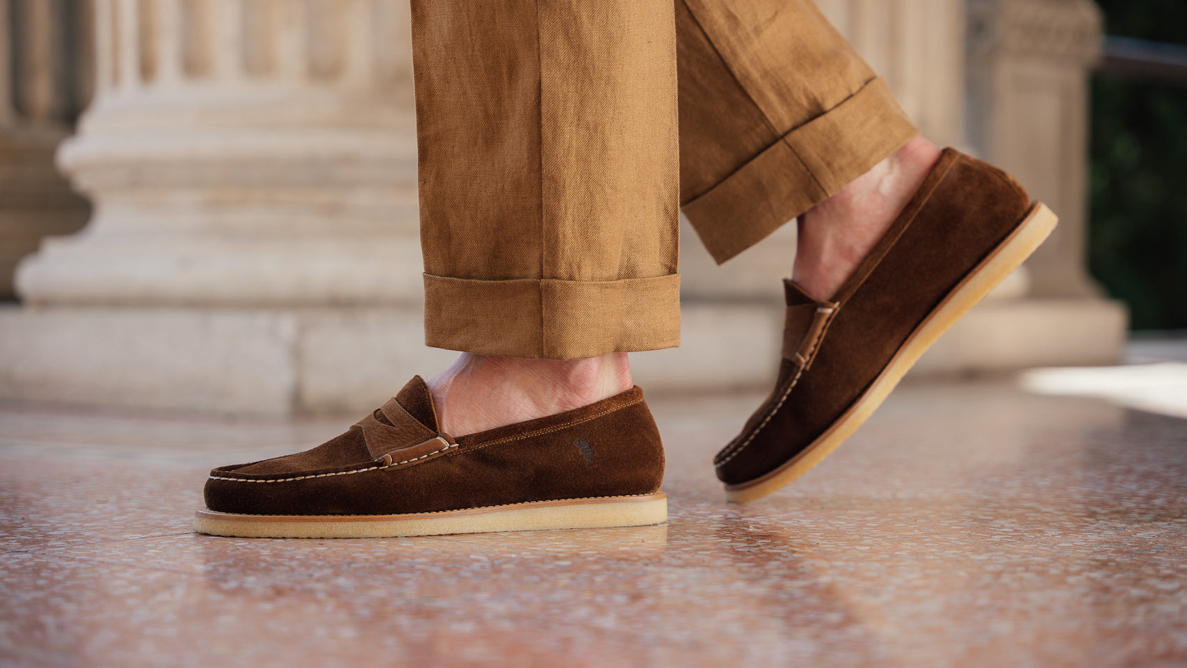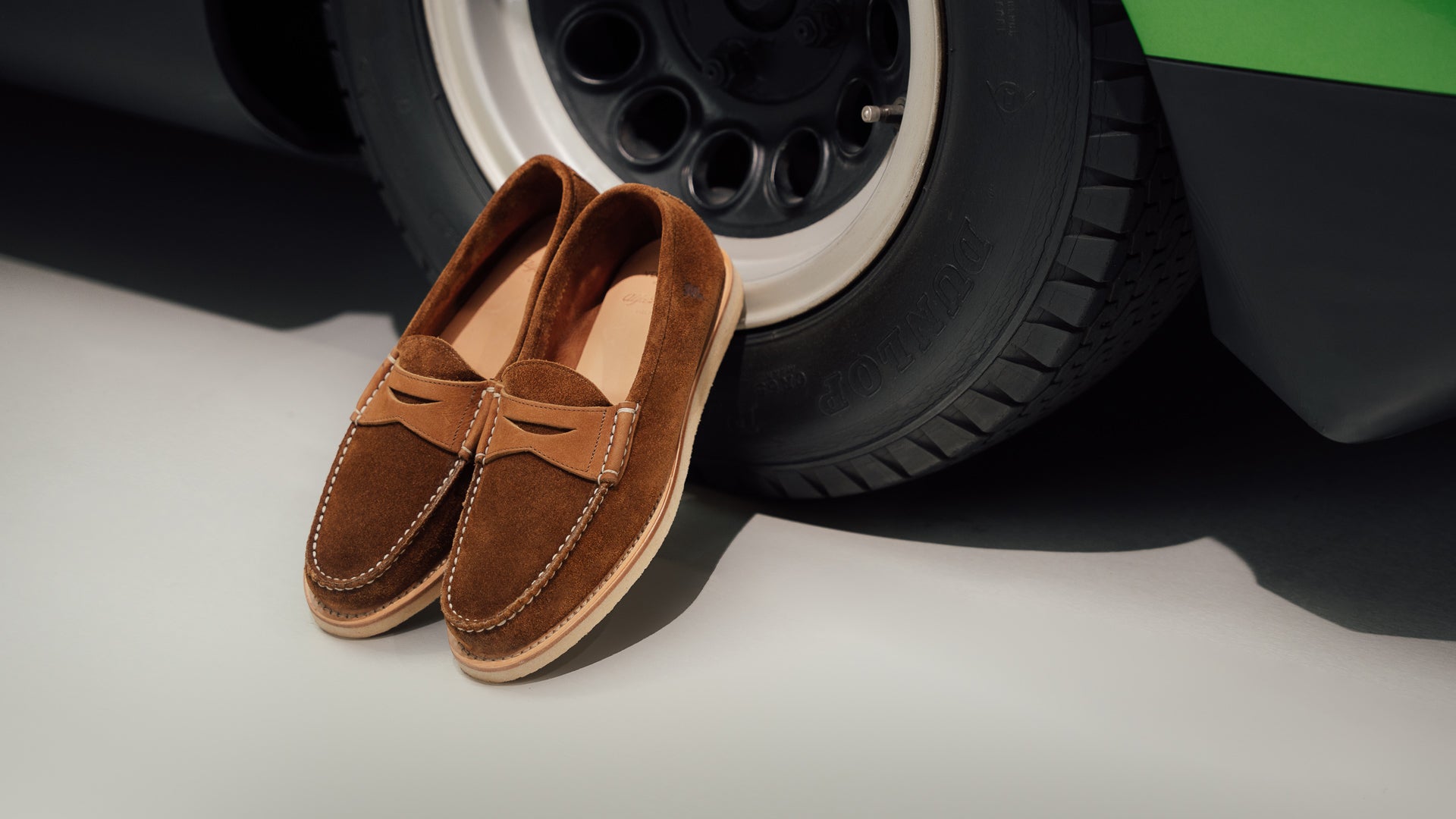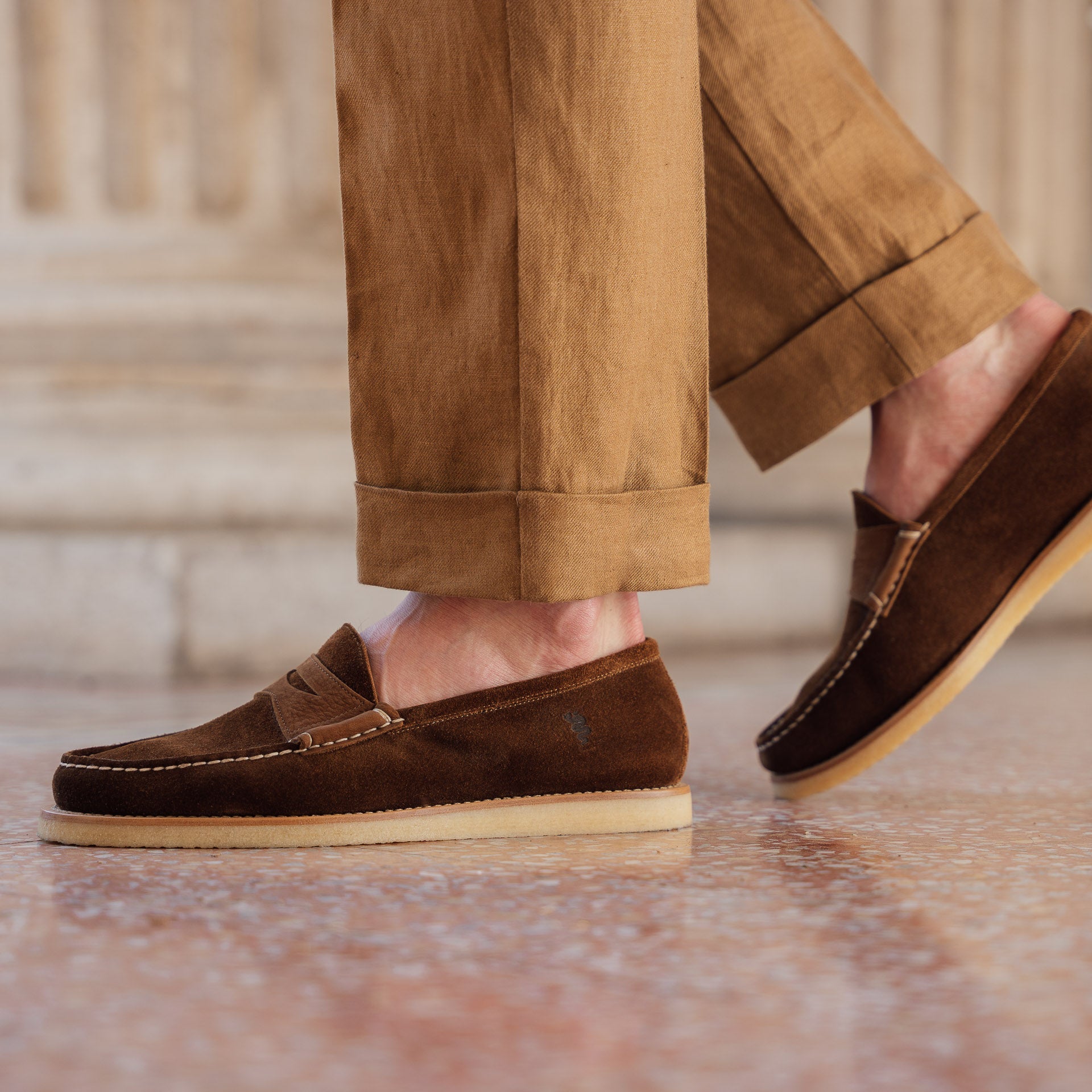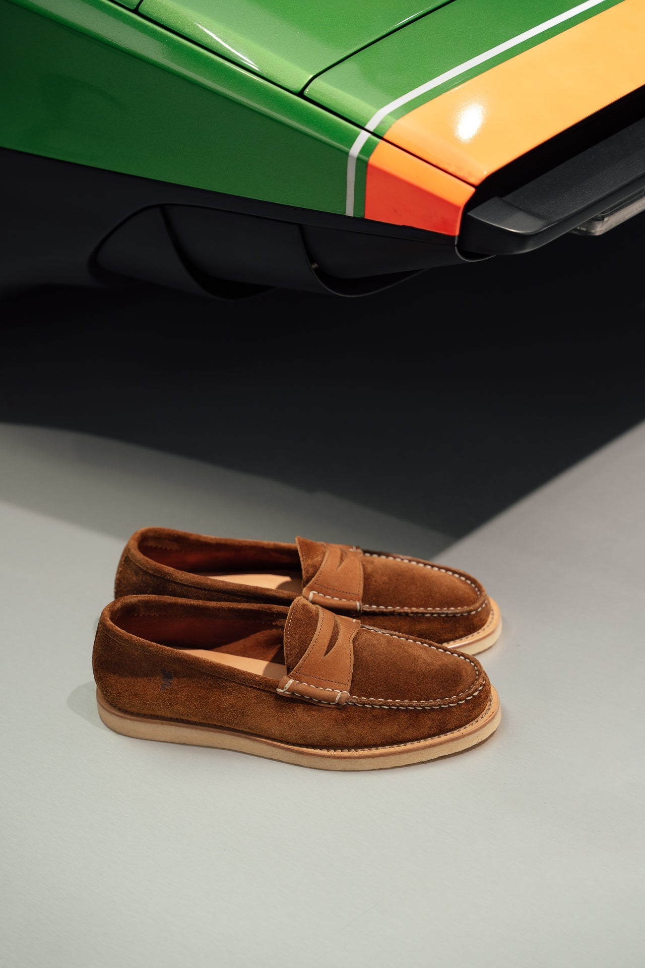 These shoes were born from an encounter with Alfa Romeo, from love for Italian design and the desire to travel. In brown suede leather with a para rubber sole, they are inspired by the class and sturdiness of the historic Duetto car, from which they take their name. As always, handcrafted.