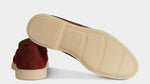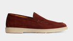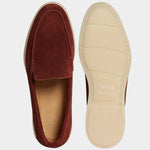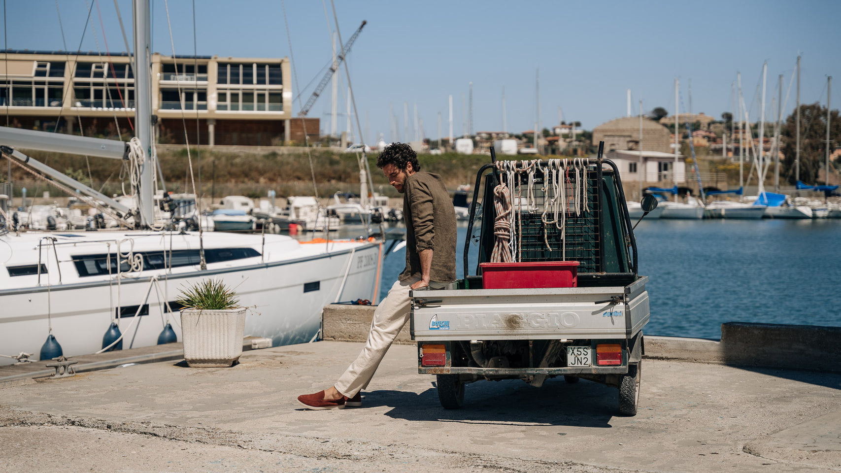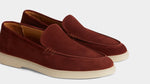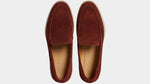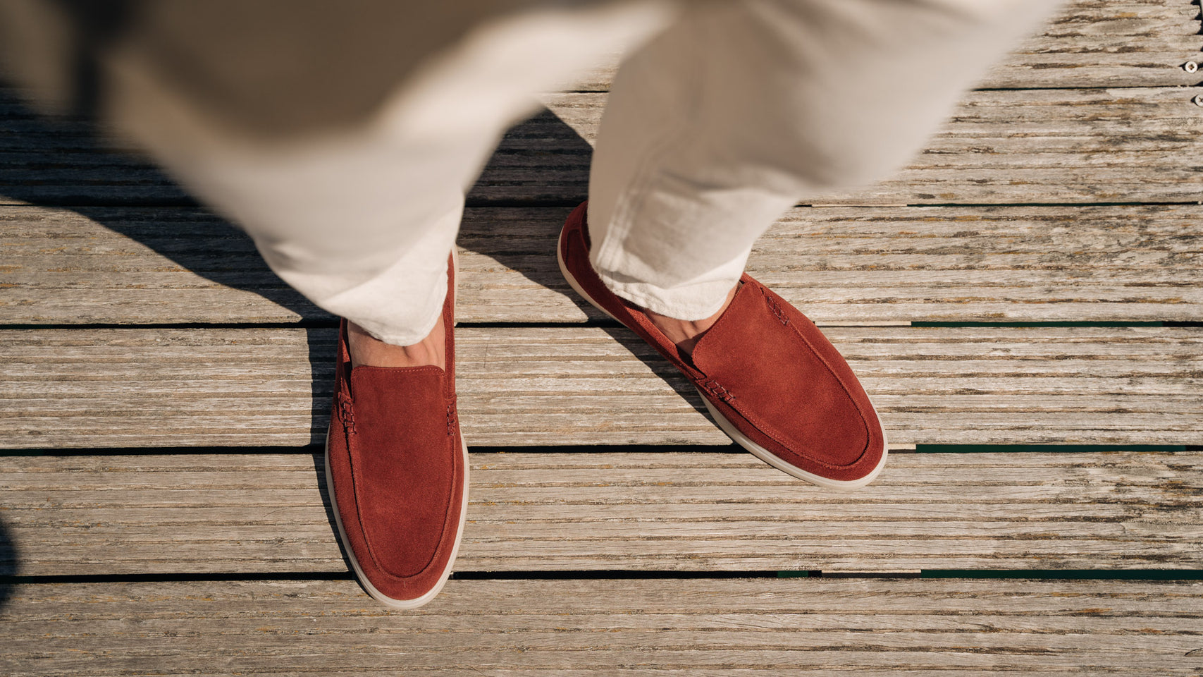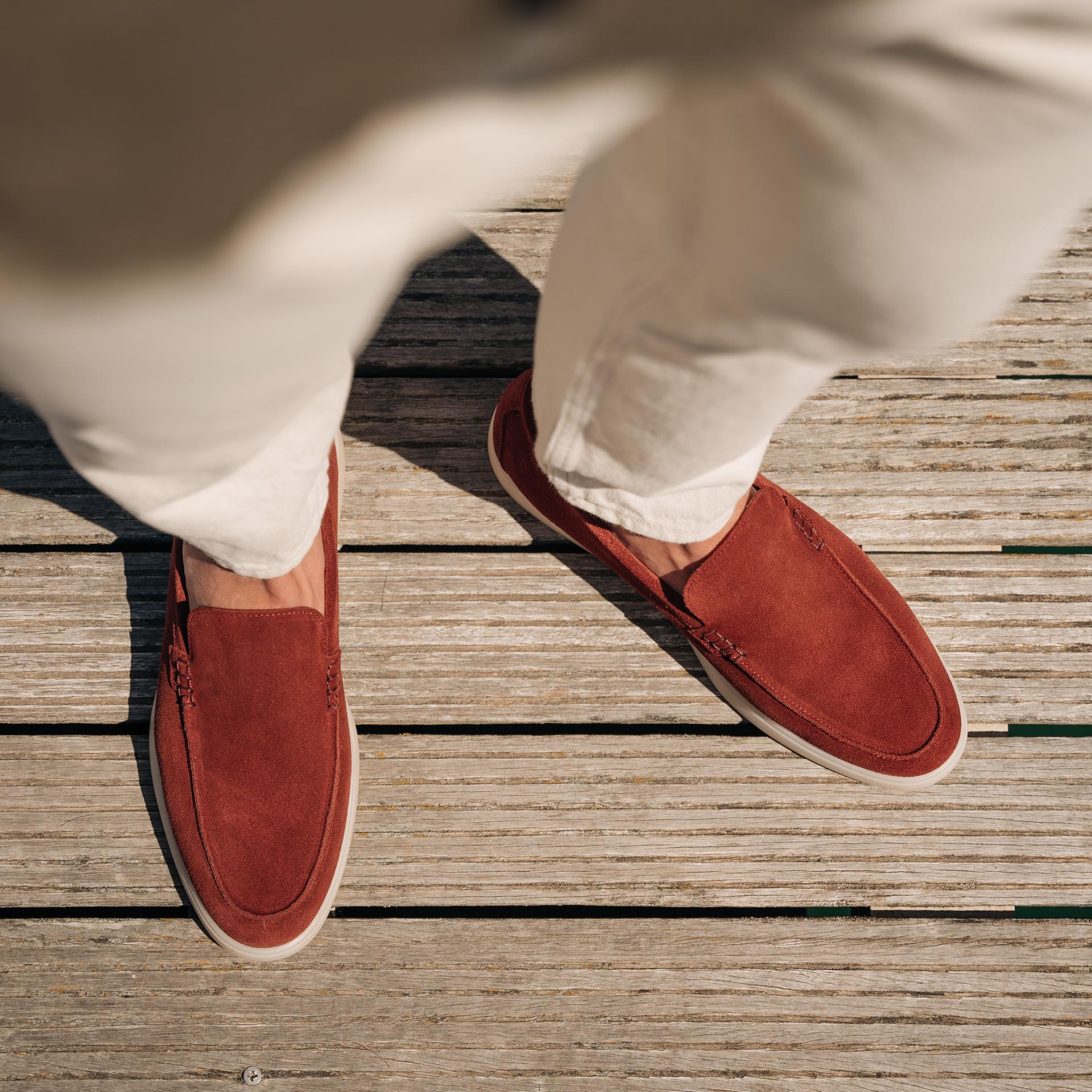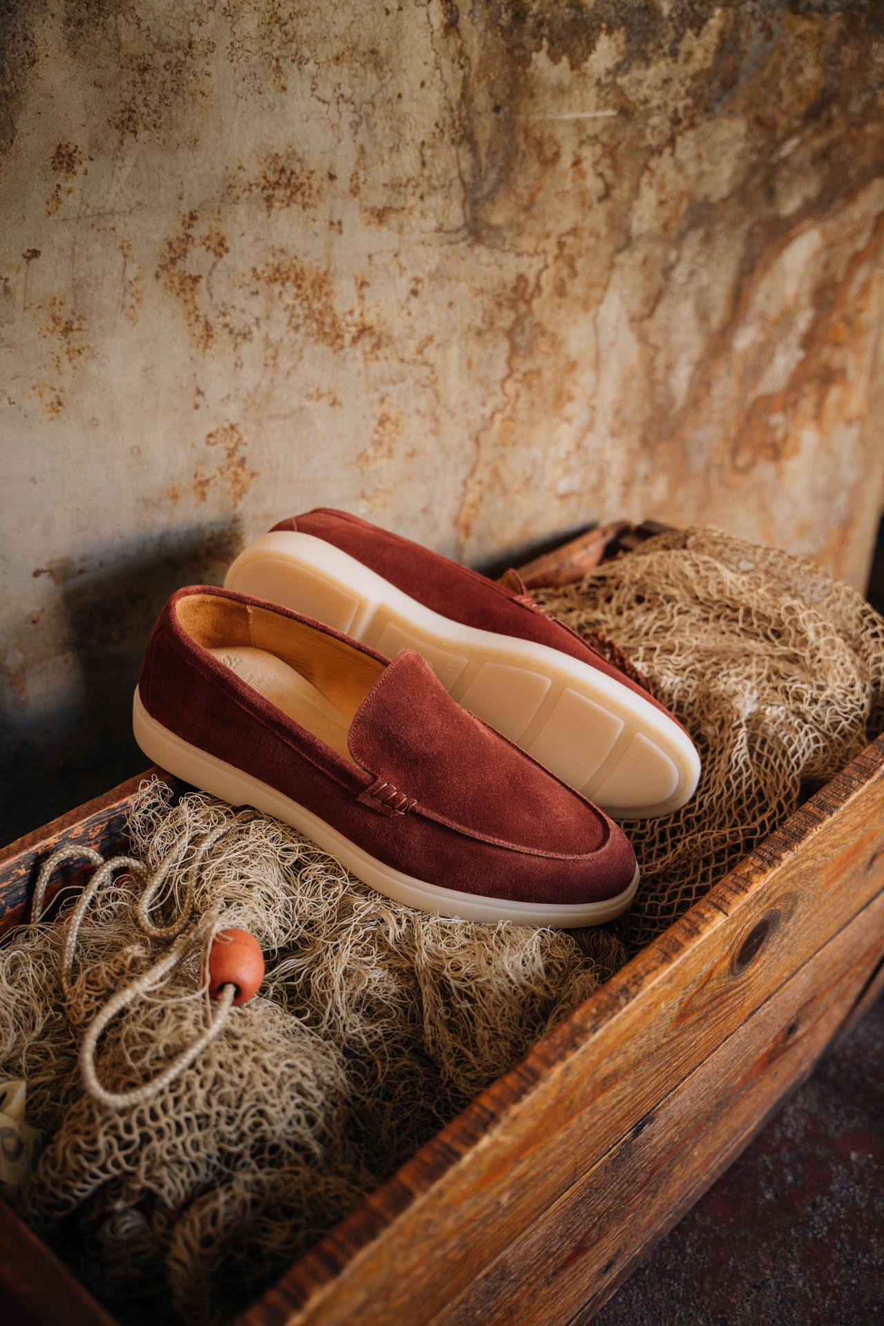 Here is our Docker, halfway between a loafer and a sports shoe: comfortable and practical, but still classy. In suede calfskin with a ridged rubber sole that cushions every step, this shoe should go in your weekend bag along with a green mandarin collar shirt and ecru jeans.