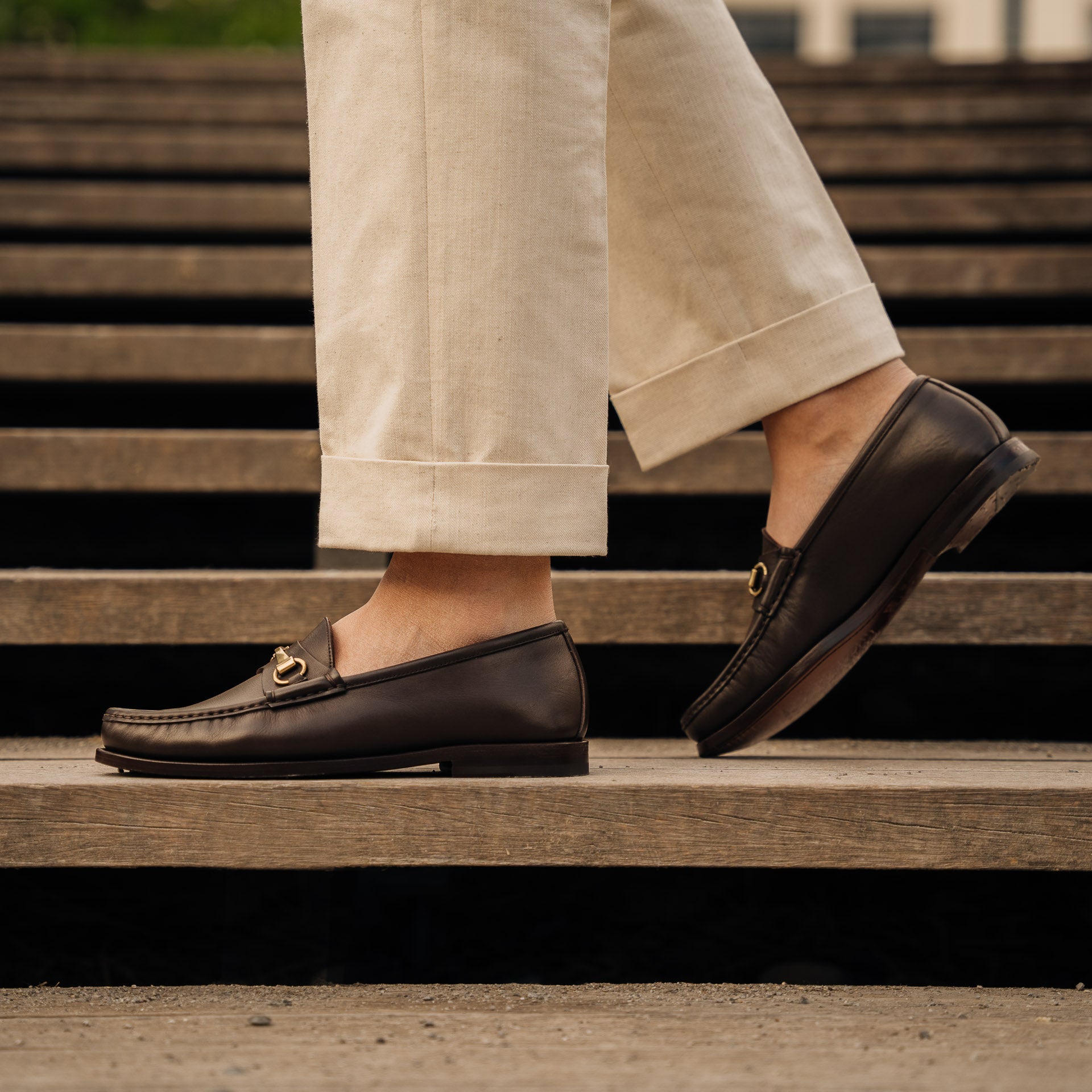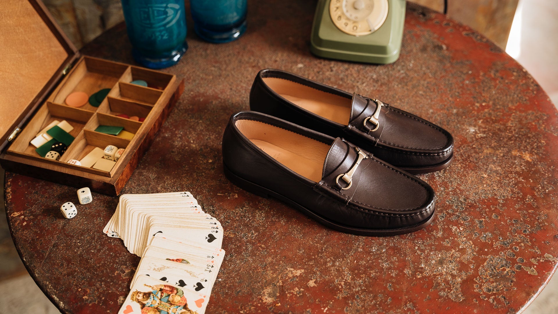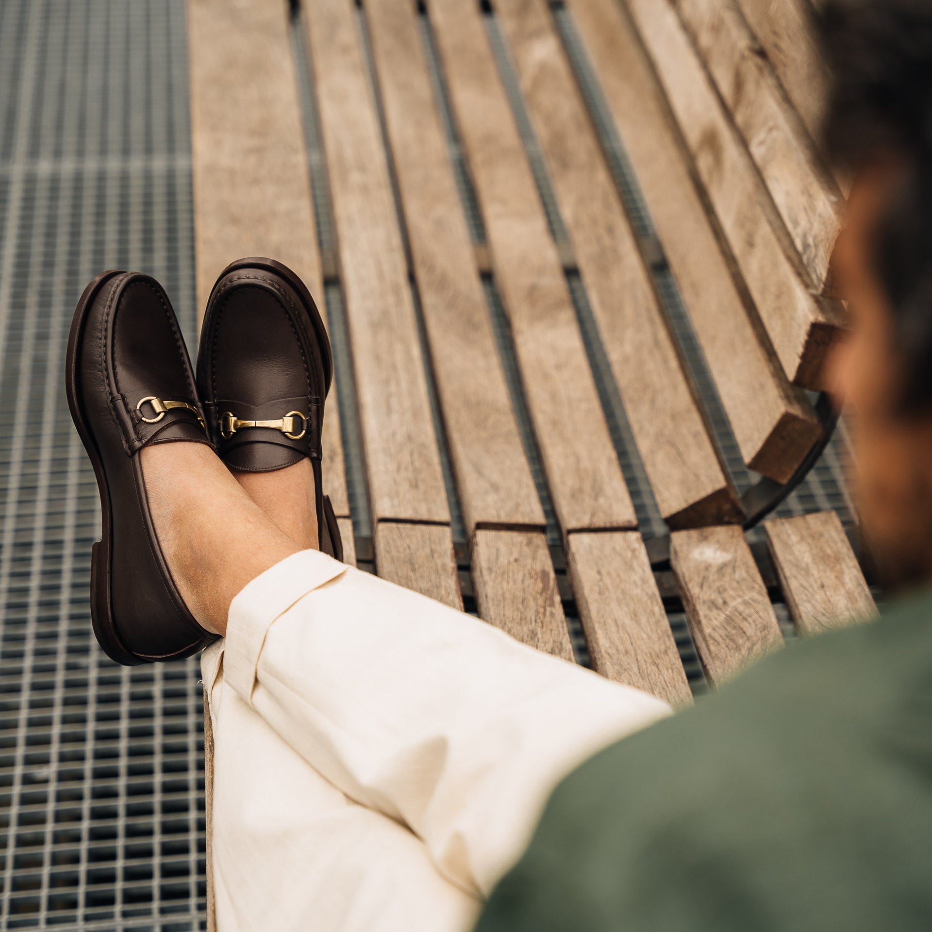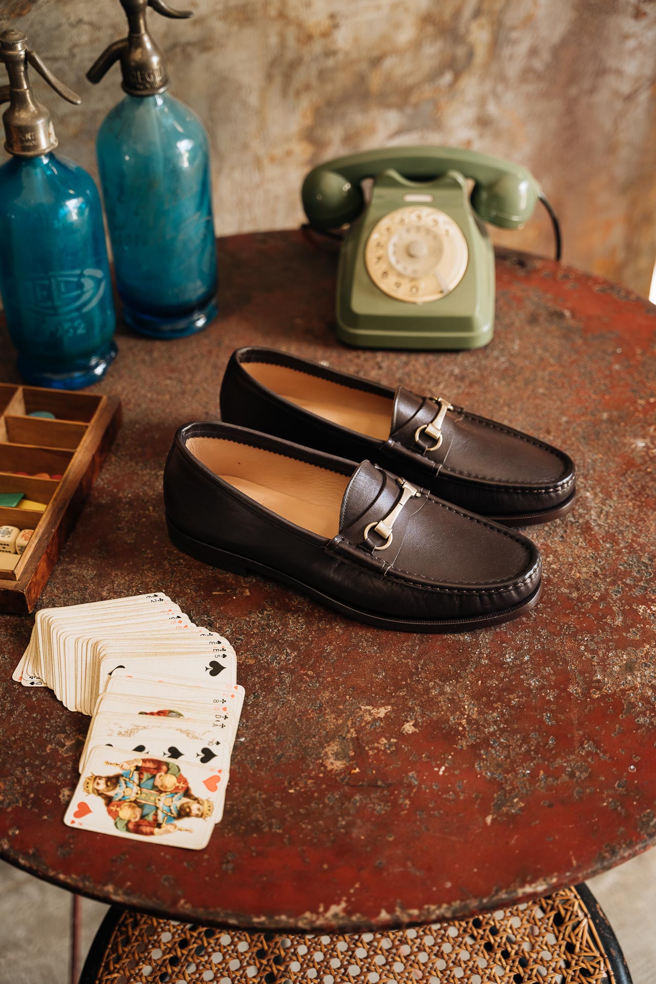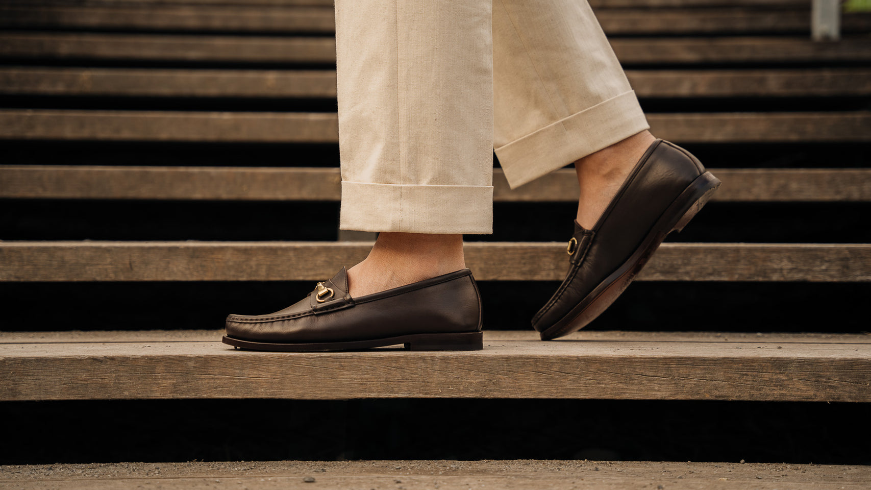 The College is reminiscent of the classic Fifties style, thanks to the horsebit detail applied to the front; this accessory, in brass-coloured electroplating created especially for this model, recalls the Velasca tower in a stylised version - a symbol from Milanese history. In hammered calfskin, with leather lining and a light leather sole, you can pair this loafer with a green safari jacket, a blue T-shirt and cream cotton and linen trousers.