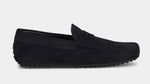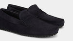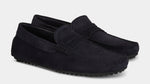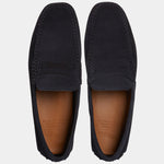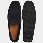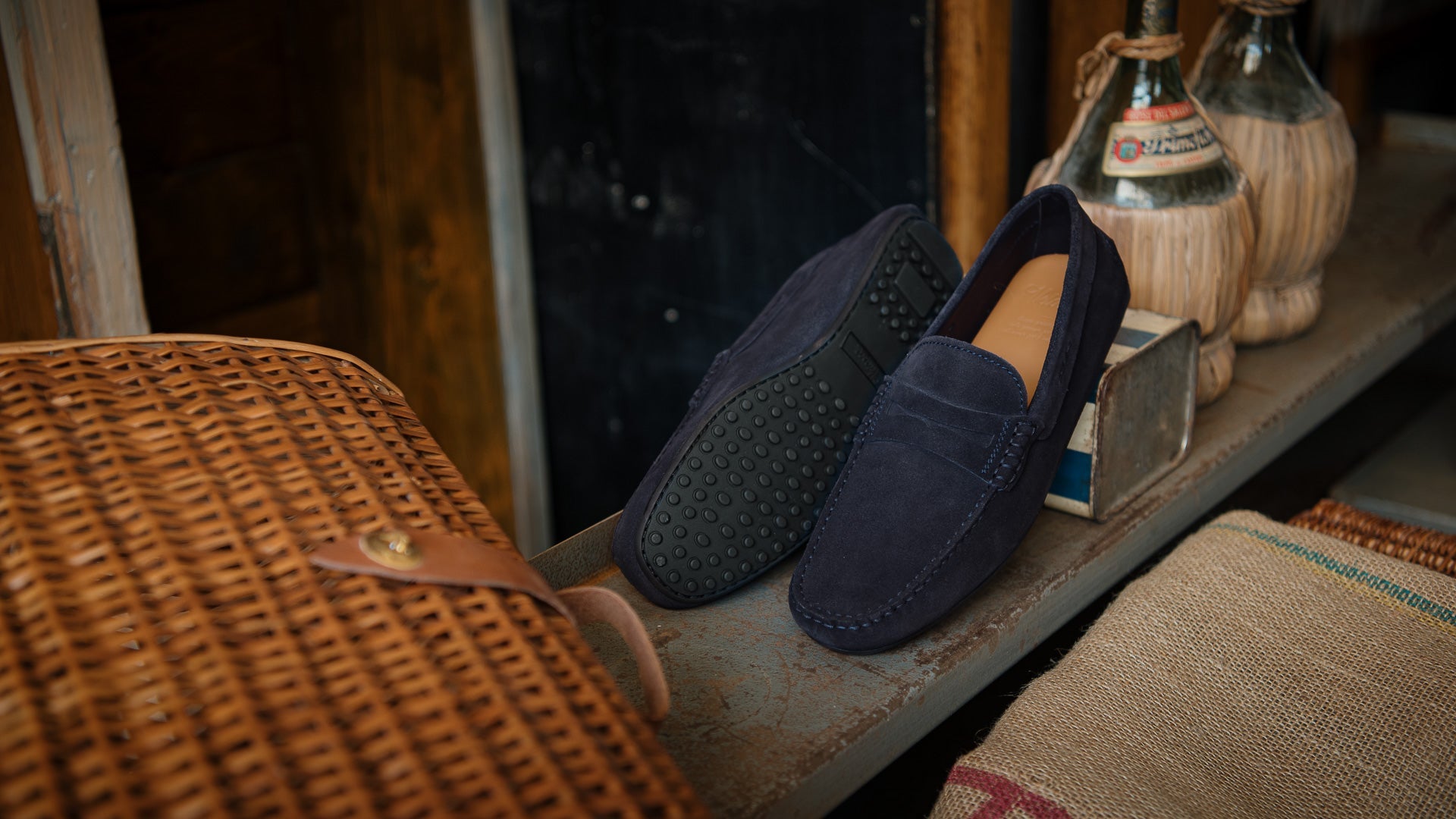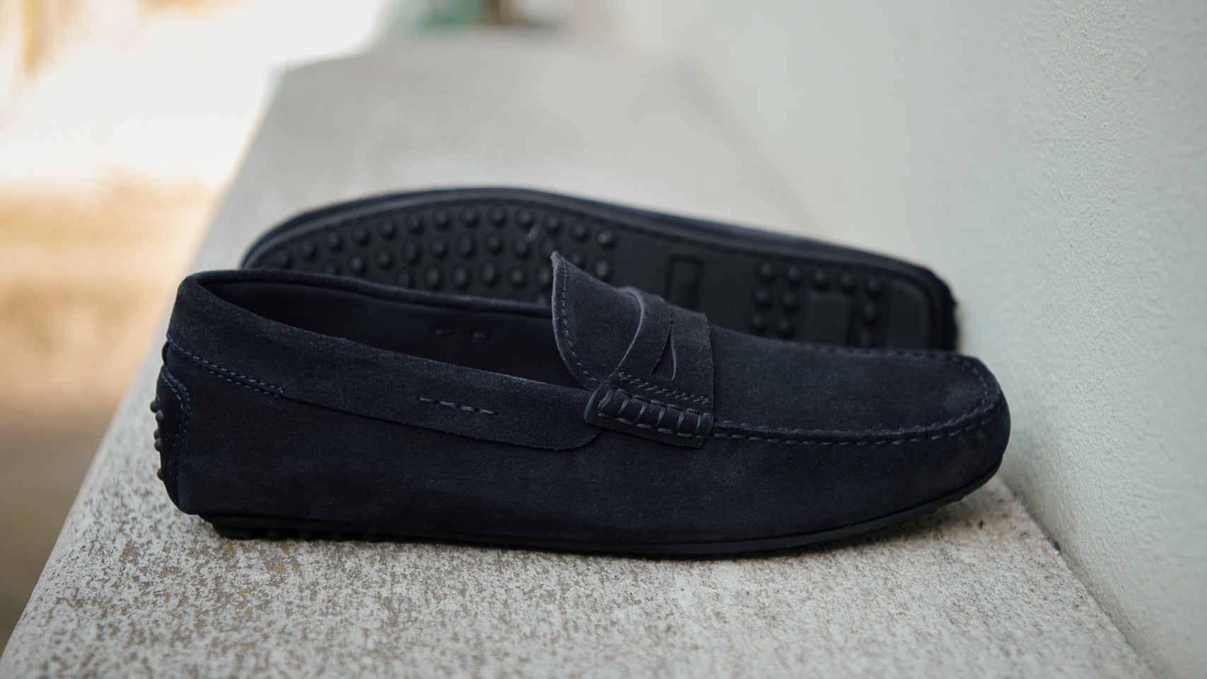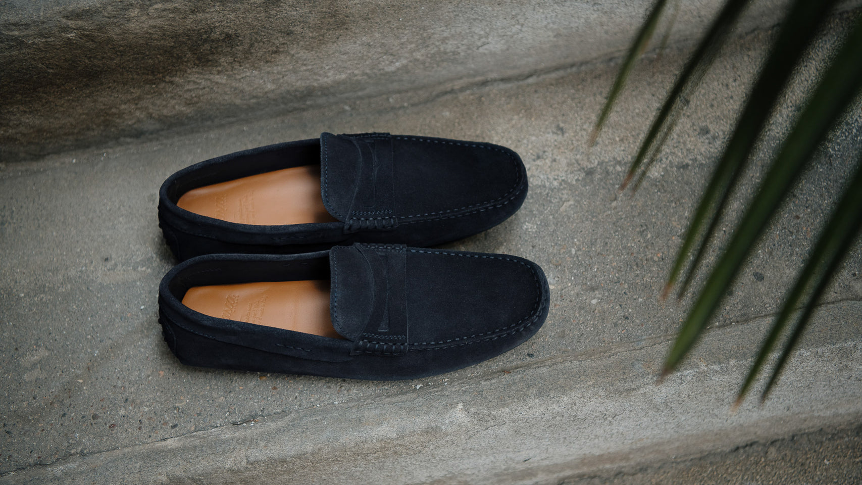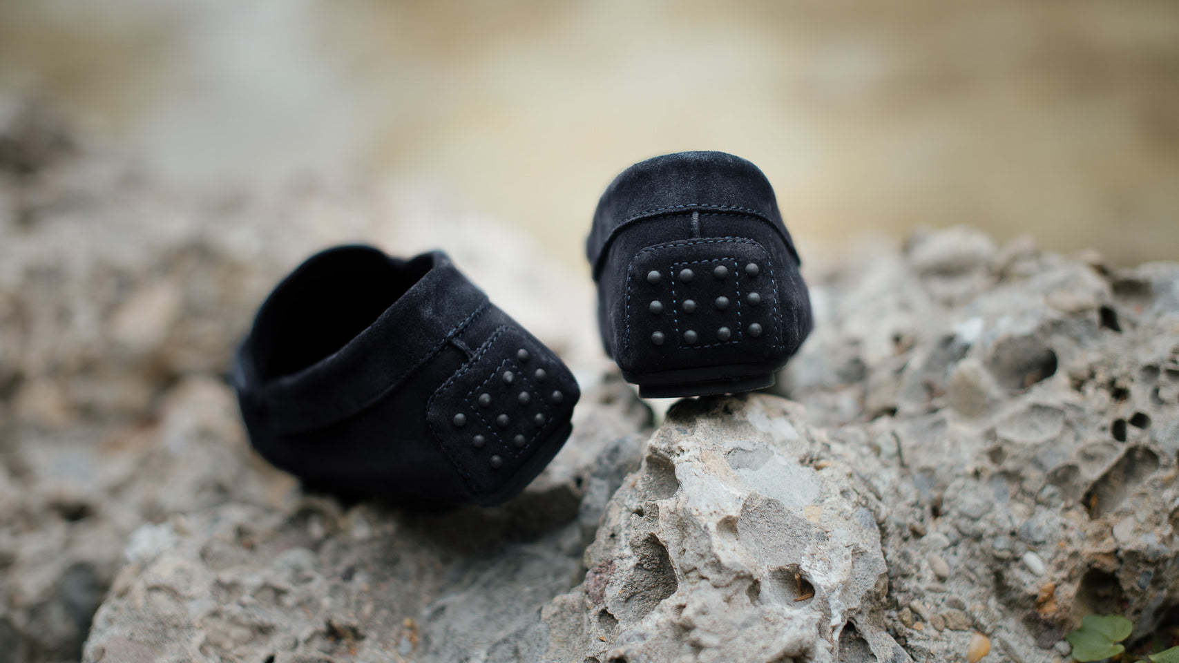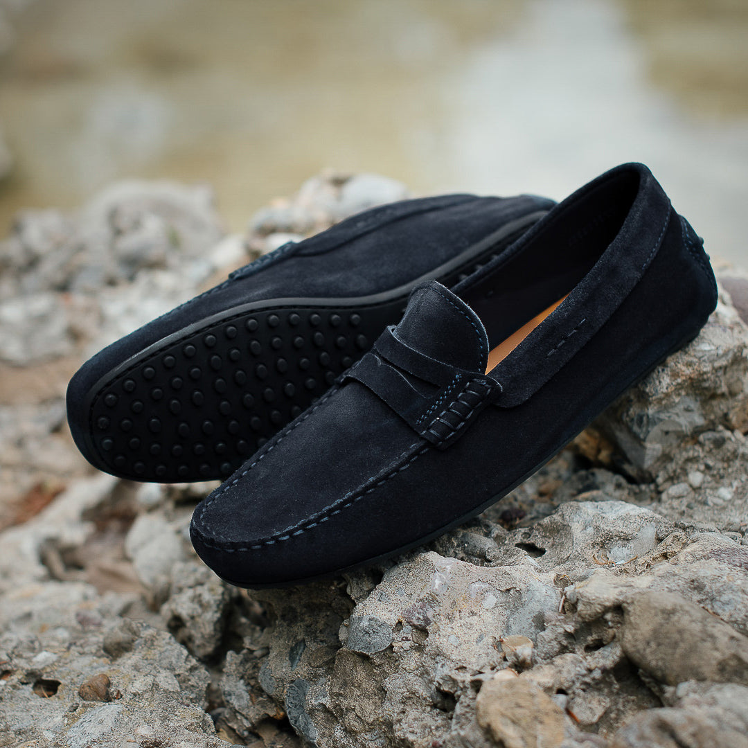 There aren't your typical studded-sole Moccasins. Their rubber soles run the whole length of the shoe, making them somewhat solid. We gave them a new soul, but their lines remain iconic. In suede calfskin, the casual character of these blue moccasins goes perfectly with chinos or jeans and your favourite t-shirt. Always without socks. Perfect for weekends out of town when days are ever warmer.