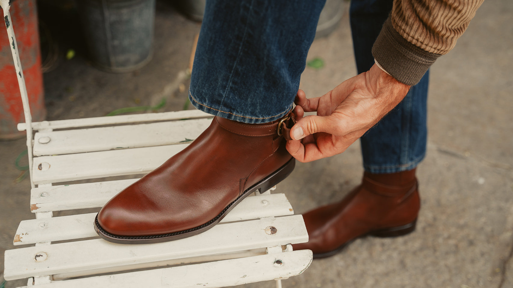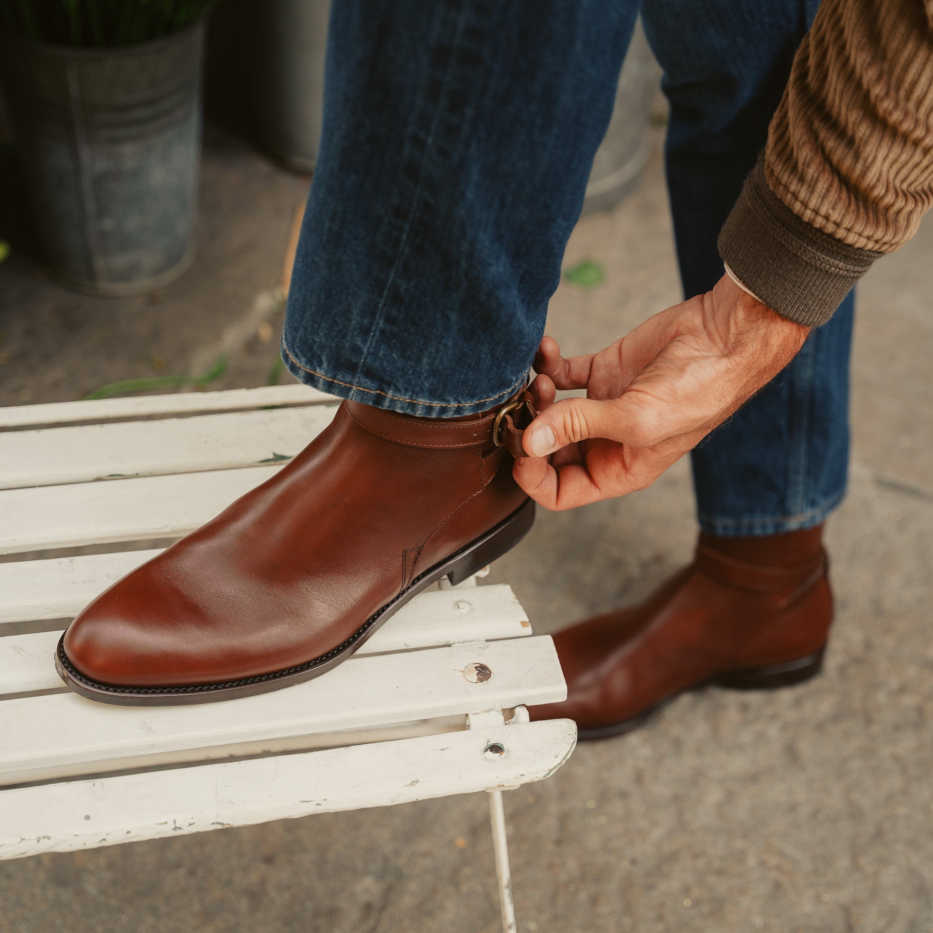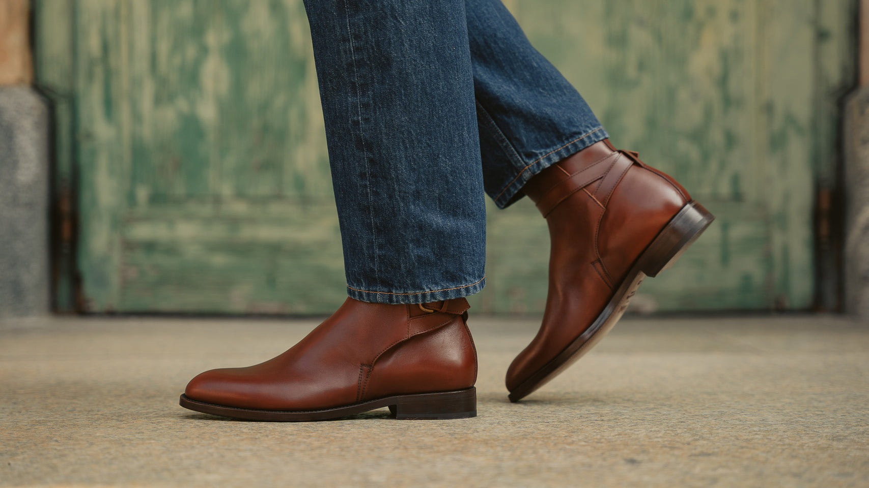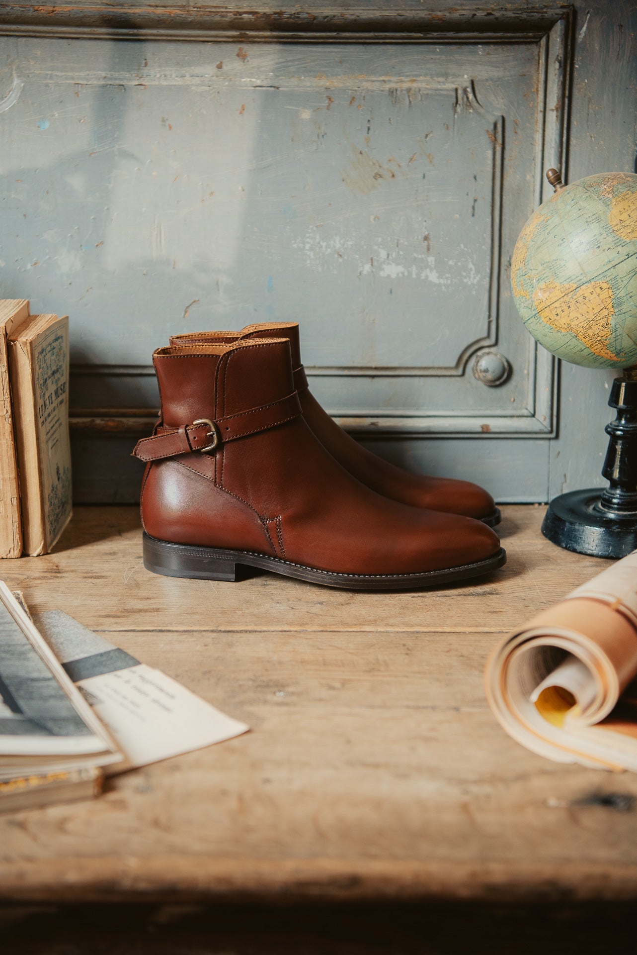 They are buckled boots with simple but elegant lines which accompany your informal style. The smooth calf leather, combined with a leather sole with rubber inserts, makes them the ideal companion on your walks in the city. We’ve paired them with a wide-ribbed corduroy jacket, a shirt with thin lines and jeans.