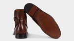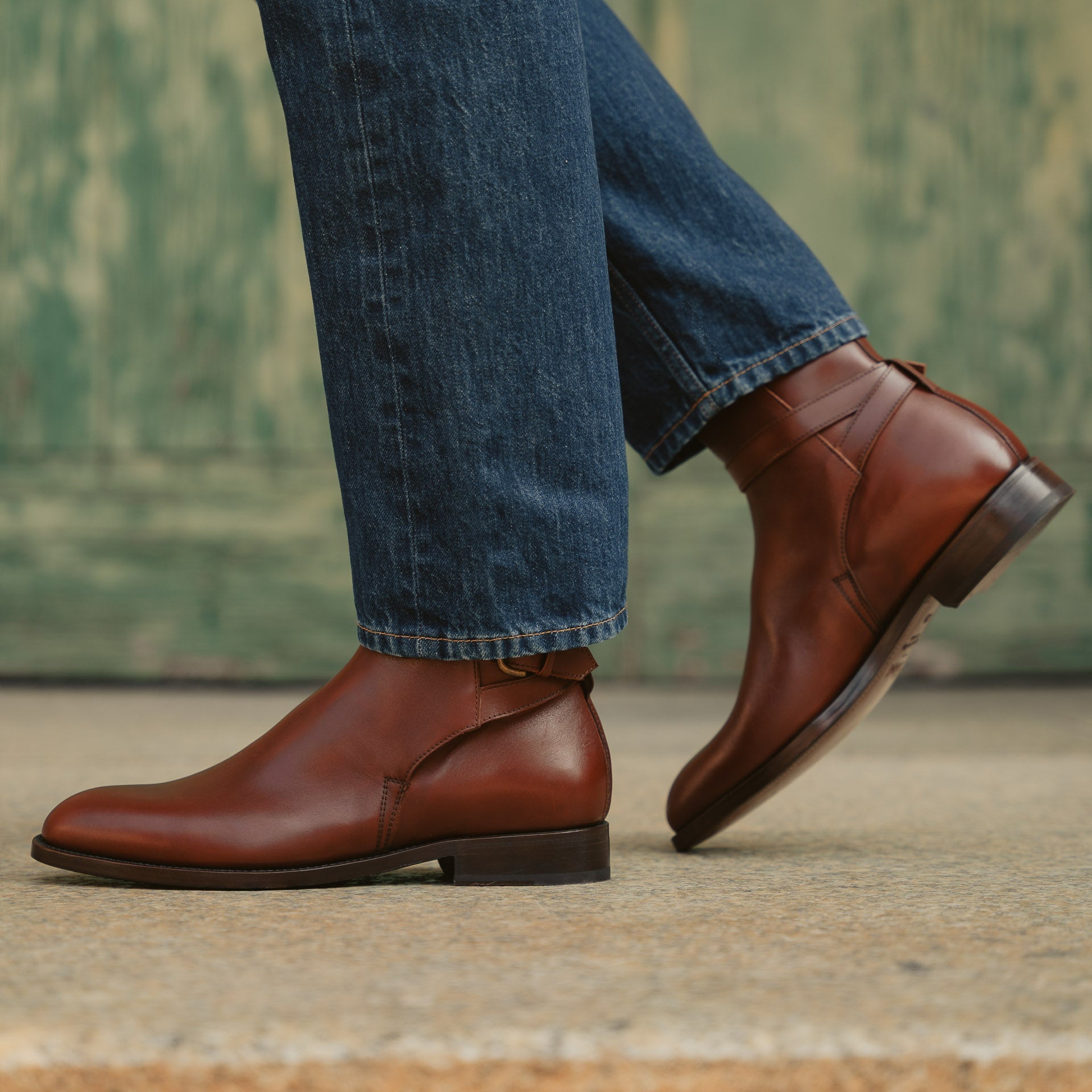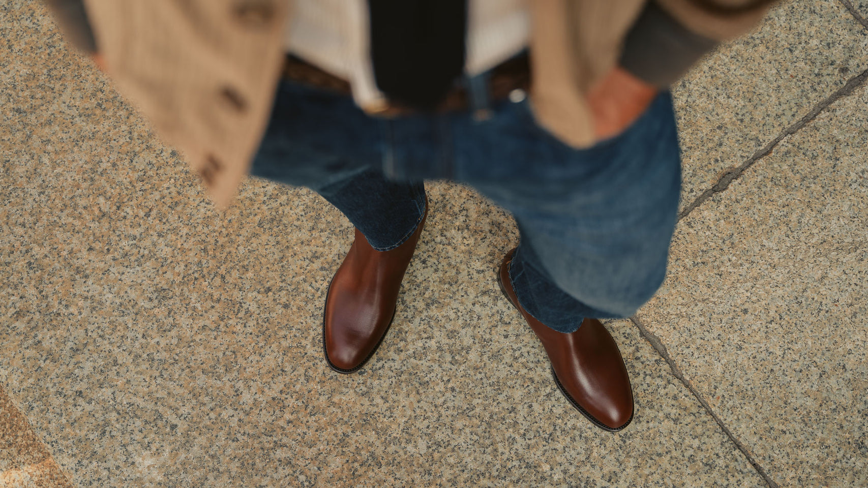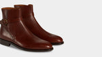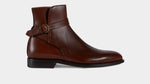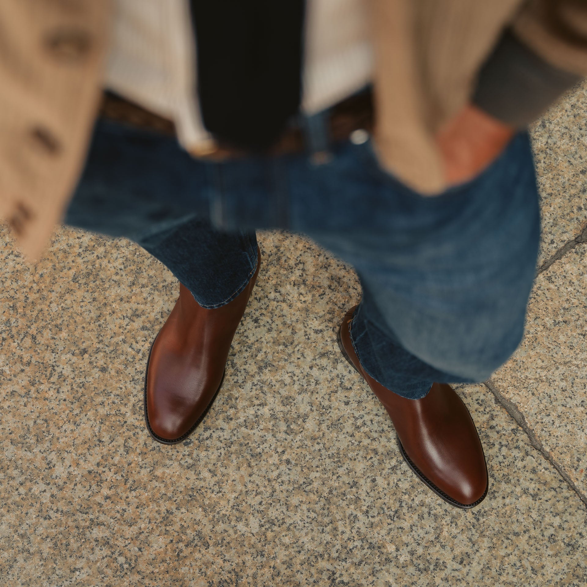 They are buckled boots with simple but elegant lines which accompany your informal style. The smooth calf leather, combined with a leather sole with rubber inserts, makes them the ideal companion on your walks in the city. We’ve paired them with a wide-ribbed corduroy jacket, a shirt with thin lines and jeans.