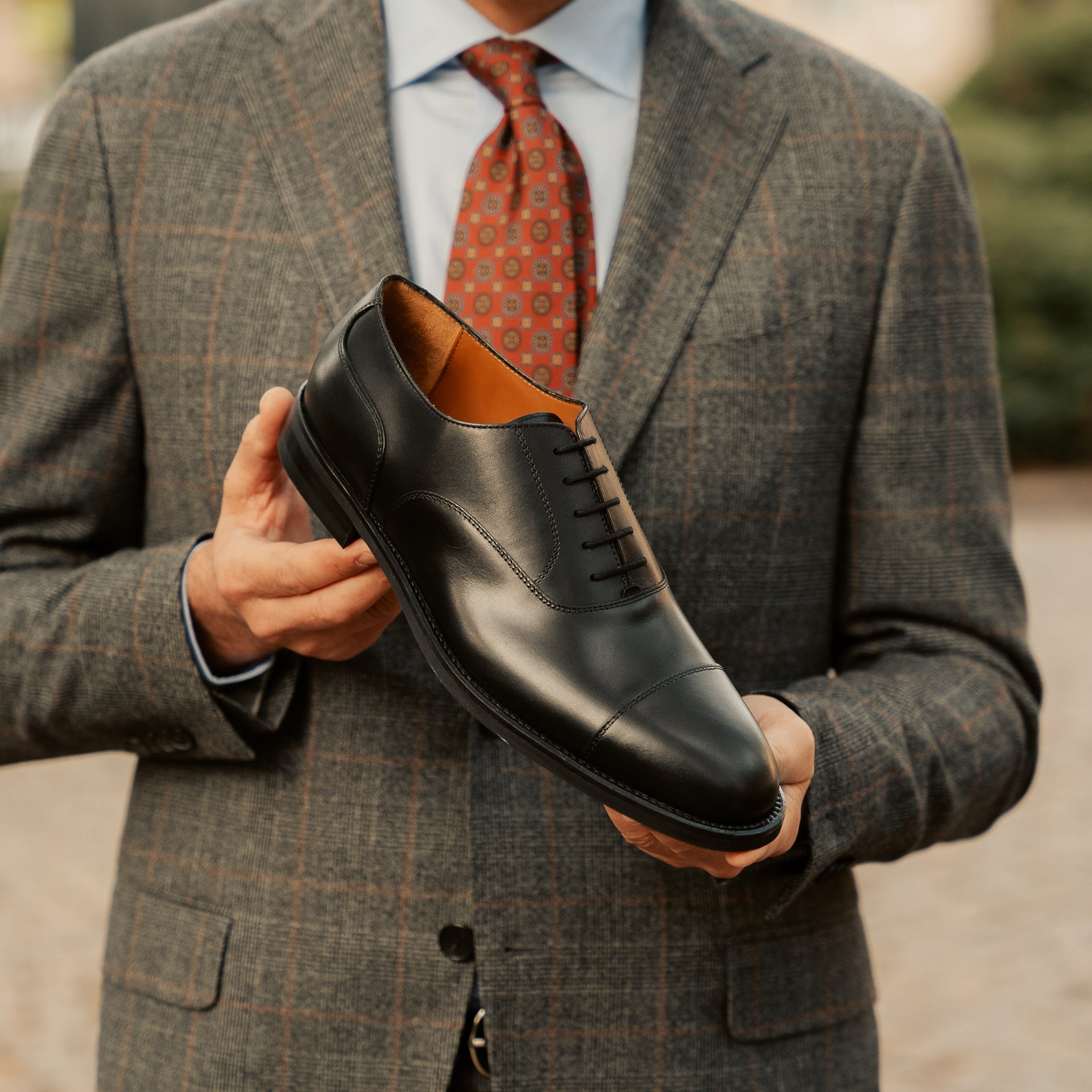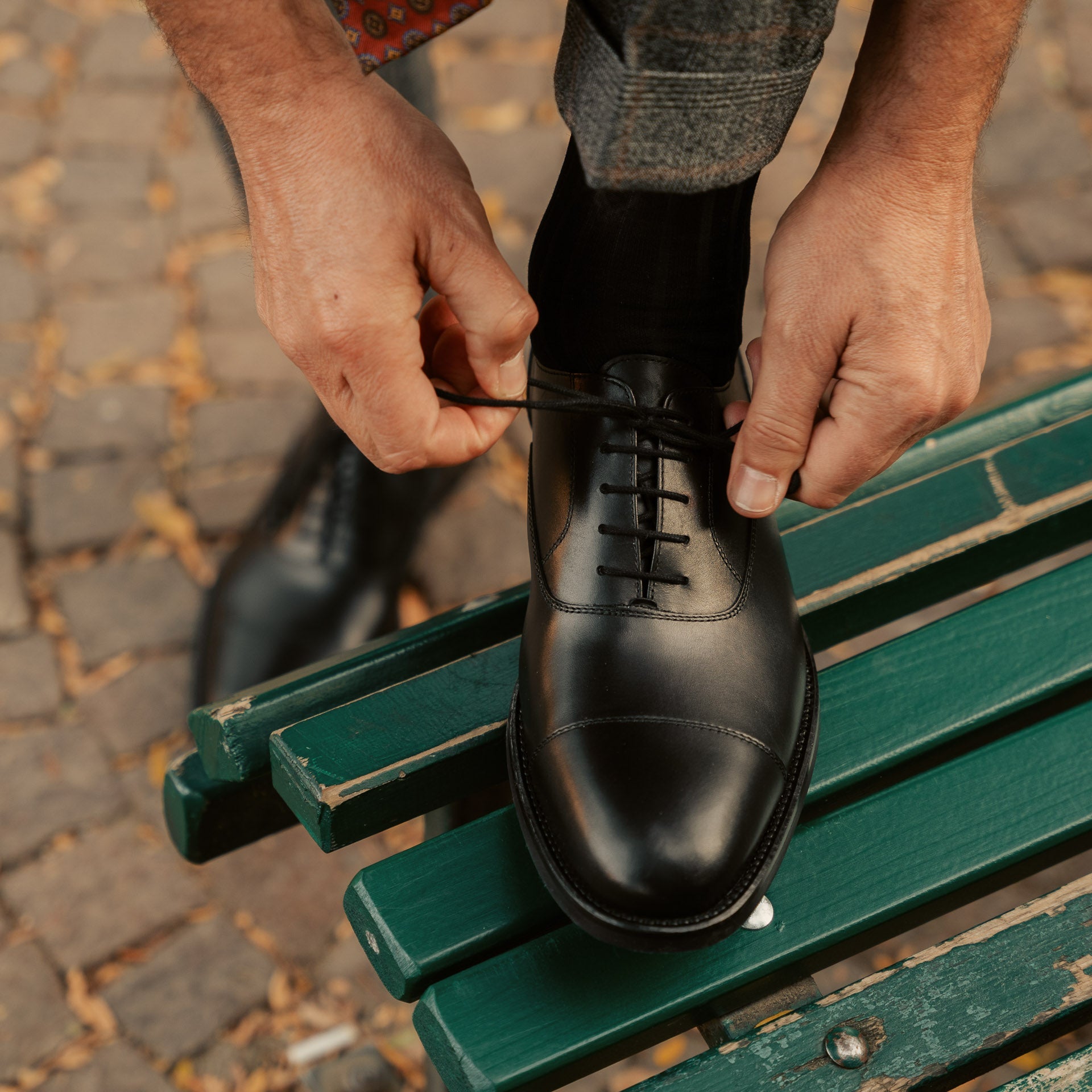 It's the perfect artisanal Oxford to wear at the office, especially during those cool days from November to February. With its full-grain leather and its superior and durable Vibram rubber sole, it’s a timeless opaque black shoe that respects both formal and daily usage. Whether you’re on a bicycle or motorbike, you won’t slip when stopping at the red traffic lights. And with its refined sole, you won’t compromise on style either.