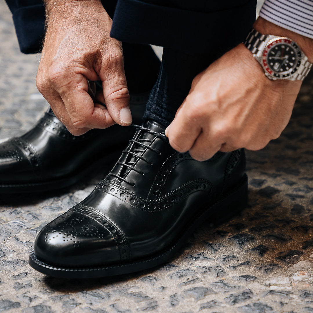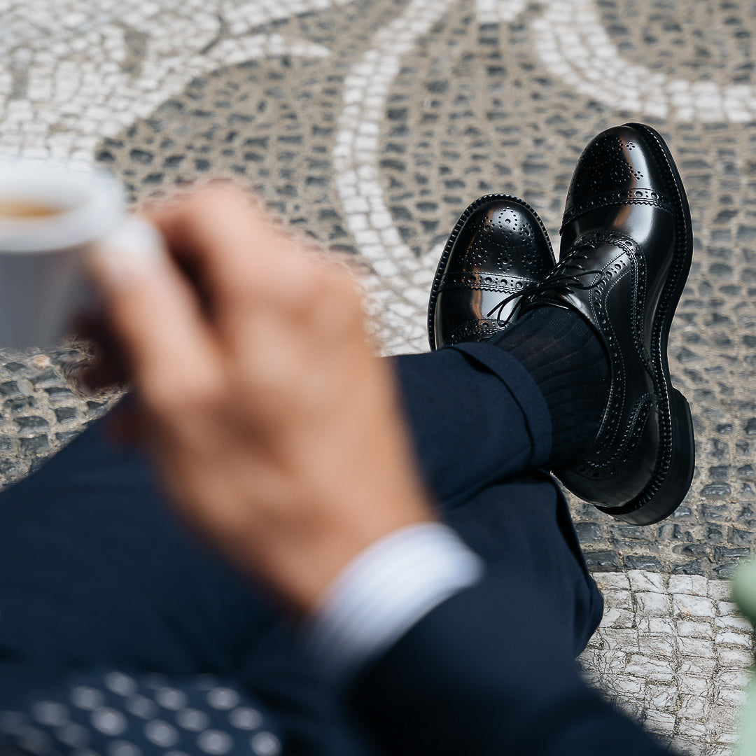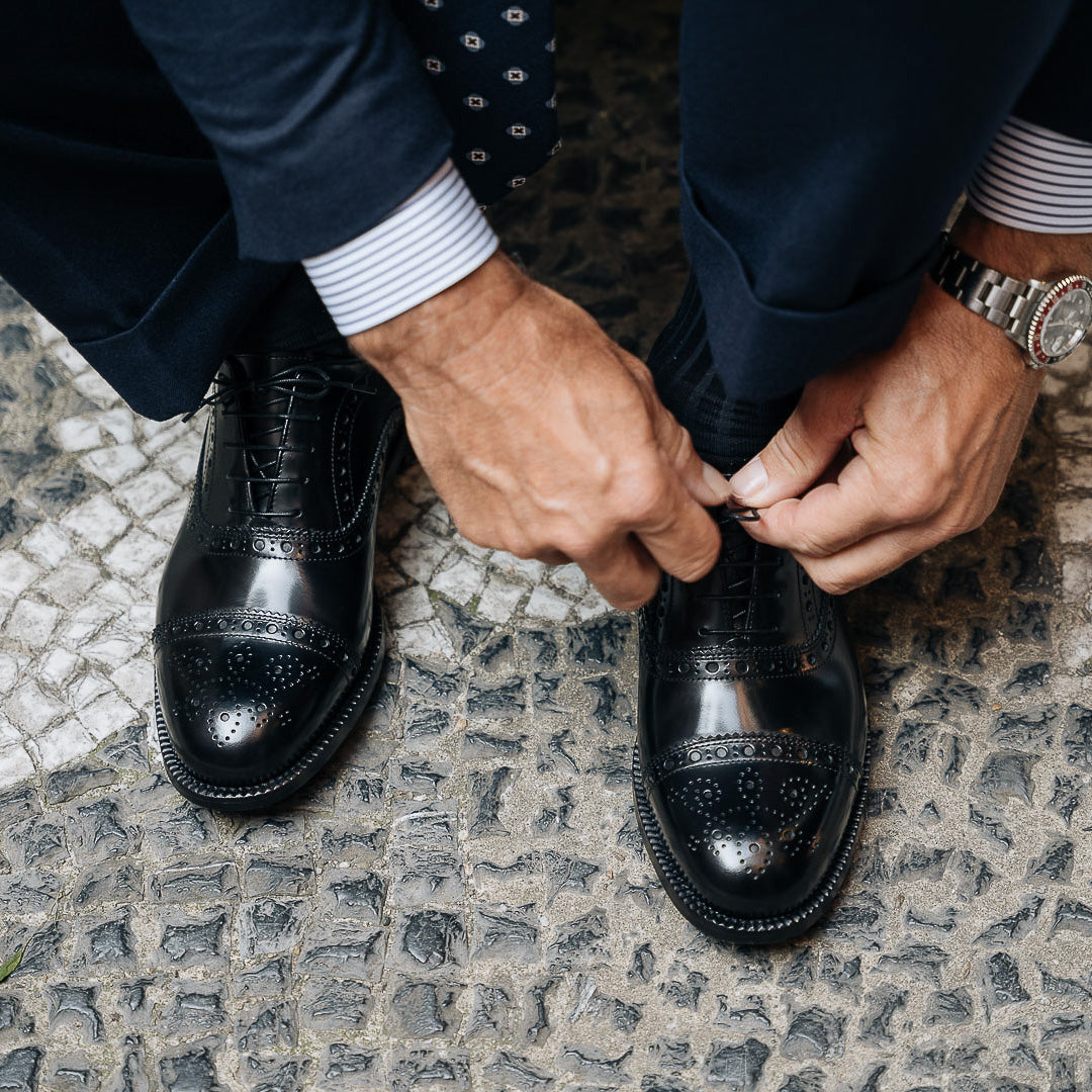 You would recognise these Oxfords anywhere: Goodyear welting. In brushed smooth brushed calfskin, with a leather sole, they are designed to last over time: the traditional "welt" stitching makes the shoes both resistant and easy to resole. The cork layer between the insole and the sole welcomes your foot: the more you wear them, the more they fit. Wear them with a blue wool-and-cashmere suit, a deconstructed jacket and double dart trousers, a striped shirt and a printed wool tie.