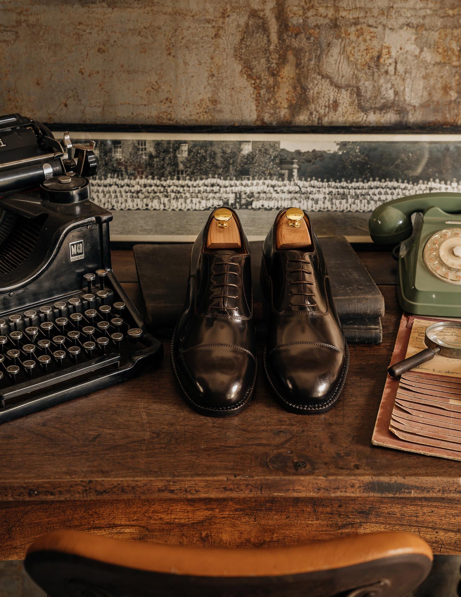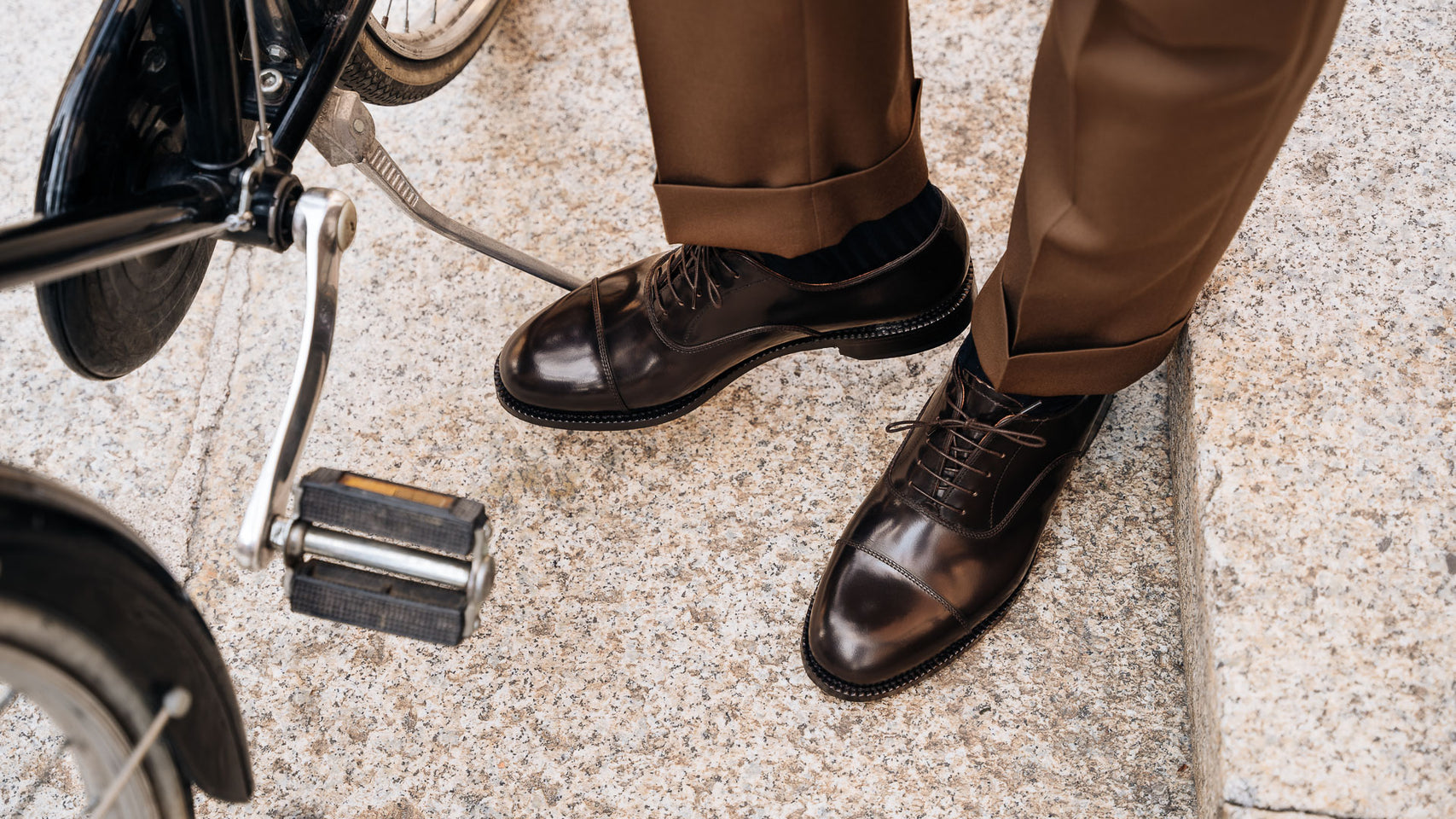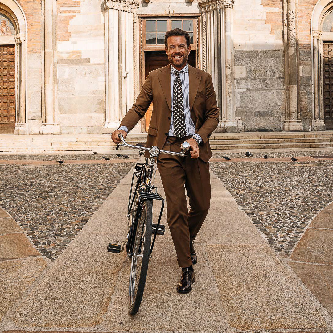 You would recognise these Oxfords anywhere: Goodyear welting. In brushed smooth calf leather, leather sole and with a light punched detail around the toe, it is designed to last over time: the traditional "welt" stitching makes the shoes both resistant and easy to resole. The cork layer between the insole and the sole welcomes your foot: the more you wear them, the more they fit. Wear them with a caramel coloured fresh woollen suit: high-waisted trousers and double dart, a striped shirt and a printed silk tie.