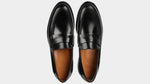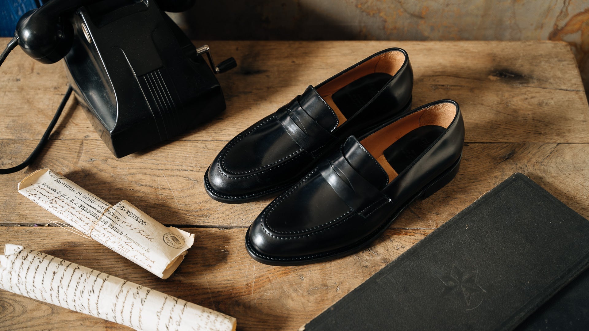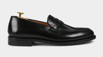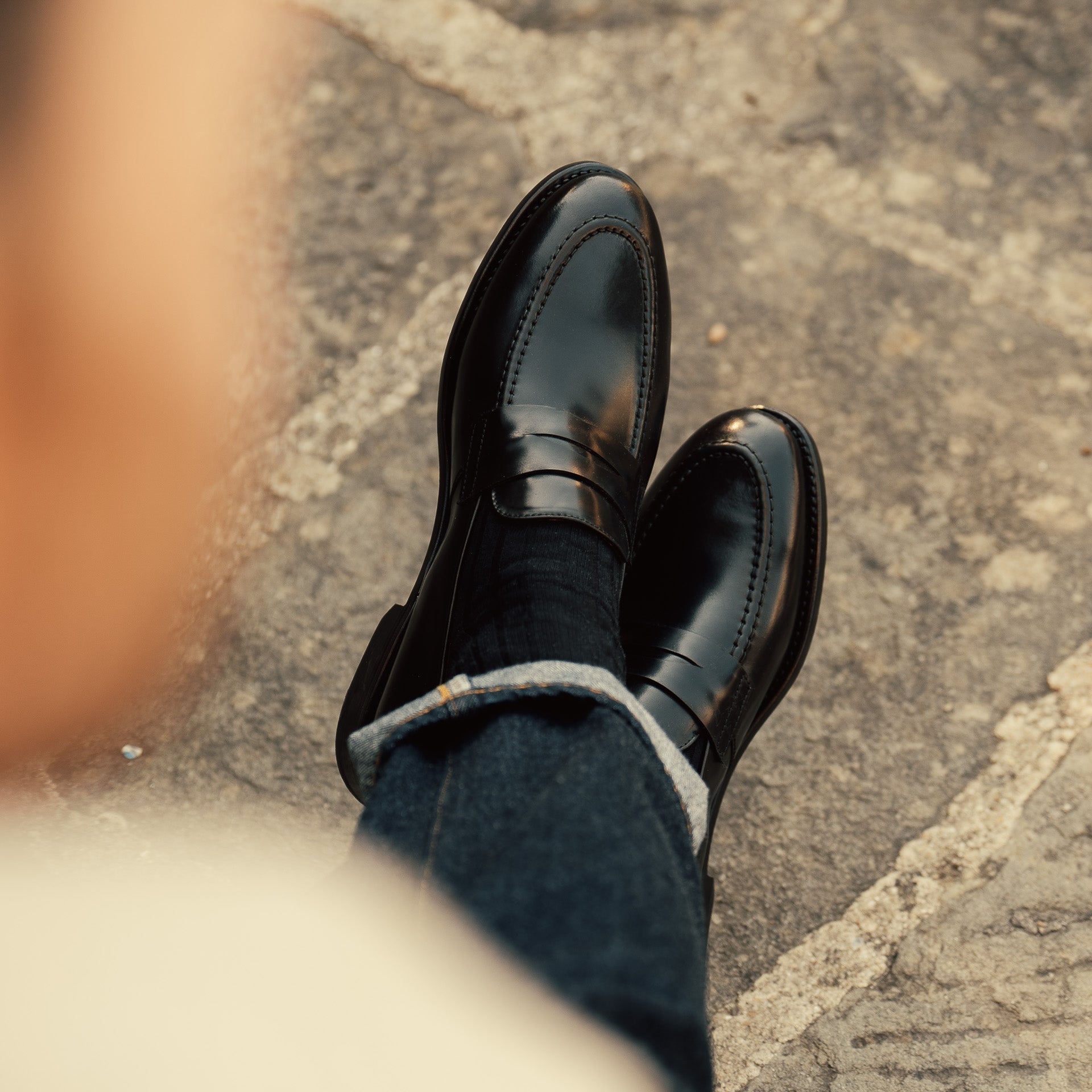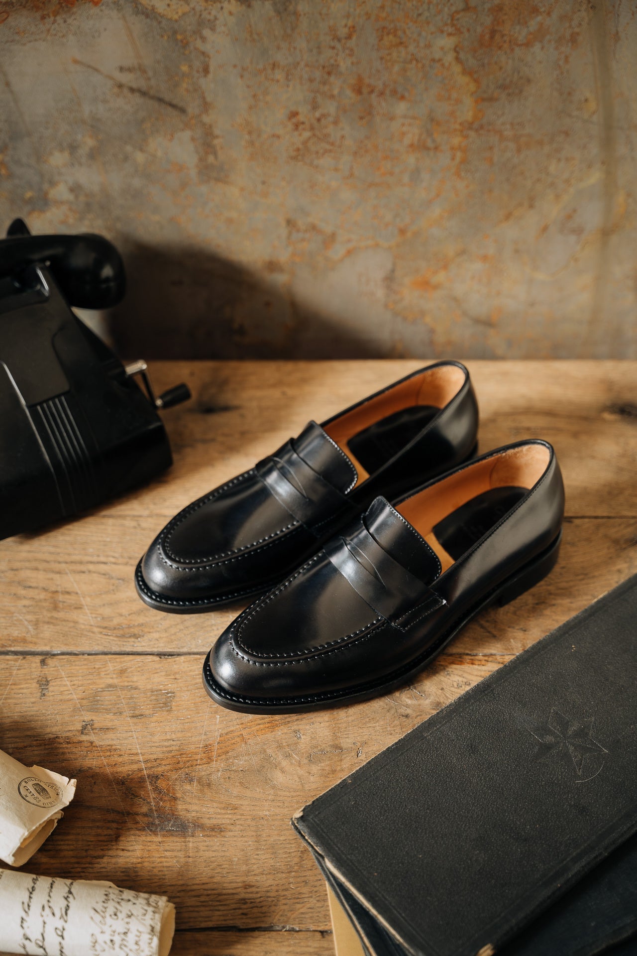 Artisanal Tapered Penny Loafers in black cordovan with a waxed leather sole, perfect for either tailored suits or more casual outfits. Completed using the Goodyear method, they are made to be long-lasting and durable. The leather is among the finest, requiring slow and precise working techniques, capable of enhancing the raw material. They are made with you in mind; a connoisseur who wants footwear that’s timeless - in all senses of the word.