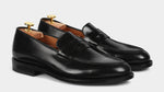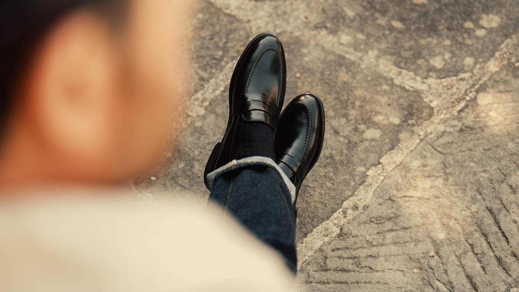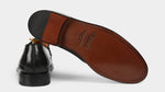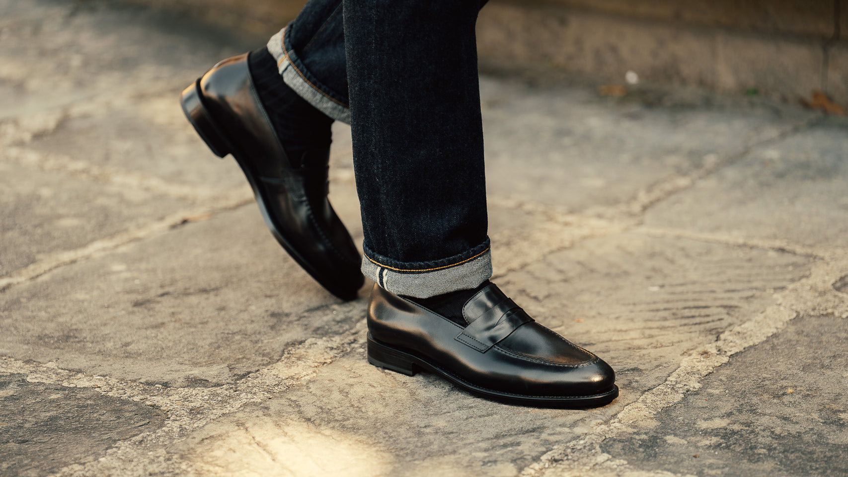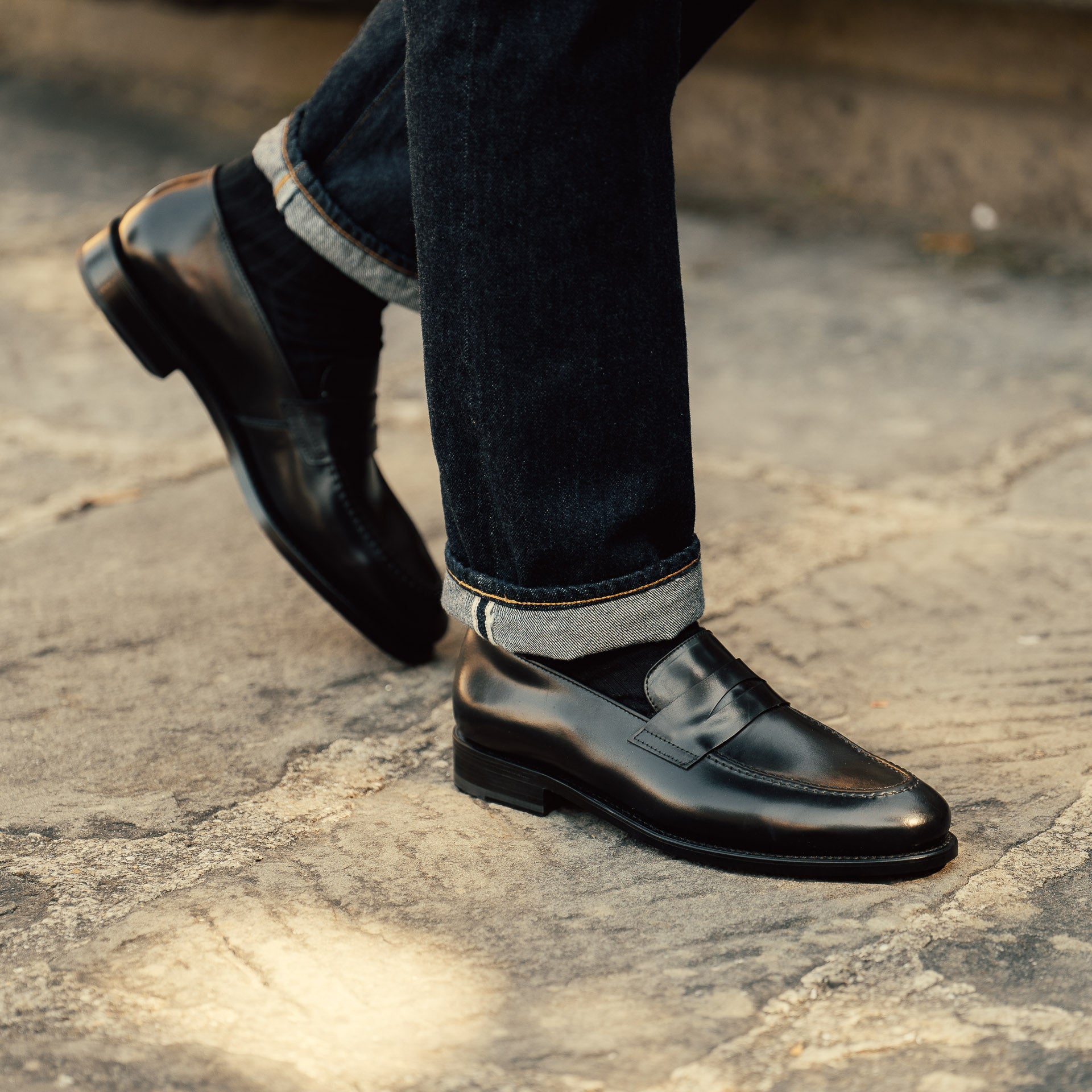 Artisanal Tapered Penny Loafers in black cordovan with a waxed leather sole, perfect for either tailored suits or more casual outfits. Completed using the Goodyear method, they are made to be long-lasting and durable. The leather is among the finest, requiring slow and precise working techniques, capable of enhancing the raw material. They are made with you in mind; a connoisseur who wants footwear that’s timeless - in all senses of the word.