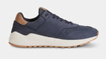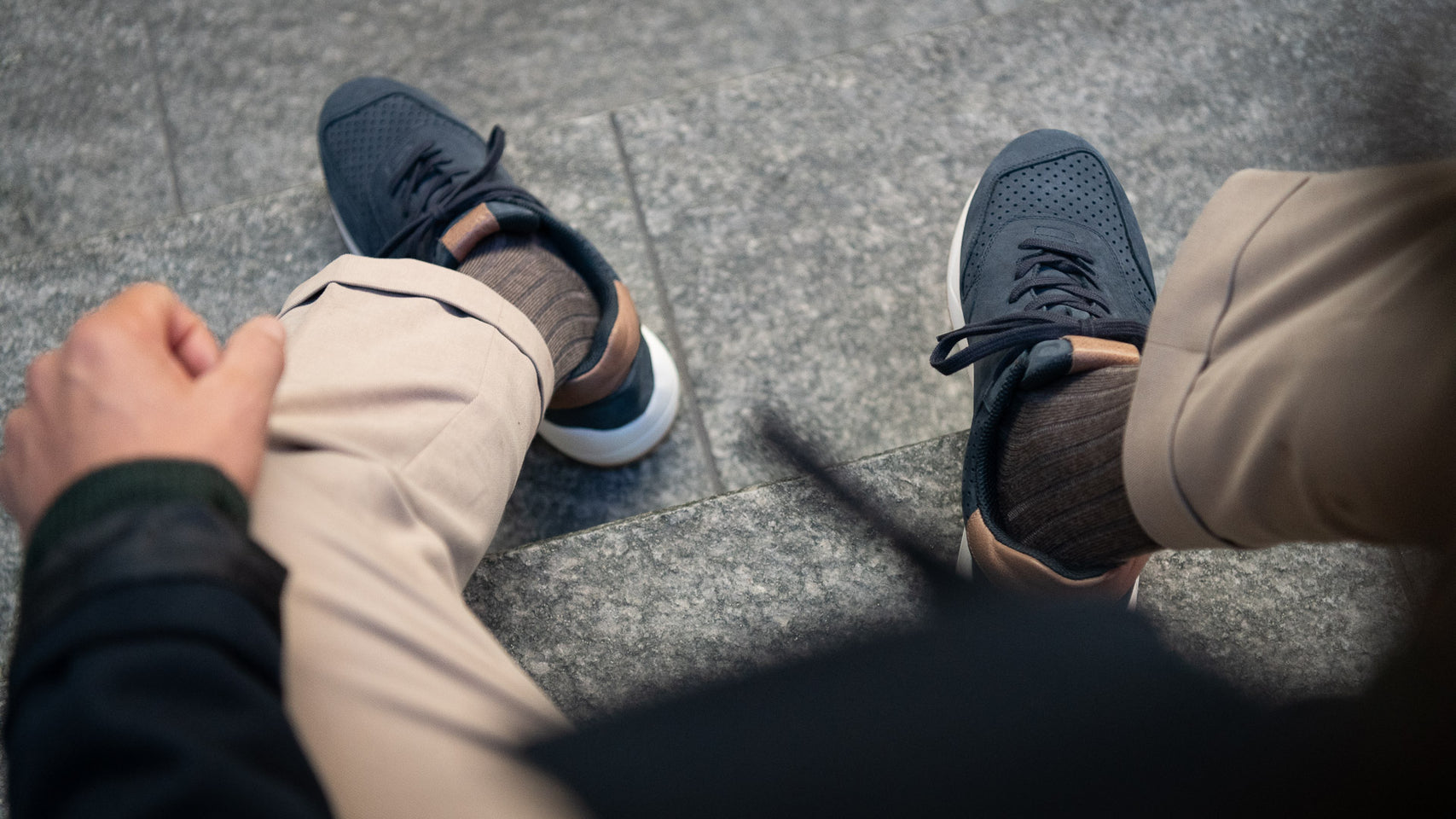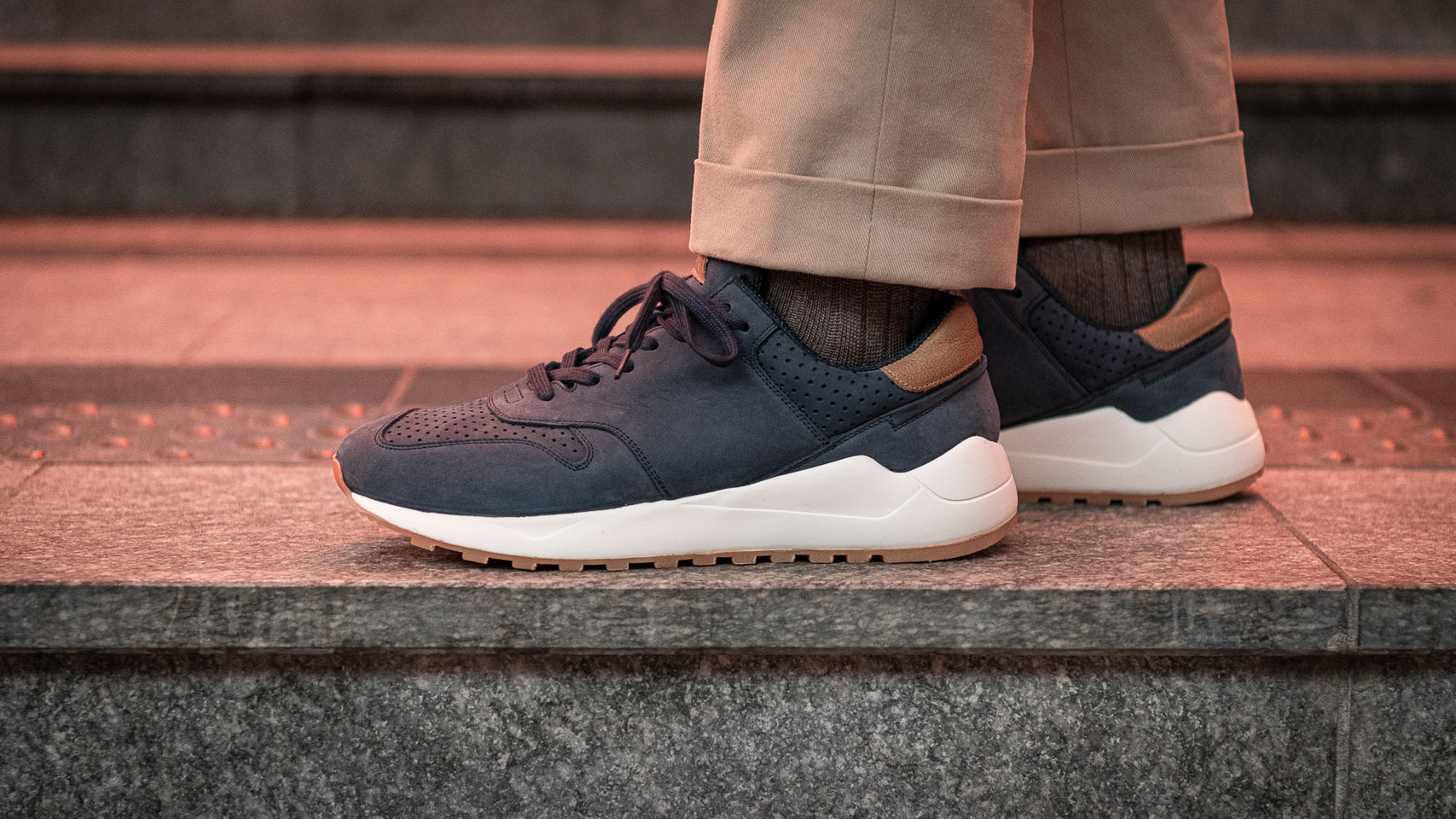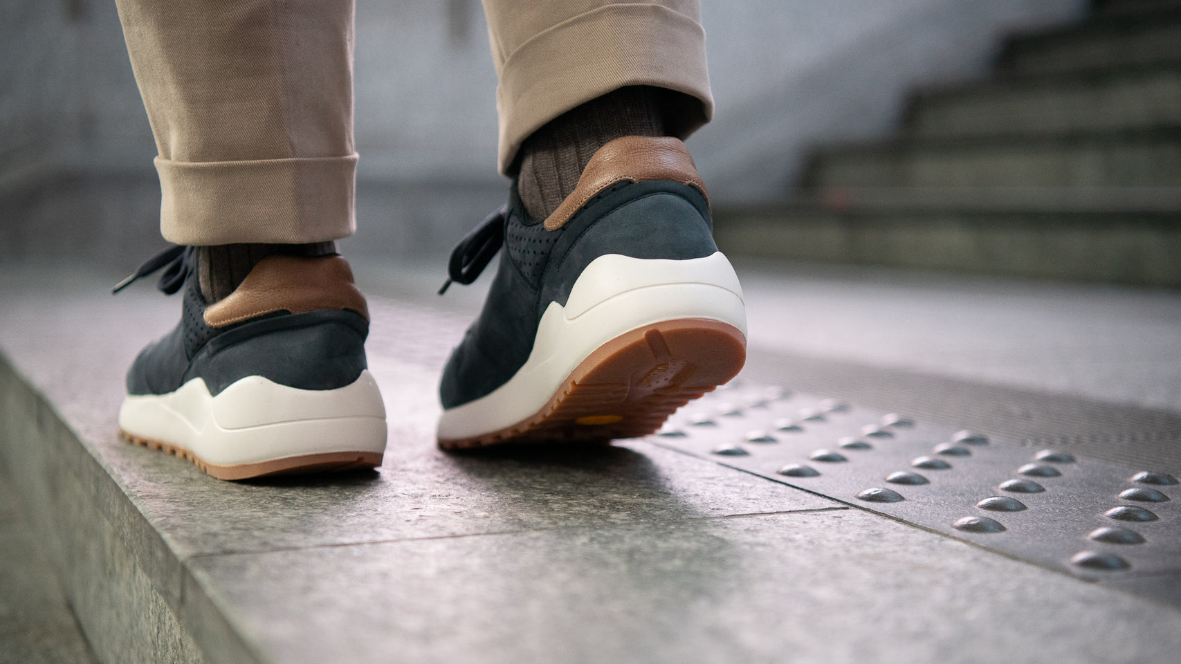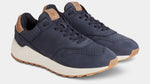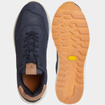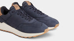 Our Running shoes in blue navy nubuck leather with Vibram rubber outsole. For your sporty – or simply more casual – days. Inside, we've lined them in microfiber to make them breathable and we've inserted a cushioned insole: it's removable, you can wash it easily. Wear your Running shoes with one of our dark grey mélange socks, a green shirt and a blue peacoat, or take them with you in the practical sackpack included in the shoebox.