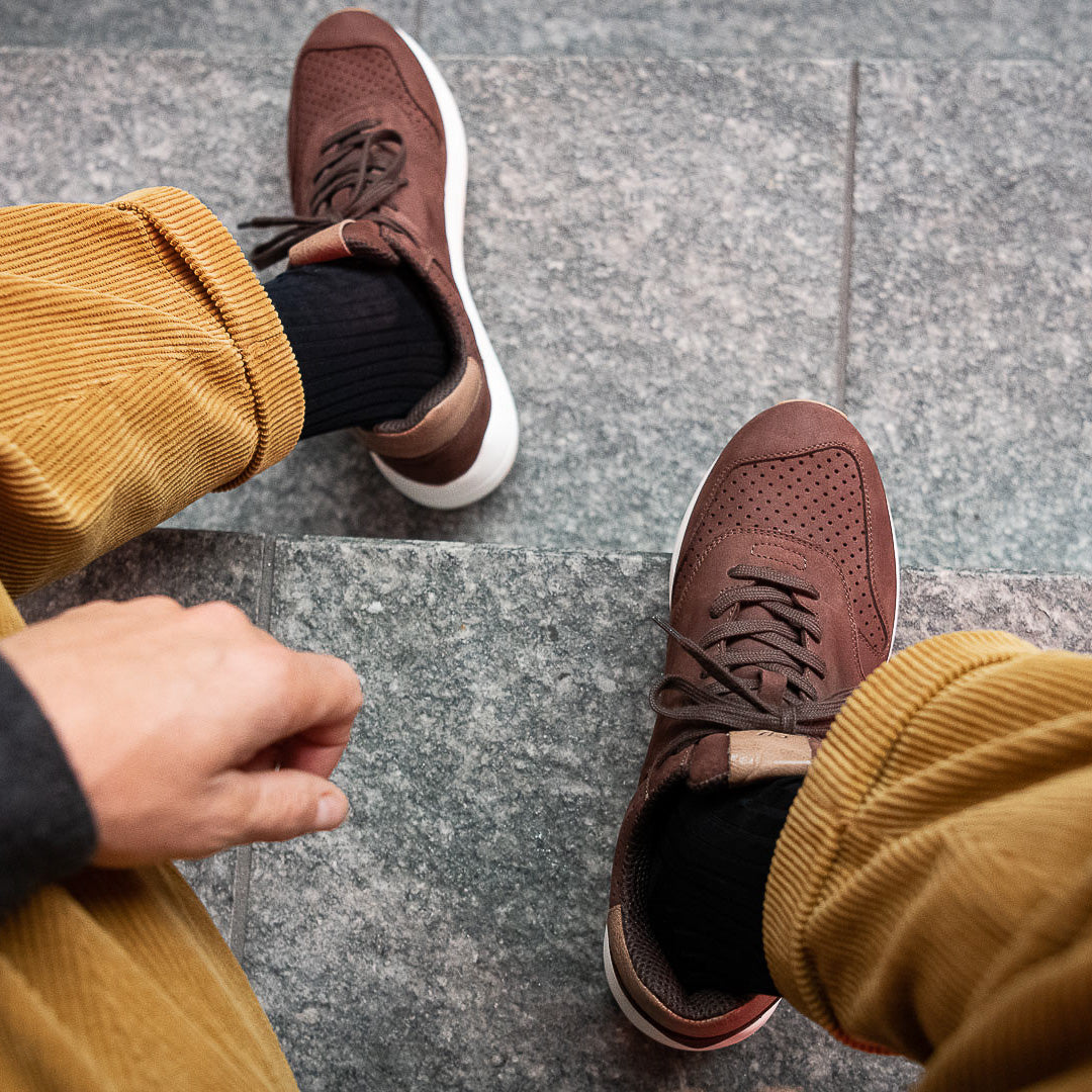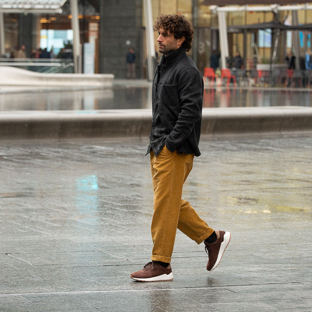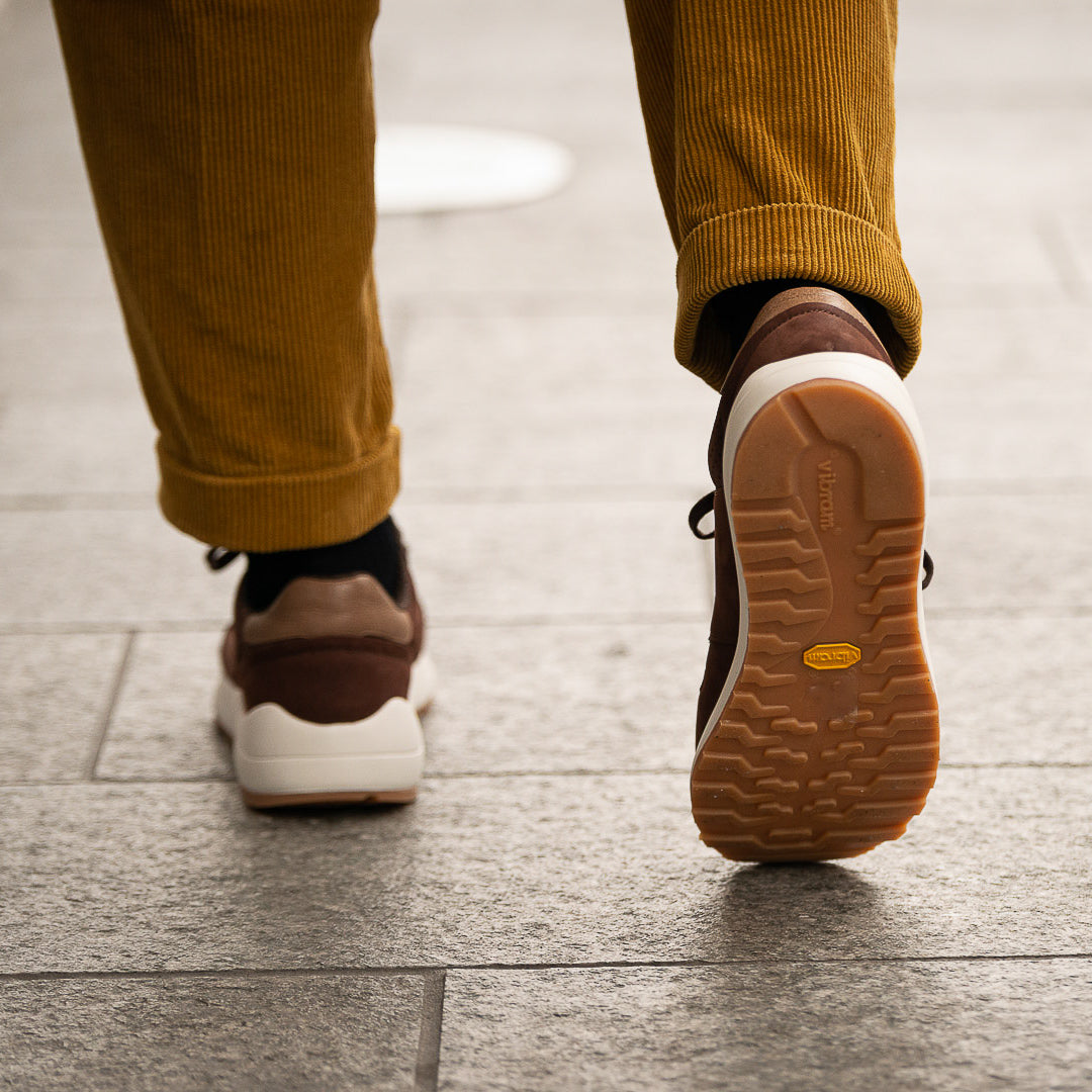 Our Running shoes in dark brown nubuck leather with Vibram rubber outsole. For your sporty – or simply more casual – days. Inside, we've lined them in microfiber to make them breathable and we've inserted a cushioned insole: it's removable, you can wash it easily. Wear your Running shoes with a checkered shirt and mustard-colored baggy pants, or take them with you in the practical sackpack included in the shoebox.