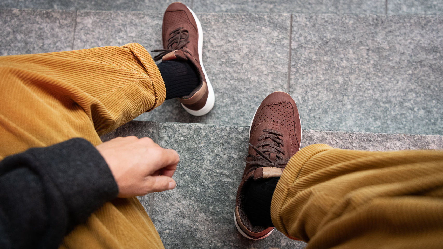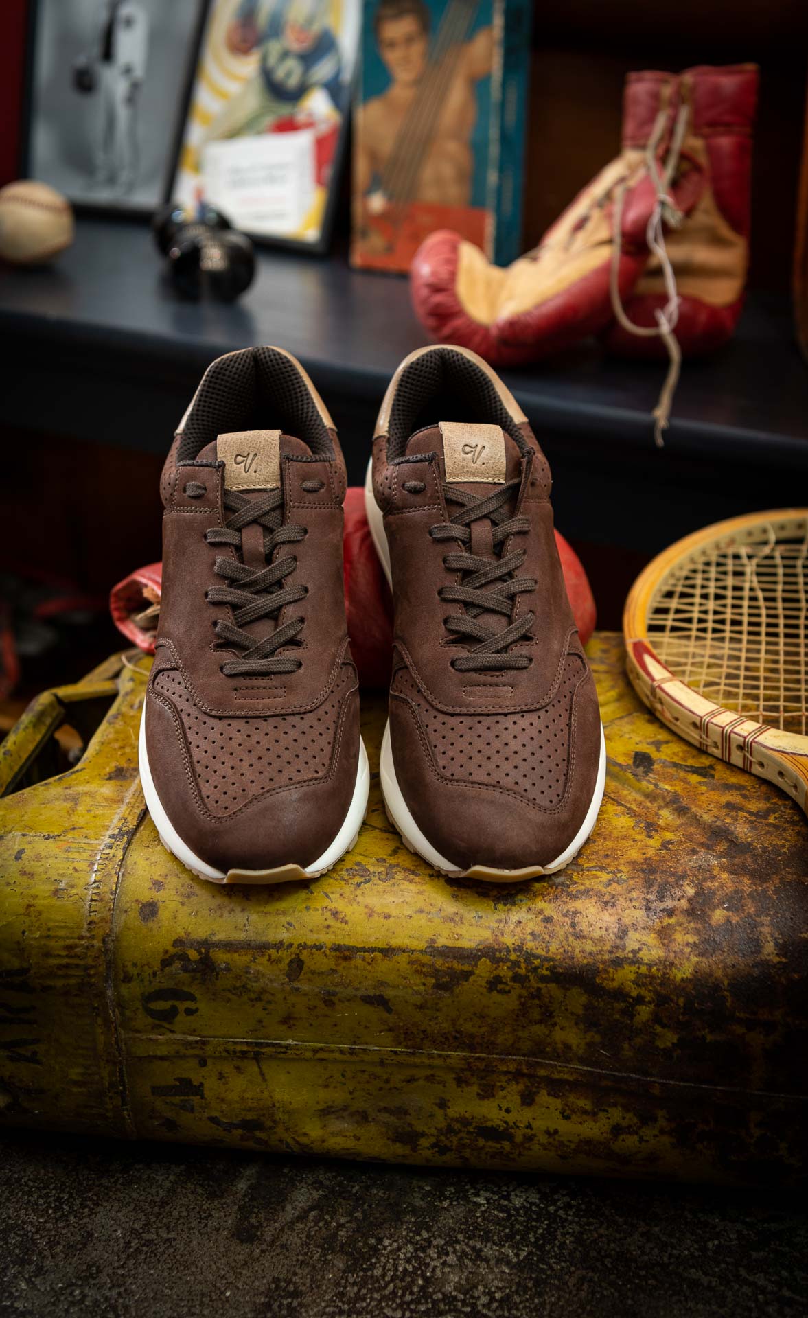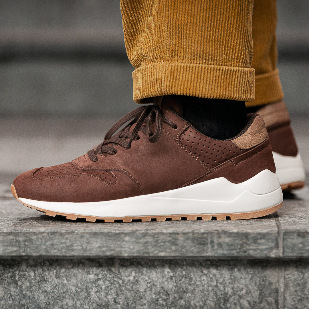 Our Running shoes in dark brown nubuck leather with Vibram rubber outsole. For your sporty – or simply more casual – days. Inside, we've lined them in microfiber to make them breathable and we've inserted a cushioned insole: it's removable, you can wash it easily. Wear your Running shoes with a checkered shirt and mustard-colored baggy pants, or take them with you in the practical sackpack included in the shoebox.