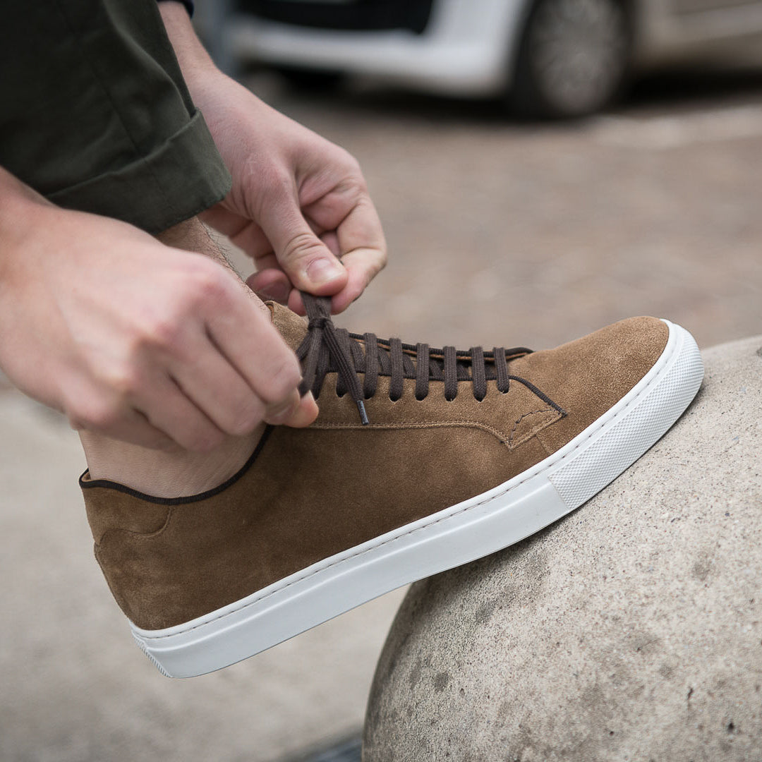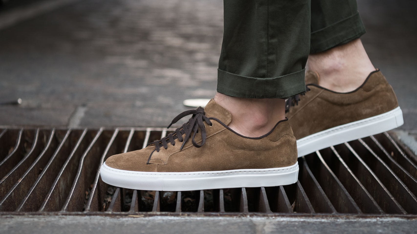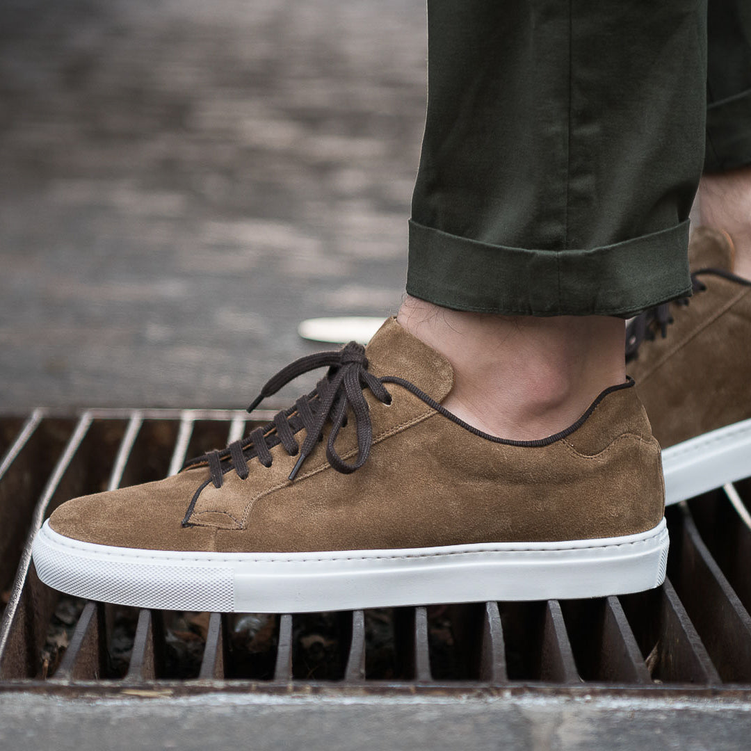 They are the sober and minimal Sneakers for the man who loves casual style clothing. Their sole is white, typical of pure sporty shoes. With their beige suede leather and rubber sole, they're the shoes the freelancer spends his days in at the studio or what the modern man wears on his weekend walks. Match them with a pair of chinos and a white 100% cotton Oxford collar shirt.