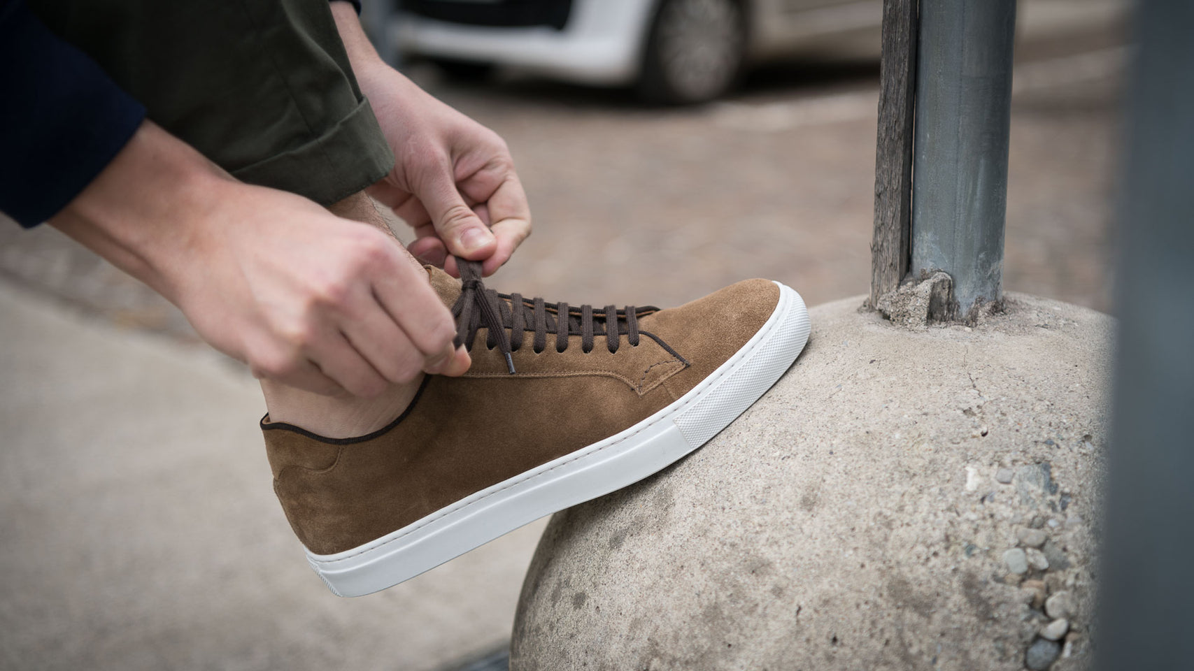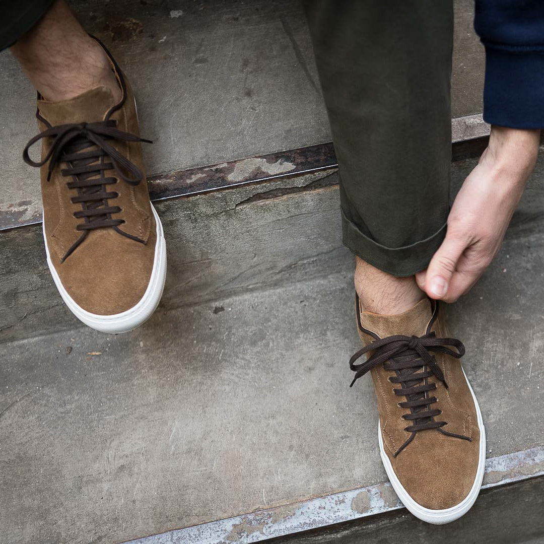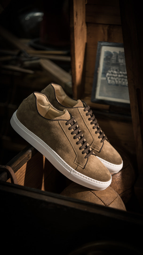 They are the sober and minimal Sneakers for the man who loves casual style clothing. Their sole is white, typical of pure sporty shoes. With their beige suede leather and rubber sole, they're the shoes the freelancer spends his days in at the studio or what the modern man wears on his weekend walks. Match them with a pair of chinos and a white 100% cotton Oxford collar shirt.