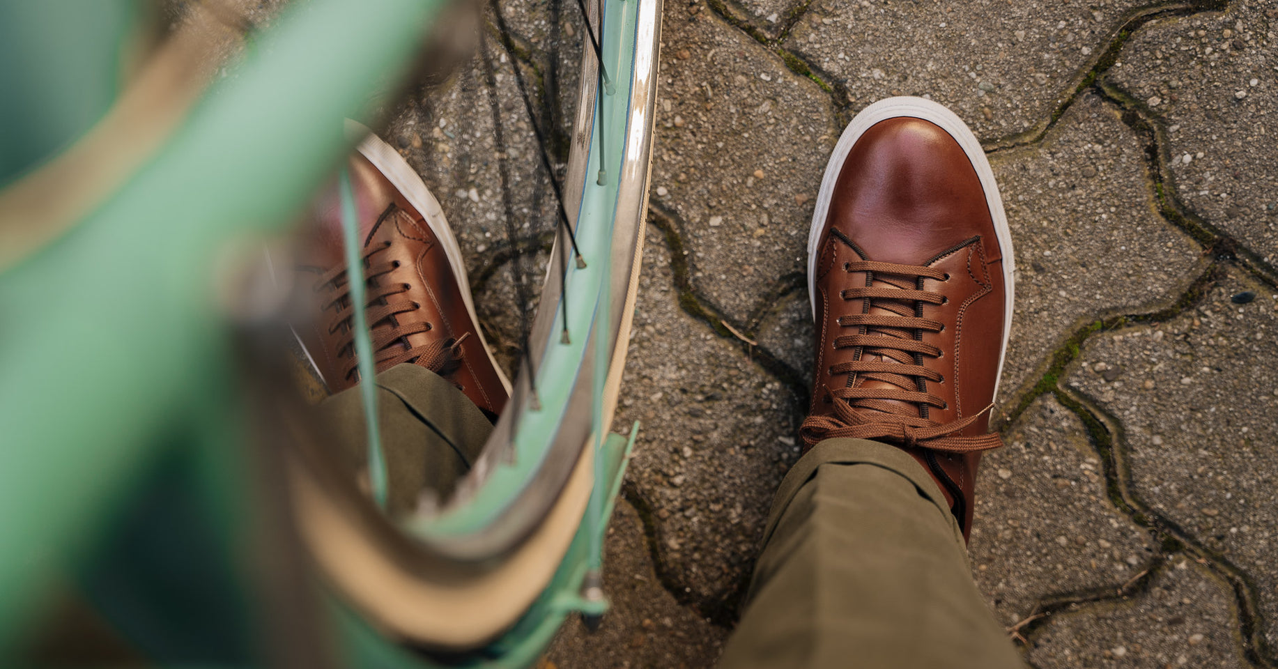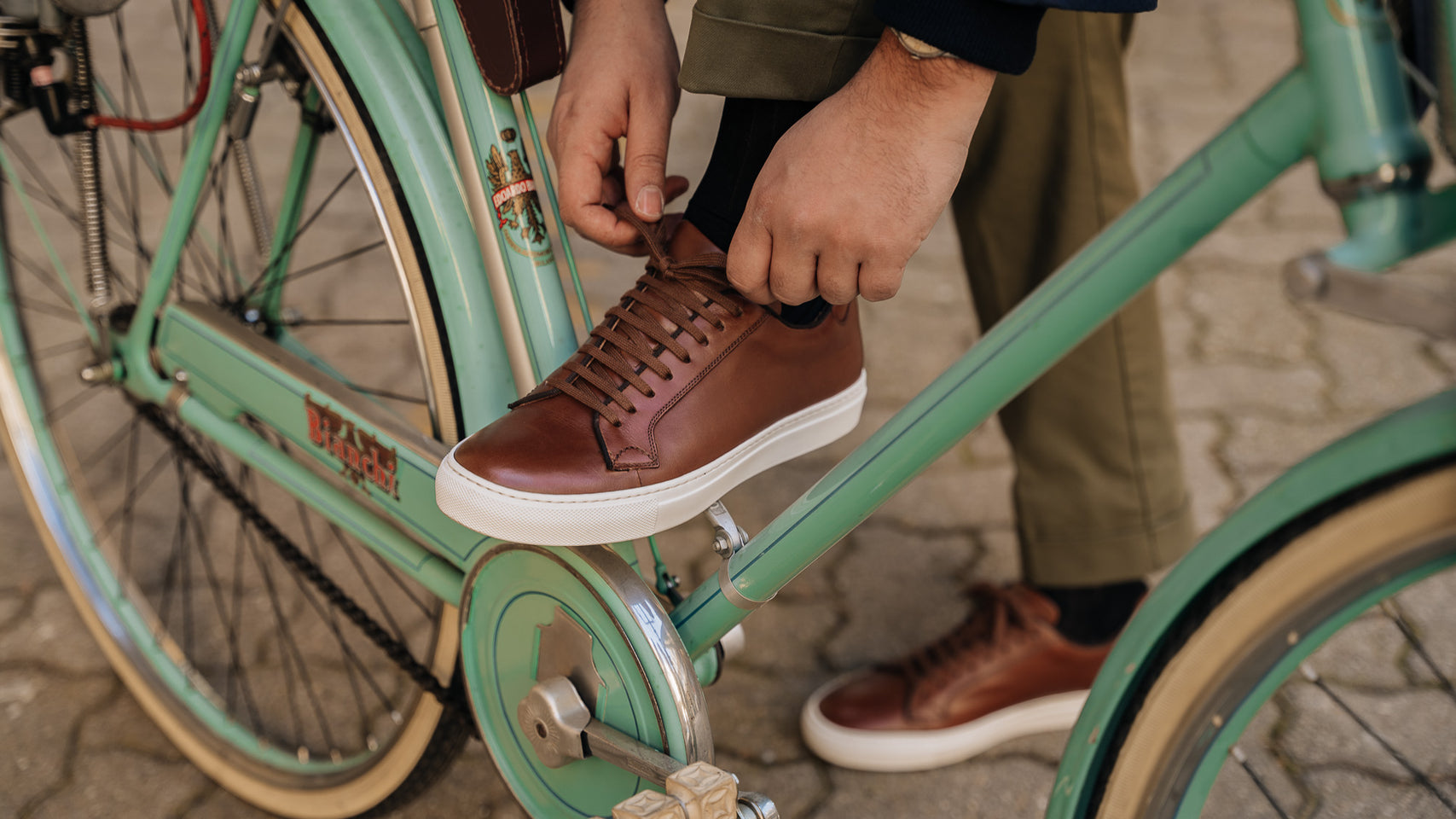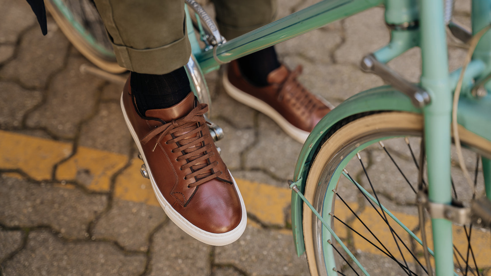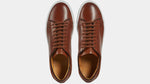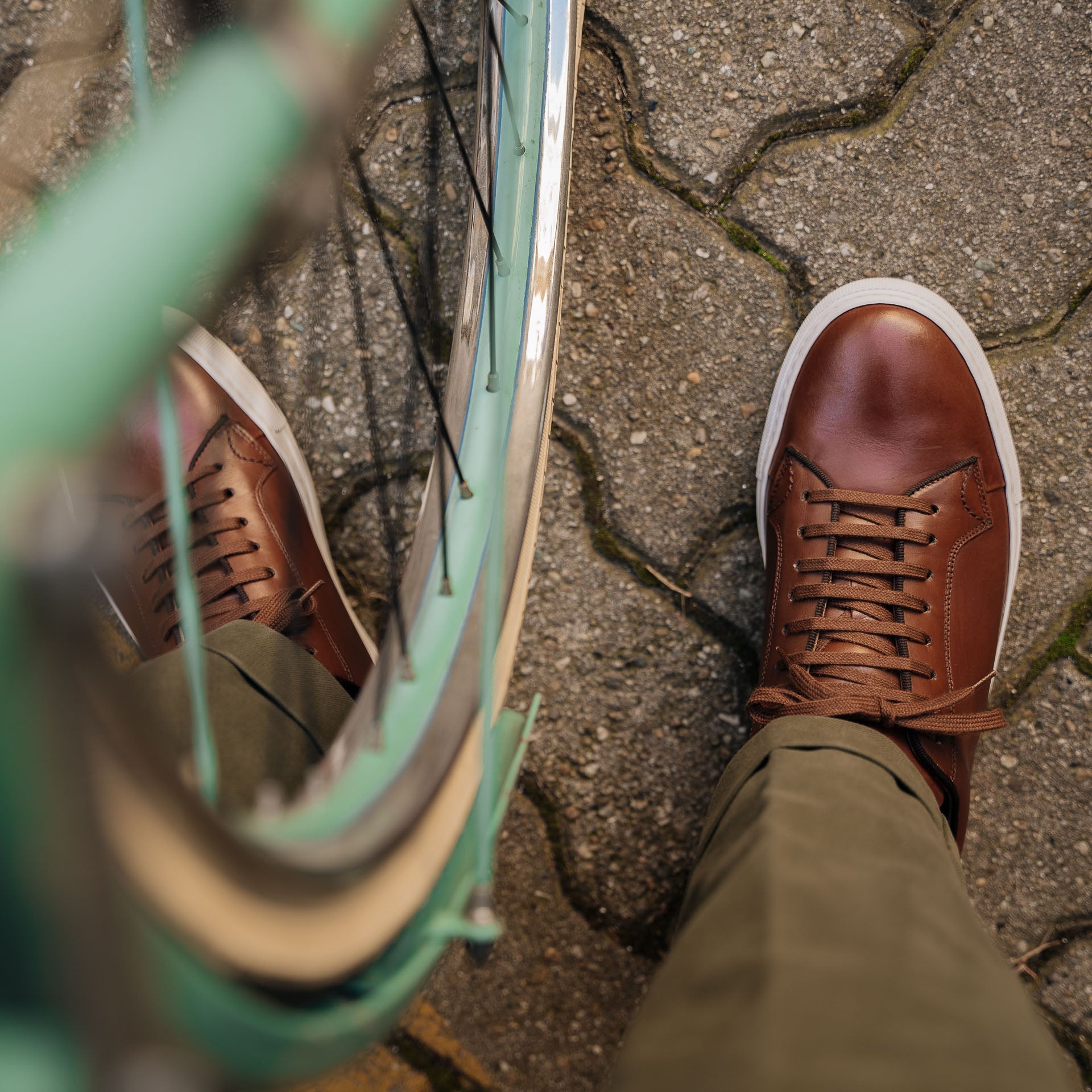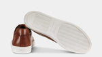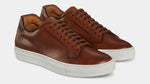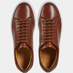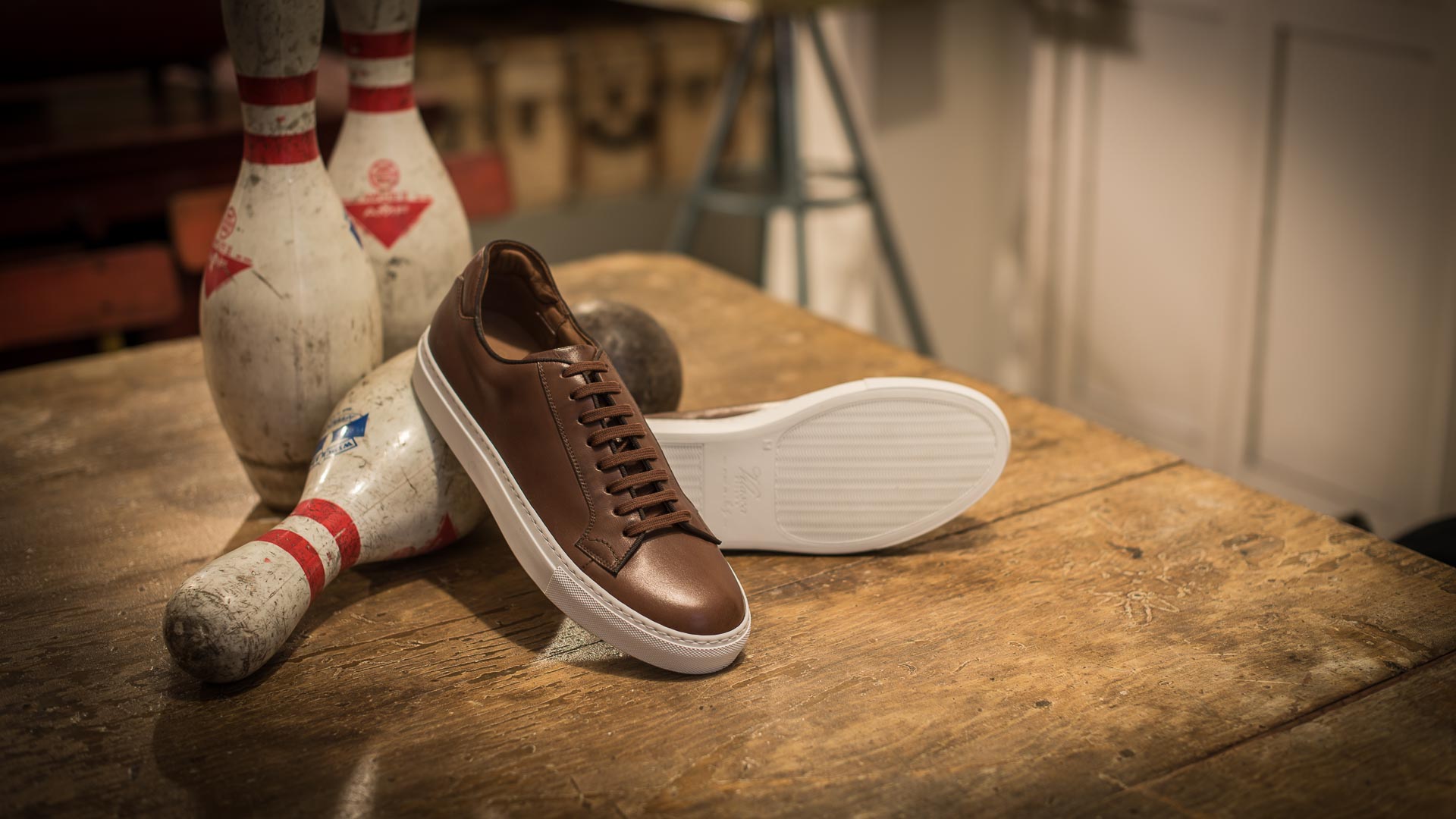 Sneakers with elegant lines and a slightly vintage feel. Made from smooth calfskin leather with a rubber sole, they make your sportswear outfits impeccable and your days in a suit memorable. We wore them with a blue mackintosh in a slightly retro shape, a denim shirt and chinos.