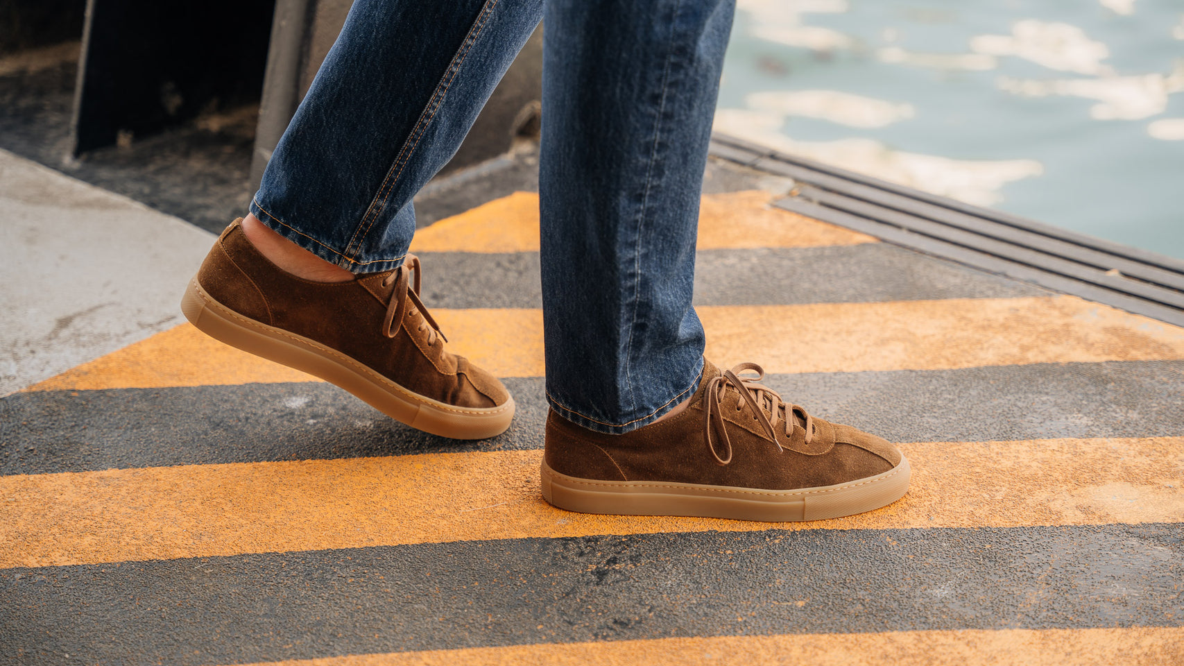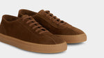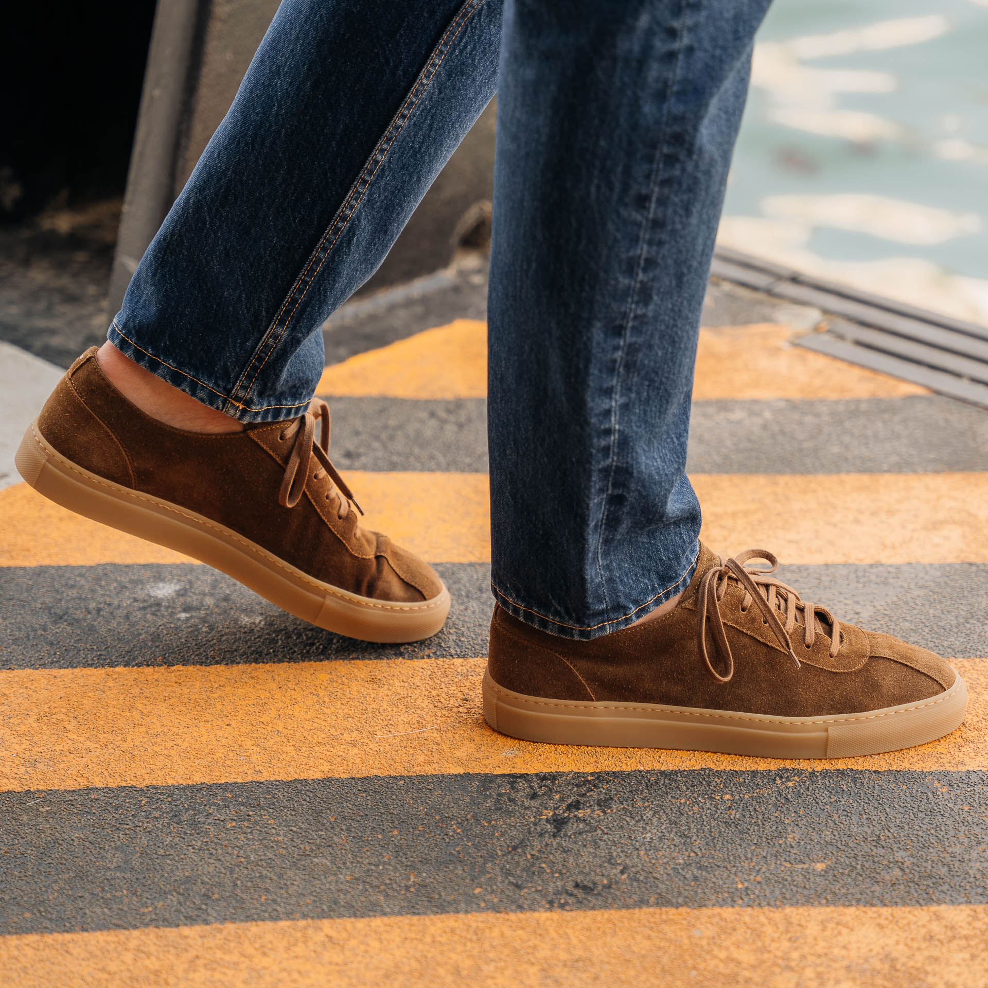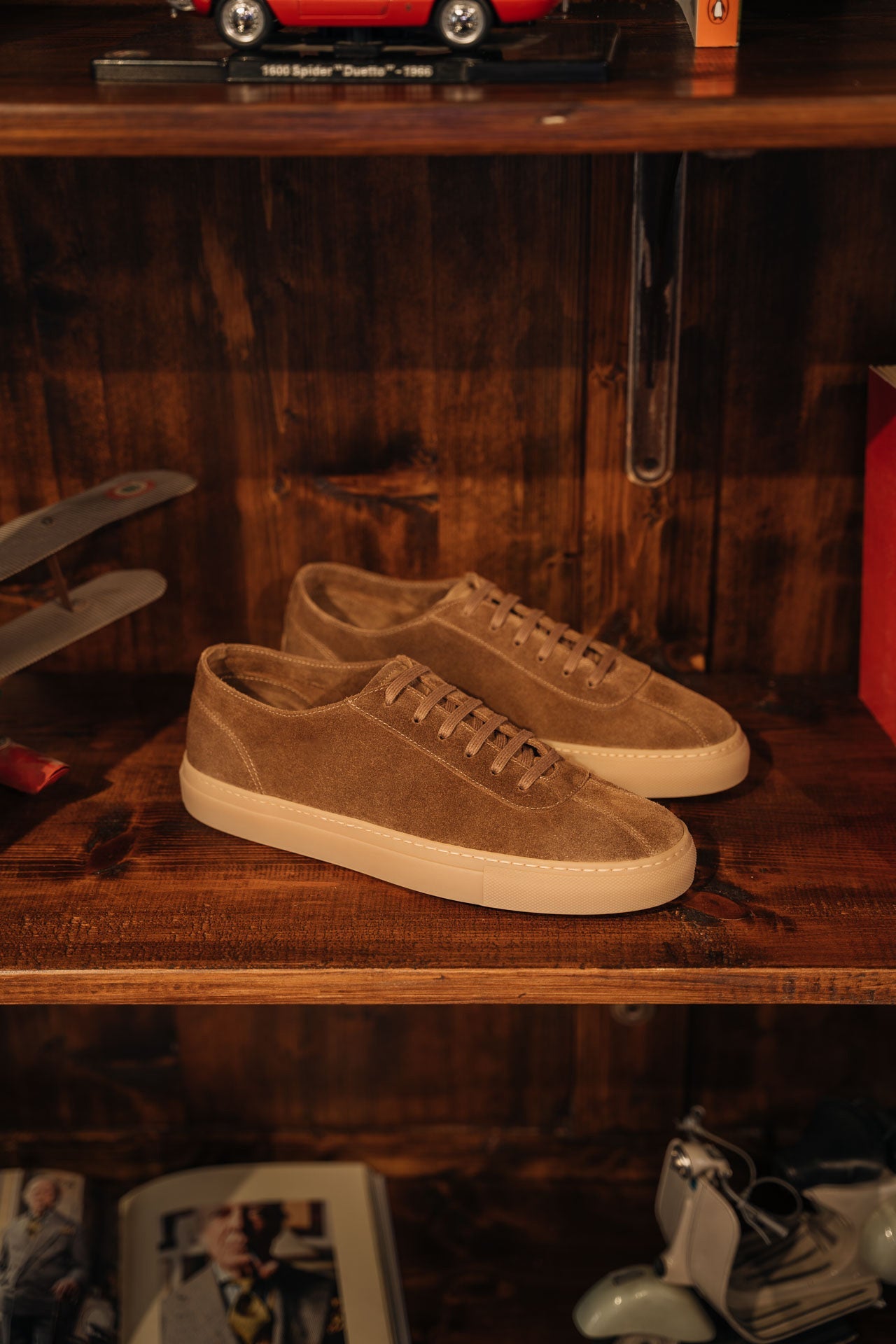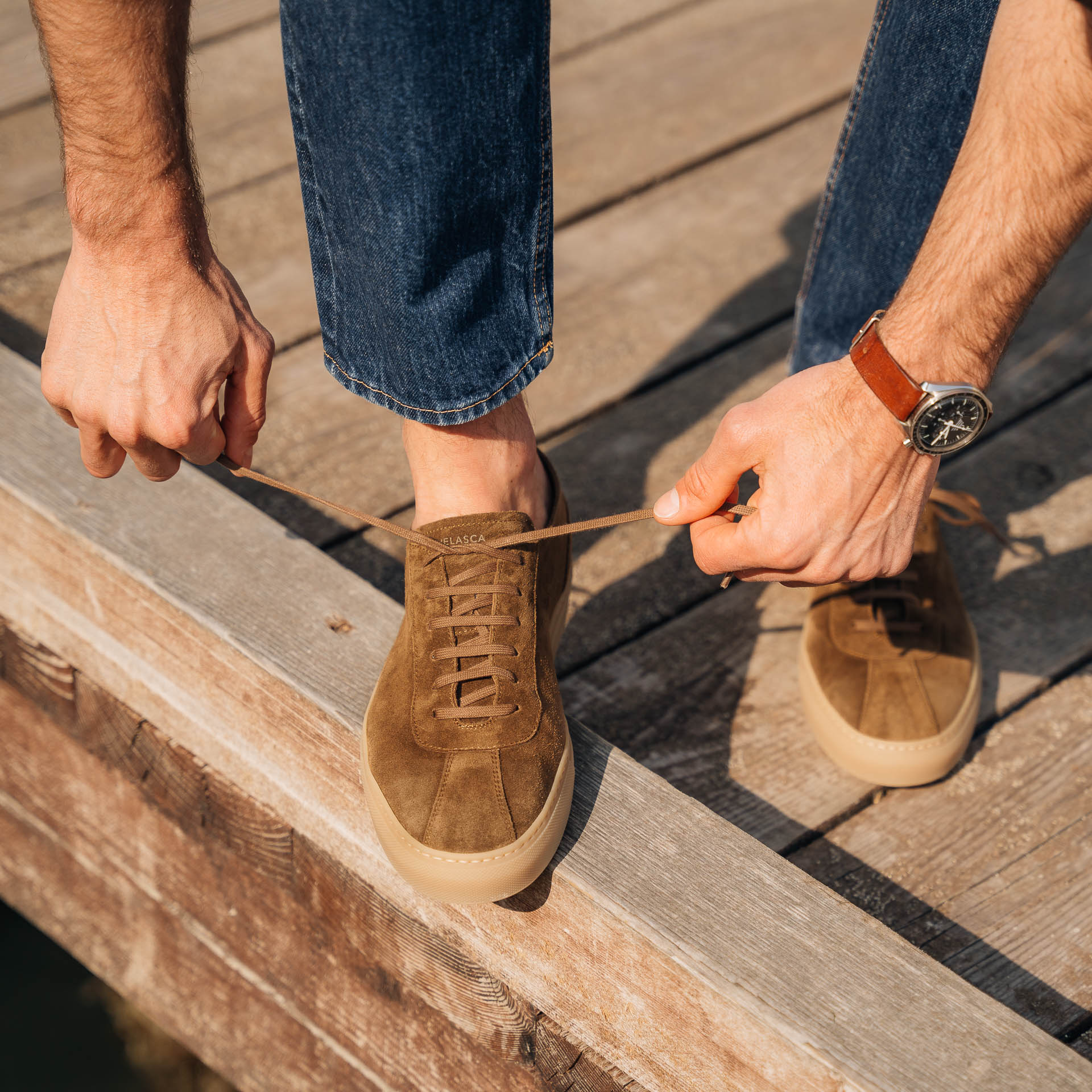 This unlined sneaker in suede calfskin with an amber rubber sole evokes earthy shades and a vintage feel. Light and soft on the foot, it has a removable insole. The logo has been specially redesigned for this sporty line with simple profiles: in a word, essential. Pair this shoe with a green denim jacket, patterned shirt and a pair of jeans.