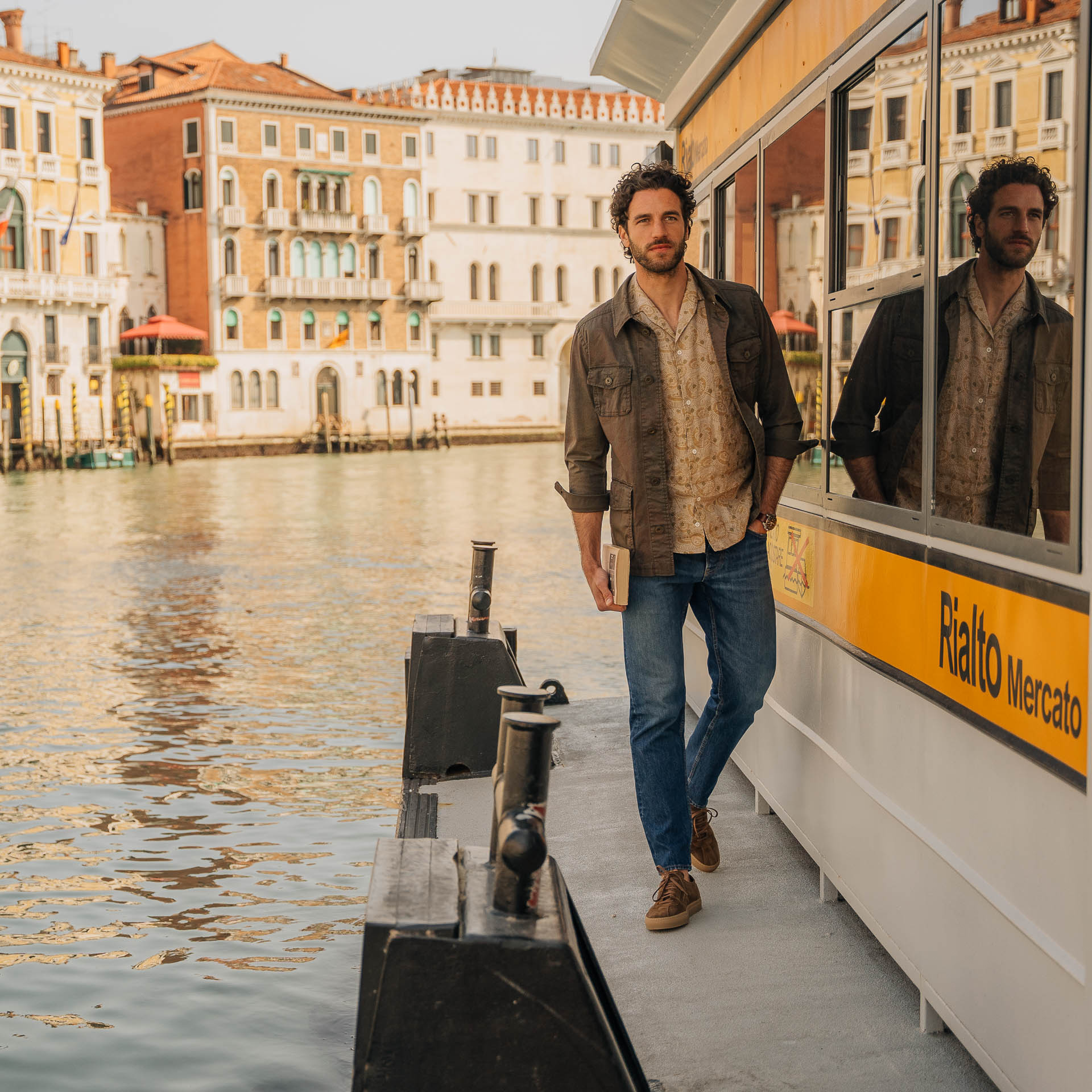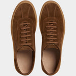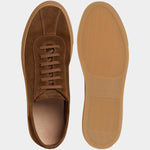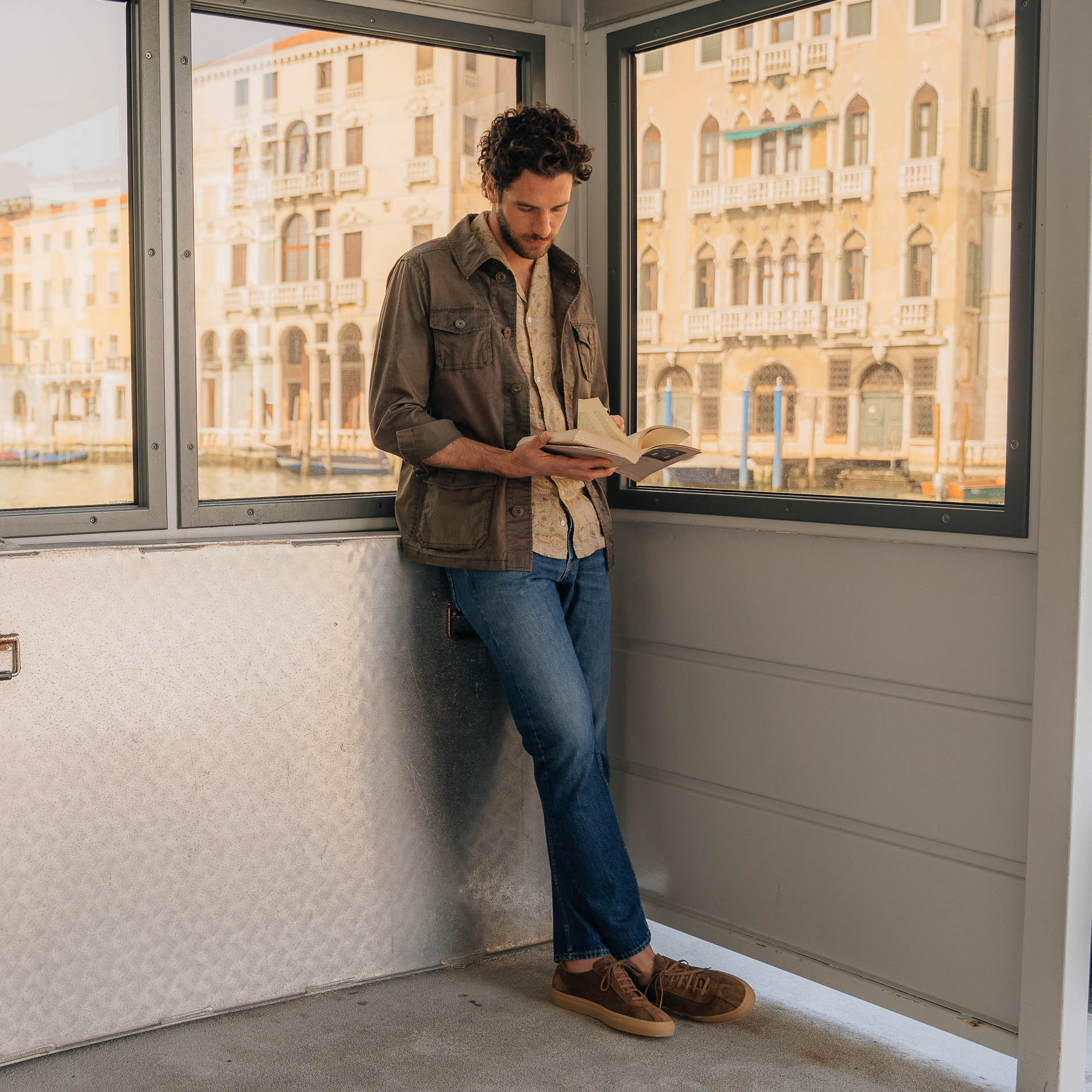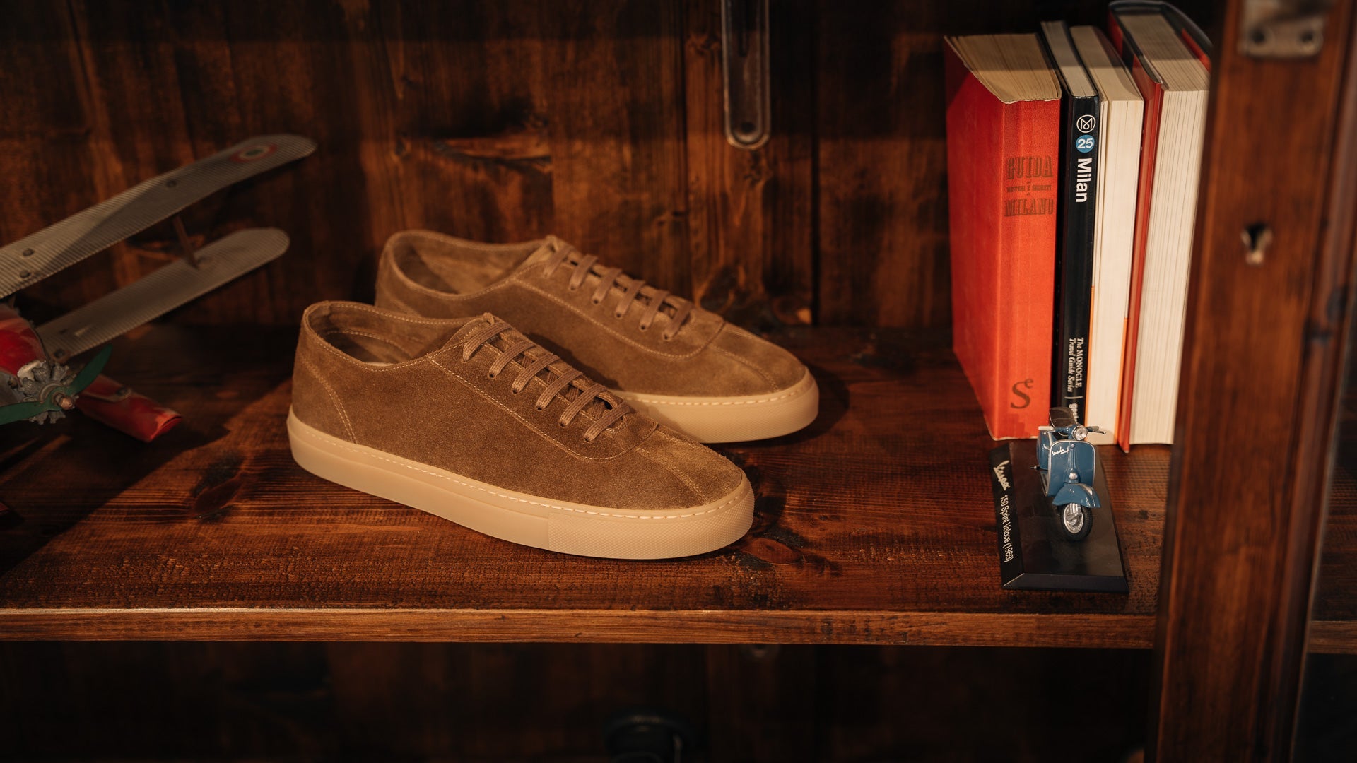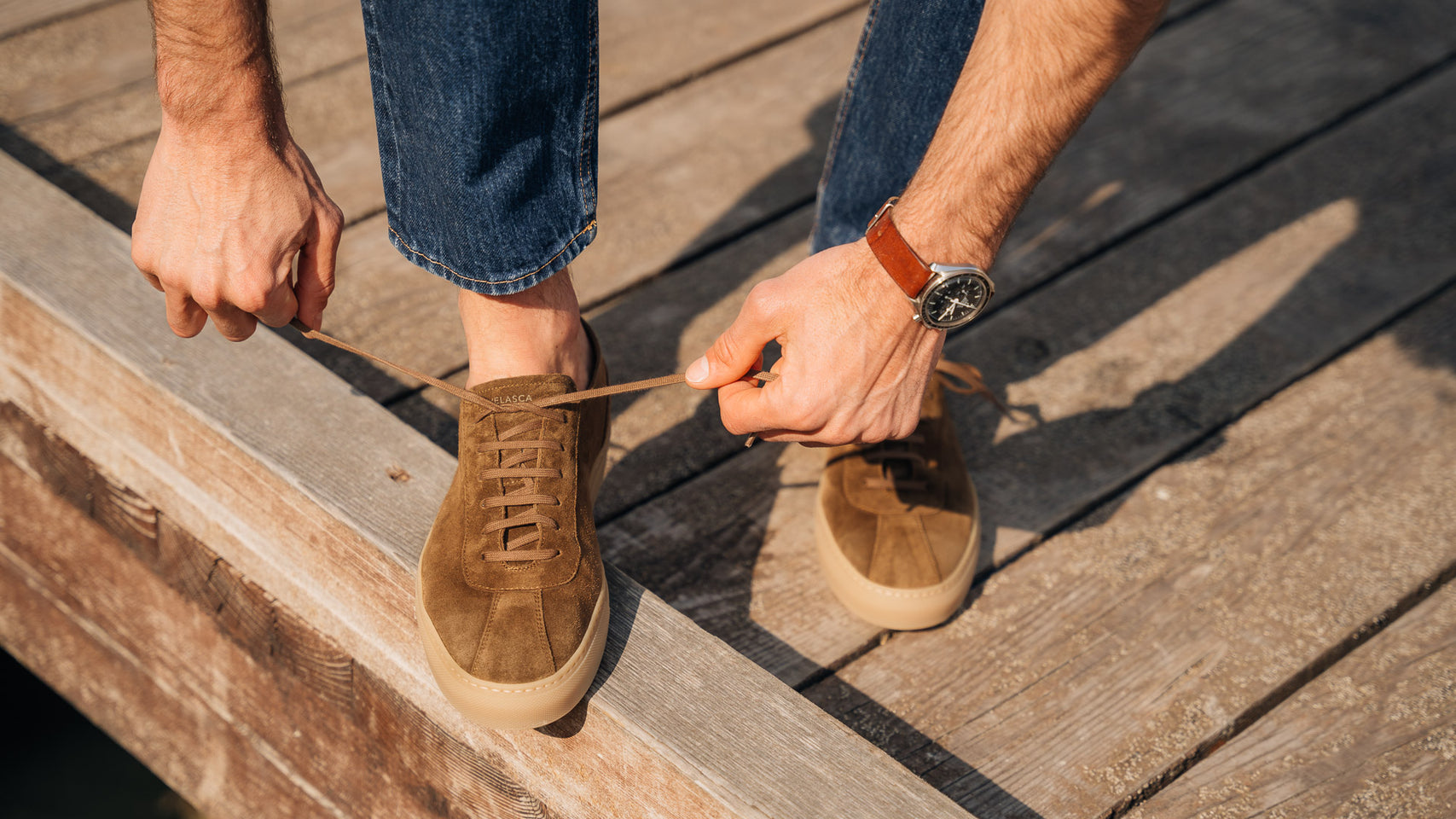 This unlined sneaker in suede calfskin with an amber rubber sole evokes earthy shades and a vintage feel. Light and soft on the foot, it has a removable insole. The logo has been specially redesigned for this sporty line with simple profiles: in a word, essential. Pair this shoe with a green denim jacket, patterned shirt and a pair of jeans.