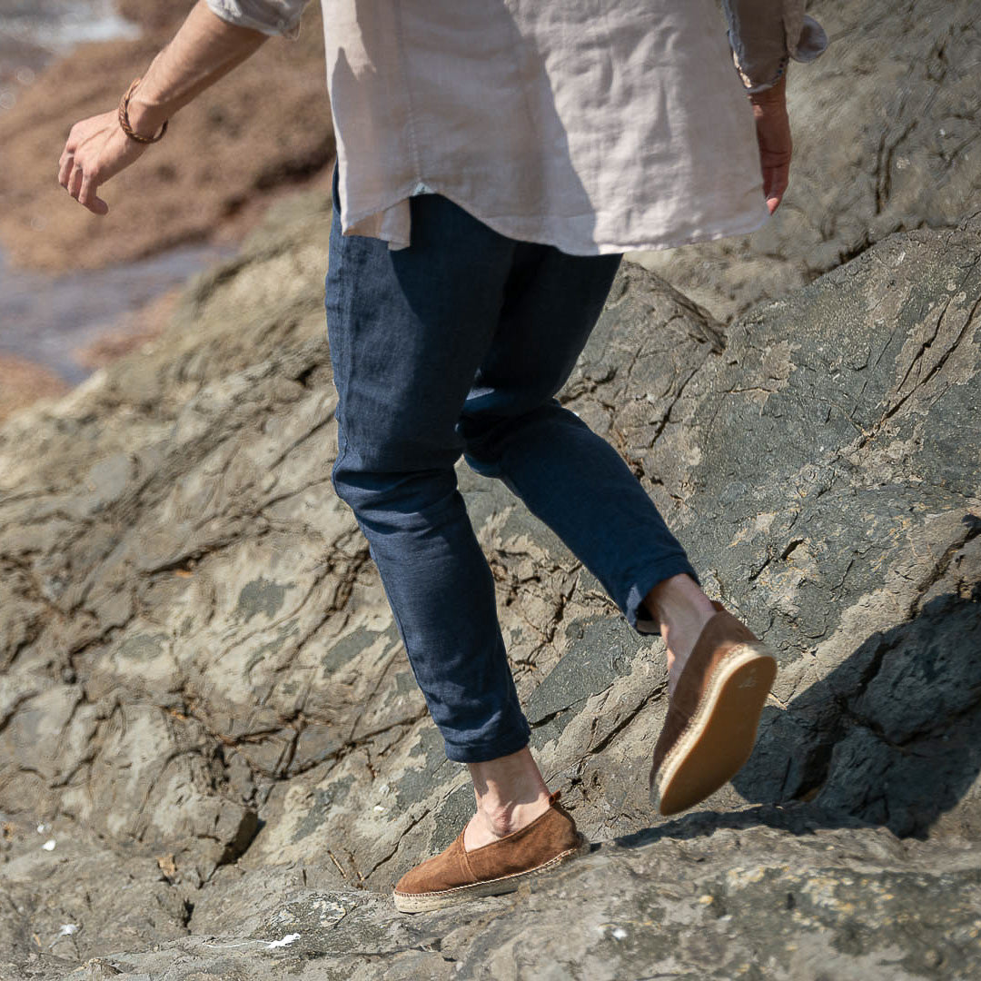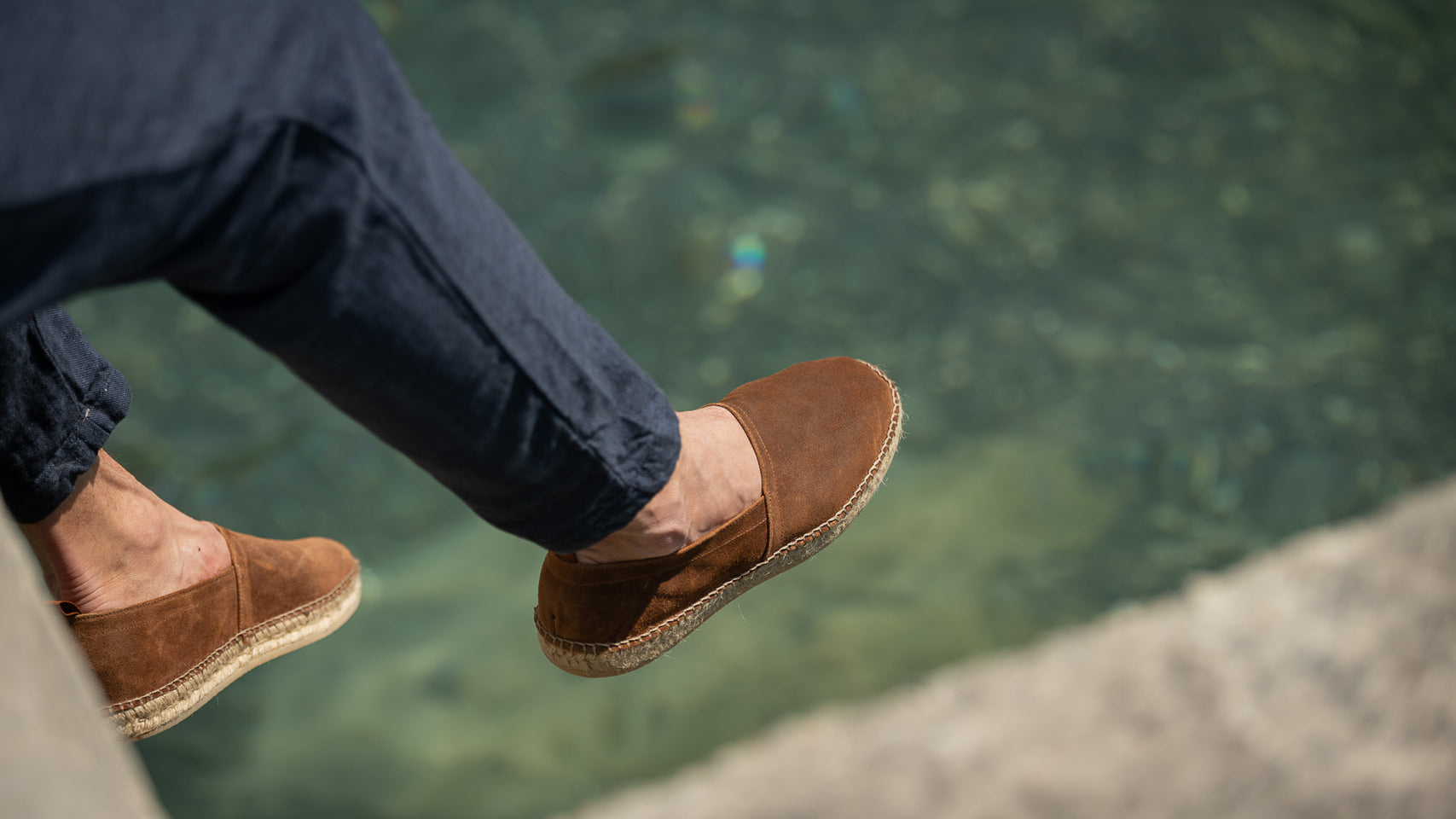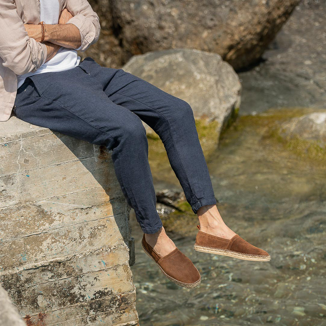 A tobacco brown suede leather upper and a sole made with a mix of natural jute and rubber. Designed to be worn effortlessly on the narrow streets of those small Italian islands that made “La Dolce Vita” famous around the world. An intense smell of salt water, rosemary plants and lemon trees, these are the visual postcards signed by “Inguriatt”. The Espadrilles in tobacco brown call for a light chino - the ones with a nice cuff - and a crew neck t-shirt in oil green. No belt, thanks.