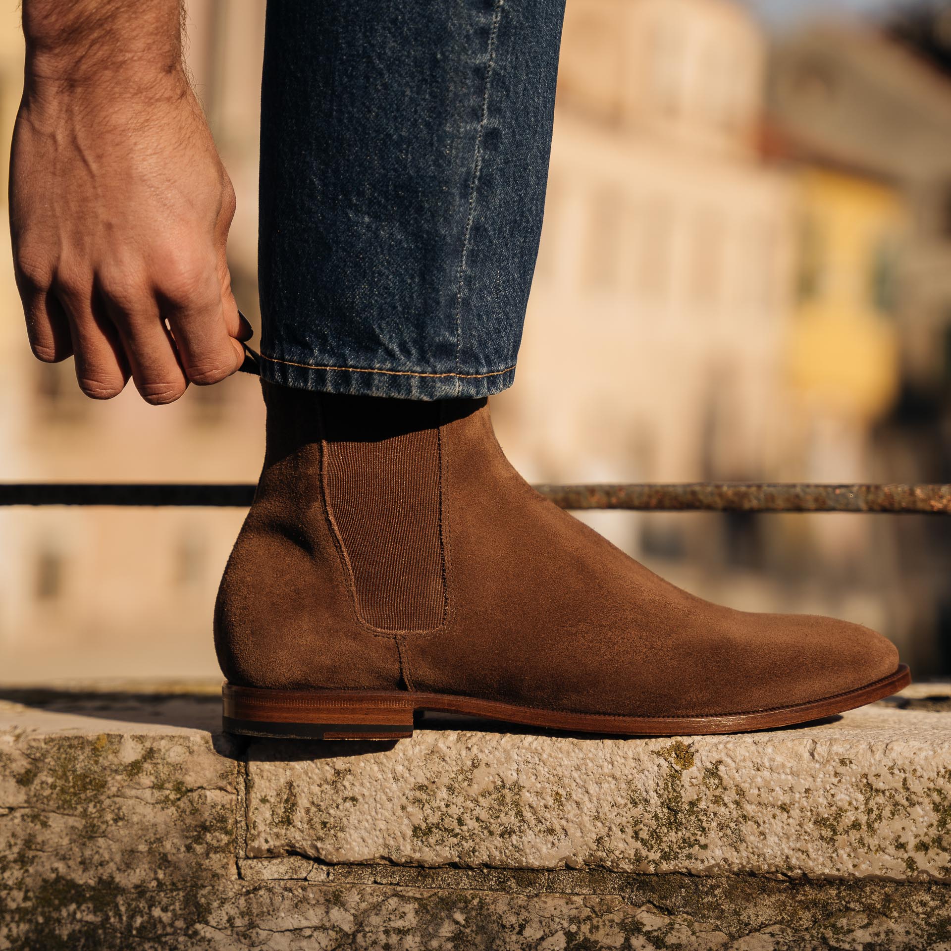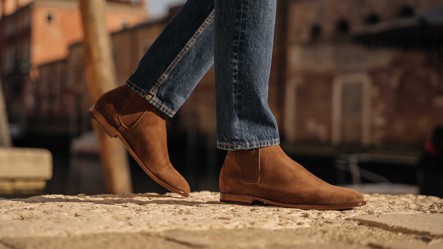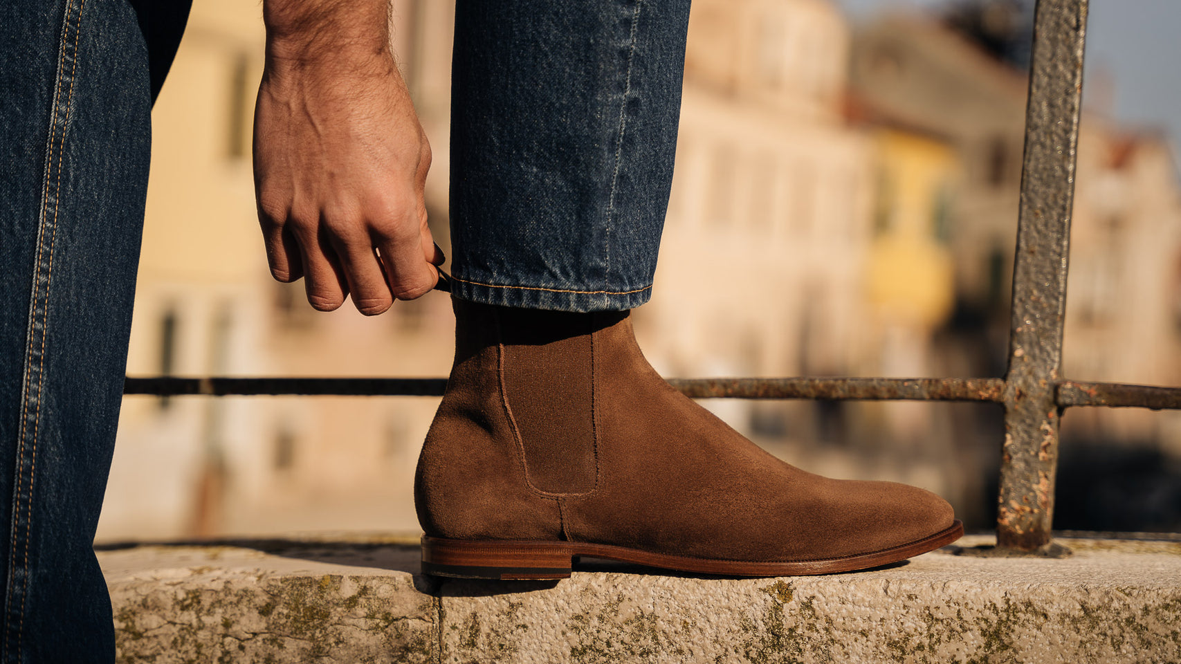 The Chelsea boot with its unmistakable side elastic is revealed in all its lightness: an even more flexible leather sole and unlined interior, with a small leather reinforcement on the heel for better comfort. Pair it with a light trench coat, a serafino shirt and a pair of jeans.
