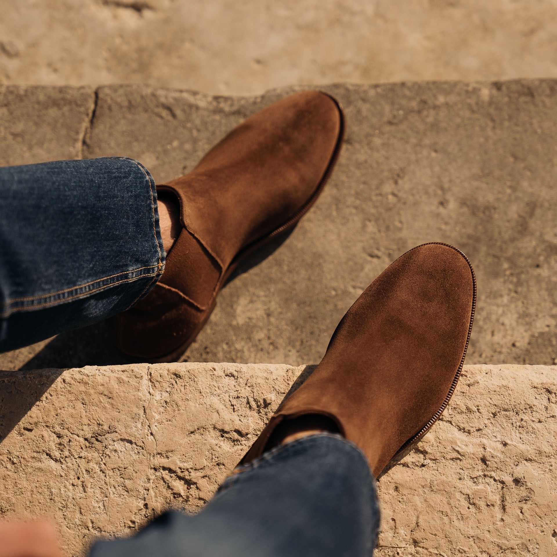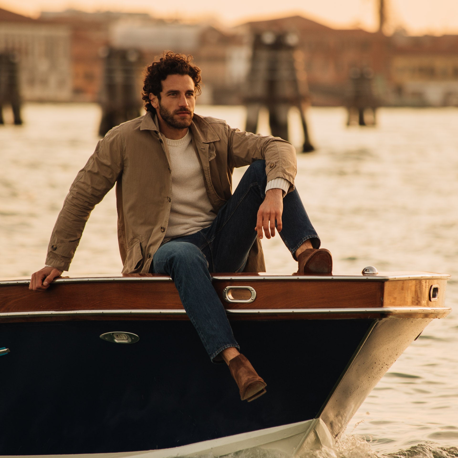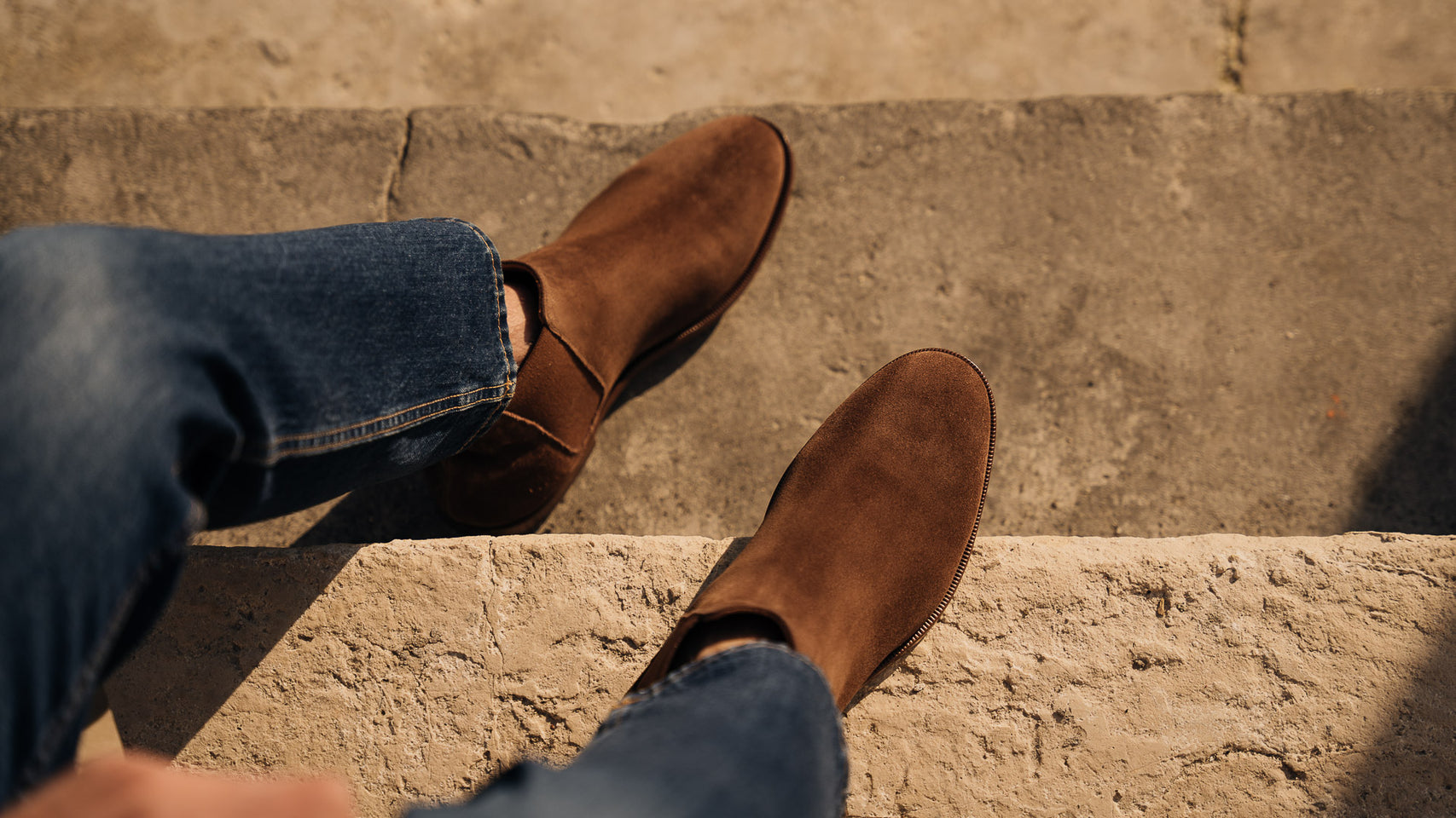 The Chelsea boot with its unmistakable side elastic is revealed in all its lightness: an even more flexible leather sole and unlined interior, with a small leather reinforcement on the heel for better comfort. Pair it with a light trench coat, a serafino shirt and a pair of jeans.