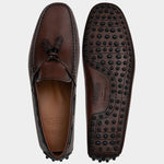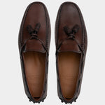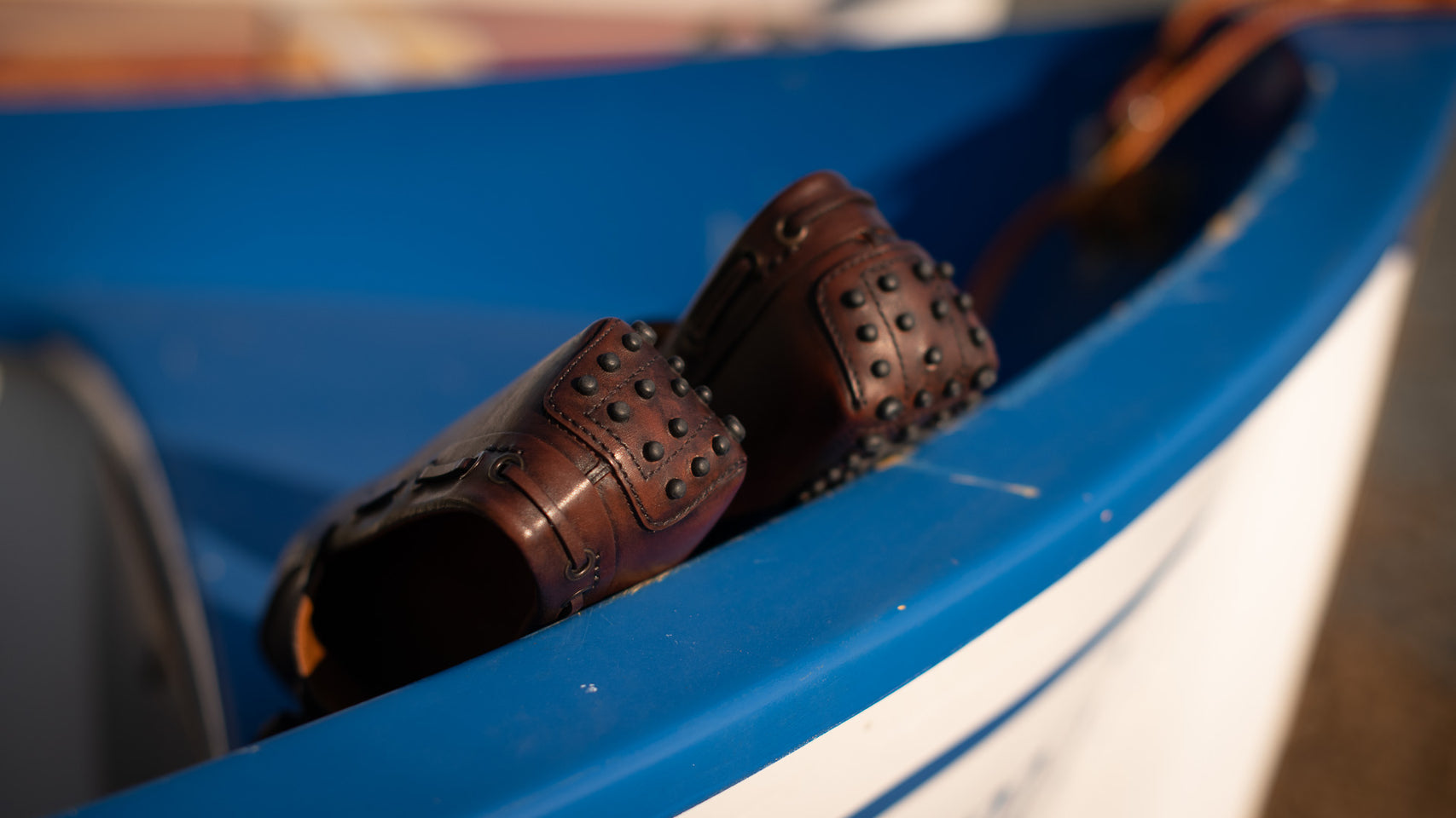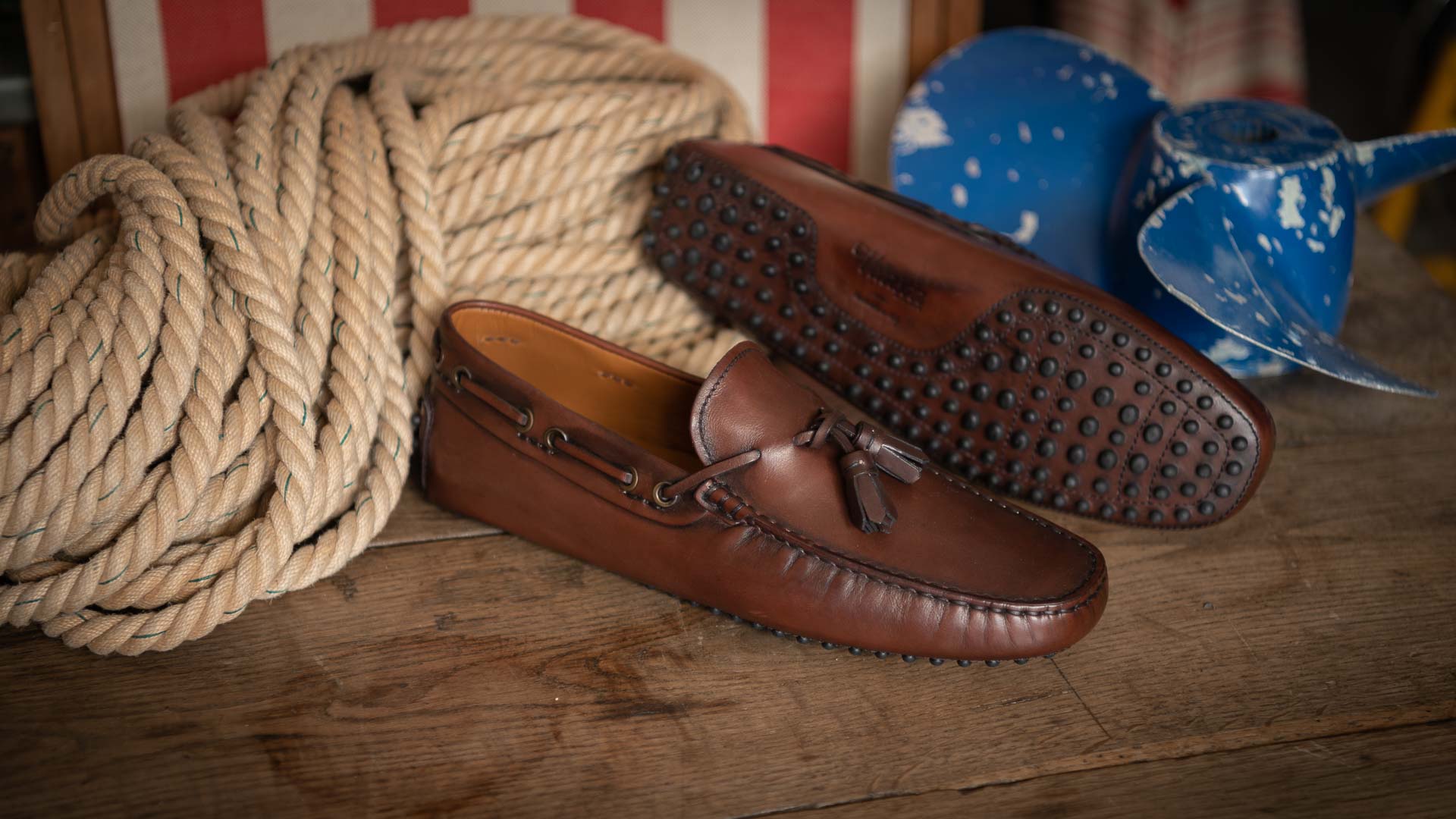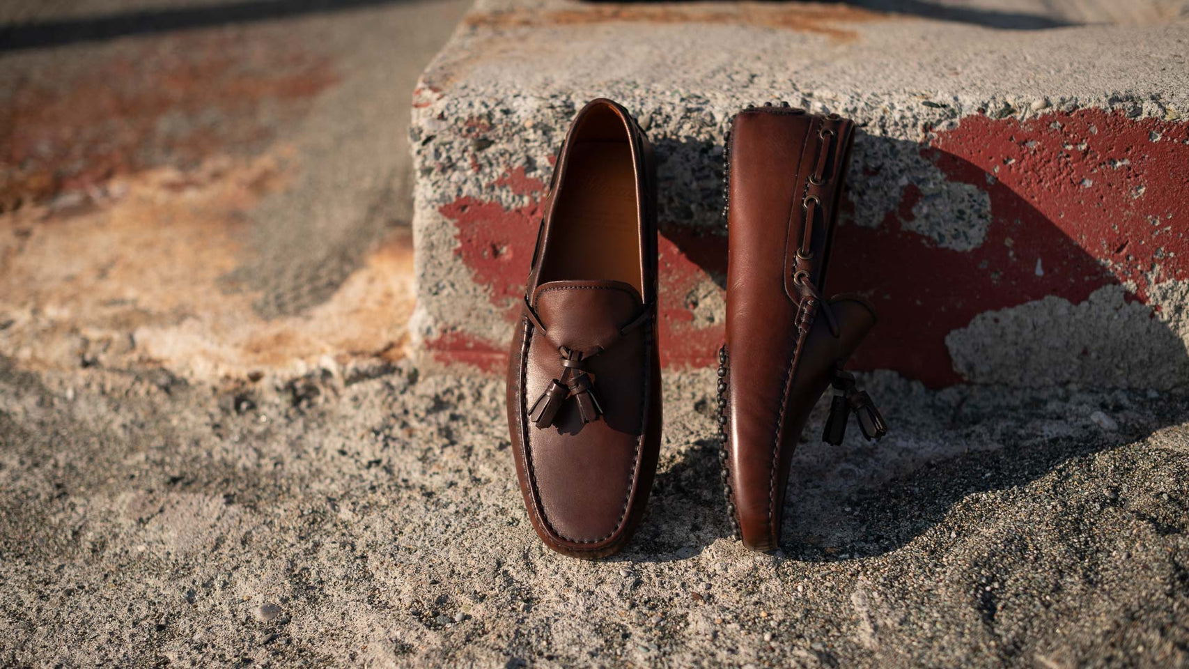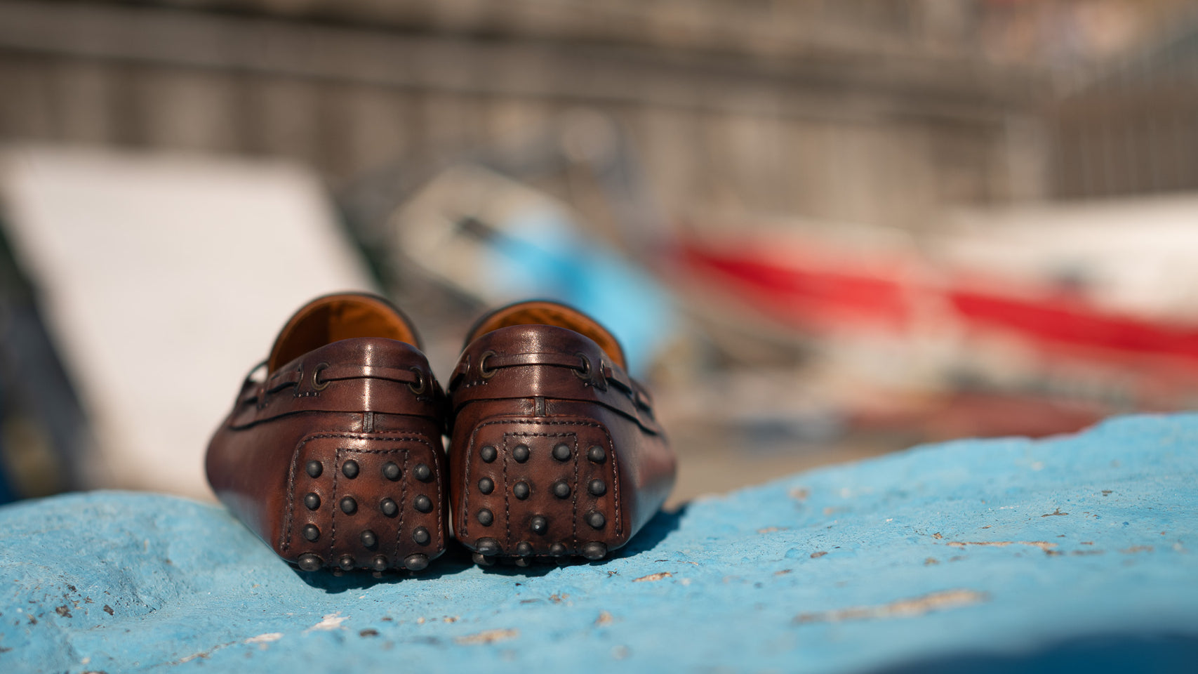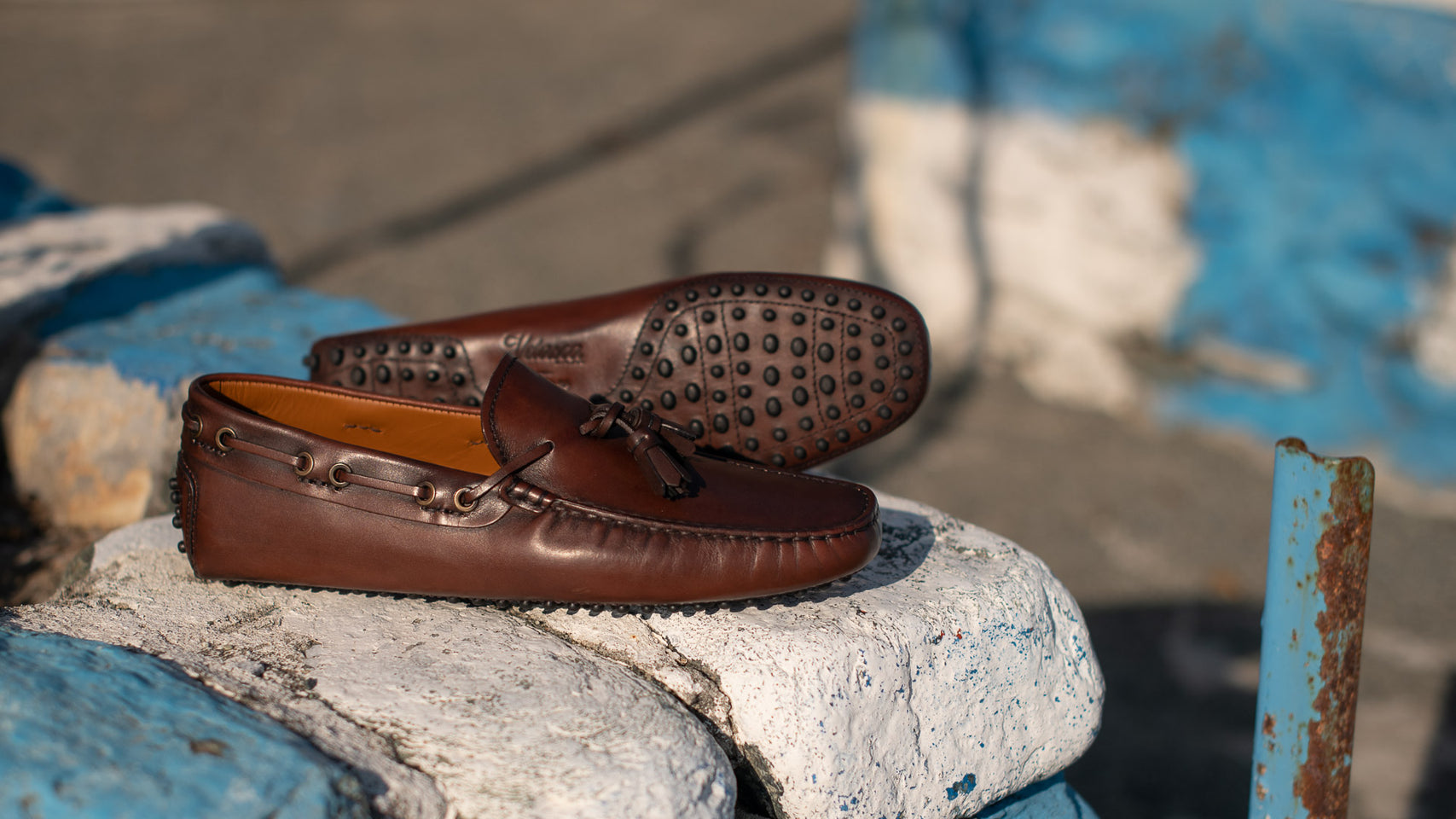 It's the vintage Moccasin with a tassel, instead of classic laces. With its antiqued leather and studded rubber sole, it’s a brown shoe for getting around in style during summer. Our artisans chose to make them using the tubular technique. Their best feature is how they feel: they’re flexible and soft to walk in.