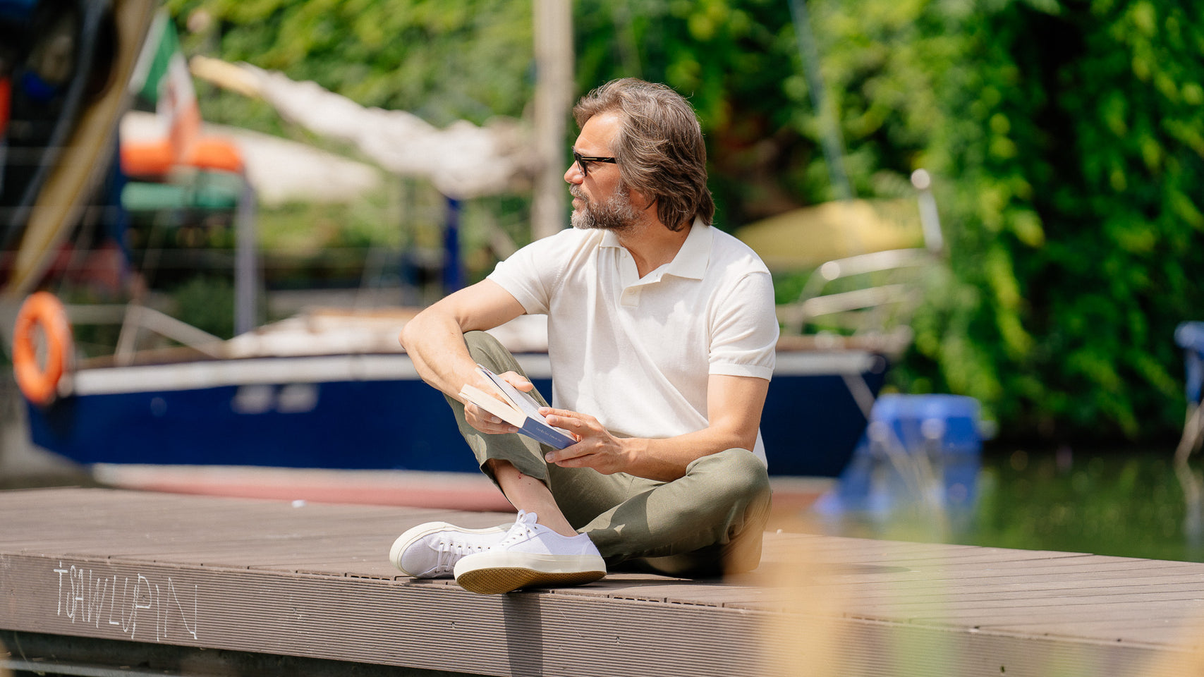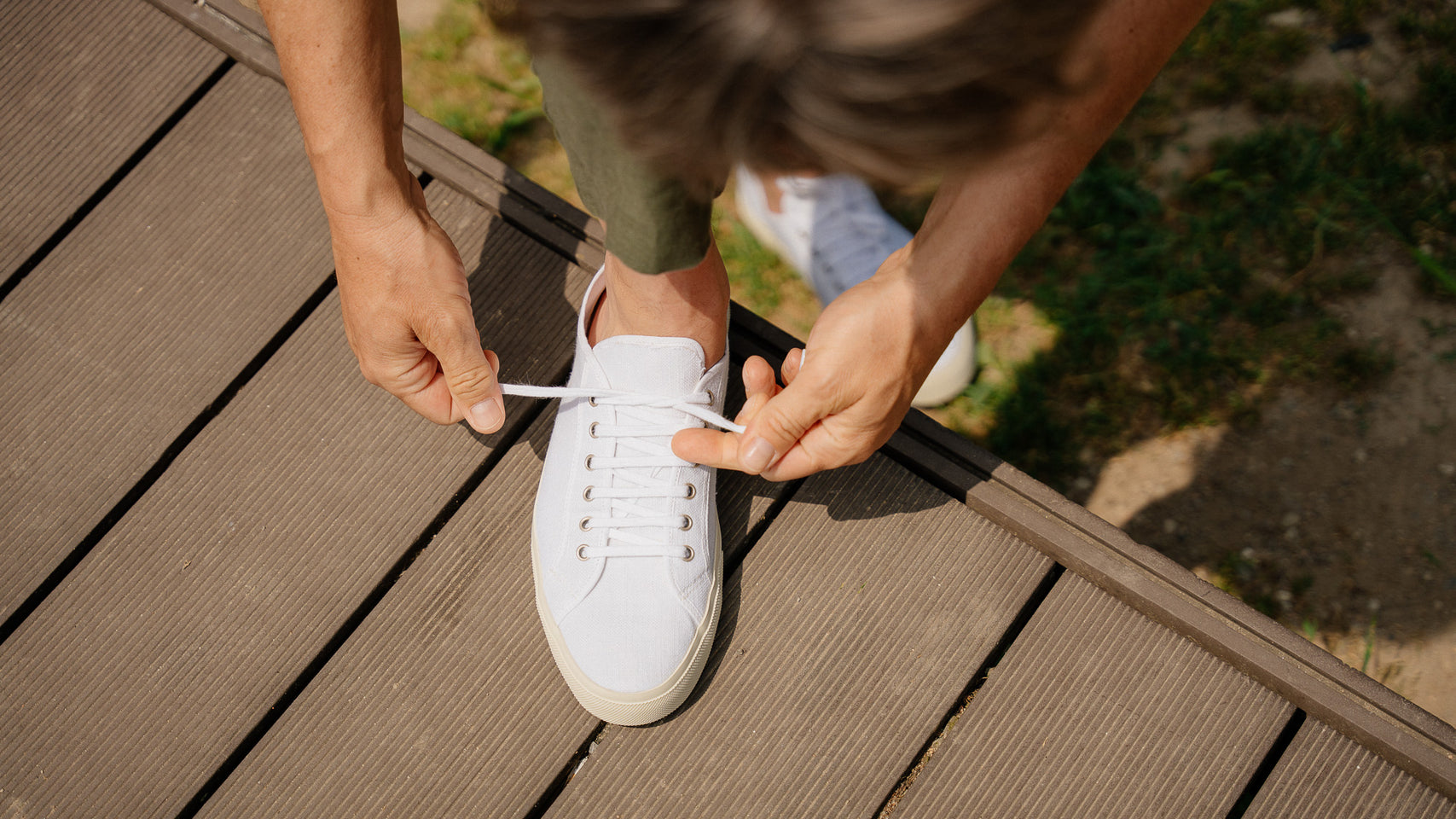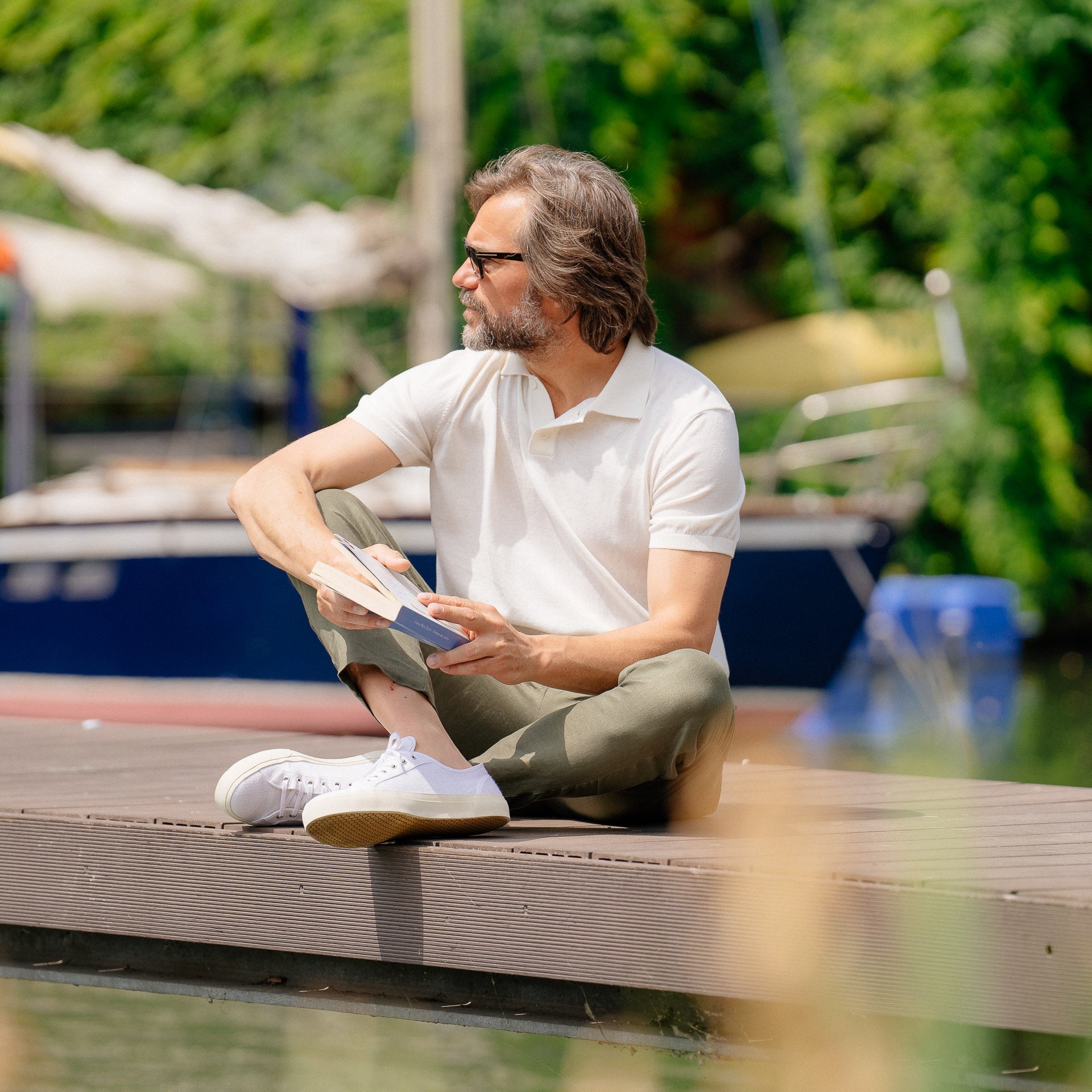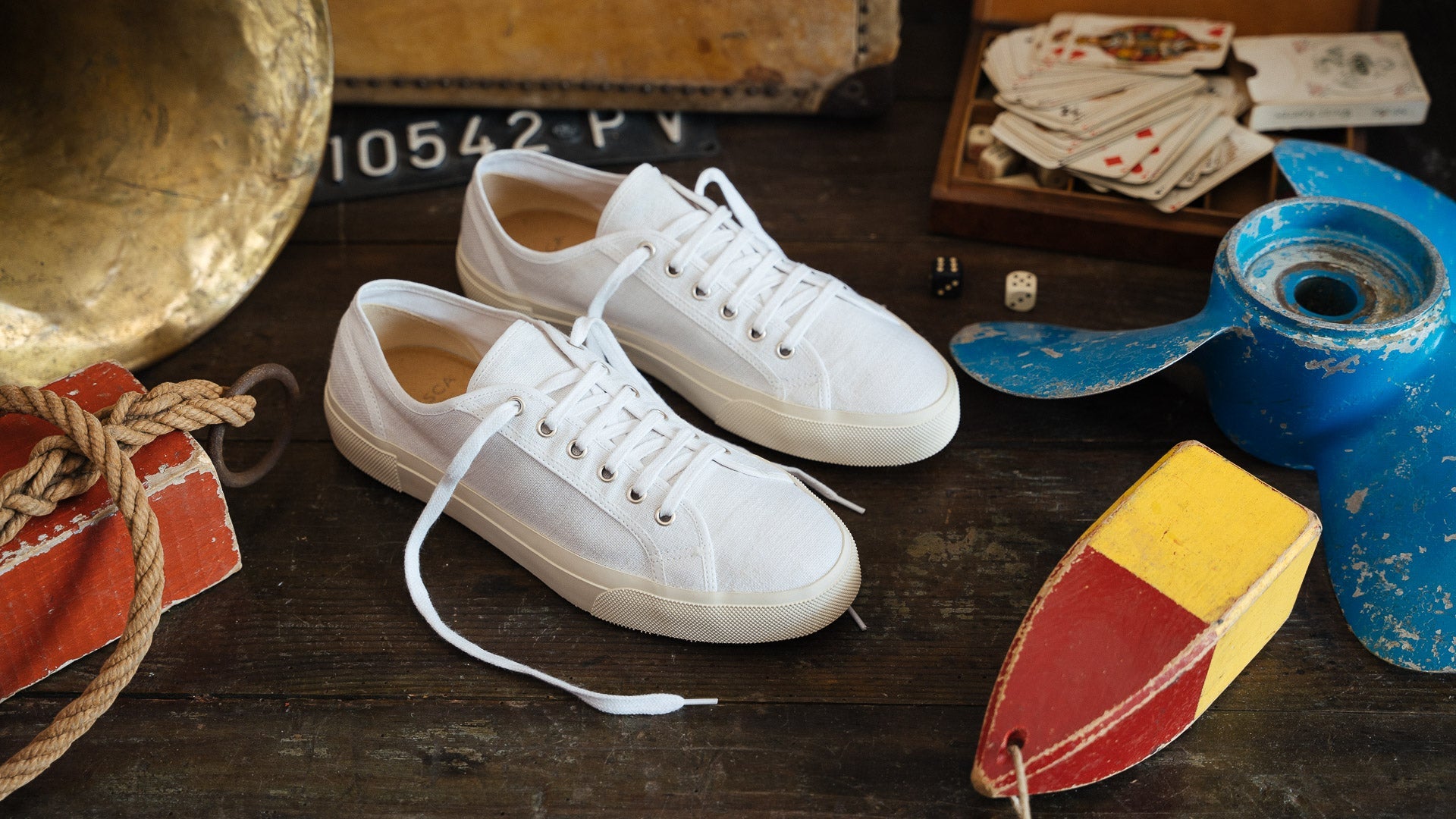 Our handcrafted sneakers with a vintage soul, in white linen. The sole is composed of a rubber band that wraps around, joining the Vibram sole to the linen upper. Summer is waiting, and socks aren’t invited.