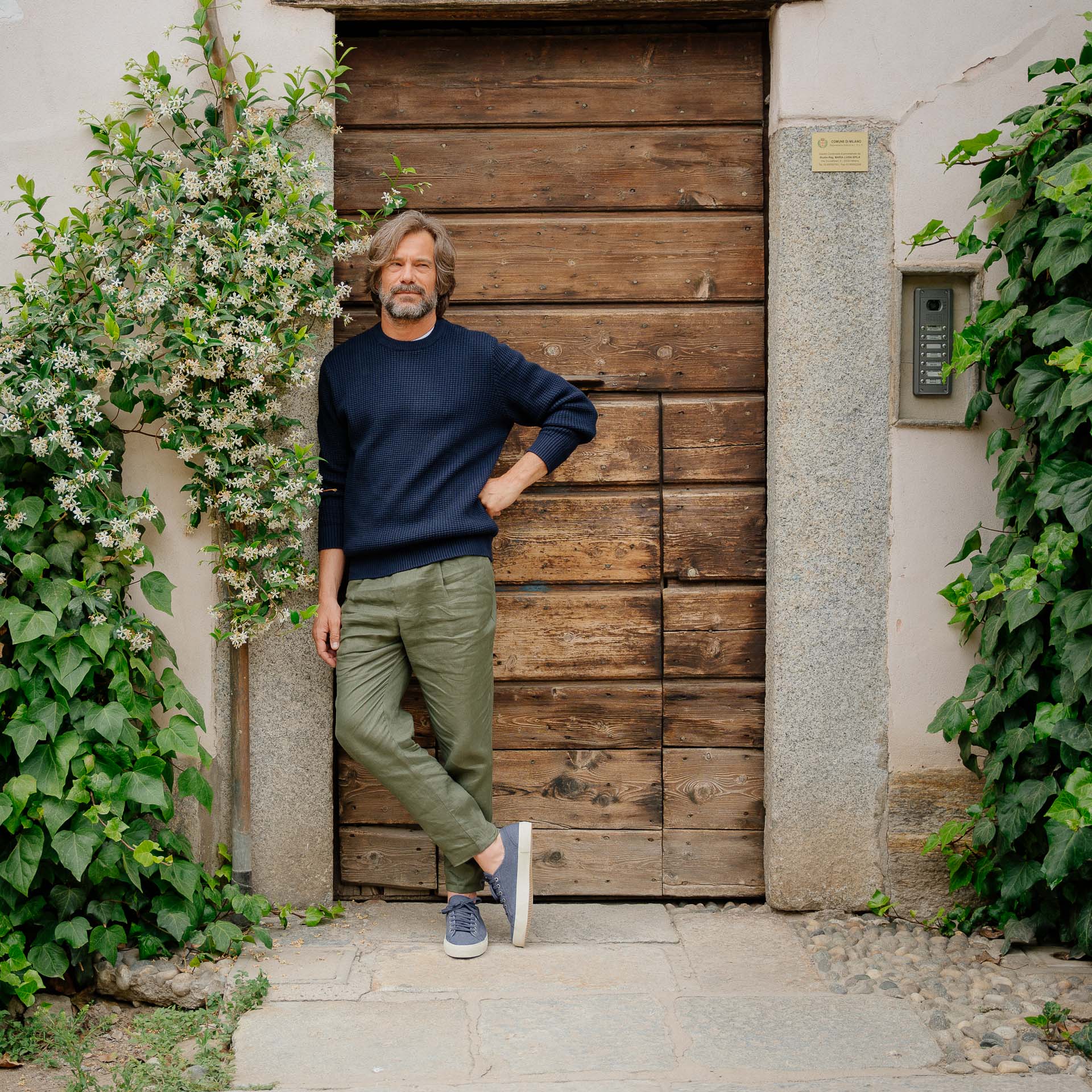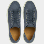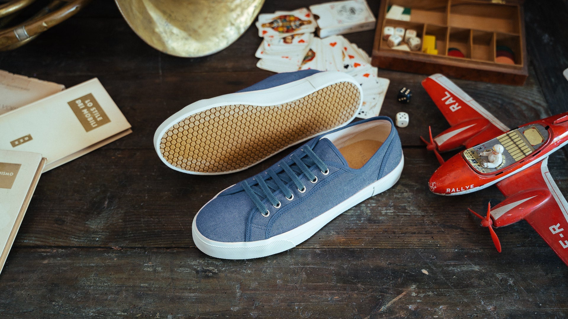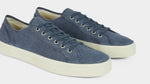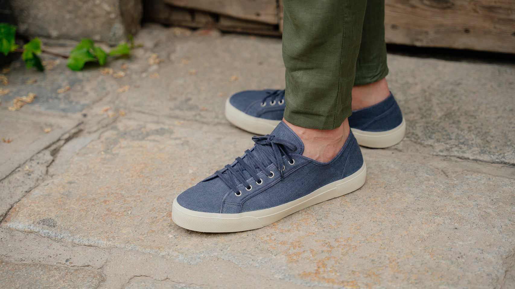 Our handcrafted sneakers with a vintage soul, in blue linen. The sole is composed of a rubber band that wraps around, joining the Vibram sole to the linen upper. Summer is waiting, and socks aren’t invited.