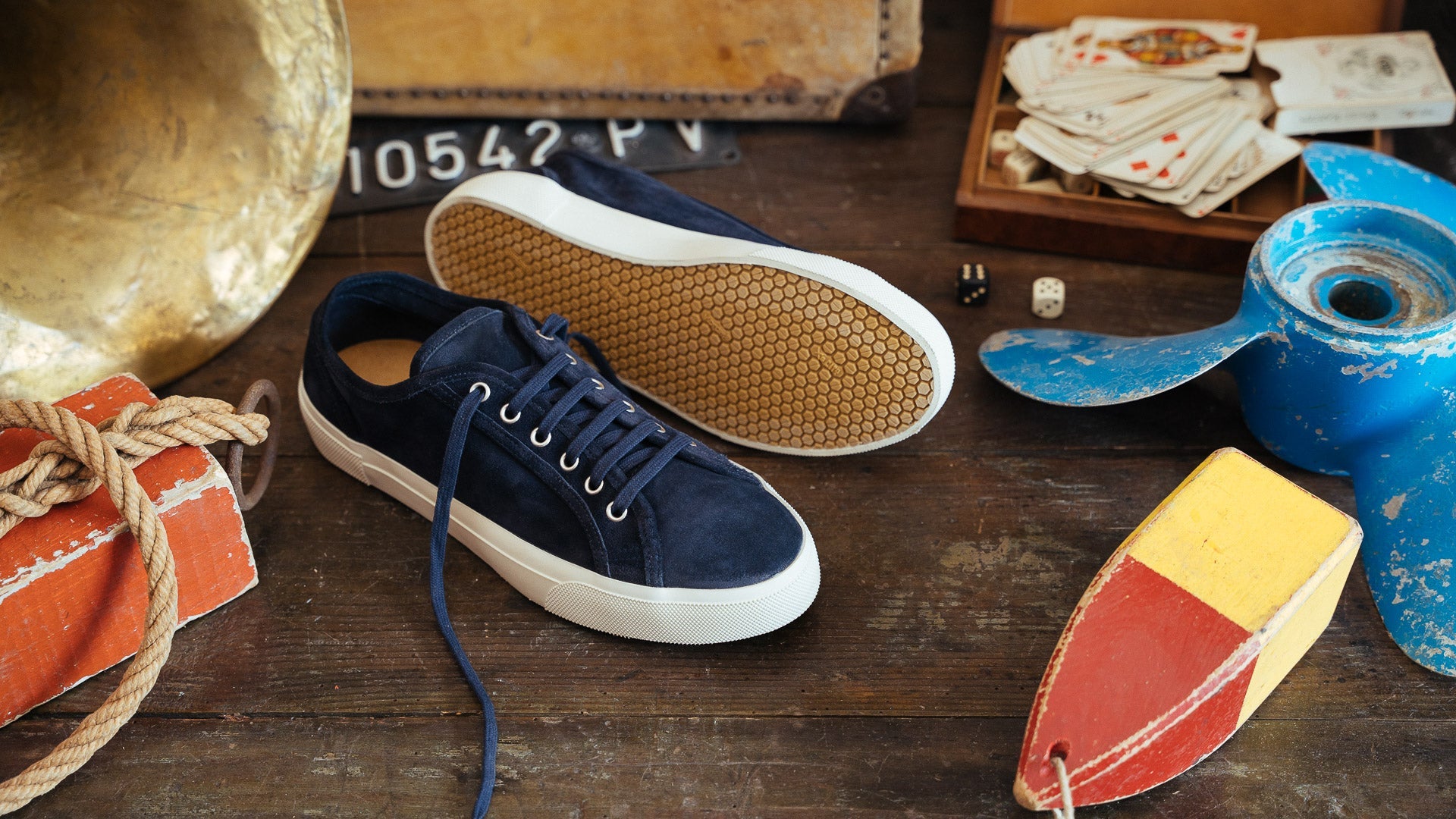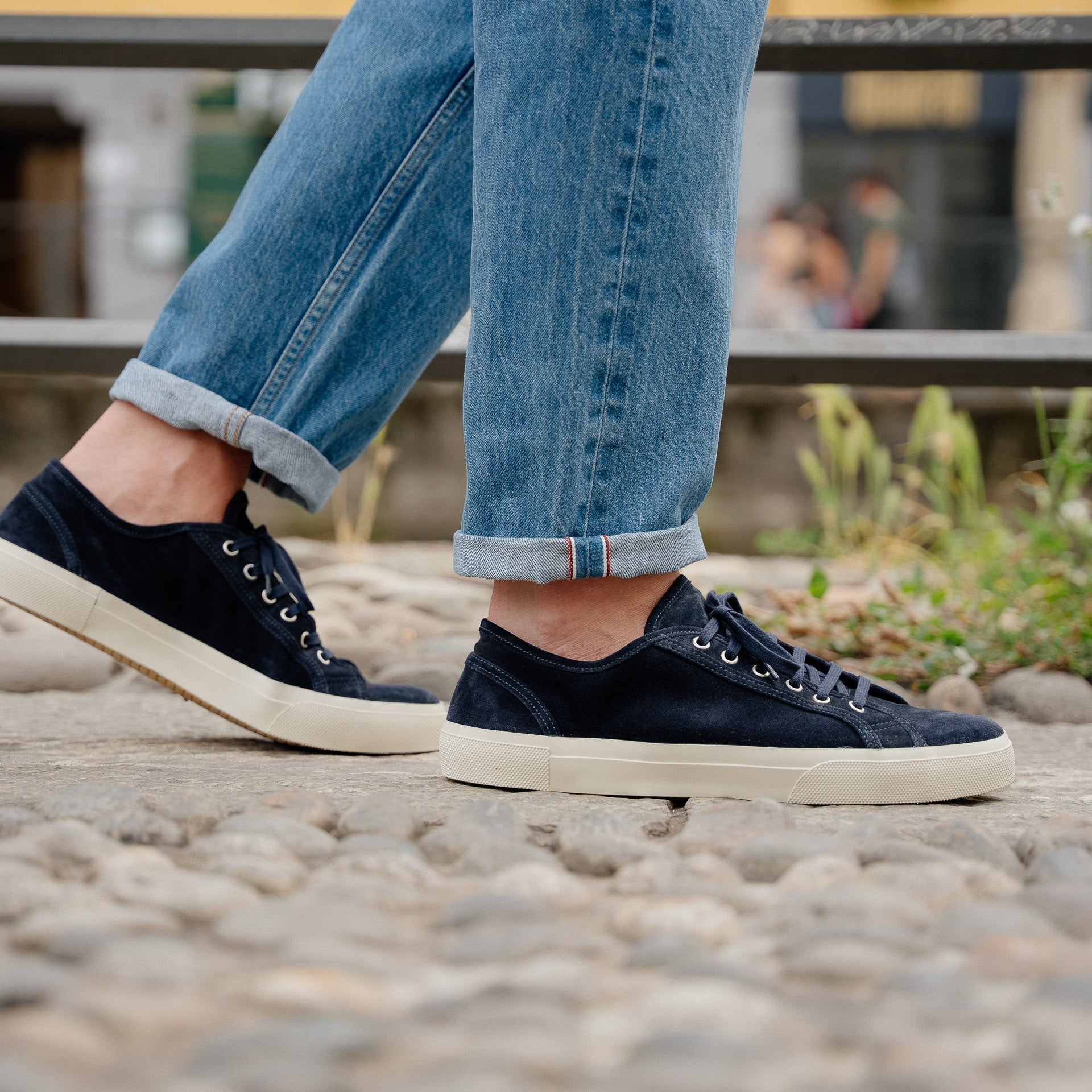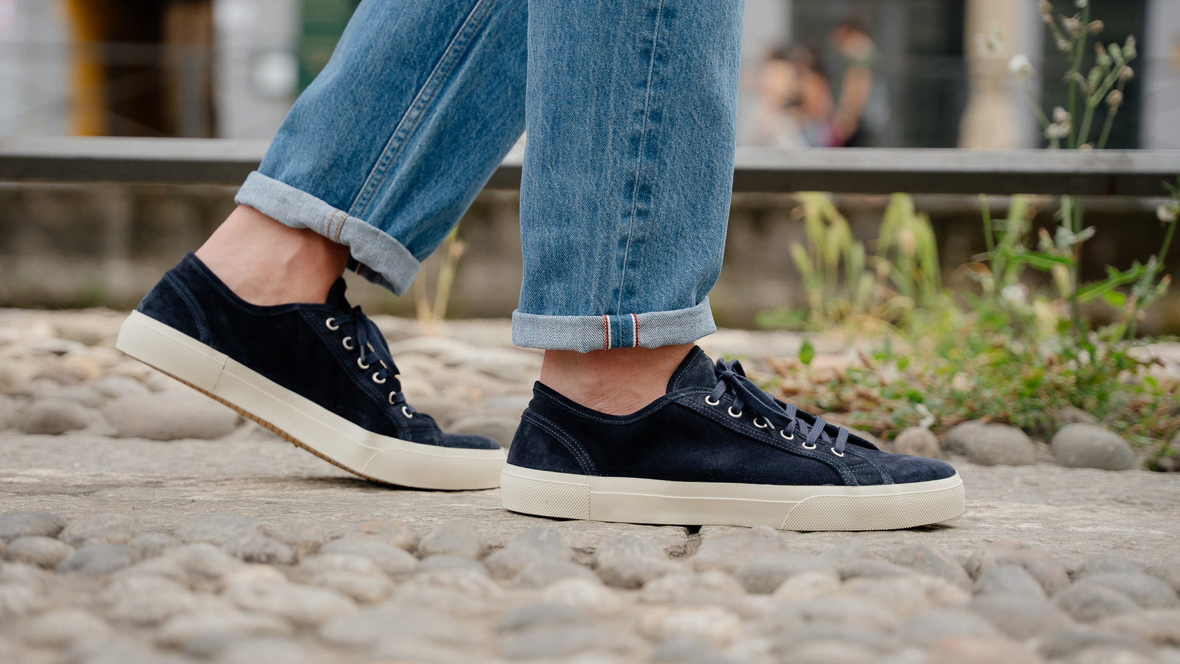 Our handcrafted sneakers with a vintage soul, in blue suede leather. The sole is composed of a rubber band that wraps around, joining the Vibram sole to the linen upper. Summer is waiting, and socks aren’t invited.